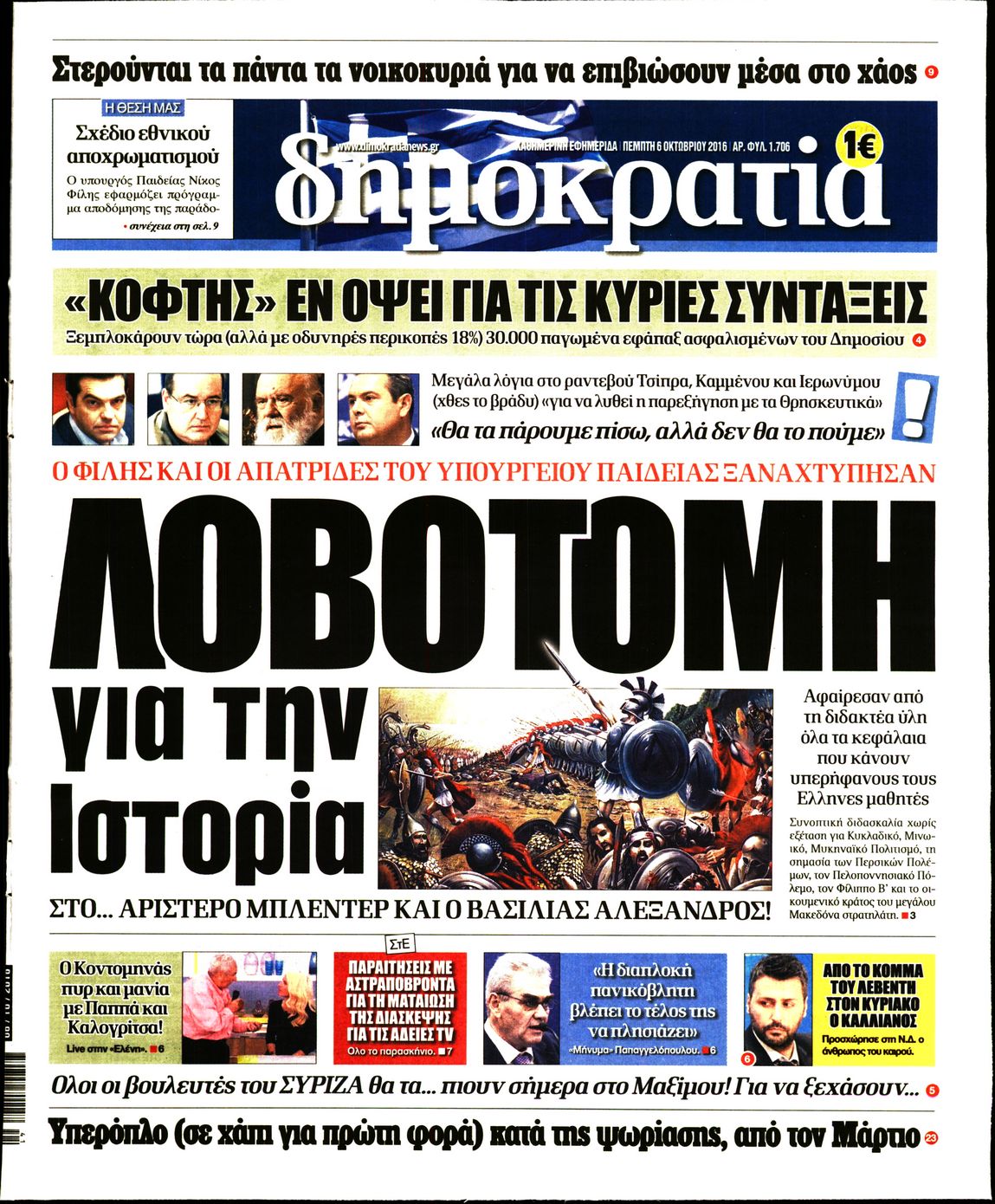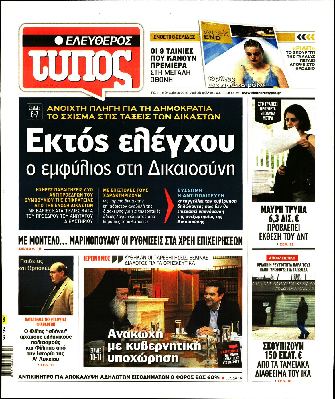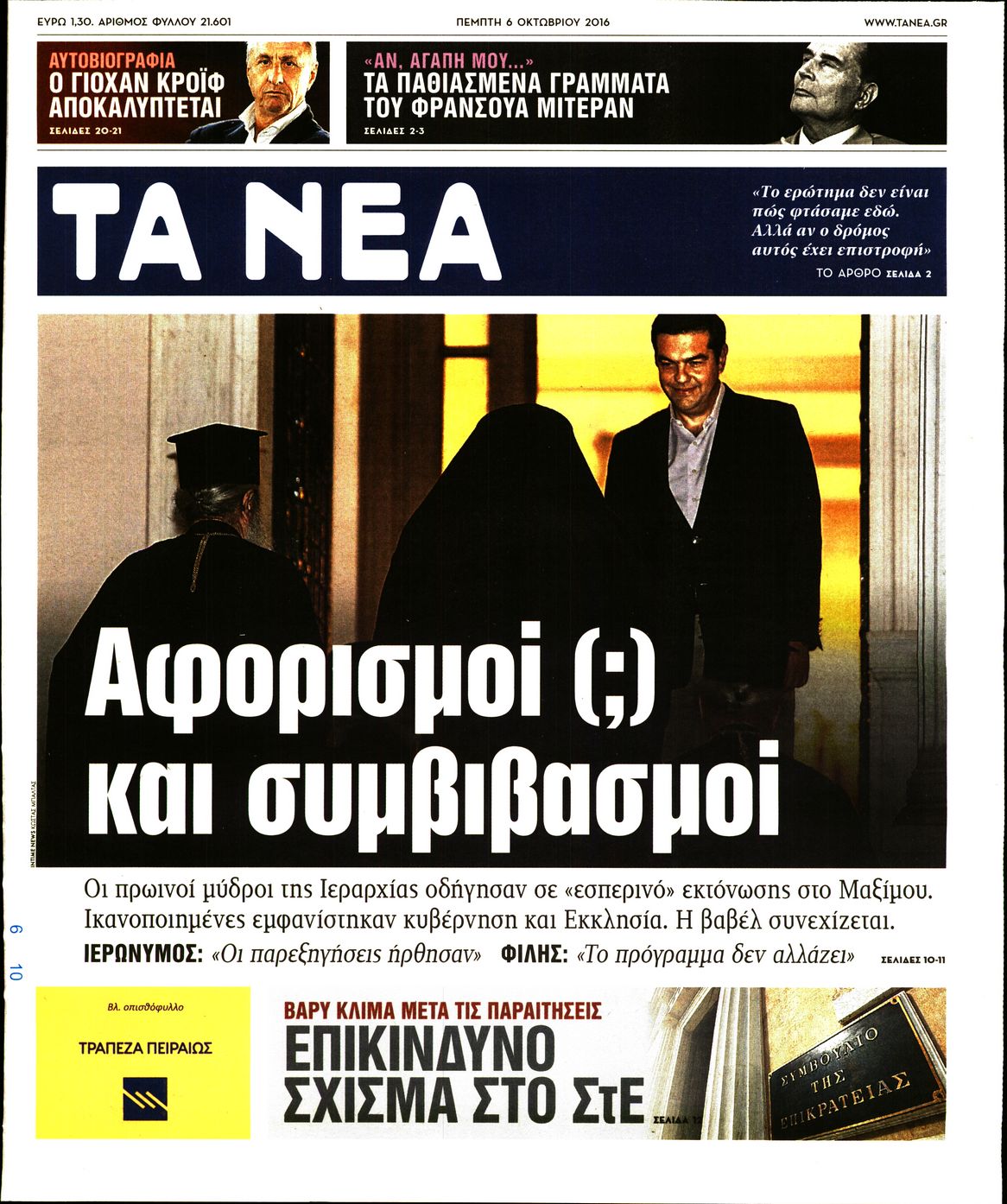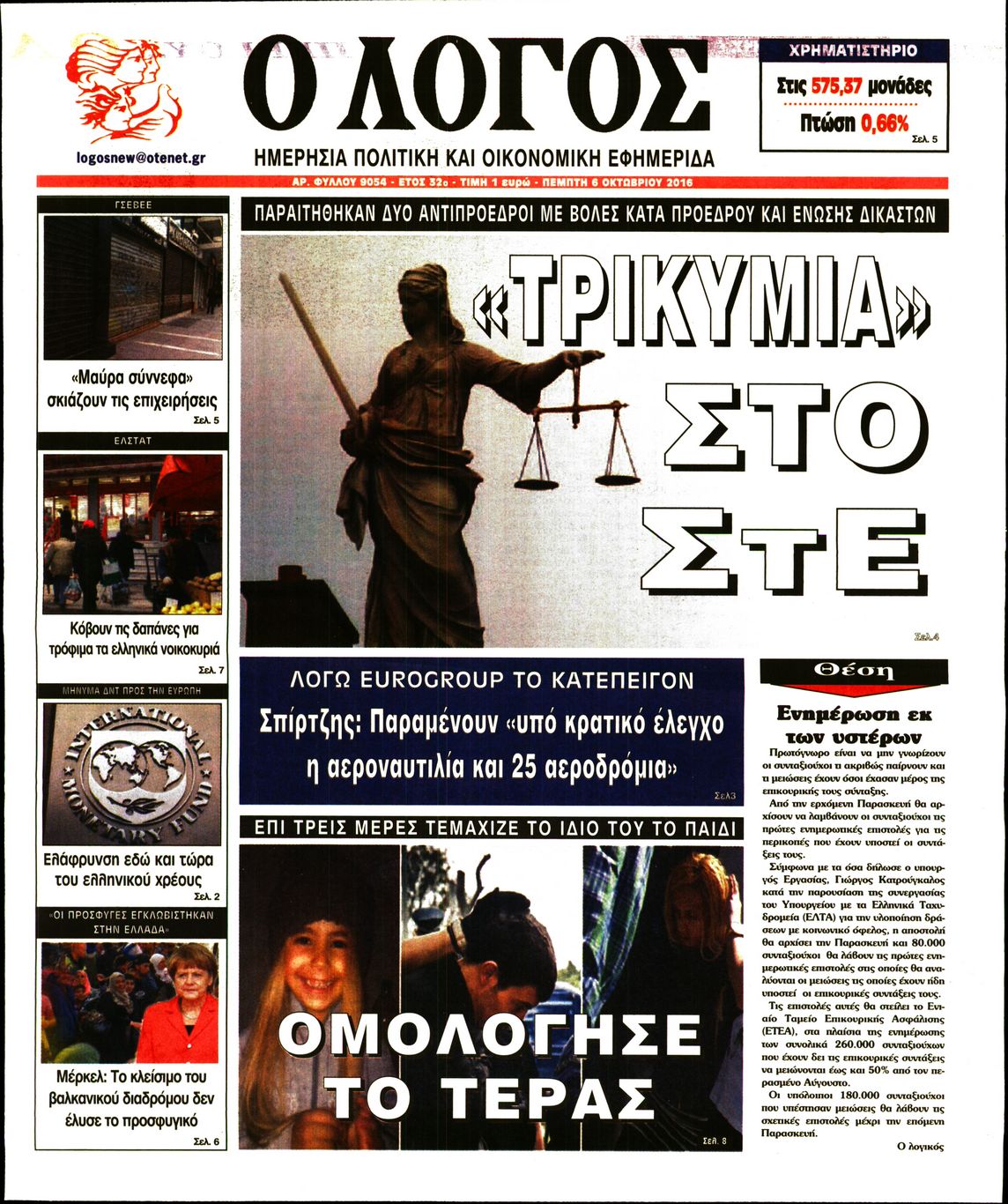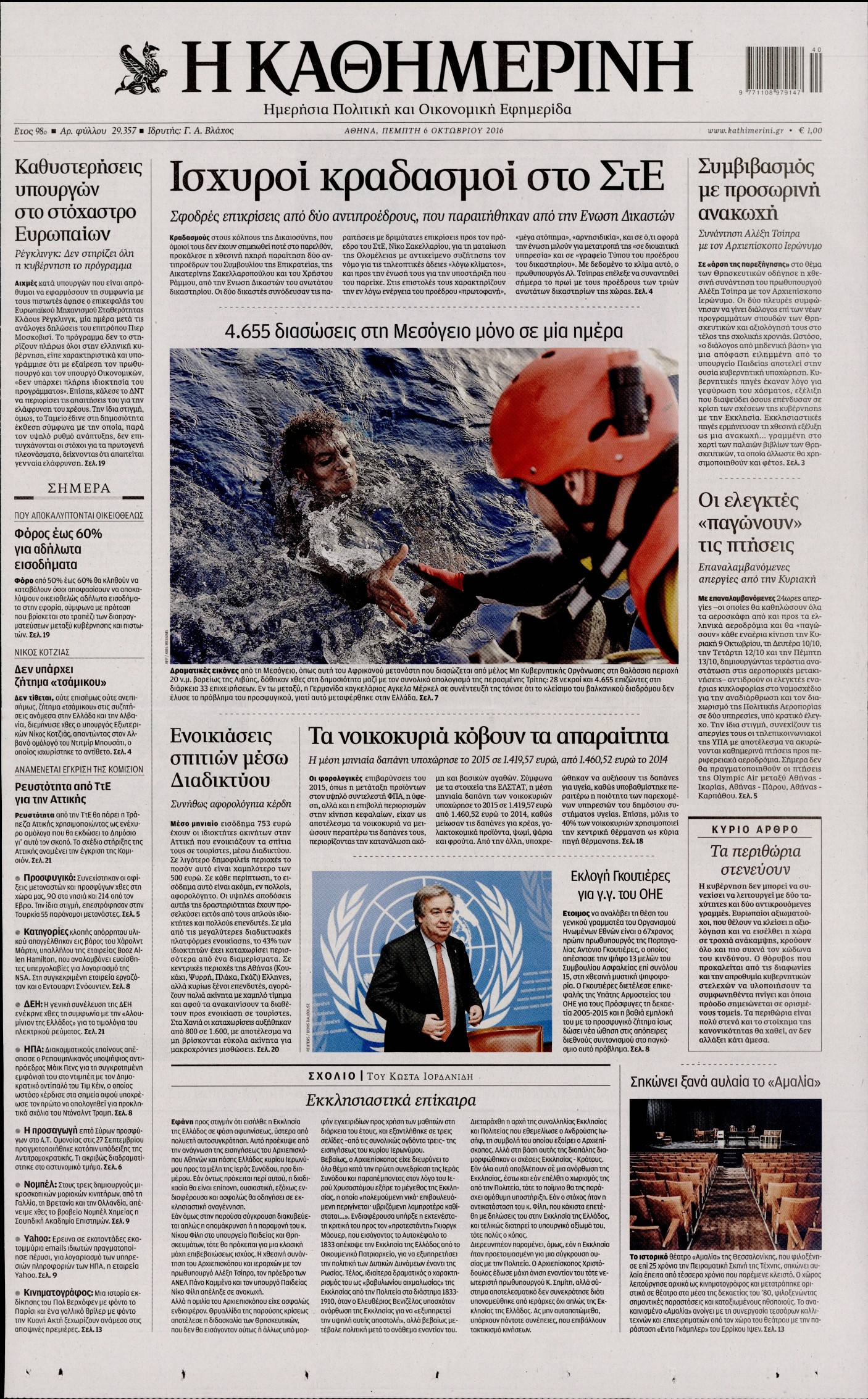 Οι πολιτικές εφημερίδες 6/10/2016 Enikos Newsroom 04:58, Πέμπτη 06 Οκτωβρίου 2016 Media Διαβάστε τα σημερινά πρωτοσέλιδα των πολιτικών εφημερίδων: ΠΟΛΙΤΙΚΕΣ ΕΦΗΜΕΡΙΔΕΣ ΠΡΩΤΟΣΕΛΙΔΑ Μοιράσου το: σχολίασε κι εσύ (0 σχόλια) Ακολουθήστε το enikos.gr στο Google News και μάθετε πρώτοι όλες τις ειδήσεις Δείτε όλες τις τελευταίες ειδήσεις από την Ελλάδα και τον Κόσμο στο enikos.gr Ειδήσεις Ροή Ειδήσεων 1 ώρα πριν Υπόθεση Έπσταϊν: Το Υπουργείο Δικαιοσύνης δημοσιοποίησε μια σειρά από εξαιρετικά επεξεργασμένα αρχεία – «Λείπουν τα πιο σημαντικά έγγραφα», λένε οι Δημοκρατικοί 3 ώρες πριν Σαρωτικοί οι έλεγχοι στους δρόμους ενόψει εορτών – Μπλόκα της τροχαίας σε κεντρικές αρτηρίες της Αττικής 1 ώρα πριν ΟΝΕΧ – MEGATUGS: Ξεκίνησε η ναυπήγηση ρυμουλκών στην Ελλάδα – Προθάλαμος πολεμικών πλοίων – Δείτε φωτογραφίες και βίντεο 1 ώρα πριν Καιρός: Αλλαγή σκηνικού σήμερα με βροχές και πτώση της θερμοκρασίας – Οι προβλέψεις των μετεωρολόγων για τα Χριστούγεννα 10 ώρες πριν Χριστούγεννα στα μπλόκα: Επιμένουν στις κινητοποιήσεις τους οι αγρότες – Ανοίγουν τα διόδια το Σαββατοκύριακο 3 ώρες πριν Αυγά: Πόσα μπορείτε να τρώτε την ημέρα με ασφάλεια για μέγιστη πρόσληψη πρωτεΐνης 3 ώρες πριν Τα ζώδια σήμερα, Σάββατο 20 Δεκεμβρίου: Παρθένοι, το σύμπαν σας δίνει το κλειδί 3 ώρες πριν Οπτική ψευδαίσθηση: Μόνο αν είσαι ο Σέρλοκ Χολμς θα βρεις τον αριθμό «87» σε 7 δευτερόλεπτα 46 λεπτά πριν Αρχαιολόγοι ανακάλυψαν σε χωράφι απεικόνιση 600 ετών ενός Αγίου – Τα στοιχεία που δείχνουν ότι μαρτύρησε 8 λεπτά πριν Αμαλία Κωστοπούλου: Το μήνυμα για το χειρουργείο στο γόνατο – «Αυτός ο τραυματισμός μού στέρησε πολλά…» 15 λεπτά πριν Ο «χάρτης» με τις αυξήσεις και τις φοροελαφρύνσεις του 2026 – Ποιοι και πόσα κερδίζουν 23 λεπτά πριν Η τέλεια συνταγή για cookies με κομμάτια σοκολάτας 31 λεπτά πριν MyHealth App: Τα στοιχεία για τον Προσωπικό Βοηθό Υγείας Πολίτη – Τι ερωτήματα έγιναν μέσα σε 7 ημέρες 39 λεπτά πριν Τρομεροί γονείς: Η Μαρία Καβογιάννη εισβάλλει στο σπίτι της οικογένειας Στεφανίδη ENIKOS NETWORK Το τεστ των 10 δευτερολέπτων που μπορεί να προβλέψει το προσδόκιμο ζωής σας – Τι λέει ειδικός του Cleveland Επιλέξτε καρέκλα για να μάθετε ποια είναι τα κρυφά χαρακτηριστικά σας – Τι αποκάλυψε για εσάς αυτό το τεστ προσωπικότητας; Mega χριστουγεννιάτικη φορολοταρία: «Κλείδωσε» η ημερομηνία για την κλήρωση – Ερωτήσεις και απαντήσεις Αναστολή μέτρων αναγκαστικής εκτέλεσης για κτηνοτρόφους που πλήττονται από την ευλογιά των αιγοπροβάτων Χαρτογραφώντας το «σημείο χωρίς επιστροφή»: Για πρώτη φορά αποκαλύπτεται με λεπτομέρεια το ακανθώδες όριο της ατμόσφαιρας τ... Η Google καταργεί τη λειτουργία «dark web report» – Πώς θα μπορούν οι χρήστες να διαγράφουν τα δεδομένα τους περισσότερα 08:14 , Σάββατο 20 Δεκεμβρίου 2025 Τρομεροί γονείς: Η Μαρία Καβογιάννη εισβάλλει στο σπίτι της οικογένειας Στεφανίδη Όσα θα δούμε στο νέο διπλό επεισόδιο της σειράς «Τρομεροί γονείς», σήμερα Σάββατο 20 Δεκεμβρίο... 05:48 , Σάββατο 20 Δεκεμβρίου 2025 Οι οικονομικές εφημερίδες 20/12/2025 Διαβάστε τα πρωτοσέλιδα από τις οικονομικές εφημερίδες, σήμερα 20/12/2025. 05:43 , Σάββατο 20 Δεκεμβρίου 2025 Οι αθλητικές εφημερίδες 20/12/2025 Διαβάστε τα πρωτοσέλιδα από τις αθλητικές εφημερίδες, σήμερα 20/12/2025. 05:38 , Σάββατο 20 Δεκεμβρίου 2025 Οι πολιτικές εφημερίδες 20/12/2025 Διαβάστε τα πρωτοσέλιδα από τις πολιτικές εφημερίδες, σήμερα 20/12/2025. ΤΕΛΕΥΤΑΙΕΣ ΕΙΔΗΣΕΙΣ 8 λεπτά πριν Αμαλία Κωστοπούλου: Το μήνυμα για το χειρουργείο στ