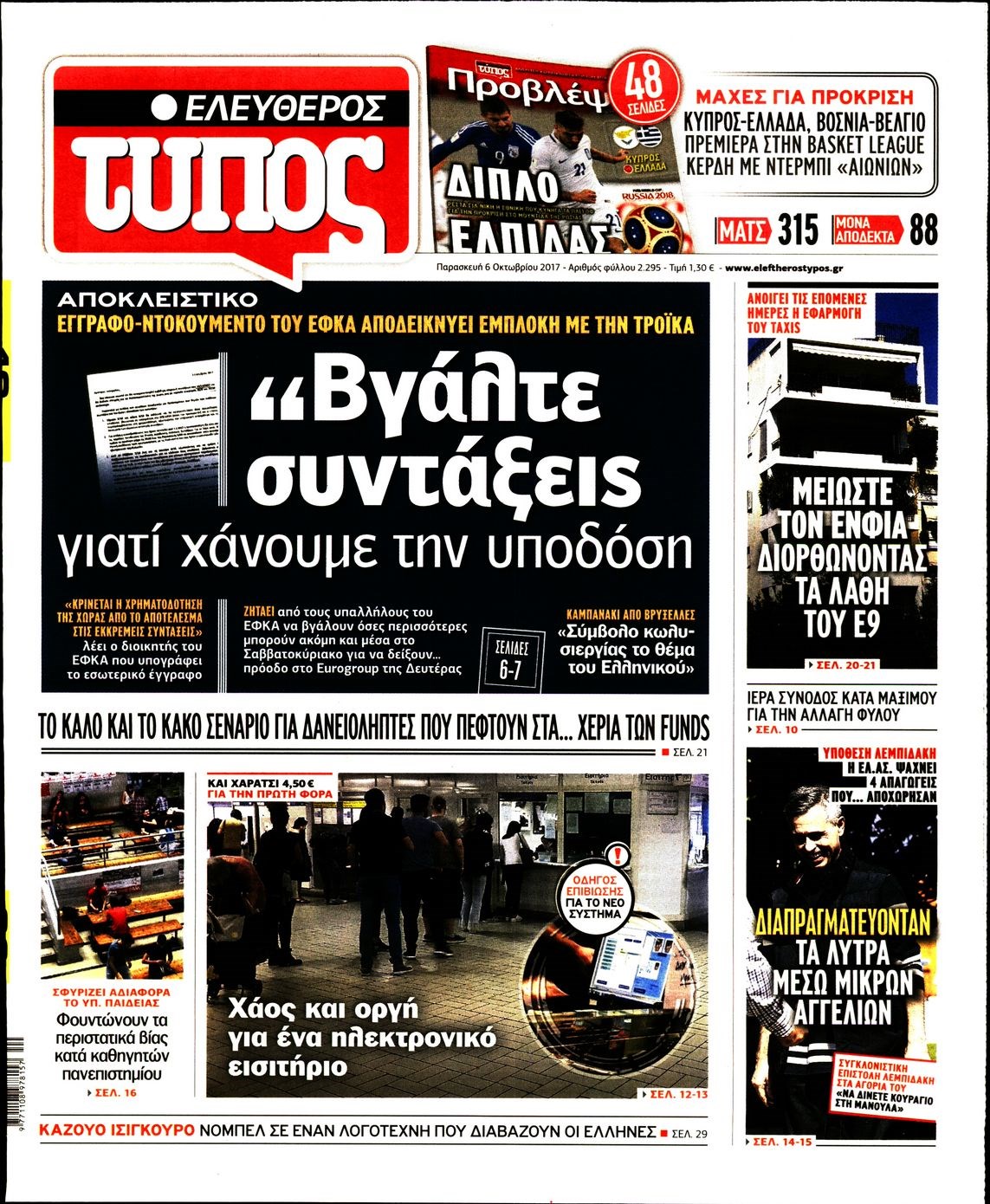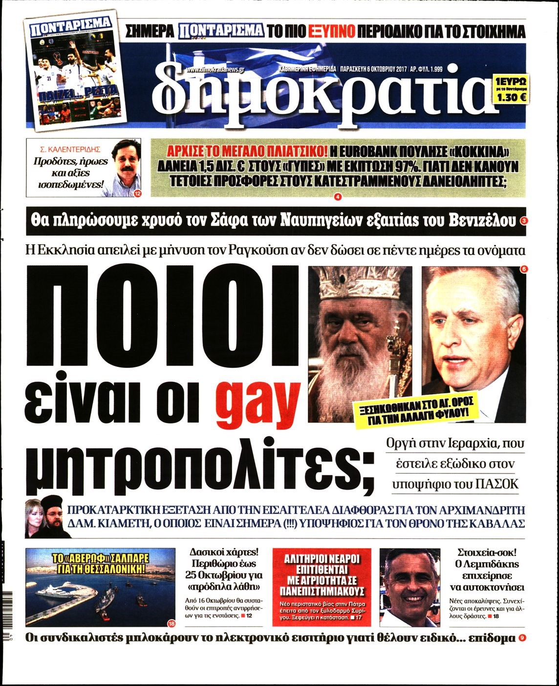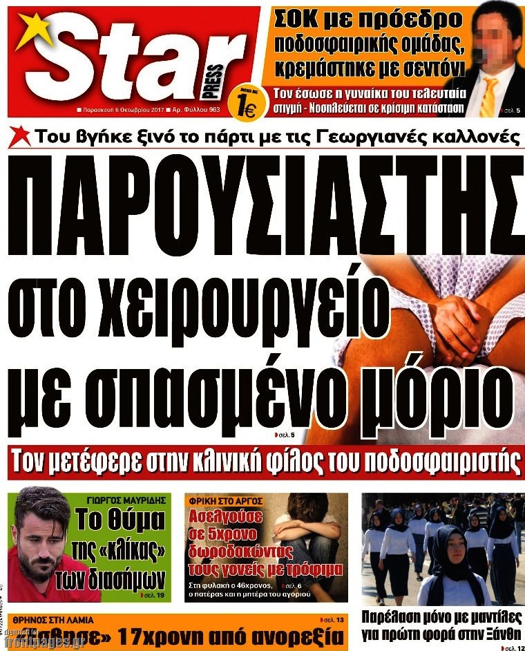 Οι πολιτικές εφημερίδες 6/10/2017 Enikos Newsroom 07:54, Παρασκευή 06 Οκτωβρίου 2017 Media Διαβάστε τα σημερινά πρωτοσέλιδα των πολιτικών εφημερίδων: ΠΟΛΙΤΙΚΕΣ ΕΦΗΜΕΡΙΔΕΣ ΠΡΩΤΟΣΕΛΙΔΑ Μοιράσου το: σχολίασε κι εσύ (0 σχόλια) Ακολουθήστε το enikos.gr στο Google News και μάθετε πρώτοι όλες τις ειδήσεις Δείτε όλες τις τελευταίες ειδήσεις από την Ελλάδα και τον Κόσμο στο enikos.gr Ειδήσεις Ροή Ειδήσεων 38 λεπτά πριν Μεσόγειος: Η διαδρομή του ρωσικού τάνκερ «Qendil» και η στοχευμένη επίθεση της Ουκρανίας με drone – Ο Πούτιν προειδοποίησε για αντίποινα 32 λεπτά πριν Αττική: Θρίλερ με νεκρό βρέφος 5 μηνών – Κοιμόταν στο ίδιο κρεβάτι με τους γονείς του 1 ώρα πριν Από το Ορμένιο ως τα Μάλγαρα κι από τη Σιάτιστα μέχρι τη Νίκαια: Μπλόκα σε όλη την Ελλάδα – Το Σάββατο ανοίγουν τα διόδια οι αγρότες 2 ώρες πριν «Έλληνας Εσκομπάρ»: Φωτογραφίες με τους 4 τόνους κοκαΐνης που κατασχέθηκαν από το σκάφος «Ουρανία» 3 ώρες πριν Πούτιν: Σαρκαστικά μηνύματα, παράπονα και απρόοπτα στη συνέντευξη Τύπου – Η πρόταση γάμου on air και οι ερωτήσεις για τα αγγούρια και τους… εξωγήινους 3 ώρες πριν Τα 5 ζώδια που ευνοούνται στην ερωτική ζωή τους την επόμενη εβδομάδα – «Η ενέργεια του Αιγόκερου φέρνει αγάπη και σταθερότητα» 7 ώρες πριν Ειδικός μοιράζεται 6 κόλπα για να διατηρείστε σε φόρμα με πάνω από 40 ώρες εργασίας την εβδομάδα: «Προπονηθείτε πριν από τη δουλειά, όχι μετά» 4 ώρες πριν Αυτό το έξυπνο μαθηματικό κόλπο θα μπορούσε να αλλάξει τον τρόπο με τον οποίο οι επιστήμονες μελετούν τους σεισμούς 2 ώρες πριν Κουίζ για την παλιά Αθήνα: Αναγνωρίζετε την περιοχή; Έχετε περάσει 100% από εκεί 7 λεπτά πριν Επίσημη η «βόμβα»: Ο ΠΑΟΚ ανακοίνωσε την απόκτηση του Πάτρικ Μπέβερλι 12 λεπτά πριν Θεσσαλονίκη: Πατέρας εγκαλεί τον Ιατρικό Σύλλογο για ποινές «χάδι» σε γιατρό που κατηγορείται για τον θάνατο του παιδιού του 18 λεπτά πριν Κερατσίνι: Αστυνομικός εκτός υπηρεσίας απέτρεψε κλοπή μηχανών – Συνελήφθησαν τρεις ανήλικοι 22 λεπτά πριν Το σόι σου: Ο Άρης έρχεται στην Ελλάδα για τις γιορτές των Χριστουγέννων – Τι θα δούμε στο αποψινό εορταστικό επεισόδιο 29 λεπτά πριν ΠΑΣΟΚ σε Μαρινάκη: Δεν νομιμοποιούμε πολιτικές επιλογές που μεταφέρουν το πρόβλημα από υπηρεσία σε υπηρεσία ENIKOS NETWORK «Η σούπερ» γρίπη εξαπλώνεται στην Ευρώπη-Στοιχεία για την αποτελεσματικότητα του εμβολίου από το ECDC ΕΛΣΤΑΤ: Αύξηση κατά 1,7% των επαγγελματιών υγείας το 2024 Η απάντηση της κυβέρνησης στα αιτήματα των αγροτών: 16 έχουν ικανοποιηθεί, 4 βρίσκονται υπό επεξεργασία και 7 δεν είναι εφι... Μισθολογική διαφάνεια: Το 68% των εργαζομένων αγνοεί τη νέα οδηγία – Αναλυτικά τα στοιχεία έρευνας Χαρτογραφώντας το «σημείο χωρίς επιστροφή»: Για πρώτη φορά αποκαλύπτεται με λεπτομέρεια το ακανθώδες όριο της ατμόσφαιρας τ... Η Google καταργεί τη λειτουργία «dark web report» – Πώς θα μπορούν οι χρήστες να διαγράφουν τα δεδομένα τους περισσότερα 18:11 , Παρασκευή 19 Δεκεμβρίου 2025 Το σόι σου: Ο Άρης έρχεται στην Ελλάδα για τις γιορτές των Χριστουγέννων – Τι θα δούμε στο αποψινό εορταστικό επεισόδιο Ένα απολαυστικό, εορταστικό επεισόδιο της σειράς “Το σόι σου”, γεμάτο ευτράπελα αλ... 15:15 , Παρασκευή 19 Δεκεμβρίου 2025 Την Κυριακή με τη Realnews: Ό,τι και αν αγοράσεις, σκανάρεις και κερδίζεις! Την Κυριακή με τη Realnews: Ό,τι και αν αγοράσεις, σκανάρεις και κερδίζεις! Με το PADU app, το... 08:00 , Παρασκευή 19 Δεκεμβρίου 2025 Την Κυριακή με τη Realnews: Δωροεπιταγή 10€ Δωροεπιταγή αξίας 10€ για αγορές άνω των 60€ από τα πολυκα