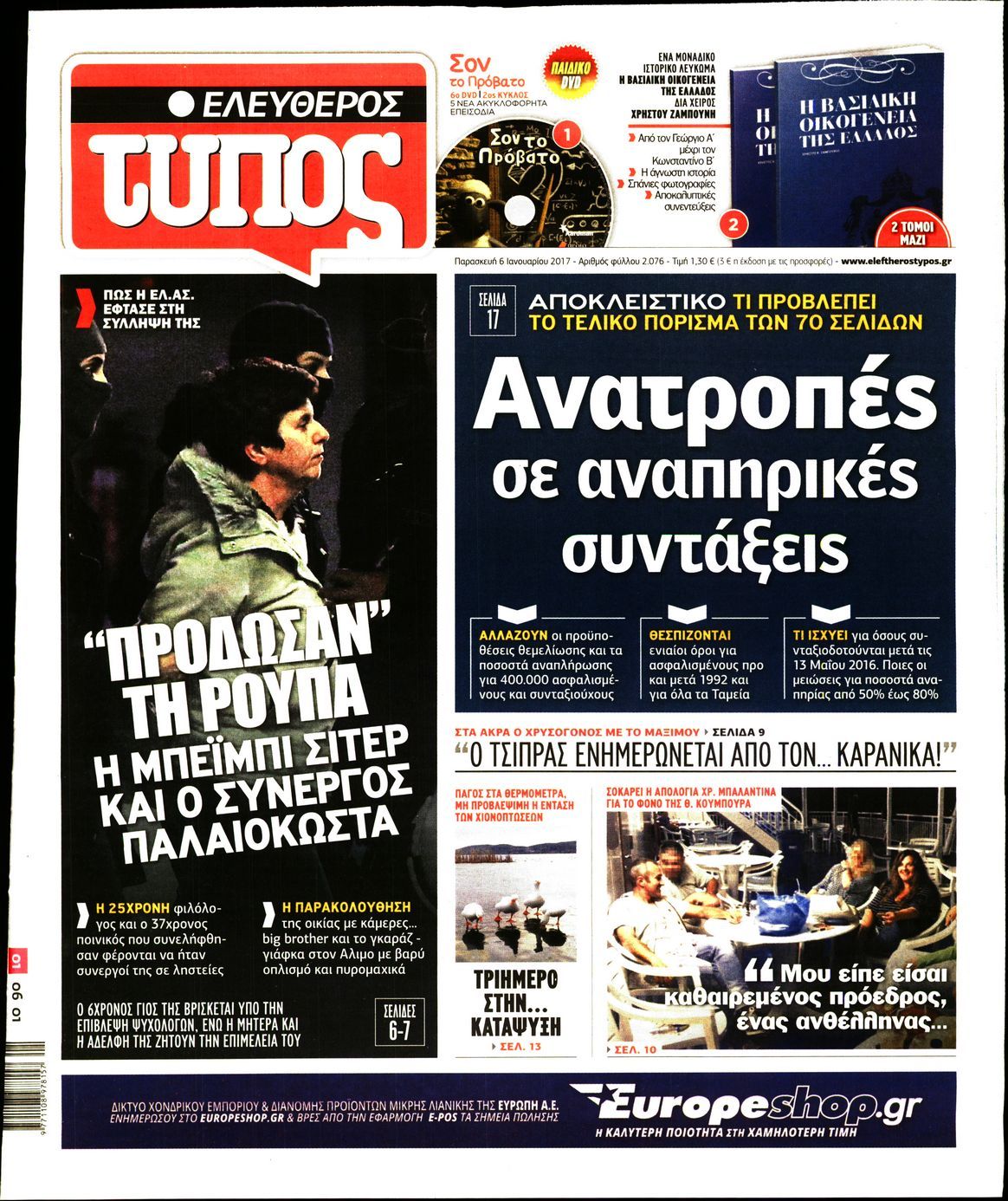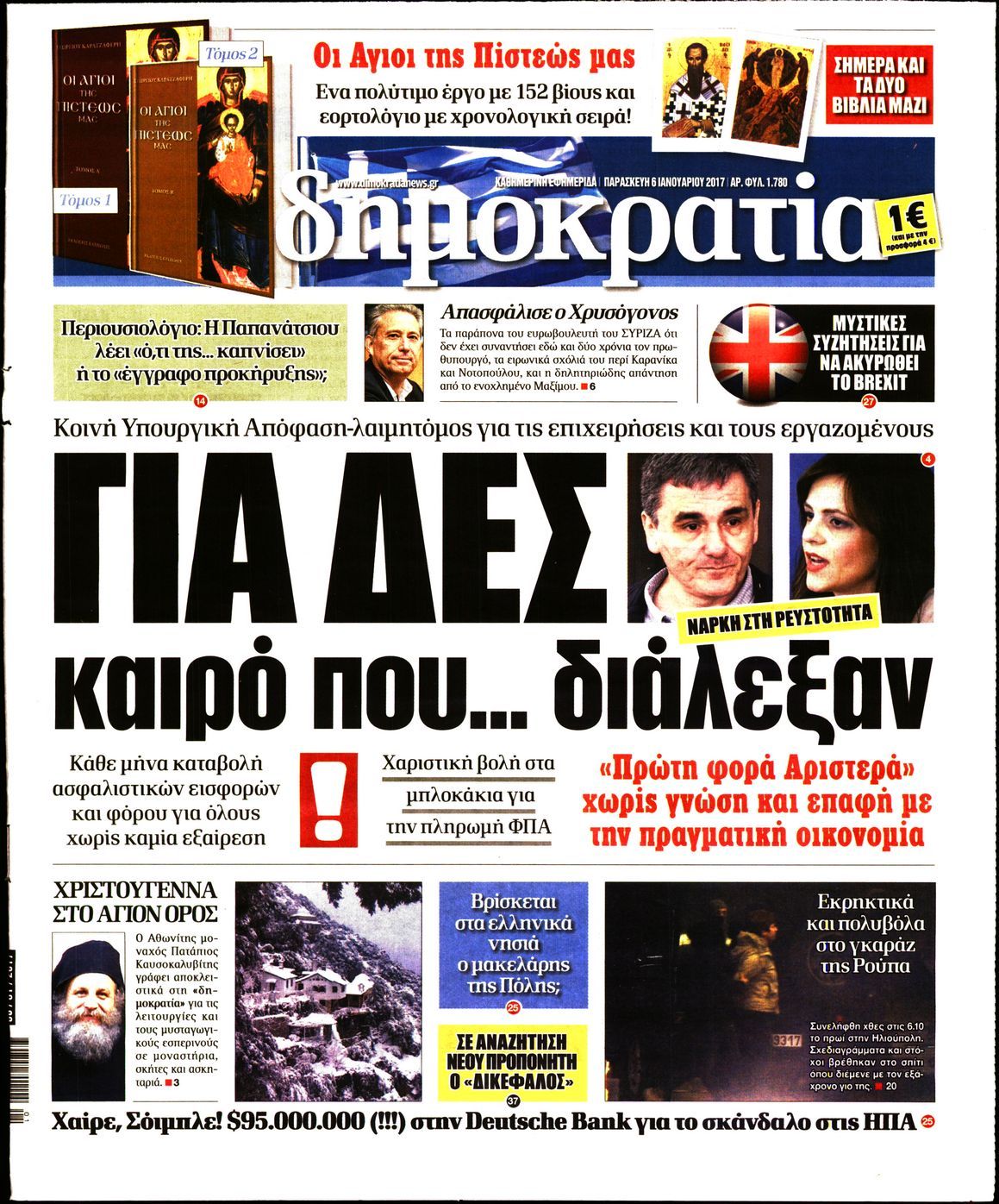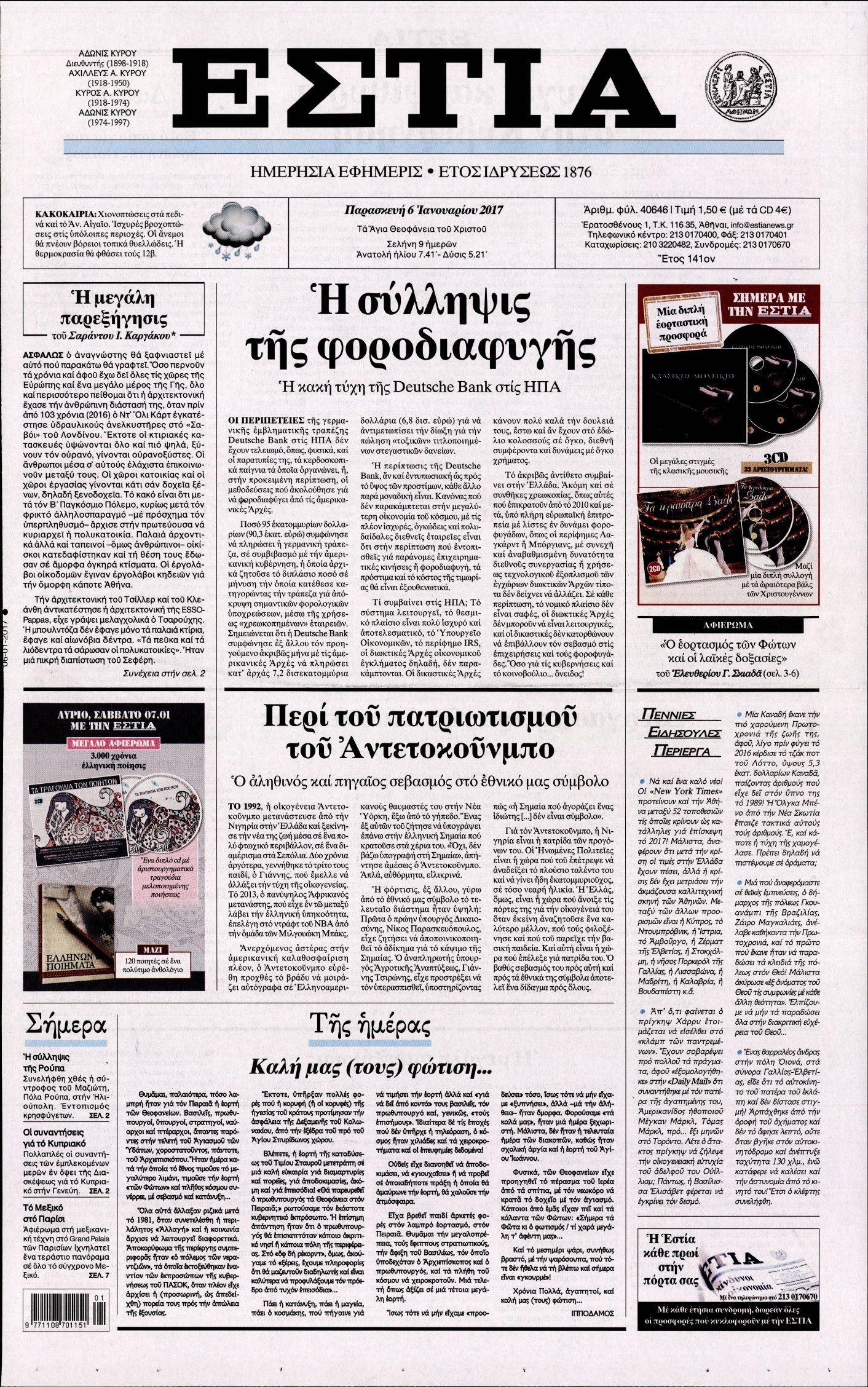 Οι πολιτικές εφημερίδες 6/1/2017 Enikos Newsroom 01:20, Παρασκευή 06 Ιανουαρίου 2017 Media Διαβάστε τα σημερινά πρωτοσέλιδα των πολιτικών εφημερίδων ΠΟΛΙΤΙΚΕΣ ΕΦΗΜΕΡΙΔΕΣ ΠΡΩΤΟΣΕΛΙΔΑ Μοιράσου το: σχολίασε κι εσύ (0 σχόλια) Ακολουθήστε το enikos.gr στο Google News και μάθετε πρώτοι όλες τις ειδήσεις Δείτε όλες τις τελευταίες ειδήσεις από την Ελλάδα και τον Κόσμο στο enikos.gr Ειδήσεις Ροή Ειδήσεων 8 ώρες πριν Χριστούγεννα στα μπλόκα: Επιμένουν στις κινητοποιήσεις τους οι αγρότες – Ανοίγουν τα διόδια το Σαββατοκύριακο 9 ώρες πριν Ουκρανία: Η άνευ προηγουμένου επίθεση σε ρωσικό τάνκερ στη Μεσόγειο και το μήνυμα προς στον Πούτιν – Το «μακρύ χέρι» του Κιέβου 8 ώρες πριν Πούτιν: Τα μηνύματα σε Ευρώπη και ΝΑΤΟ από το μαραθώνιο «σόου» του – Η απαίτηση για «σεβασμό» και η ειρήνη «με τους όρους» της Μόσχας 7 ώρες πριν ΗΠΑ: Η κυβέρνηση του Ντόναλντ Τραμπ άρχισε να δημοσιοποιεί τα αρχεία Έπσταϊν 7 ώρες πριν Άνω Λιόσια: Πυροβολισμοί σε επιχείρηση με χαλιά – Εντοπίστηκαν 10 κάλυκες 57 λεπτά πριν Αυγά: Πόσα μπορείτε να τρώτε την ημέρα με ασφάλεια για μέγιστη πρόσληψη πρωτεΐνης 1 ώρα πριν Τα ζώδια σήμερα, Σάββατο 20 Δεκεμβρίου: Παρθένοι, το σύμπαν σας δίνει το κλειδί 8 ώρες πριν Ανακαλύφθηκαν αρχαία χρυσά νομίσματα 2.200 ετών που απεικονίζουν τον θεό Απόλλωνα – Η άγνωστη σύνδεση με τον Φίλιππο Β΄ της Μακεδονίας 9 ώρες πριν Ύπνος: Μια κρυφή κατάσταση του εγκεφάλου πριν από τον ύπνο μπορεί να είναι το “κλειδί” για υψηλή ευφυΐα και δημιουργικότητα 3 λεπτά πριν Αναβολή συμφωνίας ΕΕ-Mercosur: Ο χρόνος «δεν είναι απεριόριστος» προειδοποιεί η Παραγουάη 18 λεπτά πριν Κίριλ Ντμίτριεφ: Στις ΗΠΑ ο απεσταλμένος της Ρωσίας για συνομιλίες με τους ομολόγους του, Γουίτκοφ και Κούσνερ 25 λεπτά πριν ΔΕΔΔΗΕ: Διακοπές ρεύματος σήμερα (20/12) στην Αθήνα και σε άλλες 7 περιοχές της Αττικής 34 λεπτά πριν Κολομβία: Είκοσι χρόνια κάθειρξη σε πρώην ανώτερο αξιωματικό για 72 εκτελέσεις αμάχων 41 λεπτά πριν Οπτική ψευδαίσθηση: Μόνο αν είσαι ο Σέρλοκ Χολμς θα βρεις τον αριθμό «87» σε 7 δευτερόλεπτα ENIKOS NETWORK Πρέπει να αποδέχεστε ή να απορρίπτετε όλα τα cookies; Ένας ειδικός εξηγεί Η αγαπημένη λιχουδιά των πόνι που μπορεί να ενισχύσει όραση, εγκέφαλο και ανοσοποιητικό Αναστολή μέτρων αναγκαστικής εκτέλεσης για κτηνοτρόφους που πλήττονται από την ευλογιά των αιγοπροβάτων Πλήρης επάρκεια προϊόντων στις λαϊκές της Αττικής, παρά τις αγροτικές κινητοποιήσεις – Τι απαντούν οι πωλητές Χαρτογραφώντας το «σημείο χωρίς επιστροφή»: Για πρώτη φορά αποκαλύπτεται με λεπτομέρεια το ακανθώδες όριο της ατμόσφαιρας τ... Η Google καταργεί τη λειτουργία «dark web report» – Πώς θα μπορούν οι χρήστες να διαγράφουν τα δεδομένα τους περισσότερα 05:48 , Σάββατο 20 Δεκεμβρίου 2025 Οι οικονομικές εφημερίδες 20/12/2025 Διαβάστε τα πρωτοσέλιδα από τις οικονομικές εφημερίδες, σήμερα 20/12/2025. 05:43 , Σάββατο 20 Δεκεμβρίου 2025 Οι αθλητικές εφημερίδες 20/12/2025 Διαβάστε τα πρωτοσέλιδα από τις αθλητικές εφημερίδες, σήμερα 20/12/2025. 05:38 , Σάββατο 20 Δεκεμβρίου 2025 Οι πολιτικές εφημερίδες 20/12/2025 Διαβάστε τα πρωτοσέλιδα από τις πολιτικές εφημερίδες, σήμερα 20/12/2025. 04:20 , Σάββατο 20 Δεκεμβρίου 2025 Αγγελική Νικολούλη: Τα συλλυπητήρια για την απώλεια της Ειρήνης Μαρινάκη Τα συλληπητήρια στον πρόεδρο του Mega, τον Βαγγέλη Μαρινάκη, για την απώλεια της μητέρας του Ε... ΤΕΛΕΥΤΑΙΕΣ ΕΙΔΗΣΕΙΣ 18 λεπτά πριν Κίριλ Ντμίτριεφ: Στις ΗΠΑ ο απεσταλμένος της Ρωσίας... 25 λεπτά πριν ΔΕΔΔΗΕ: Διακοπές ρεύματος σήμερα (20/12) στην Αθήν