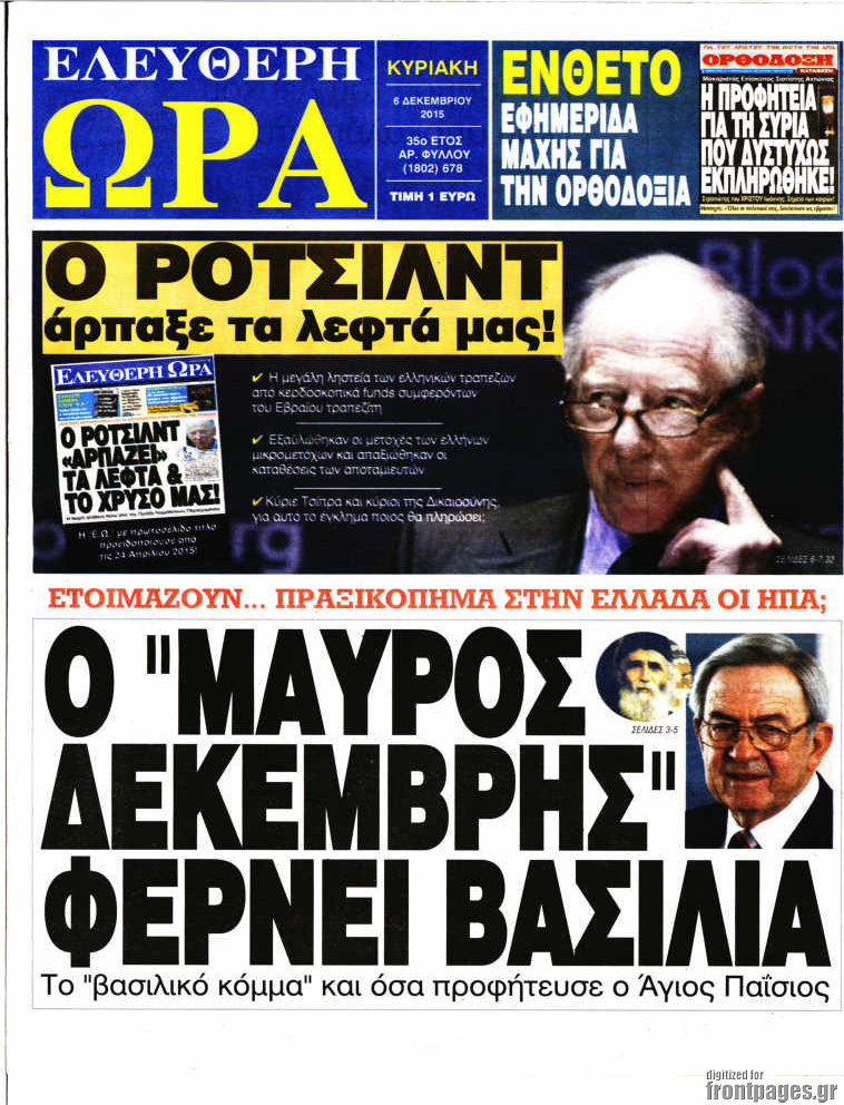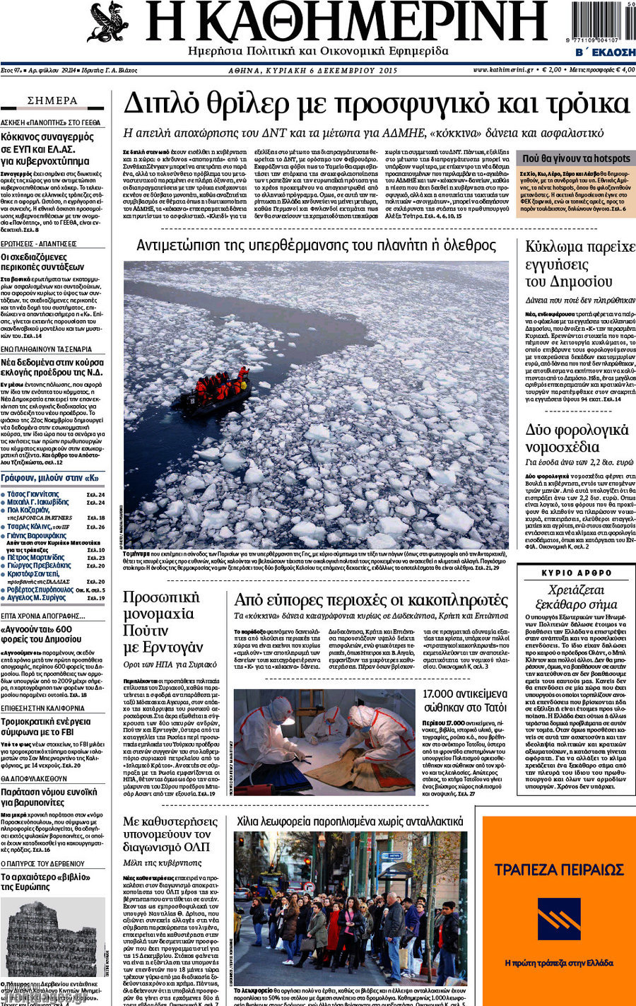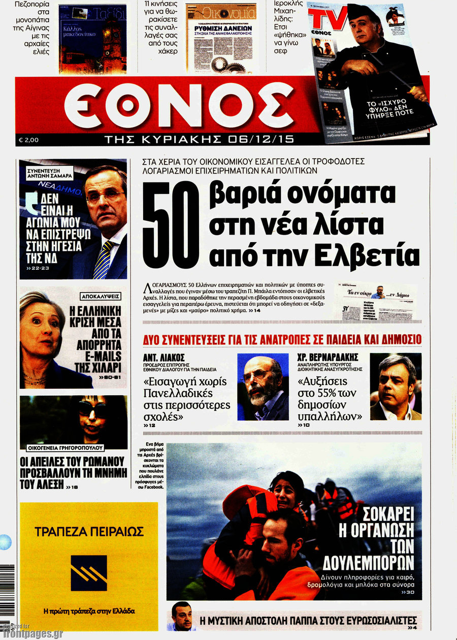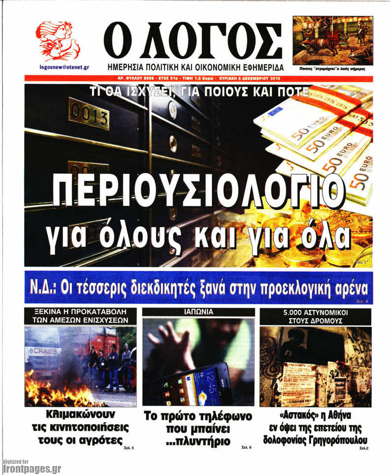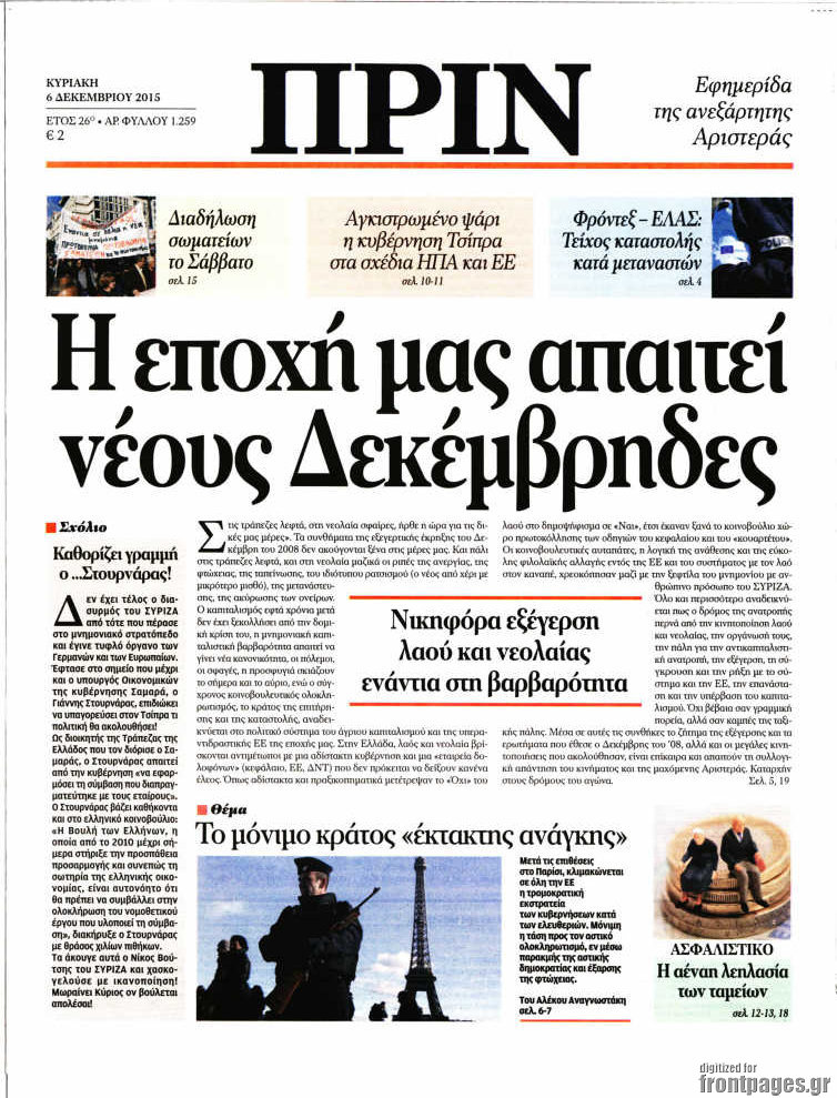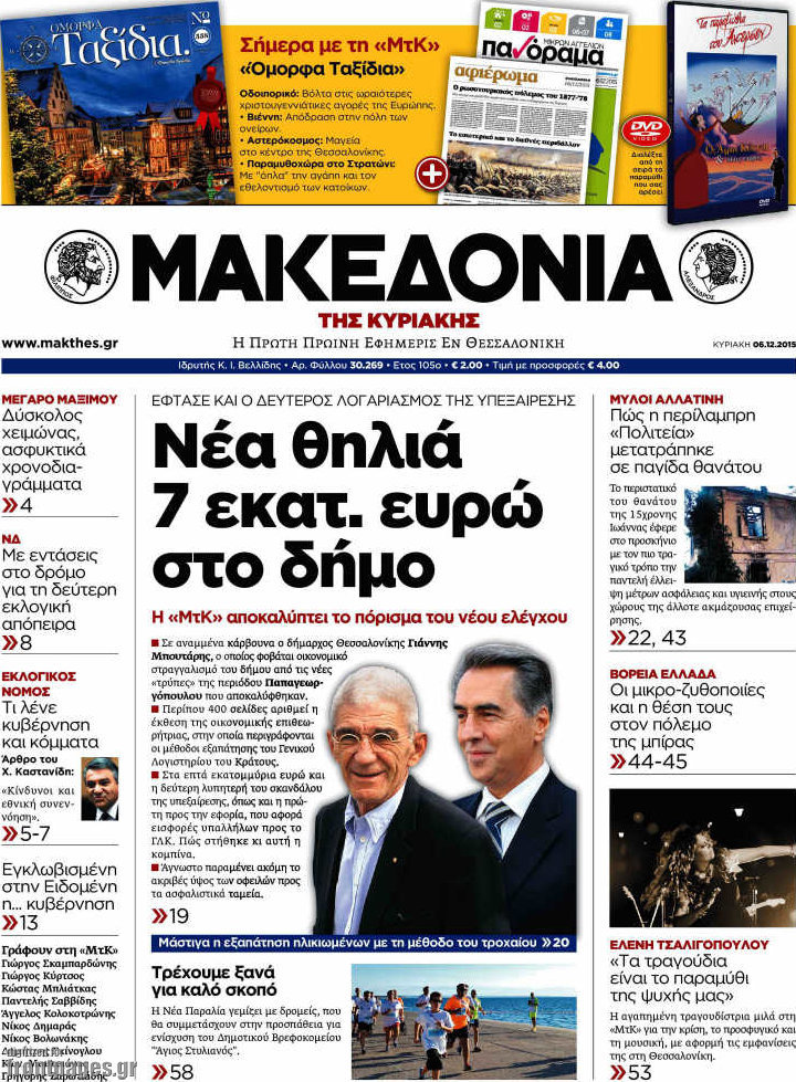 Οι πολιτικές εφημερίδες 6/12/2015 Enikos Newsroom 06:44, Κυριακή 06 Δεκεμβρίου 2015 Media Διαβάστε τα σημερινά πρωτοσέλιδα των πολιτικών εφημερίδων. ΕΦΗΜΕΡΙΔΕΣ ΠΟΛΙΤΙΚΕΣ ΕΦΗΜΕΡΙΔΕΣ Μοιράσου το: σχολίασε κι εσύ (0 σχόλια) Ακολουθήστε το enikos.gr στο Google News και μάθετε πρώτοι όλες τις ειδήσεις Δείτε όλες τις τελευταίες ειδήσεις από την Ελλάδα και τον Κόσμο στο enikos.gr Ειδήσεις Ροή Ειδήσεων 4 ώρες πριν Χριστούγεννα στα μπλόκα: Επιμένουν στις κινητοποιήσεις τους οι αγρότες – Ανοίγουν τα διόδια το Σαββατοκύριακο 4 ώρες πριν Ουκρανία: Η άνευ προηγουμένου επίθεση σε ρωσικό τάνκερ στη Μεσόγειο και το μήνυμα προς στον Πούτιν – Το «μακρύ χέρι» του Κιέβου 3 ώρες πριν Πούτιν: Τα μηνύματα σε Ευρώπη και ΝΑΤΟ από το μαραθώνιο «σόου» του – Η απαίτηση για «σεβασμό» και η ειρήνη «με τους όρους» της Μόσχας 4 ώρες πριν Τραμπ: Δεν αποκλείει την πιθανότητα ενός πολέμου στη Βενεζουέλα – «Ο Μαδούρο ξέρει καλύτερα από τον καθένα τι ακριβώς θέλω» 5 ώρες πριν Συνεχίζει να προκαλεί ο Μίτσκοσκι: «Για μένα το όνομα Μακεδονία είναι ιερό» 3 ώρες πριν Ανακαλύφθηκαν αρχαία χρυσά νομίσματα 2.200 ετών που απεικονίζουν τον θεό Απόλλωνα – Η άγνωστη σύνδεση με τον Φίλιππο Β΄ της Μακεδονίας 4 ώρες πριν Ύπνος: Μια κρυφή κατάσταση του εγκεφάλου πριν από τον ύπνο μπορεί να είναι το “κλειδί” για υψηλή ευφυΐα και δημιουργικότητα 5 ώρες πριν Αριθμολογία: Οι άνθρωποι που έχουν γεννηθεί αυτές τις 4 ημερομηνίες, συχνά παρεξηγούνται – «Η καλοσύνη τους κρύβει τεράστια δύναμη» 6 ώρες πριν Ξεχάστε το καθάρισμα το Σαββατοκύριακο: Ο «κανόνας των 20 λεπτών» που θα σας λύσει τα χέρια 2 λεπτά πριν Ντόναλντ Τραμπ: «Πολύ βαριά αντίποινα» στη Συρία – «Πλήττουμε πολύ δυνατά οχυρά του Ισλαμικού Κράτους» 16 λεπτά πριν Εξάρχεια: Ένταση με μολότοφ, χημικά και κρότου λάμψης 32 λεπτά πριν ΗΠΑ: Τραγωδία στην Αλαμπάμα – Σκότωσε την δημοσιογράφο σύζυγό του και αυτοκτόνησε μπροστά στον 3χρονο γιο τους 46 λεπτά πριν Πρόταση γάμου στο ΣΕΦ κατά την διάρκεια του αγώνα Ολυμπιακός-Βιλερμπάν – Δείτε βίντεο 1 ώρα πριν Euroleague: Επέστρεψε στις νίκες ο Ολυμπιακός, πήρε την ματσάρα της χρονιάς η Μπάρτσα – Τα αποτελέσματα και η βαθμολογία ENIKOS NETWORK Το ΕΚΑΒ τιμήθηκε από την Ακαδημία Αθηνών για τα 40 χρόνια προσφοράς του Έχετε πραγματικά μεγάλη καρδιά; 10 χαρακτηριστικά όσων έχουν καλοσύνη Αναστολή μέτρων αναγκαστικής εκτέλεσης για κτηνοτρόφους που πλήττονται από την ευλογιά των αιγοπροβάτων Πλήρης επάρκεια προϊόντων στις λαϊκές της Αττικής, παρά τις αγροτικές κινητοποιήσεις – Τι απαντούν οι πωλητές Χαρτογραφώντας το «σημείο χωρίς επιστροφή»: Για πρώτη φορά αποκαλύπτεται με λεπτομέρεια το ακανθώδες όριο της ατμόσφαιρας τ... Η Google καταργεί τη λειτουργία «dark web report» – Πώς θα μπορούν οι χρήστες να διαγράφουν τα δεδομένα τους περισσότερα 22:42 , Παρασκευή 19 Δεκεμβρίου 2025 Γιώργος Γιαννόπουλος για “Το σόι σου”: “Είναι ευτυχία και ευλογία αυτή η σειρά” «Είναι ευτυχία και ευλογία η συγκυρία αυτής της σειράς», θα πει ο Γιώργος Γιαννόπουλος -ο αγαπ... 20:37 , Παρασκευή 19 Δεκεμβρίου 2025 Don’t Forget The Lyrics: Η Έλλη Κοκκίνου υποδέχεται 4 παίκτες που θα κάνουν τα πάντα για να μη χάσουν ούτε… μισή λέξη από τους στίχους Το «Don’t Forget The Lyrics» επιστρέφει απόψε, Παρασκευή 19 Δεκεμβρίου, στις 21:00 με νέο επει... 19:31 , Παρασκευή 19 Δεκεμβρίου 2025 GNTM: Απόψε ο μεγάλος τελικός για τους 4 φιναλίστ Έπειτα από μήνες γεμάτους μόδα, δημιουργία και έντονες αναμετρήσεις, το GNTM 2025 κορυφώνεται,... 18:11 , Παρασ