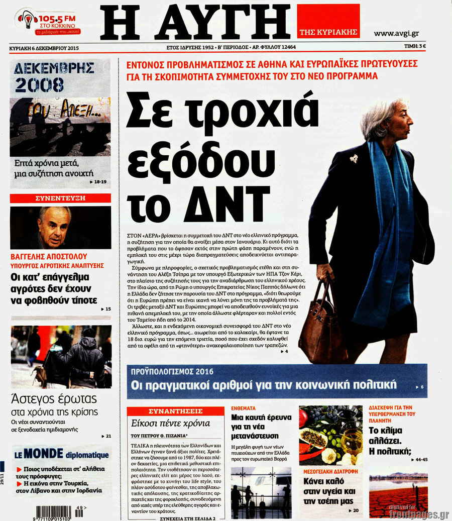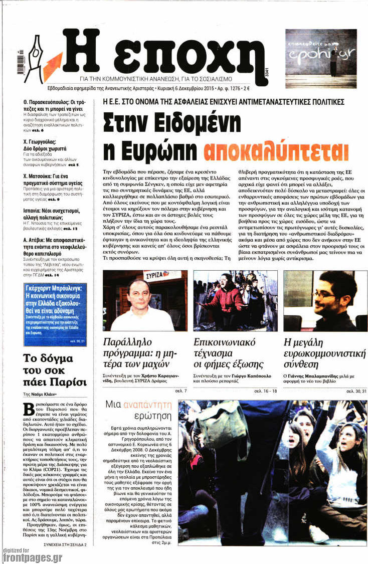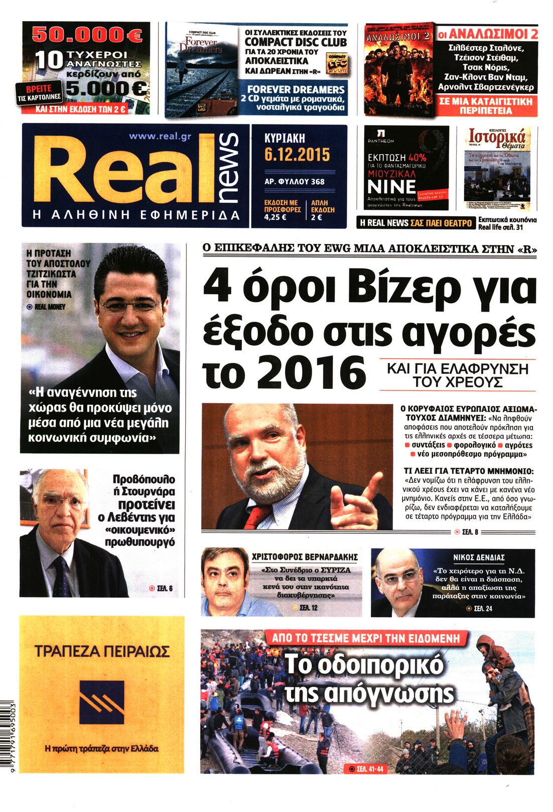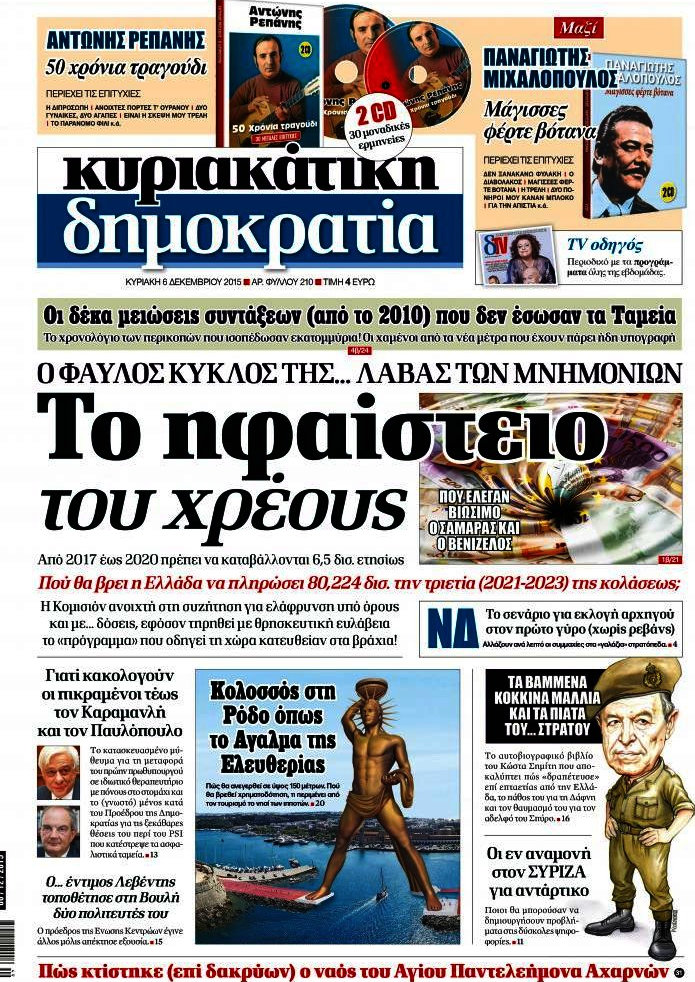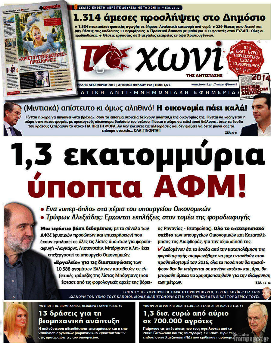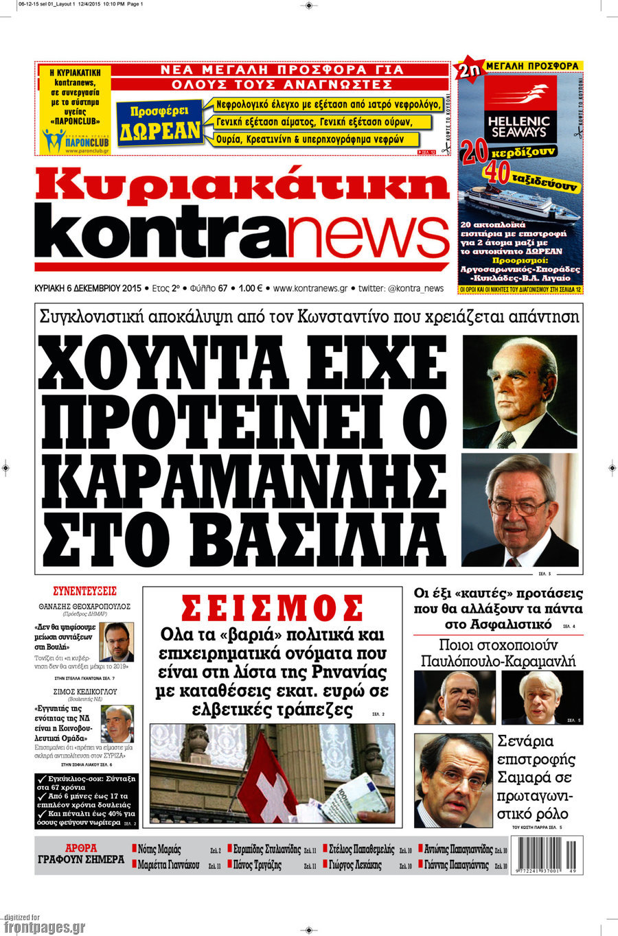 Οι πολιτικές εφημερίδες 6/12/2015 Enikos Newsroom 06:44, Κυριακή 06 Δεκεμβρίου 2015 Media Διαβάστε τα σημερινά πρωτοσέλιδα των πολιτικών εφημερίδων. ΕΦΗΜΕΡΙΔΕΣ ΠΟΛΙΤΙΚΕΣ ΕΦΗΜΕΡΙΔΕΣ Μοιράσου το: σχολίασε κι εσύ (0 σχόλια) Ακολουθήστε το enikos.gr στο Google News και μάθετε πρώτοι όλες τις ειδήσεις Δείτε όλες τις τελευταίες ειδήσεις από την Ελλάδα και τον Κόσμο στο enikos.gr Ειδήσεις Ροή Ειδήσεων 4 ώρες πριν Χριστούγεννα στα μπλόκα: Επιμένουν στις κινητοποιήσεις τους οι αγρότες – Ανοίγουν τα διόδια το Σαββατοκύριακο 4 ώρες πριν Ουκρανία: Η άνευ προηγουμένου επίθεση σε ρωσικό τάνκερ στη Μεσόγειο και το μήνυμα προς στον Πούτιν – Το «μακρύ χέρι» του Κιέβου 3 ώρες πριν Πούτιν: Τα μηνύματα σε Ευρώπη και ΝΑΤΟ από το μαραθώνιο «σόου» του – Η απαίτηση για «σεβασμό» και η ειρήνη «με τους όρους» της Μόσχας 4 ώρες πριν Τραμπ: Δεν αποκλείει την πιθανότητα ενός πολέμου στη Βενεζουέλα – «Ο Μαδούρο ξέρει καλύτερα από τον καθένα τι ακριβώς θέλω» 5 ώρες πριν Συνεχίζει να προκαλεί ο Μίτσκοσκι: «Για μένα το όνομα Μακεδονία είναι ιερό» 3 ώρες πριν Ανακαλύφθηκαν αρχαία χρυσά νομίσματα 2.200 ετών που απεικονίζουν τον θεό Απόλλωνα – Η άγνωστη σύνδεση με τον Φίλιππο Β΄ της Μακεδονίας 4 ώρες πριν Ύπνος: Μια κρυφή κατάσταση του εγκεφάλου πριν από τον ύπνο μπορεί να είναι το “κλειδί” για υψηλή ευφυΐα και δημιουργικότητα 5 ώρες πριν Αριθμολογία: Οι άνθρωποι που έχουν γεννηθεί αυτές τις 4 ημερομηνίες, συχνά παρεξηγούνται – «Η καλοσύνη τους κρύβει τεράστια δύναμη» 6 ώρες πριν Ξεχάστε το καθάρισμα το Σαββατοκύριακο: Ο «κανόνας των 20 λεπτών» που θα σας λύσει τα χέρια 2 λεπτά πριν Ντόναλντ Τραμπ: «Πολύ βαριά αντίποινα» στη Συρία – «Πλήττουμε πολύ δυνατά οχυρά του Ισλαμικού Κράτους» 16 λεπτά πριν Εξάρχεια: Ένταση με μολότοφ, χημικά και κρότου λάμψης 32 λεπτά πριν ΗΠΑ: Τραγωδία στην Αλαμπάμα – Σκότωσε την δημοσιογράφο σύζυγό του και αυτοκτόνησε μπροστά στον 3χρονο γιο τους 46 λεπτά πριν Πρόταση γάμου στο ΣΕΦ κατά την διάρκεια του αγώνα Ολυμπιακός-Βιλερμπάν – Δείτε βίντεο 1 ώρα πριν Euroleague: Επέστρεψε στις νίκες ο Ολυμπιακός, πήρε την ματσάρα της χρονιάς η Μπάρτσα – Τα αποτελέσματα και η βαθμολογία ENIKOS NETWORK Το ΕΚΑΒ τιμήθηκε από την Ακαδημία Αθηνών για τα 40 χρόνια προσφοράς του Έχετε πραγματικά μεγάλη καρδιά; 10 χαρακτηριστικά όσων έχουν καλοσύνη Αναστολή μέτρων αναγκαστικής εκτέλεσης για κτηνοτρόφους που πλήττονται από την ευλογιά των αιγοπροβάτων Πλήρης επάρκεια προϊόντων στις λαϊκές της Αττικής, παρά τις αγροτικές κινητοποιήσεις – Τι απαντούν οι πωλητές Χαρτογραφώντας το «σημείο χωρίς επιστροφή»: Για πρώτη φορά αποκαλύπτεται με λεπτομέρεια το ακανθώδες όριο της ατμόσφαιρας τ... Η Google καταργεί τη λειτουργία «dark web report» – Πώς θα μπορούν οι χρήστες να διαγράφουν τα δεδομένα τους περισσότερα 22:42 , Παρασκευή 19 Δεκεμβρίου 2025 Γιώργος Γιαννόπουλος για “Το σόι σου”: “Είναι ευτυχία και ευλογία αυτή η σειρά” «Είναι ευτυχία και ευλογία η συγκυρία αυτής της σειράς», θα πει ο Γιώργος Γιαννόπουλος -ο αγαπ... 20:37 , Παρασκευή 19 Δεκεμβρίου 2025 Don’t Forget The Lyrics: Η Έλλη Κοκκίνου υποδέχεται 4 παίκτες που θα κάνουν τα πάντα για να μη χάσουν ούτε… μισή λέξη από τους στίχους Το «Don’t Forget The Lyrics» επιστρέφει απόψε, Παρασκευή 19 Δεκεμβρίου, στις 21:00 με νέο επει... 19:31 , Παρασκευή 19 Δεκεμβρίου 2025 GNTM: Απόψε ο μεγάλος τελικός για τους 4 φιναλίστ Έπειτα από μήνες γεμάτους μόδα, δημιουργία και έντονες αναμετρήσεις, το GNTM 2025 κορυφώνεται,... 18:11 , Παρασ