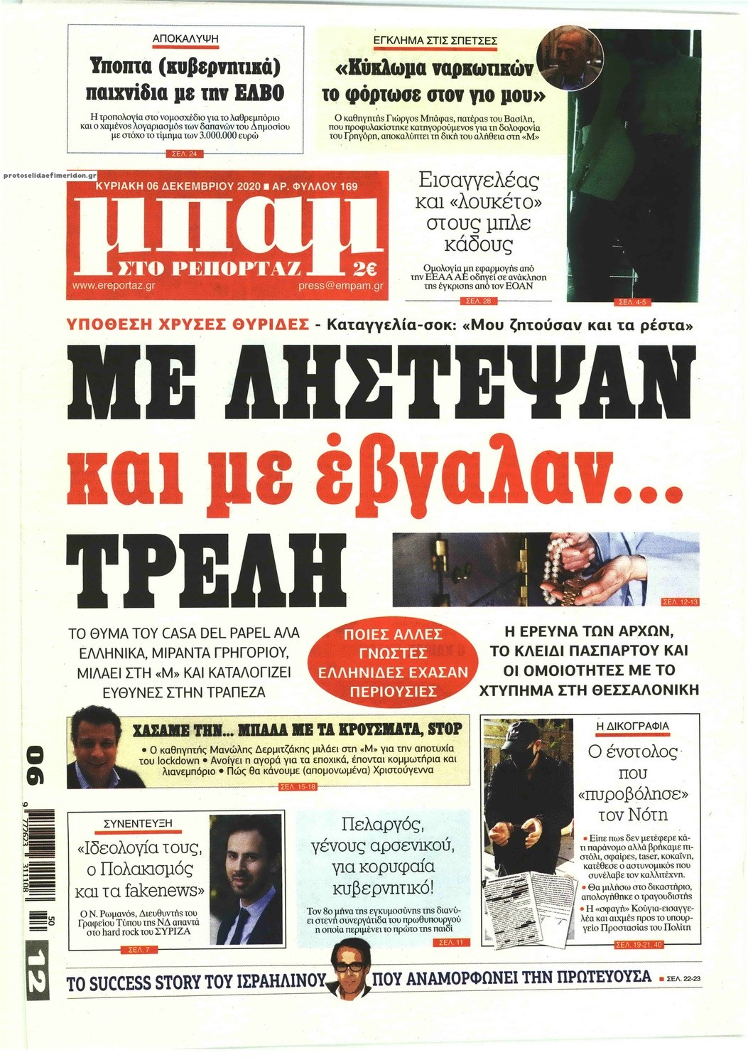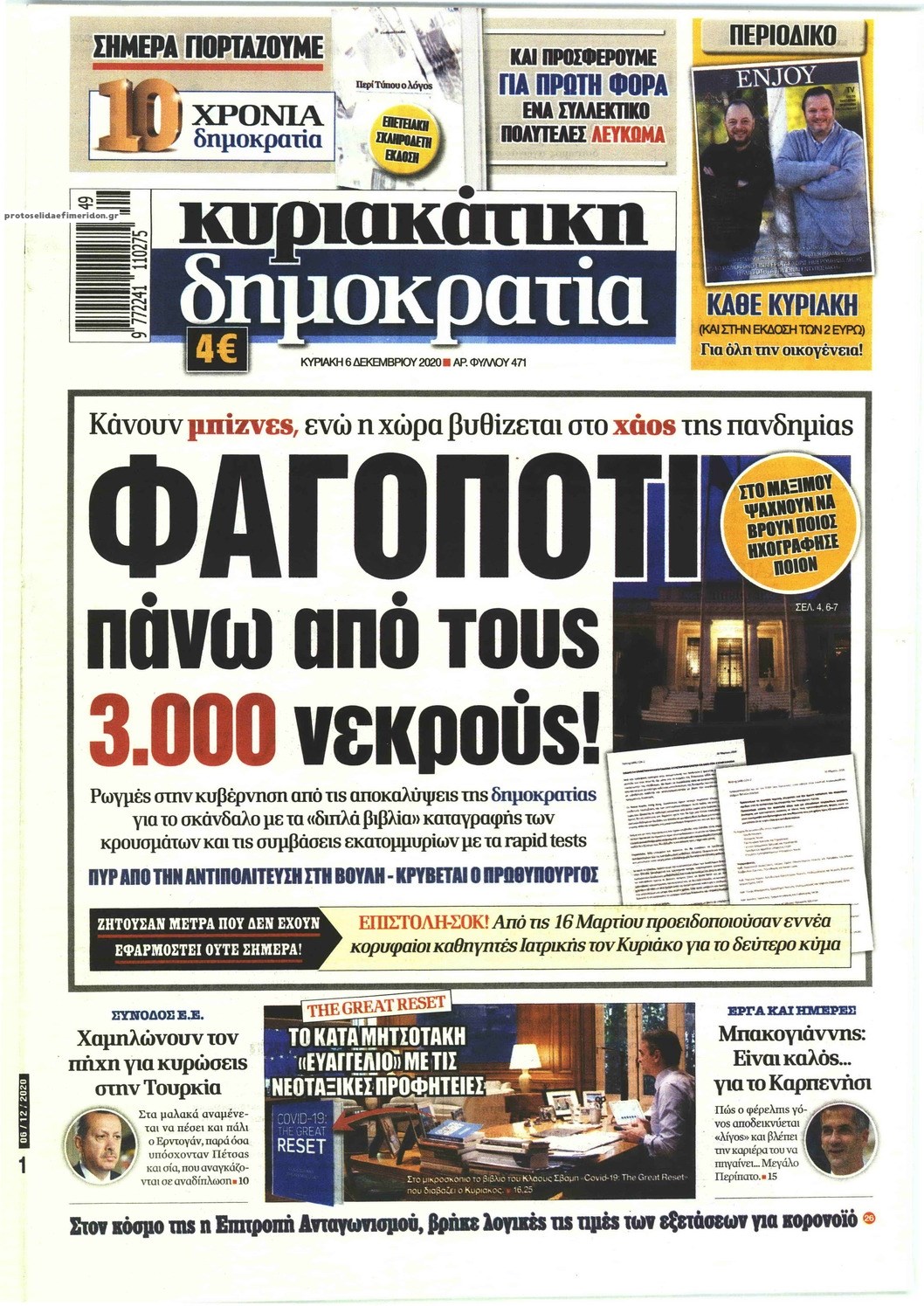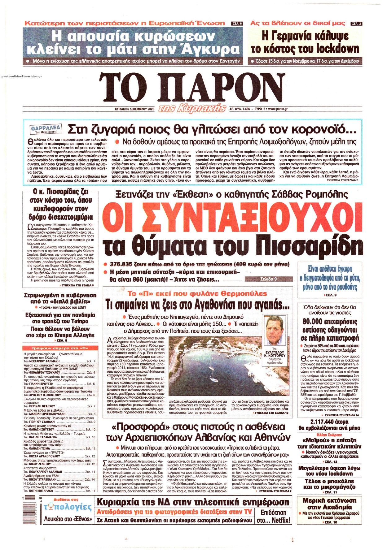Οι πολιτικές εφημερίδες 6/12/2020 Σήφης Γαρυφαλάκης 07:17, Κυριακή 06 Δεκεμβρίου 2020 Media Διαβάστε τα πρωτοσέλιδα των πολιτικών εφημερίδων… ΕΦΗΜΕΡΙΔΕΣ ΠΟΛΙΤΙΚΕΣ ΕΦΗΜΕΡΙΔΕΣ ΠΡΩΤΟΣΕΛΙΔΑ ΠΡΩΤΟΣΕΛΙΔΑ ΕΦΗΜΕΡΙΔΩΝ Μοιράσου το: σχολίασε κι εσύ (0 σχόλια) Ακολουθήστε το enikos.gr στο Google News και μάθετε πρώτοι όλες τις ειδήσεις Δείτε όλες τις τελευταίες ειδήσεις από την Ελλάδα και τον Κόσμο στο enikos.gr Ειδήσεις Ροή Ειδήσεων 5 ώρες πριν Χριστούγεννα στα μπλόκα: Επιμένουν στις κινητοποιήσεις τους οι αγρότες – Ανοίγουν τα διόδια το Σαββατοκύριακο 6 ώρες πριν Ουκρανία: Η άνευ προηγουμένου επίθεση σε ρωσικό τάνκερ στη Μεσόγειο και το μήνυμα προς στον Πούτιν – Το «μακρύ χέρι» του Κιέβου 5 ώρες πριν Πούτιν: Τα μηνύματα σε Ευρώπη και ΝΑΤΟ από το μαραθώνιο «σόου» του – Η απαίτηση για «σεβασμό» και η ειρήνη «με τους όρους» της Μόσχας 6 ώρες πριν Τραμπ: Δεν αποκλείει την πιθανότητα ενός πολέμου στη Βενεζουέλα – «Ο Μαδούρο ξέρει καλύτερα από τον καθένα τι ακριβώς θέλω» 6 ώρες πριν Συνεχίζει να προκαλεί ο Μίτσκοσκι: «Για μένα το όνομα Μακεδονία είναι ιερό» 5 ώρες πριν Ανακαλύφθηκαν αρχαία χρυσά νομίσματα 2.200 ετών που απεικονίζουν τον θεό Απόλλωνα – Η άγνωστη σύνδεση με τον Φίλιππο Β΄ της Μακεδονίας 6 ώρες πριν Ύπνος: Μια κρυφή κατάσταση του εγκεφάλου πριν από τον ύπνο μπορεί να είναι το “κλειδί” για υψηλή ευφυΐα και δημιουργικότητα 7 ώρες πριν Αριθμολογία: Οι άνθρωποι που έχουν γεννηθεί αυτές τις 4 ημερομηνίες, συχνά παρεξηγούνται – «Η καλοσύνη τους κρύβει τεράστια δύναμη» 8 ώρες πριν Ξεχάστε το καθάρισμα το Σαββατοκύριακο: Ο «κανόνας των 20 λεπτών» που θα σας λύσει τα χέρια 12 λεπτά πριν Ντόναλντ Τραμπ: Προστέθηκε το όνομά του στην πρόσοψη του Κέντρου Κένεντι – Οργισμένη αντίδραση των συγγενών του JFK 27 λεπτά πριν Ταμίλα Κουλίεβα: «Δεν θέλω να είμαι κάποια που πορεύεται συνεχώς με τις ίδιες αναφορές» 42 λεπτά πριν Η Ελλάδα προσχωρεί στη Διεθνή Επιτροπή Αποζημιώσεων για την Ουκρανία 57 λεπτά πριν GNTM: Η Ξένια Τσίρκοβα αναδείχθηκε μεγάλη νικήτρια και πήρε τις 50.000 ευρώ – Ποιος βρέθηκε σε απόσταση αναπνοής; 1 ώρα πριν Θεσσαλονίκη: Εξαφανίστηκε 13χρονος από χώρο φιλοξενίας ασυνόδευτων ανηλίκων στο Ωραιόκαστρο ENIKOS NETWORK Το ΕΚΑΒ τιμήθηκε από την Ακαδημία Αθηνών για τα 40 χρόνια προσφοράς του Έχετε πραγματικά μεγάλη καρδιά; 10 χαρακτηριστικά όσων έχουν καλοσύνη Αναστολή μέτρων αναγκαστικής εκτέλεσης για κτηνοτρόφους που πλήττονται από την ευλογιά των αιγοπροβάτων Πλήρης επάρκεια προϊόντων στις λαϊκές της Αττικής, παρά τις αγροτικές κινητοποιήσεις – Τι απαντούν οι πωλητές Χαρτογραφώντας το «σημείο χωρίς επιστροφή»: Για πρώτη φορά αποκαλύπτεται με λεπτομέρεια το ακανθώδες όριο της ατμόσφαιρας τ... Η Google καταργεί τη λειτουργία «dark web report» – Πώς θα μπορούν οι χρήστες να διαγράφουν τα δεδομένα τους περισσότερα 02:50 , Σάββατο 20 Δεκεμβρίου 2025 GNTM: Η Ξένια Τσίρκοβα αναδείχθηκε μεγάλη νικήτρια και πήρε τις 50.000 ευρώ – Ποιος βρέθηκε σε απόσταση αναπνοής; Με φαντασμαγορικό τρόπο ολοκληρώθηκε το βράδυ της Παρασκευής ο μεγάλος τελικός του GNTM, μέσα ... 22:42 , Παρασκευή 19 Δεκεμβρίου 2025 Γιώργος Γιαννόπουλος για “Το σόι σου”: “Είναι ευτυχία και ευλογία αυτή η σειρά” «Είναι ευτυχία και ευλογία η συγκυρία αυτής της σειράς», θα πει ο Γιώργος Γιαννόπουλος -ο αγαπ... 20:37 , Παρασκευή 19 Δεκεμβρίου 2025 Don’t Forget The Lyrics: Η Έλλη Κοκκίνου υποδέχεται 4 παίκτες που θα κάνουν τα πάντα για να μη χάσουν ούτε… μισή λέξη από τ