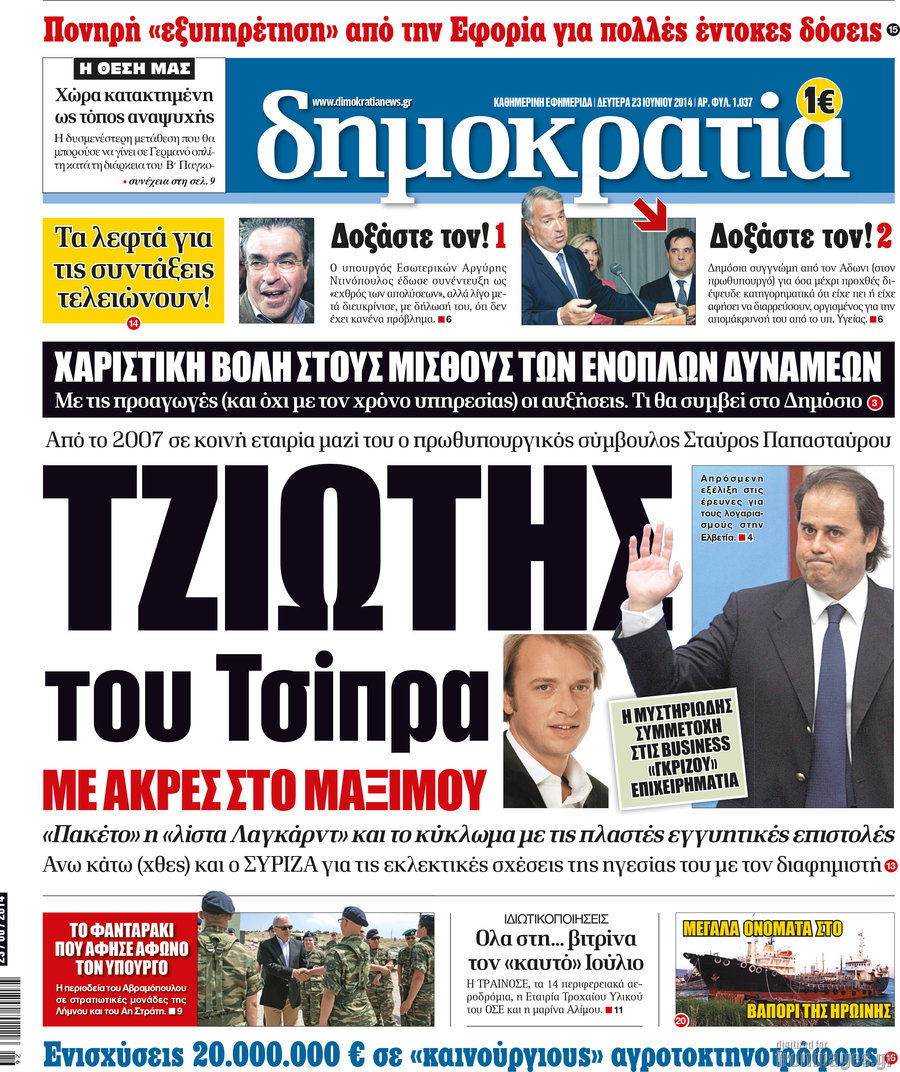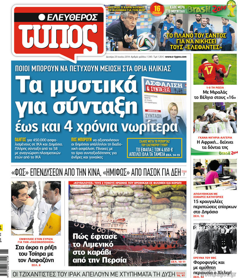Οι πολιτικές εφημερίδες Enikos Newsroom 07:50, Δευτέρα 23 Ιουνίου 2014 Media Οι πολιτικές εφημερίδες Διαβάστε τα πρωτοσέλιδα των πολιτικών εφημερίδων: ΕΦΗΜΕΡΙΔΕΣ ΠΟΛΙΤΙΚΕΣ ΕΦΗΜΕΡΙΔΕΣ ΠΡΩΤΟΣΕΛΙΔΑ Μοιράσου το: σχολίασε κι εσύ (0 σχόλια) Ακολουθήστε το enikos.gr στο Google News και μάθετε πρώτοι όλες τις ειδήσεις Δείτε όλες τις τελευταίες ειδήσεις από την Ελλάδα και τον Κόσμο στο enikos.gr Ειδήσεις Ροή Ειδήσεων 2 ώρες πριν Γιορτές με μπλόκα για τους αγρότες: Ανοίγουν διόδια και μοιράζουν προϊόντα στους ταξιδιώτες 2 ώρες πριν Τα αρχεία του Έπσταϊν αποκαλύπτουν φωτογραφία του έκπτωτου πρίγκιπα Άντριου – Είναι ξαπλωμένος στην αγκαλιά 5 γυναικών 1 ώρα πριν Νέες ταυτότητες: Μεγάλη αναμονή για ραντεβού στην Αττική – Τέλος τα ταξίδια εκτός Ελλάδος από τον Αύγουστο για όσους δεν έχουν αλλάξει 2 ώρες πριν Εξαφάνιση 33χρονου γιατρού στην Κρήτη: «Άναψα τα φώτα, τρόμαξε και άρχισε να τρέχει στα χωράφια» – Η τελευταία διαδρομή και η μαρτυρία «κλειδί» 29 λεπτά πριν Ινδία: Επτά ελέφαντες σκοτώθηκαν κατά τη σύγκρουση επιβατικού τρένου με κοπάδι 2 ώρες πριν Μία νέα «χρυσή» περίοδος αρχίζει για 3 ζώδια από σήμερα – «Μία αναπάντεχη ευκαιρία οδηγεί στην επιτυχία» 4 ώρες πριν Αρχαιολόγοι ανακάλυψαν σε χωράφι απεικόνιση 600 ετών ενός Αγίου – Τα στοιχεία που δείχνουν ότι μαρτύρησε 3 ώρες πριν Αγχώνεται για το χριστουγεννιάτικο δώρο που πήρε στην πλούσια σύντροφό του – «Φοβάμαι πως θα το βρει φθηνιάρικο, φοράει βραχιόλια Cartier» 27 λεπτά πριν Διαιτολόγος αποκαλύπτει 9 πρωινές συνήθειες που «λιώνουν» το κοιλιακό λίπος – «Υποστηρίζουν την υγιεινή απώλεια βάρους» 6 λεπτά πριν Χρήστος Μάντακας: «Θα μπορούσα να είχα φύγει από τη ζωή, δεν μπορούσα να περπατήσω…» 13 λεπτά πριν Εντυπωσιακό βίντεο από «τσουνάμι» πάγου στη Σιβηρία – Πώς προκαλείται το σπάνιο φαινόμενο 22 λεπτά πριν Μυλωνάκης κατά Τζάκρη: Την καλώ να ανασκευάσει το αδιανόητο ψέμα της. Η ανοχή έχει και τα όρια της» 27 λεπτά πριν Διαιτολόγος αποκαλύπτει 9 πρωινές συνήθειες που «λιώνουν» το κοιλιακό λίπος – «Υποστηρίζουν την υγιεινή απώλεια βάρους» 29 λεπτά πριν Ινδία: Επτά ελέφαντες σκοτώθηκαν κατά τη σύγκρουση επιβατικού τρένου με κοπάδι ENIKOS NETWORK Είστε μόνιμα απρόσεκτοι; 3 σημάδια που δείχνουν ότι μπορεί να είναι σύμπτωμα πάθησης Πόσα κιλά παίρνουμε πραγματικά τα Χριστούγεννα, σύμφωνα με την επιστήμη – Πώς να το αποτρέψουμε; Χριστούγεννα και Πρωτοχρονιά: Πώς αμείβονται όσοι εργαστούν e-ΕΦΚΑ και ΔΥΠΑ: Έρχονται νέες πληρωμές έως τις 24 Δεκεμβρίου – Ποιοι πάνε ταμείο Χαρτογραφώντας το «σημείο χωρίς επιστροφή»: Για πρώτη φορά αποκαλύπτεται με λεπτομέρεια το ακανθώδες όριο της ατμόσφαιρας τ... Η Google καταργεί τη λειτουργία «dark web report» – Πώς θα μπορούν οι χρήστες να διαγράφουν τα δεδομένα τους περισσότερα 11:41 , Σάββατο 20 Δεκεμβρίου 2025 «Η αγάπη δεν χάνεται ποτέ»: Η μικρού μήκους ταινία κινουμένων σχεδίων που θέτει ερωτήματα για τη ζωή και τον θάνατο Ο θάνατος είναι ένα από τα πιο σκληρά θέματα που καλείται να διαχειριστεί κάποιος στη διάρκεια... 09:30 , Σάββατο 20 Δεκεμβρίου 2025 «Porto Leone: Στη γειτονιά με τα κόκκινα φανάρια» – Ο Χρόνης αποκαλύπτει στην Αλεξάνδρα το μυστικό για το παιδί της Λένας Η μεγάλη δραματική σειρά του Apha «Porto Leone: Στη γειτονιά με τα κόκκινα φανάρια» μας μεταφέ... 08:14 , Σάββατο 20 Δεκεμβρίου 2025 Τρομεροί γονείς: Η Μαρία Καβογιάννη εισβάλλει στο σπίτι της οικογένειας Στεφανίδη Όσα θα δούμε στο νέο διπλό επεισόδιο της σειράς «Τρομεροί γ