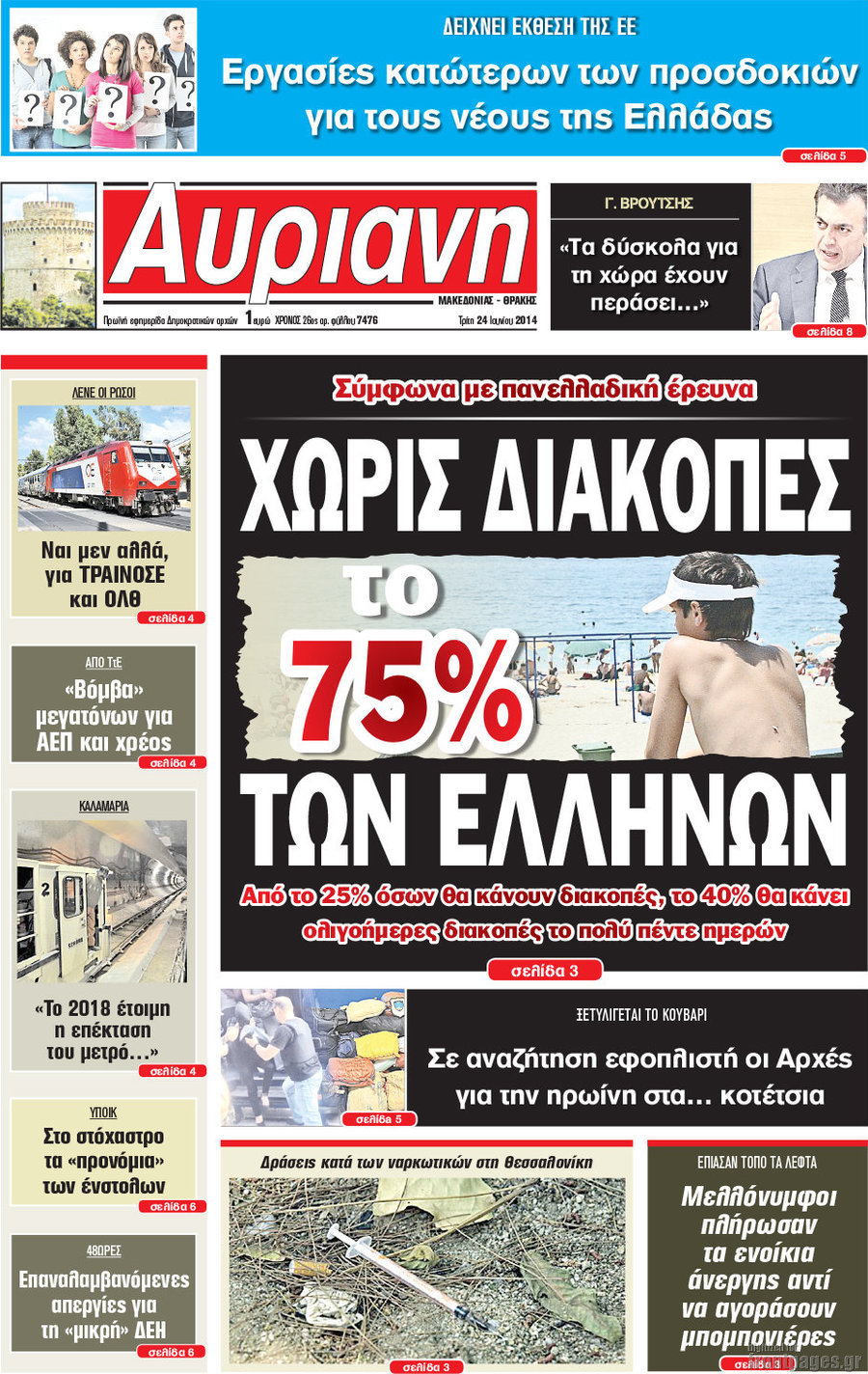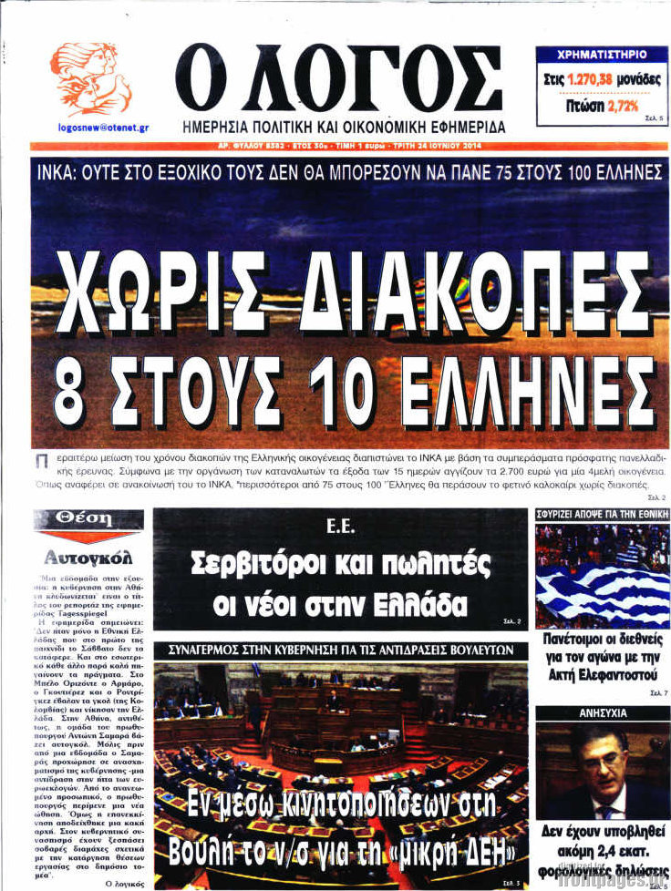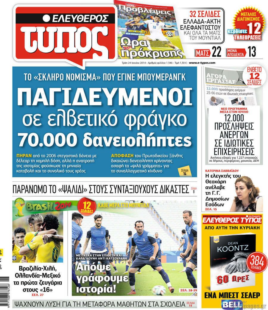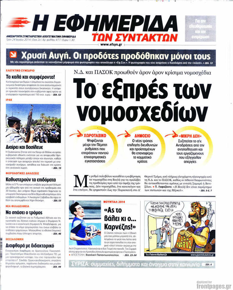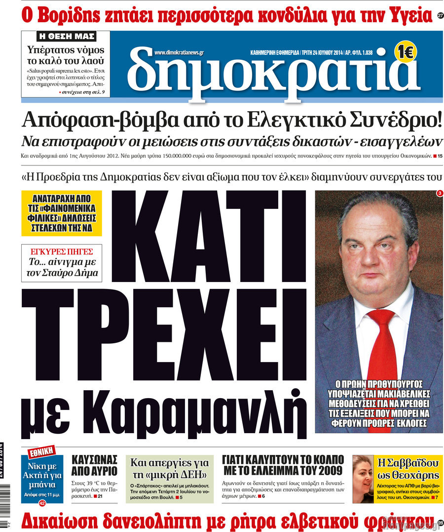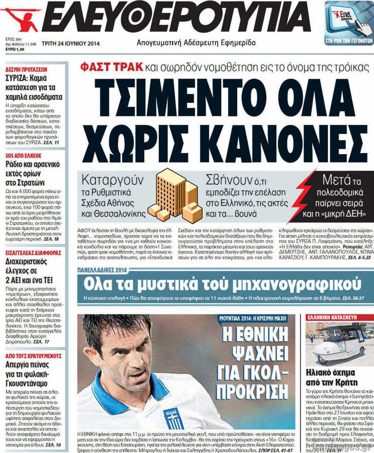 Οι πολιτικές εφημερίδες Enikos Newsroom 07:58, Τρίτη 24 Ιουνίου 2014 Media Οι πολιτικές εφημερίδες Διαβάστε τα πρωτοσέλιδα των πολιτικών εφημερίδων: ΕΦΗΜΕΡΙΔΕΣ ΠΟΛΙΤΙΚΕΣ ΕΦΗΜΕΡΙΔΕΣ ΠΡΩΤΟΣΕΛΙΔΑ Μοιράσου το: σχολίασε κι εσύ (0 σχόλια) Ακολουθήστε το enikos.gr στο Google News και μάθετε πρώτοι όλες τις ειδήσεις Δείτε όλες τις τελευταίες ειδήσεις από την Ελλάδα και τον Κόσμο στο enikos.gr Ειδήσεις Ροή Ειδήσεων 2 ώρες πριν Μπλόκα: Οι αγρότες σηκώνουν τις μπάρες σε διόδια για τους εκδρομείς των Χριστουγέννων και μοιράζουν προϊόντα – Βίντεο 3 ώρες πριν Τσιάρας προς αγρότες: Τα μπλόκα και τα πείσματα δεν ωφελούν – Οι λύσεις περνούν μέσα από τον διάλογο 4 ώρες πριν Αρχεία Έπσταϊν: Οι συγκλονιστικές φωτογραφίες – Ο Μάικλ Τζάκσον, ο Μικ Τζάγκερ και ο Κέβιν Σπέισι ανάμεσα στους διάσημους που απεικονίζονται 2 ώρες πριν Μαθητές διακινούσαν κοκαΐνη και χασίς σε σχολείο της Αττικής – 12 συλλήψεις 2 ώρες πριν Βέλγιο: Άγνωστοι έριξαν κόκκινη μπογιά στο προξενείο της Πολωνίας στις Βρυξέλλες 6 ώρες πριν Μία νέα «χρυσή» περίοδος αρχίζει για 3 ζώδια από σήμερα – «Μία αναπάντεχη ευκαιρία οδηγεί στην επιτυχία» 4 ώρες πριν Διαιτολόγος αποκαλύπτει 9 πρωινές συνήθειες που «λιώνουν» το κοιλιακό λίπος – «Υποστηρίζουν την υγιεινή απώλεια βάρους» 5 ώρες πριν Οι 7 φράσεις που δεν λένε ποτέ οι συναισθηματικά έξυπνοι άνθρωποι κατά τη διάρκεια ενός καβγά 7 ώρες πριν Enerwave: Το νέο «ρεύμα» στη λιανική ενέργειας που αλλάζει την εμπειρία του καταναλωτή 9 λεπτά πριν Η τύχη χαμογελά σε 3 ζώδια έως τις 28 Δεκεμβρίου – «Προσέξτε τις επιλογές σας και η επιμονή σας θα ανταμειφθεί» 13 λεπτά πριν Στο νοσοκομείο ο Λευτέρης Πανταζής – Τι συνέβη 23 λεπτά πριν Super League: Με Κηφισιά ο Ολυμπιακός για να «κλείσει» το 2025 στην κορυφή – Αναλυτικά το πρόγραμμα της 15ης αγωνιστικής 28 λεπτά πριν ΕΛΑΣ: Συνελήφθησαν Υπαρχιπυροσβέστης και δύο ακόμη άτομα για κατοχή και διακίνηση ναρκωτικών ουσιών – Η καταγγελία και ο τιμοκατάλογος 36 λεπτά πριν Πακιστάν: Σε κάθειρξη 17 ετών καταδικάστηκαν ο πρώην πρωθυπουργός Ίμραν Χαν και η σύζυγός του ENIKOS NETWORK Η αποχή από την αναπαραγωγή παρατείνει τη ζωή στα ζώα, σύμφωνα με μελέτη – Τι ισχύει για τους ανθρώπους; Σημαντικές επαφές στις ΗΠΑ είχε ο υπουργός Υγείας Άδωνις Γεωργιάδης Επιτροπή Ανταγωνισμού: Στο μικροσκόπιο σχολικές τσάντες και επώνυμα brands – Τι ερευνάται Ευλογιά αιγοπροβάτων: Παρατεταμένη επιζωοτία, αυστηρά μέτρα – Τι ισχύει για τον εμβολιασμό και την ανασύσταση του ζωικού κε... Χαρτογραφώντας το «σημείο χωρίς επιστροφή»: Για πρώτη φορά αποκαλύπτεται με λεπτομέρεια το ακανθώδες όριο της ατμόσφαιρας τ... Η Google καταργεί τη λειτουργία «dark web report» – Πώς θα μπορούν οι χρήστες να διαγράφουν τα δεδομένα τους περισσότερα 14:04 , Σάββατο 20 Δεκεμβρίου 2025 Η Realnews αυτής της Κυριακής (21/12/2025) Με τίτλο: «Ασπίδα προστασίας για την Ελλάδα» κυκλοφορεί, αυτήν την Κυριακή, η Realnews. Σημαντ... 12:53 , Σάββατο 20 Δεκεμβρίου 2025 Να μ’ αγαπάς: Το παρελθόν έρχεται στο φως – Καταιγιστικές εξελίξεις στα τελευταία επεισόδια του 2025 Ο Άγγελος αποκαλύπτεται, η Φωτεινή ανησυχεί για τον Λευτέρη και η Ζωή έρχεται αντιμέτωπη με το... 11:41 , Σάββατο 20 Δεκεμβρίου 2025 «Η αγάπη δεν χάνεται ποτέ»: Η μικρού μήκους ταινία κινουμένων σχεδίων που θέτει ερωτήματα για τη ζωή και τον θάνατο Ο θάνατος είναι ένα από τα πιο σκληρά θέματα που καλείται να διαχειριστεί κάποιος στη διάρκεια... 09:30 , Σάββατο 20 Δεκεμβρίου 2025 «Porto Leone: Στη γειτονιά με τα κόκκι