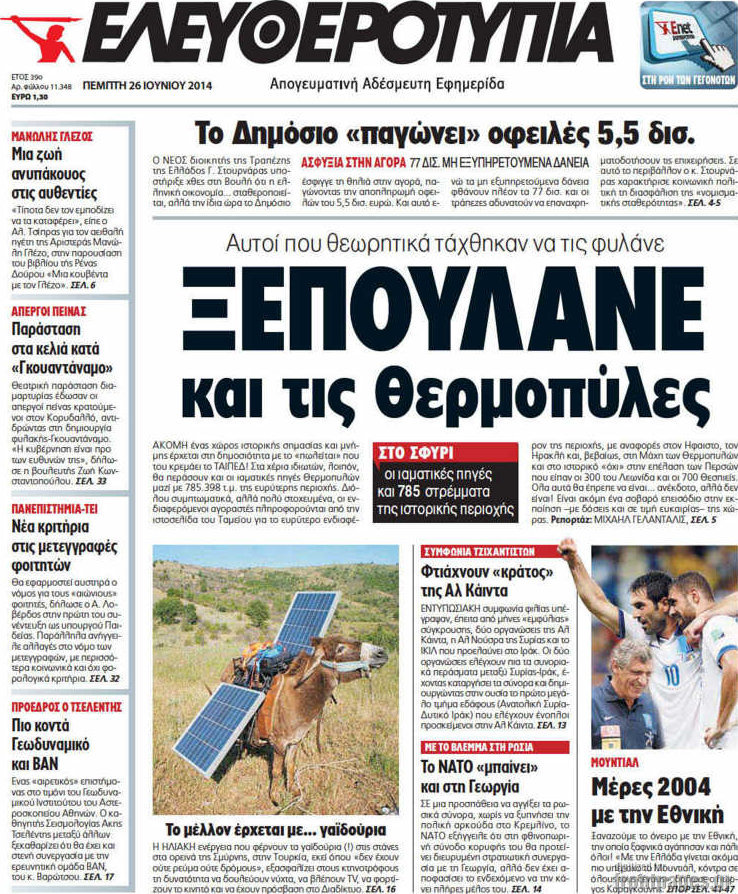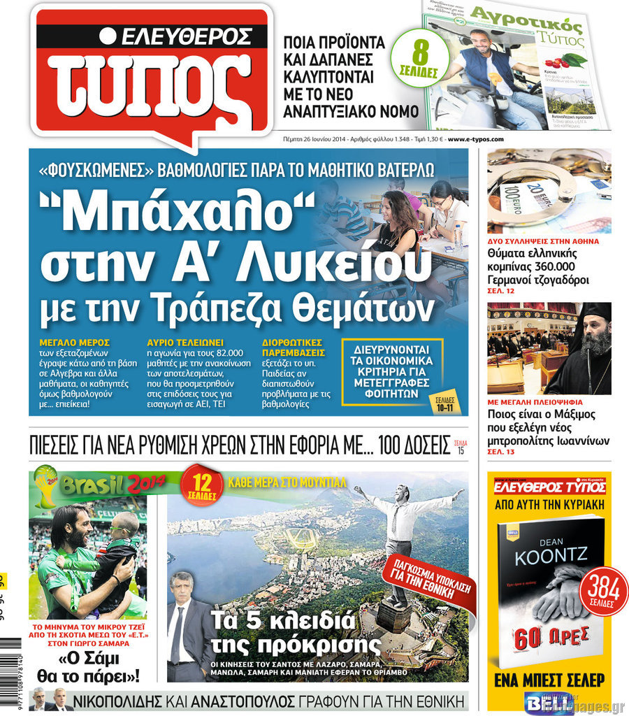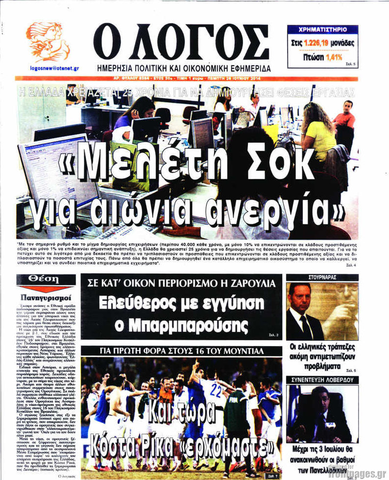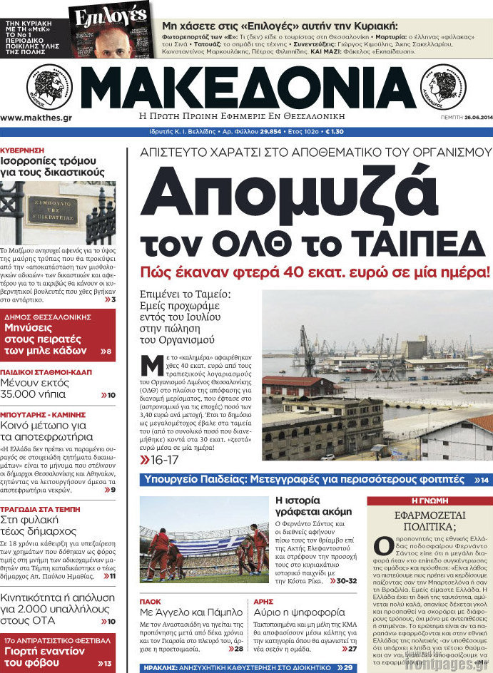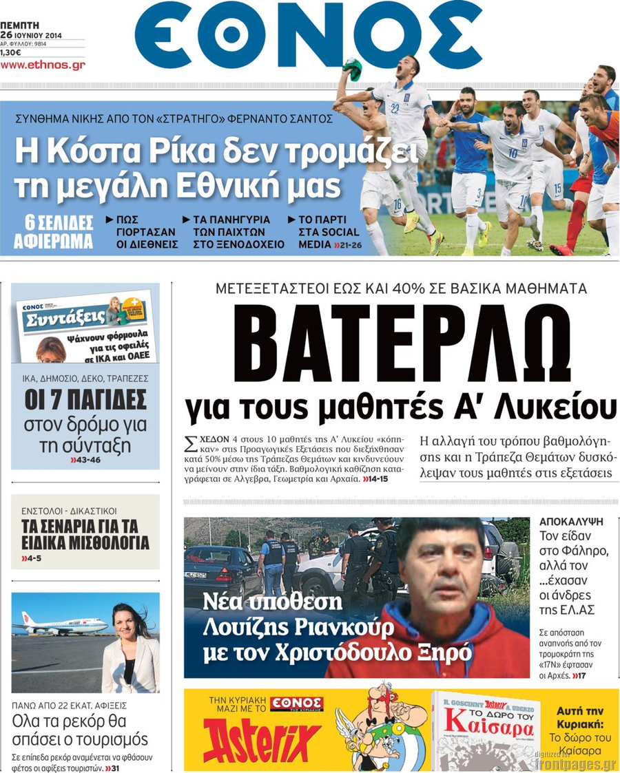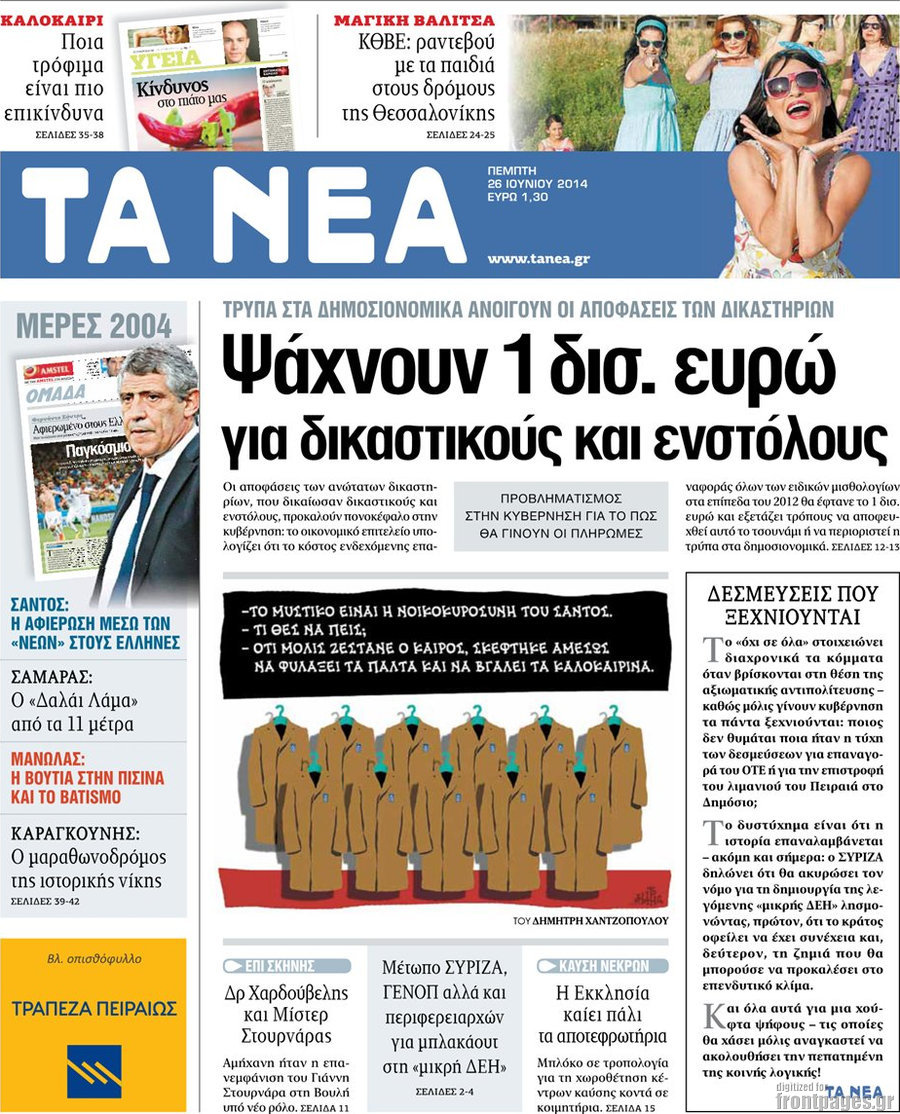 Οι πολιτικές εφημερίδες Enikos Newsroom 08:08, Πέμπτη 26 Ιουνίου 2014 Media Οι πολιτικές εφημερίδες Διαβάστε τα πρωτοσέλιδα των πολιτικών εφημερίδων: ΕΦΗΜΕΡΙΔΕΣ ΠΟΛΙΤΙΚΕΣ ΕΦΗΜΕΡΙΔΕΣ ΠΡΩΤΟΣΕΛΙΔΑ Μοιράσου το: σχολίασε κι εσύ (0 σχόλια) Ακολουθήστε το enikos.gr στο Google News και μάθετε πρώτοι όλες τις ειδήσεις Δείτε όλες τις τελευταίες ειδήσεις από την Ελλάδα και τον Κόσμο στο enikos.gr Ειδήσεις Ροή Ειδήσεων 3 ώρες πριν Υπόθεση Έπσταϊν: Το Υπουργείο Δικαιοσύνης δημοσιοποίησε μια σειρά από εξαιρετικά επεξεργασμένα αρχεία – «Λείπουν τα πιο σημαντικά έγγραφα», λένε οι Δημοκρατικοί 28 λεπτά πριν Γιορτές με μπλόκα για τους αγρότες: Ανοίγουν διόδια και μοιράζουν προϊόντα στους ταξιδιώτες 1 ώρα πριν Εξαφάνιση 33χρονου γιατρού στην Κρήτη: «Άναψα τα φώτα, τρόμαξε και άρχισε να τρέχει στα χωράφια» – Η τελευταία διαδρομή και η μαρτυρία «κλειδί» 2 ώρες πριν Ο «χάρτης» με τις αυξήσεις και τις φοροελαφρύνσεις του 2026 – Ποιοι και πόσα κερδίζουν 44 λεπτά πριν Τα αρχεία του Έπσταϊν αποκαλύπτουν φωτογραφία του έκπτωτου πρίγκιπα Άντριου – Είναι ξαπλωμένος στην αγκαλιά 5 γυναικών 51 λεπτά πριν Μία νέα «χρυσή» περίοδος αρχίζει για 3 ζώδια από σήμερα – «Μία αναπάντεχη ευκαιρία οδηγεί στην επιτυχία» 5 ώρες πριν Αυγά: Πόσα μπορείτε να τρώτε την ημέρα με ασφάλεια για μέγιστη πρόσληψη πρωτεΐνης 3 ώρες πριν Αρχαιολόγοι ανακάλυψαν σε χωράφι απεικόνιση 600 ετών ενός Αγίου – Τα στοιχεία που δείχνουν ότι μαρτύρησε 2 ώρες πριν Αγχώνεται για το χριστουγεννιάτικο δώρο που πήρε στην πλούσια σύντροφό του – «Φοβάμαι πως θα το βρει φθηνιάρικο, φοράει βραχιόλια Cartier» 53 δευτερόλεπτα πριν Οι 7 φράσεις που δεν λένε ποτέ οι συναισθηματικά έξυπνοι άνθρωποι κατά τη διάρκεια ενός καβγά 4 λεπτά πριν Τηλεθέαση (19/12): Ανατροπές και πρωτιές στην πρωινή ζώνη 12 λεπτά πριν Πώς η κλιματική αλλαγή επηρεάζει εγκύους και βρέφη – Οι επιπτώσεις των υψηλών θερμοκρασιών 20 λεπτά πριν e-ΕΦΚΑ και ΔΥΠΑ: Οι πληρωμές από 22 έως 24 Δεκεμβρίου – Ποιοι θα δουν χρήματα στους λογαριασμούς τους 28 λεπτά πριν Συνελήφθη οδηγός μηχανής που έτρεχε με 161 χλμ στη Συγγρού – Τον έπιασε το ραντάρ της Τροχαίας ENIKOS NETWORK Είστε μόνιμα απρόσεκτοι; 3 σημάδια που δείχνουν ότι μπορεί να είναι σύμπτωμα πάθησης Πόσα κιλά παίρνουμε πραγματικά τα Χριστούγεννα, σύμφωνα με την επιστήμη – Πώς να το αποτρέψουμε; Επίδομα παιδιού: Τι αλλάζει από το 2026 – Το όφελος από τις φορολογικές ελαφρύνσεις Mega χριστουγεννιάτικη φορολοταρία: «Κλείδωσε» η ημερομηνία για την κλήρωση – Ερωτήσεις και απαντήσεις Χαρτογραφώντας το «σημείο χωρίς επιστροφή»: Για πρώτη φορά αποκαλύπτεται με λεπτομέρεια το ακανθώδες όριο της ατμόσφαιρας τ... Η Google καταργεί τη λειτουργία «dark web report» – Πώς θα μπορούν οι χρήστες να διαγράφουν τα δεδομένα τους περισσότερα 09:30 , Σάββατο 20 Δεκεμβρίου 2025 «Porto Leone: Στη γειτονιά με τα κόκκινα φανάρια» – Ο Χρόνης αποκαλύπτει στην Αλεξάνδρα το μυστικό για το παιδί της Λένας Η μεγάλη δραματική σειρά του Apha «Porto Leone: Στη γειτονιά με τα κόκκινα φανάρια» μας μεταφέ... 08:14 , Σάββατο 20 Δεκεμβρίου 2025 Τρομεροί γονείς: Η Μαρία Καβογιάννη εισβάλλει στο σπίτι της οικογένειας Στεφανίδη Όσα θα δούμε στο νέο διπλό επεισόδιο της σειράς «Τρομεροί γονείς», σήμερα Σάββατο 20 Δεκεμβρίο... 05:48 , Σάββατο 20 Δεκεμβρίου 2025 Οι οικονομικές εφημερίδες 20/12/2025 Διαβάστε τα πρωτοσέλιδα από τις οικονομικές εφημερίδες, σήμερα 20/12/2025. 05:43 , Σάββατο 20 Δεκεμβρίου 2025 Οι αθλητικές εφημερίδες 20/12/2025 Διαβάστε τα 