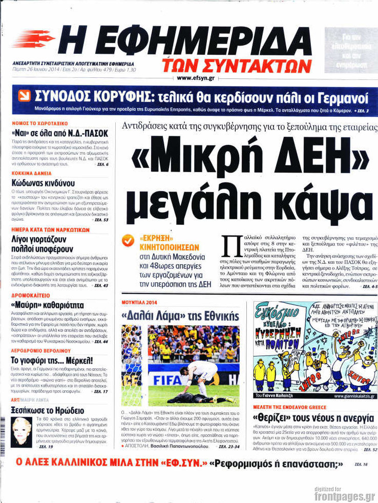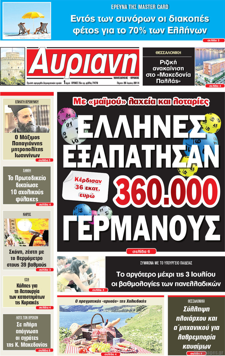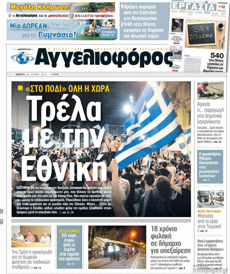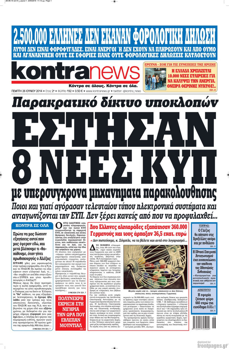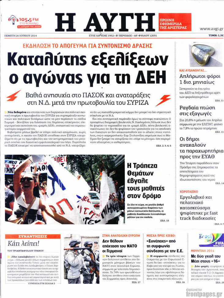 Οι πολιτικές εφημερίδες Enikos Newsroom 08:08, Πέμπτη 26 Ιουνίου 2014 Media Οι πολιτικές εφημερίδες Διαβάστε τα πρωτοσέλιδα των πολιτικών εφημερίδων: ΕΦΗΜΕΡΙΔΕΣ ΠΟΛΙΤΙΚΕΣ ΕΦΗΜΕΡΙΔΕΣ ΠΡΩΤΟΣΕΛΙΔΑ Μοιράσου το: σχολίασε κι εσύ (0 σχόλια) Ακολουθήστε το enikos.gr στο Google News και μάθετε πρώτοι όλες τις ειδήσεις Δείτε όλες τις τελευταίες ειδήσεις από την Ελλάδα και τον Κόσμο στο enikos.gr Ειδήσεις Ροή Ειδήσεων 3 ώρες πριν Υπόθεση Έπσταϊν: Το Υπουργείο Δικαιοσύνης δημοσιοποίησε μια σειρά από εξαιρετικά επεξεργασμένα αρχεία – «Λείπουν τα πιο σημαντικά έγγραφα», λένε οι Δημοκρατικοί 28 λεπτά πριν Γιορτές με μπλόκα για τους αγρότες: Ανοίγουν διόδια και μοιράζουν προϊόντα στους ταξιδιώτες 1 ώρα πριν Εξαφάνιση 33χρονου γιατρού στην Κρήτη: «Άναψα τα φώτα, τρόμαξε και άρχισε να τρέχει στα χωράφια» – Η τελευταία διαδρομή και η μαρτυρία «κλειδί» 2 ώρες πριν Ο «χάρτης» με τις αυξήσεις και τις φοροελαφρύνσεις του 2026 – Ποιοι και πόσα κερδίζουν 44 λεπτά πριν Τα αρχεία του Έπσταϊν αποκαλύπτουν φωτογραφία του έκπτωτου πρίγκιπα Άντριου – Είναι ξαπλωμένος στην αγκαλιά 5 γυναικών 51 λεπτά πριν Μία νέα «χρυσή» περίοδος αρχίζει για 3 ζώδια από σήμερα – «Μία αναπάντεχη ευκαιρία οδηγεί στην επιτυχία» 5 ώρες πριν Αυγά: Πόσα μπορείτε να τρώτε την ημέρα με ασφάλεια για μέγιστη πρόσληψη πρωτεΐνης 3 ώρες πριν Αρχαιολόγοι ανακάλυψαν σε χωράφι απεικόνιση 600 ετών ενός Αγίου – Τα στοιχεία που δείχνουν ότι μαρτύρησε 2 ώρες πριν Αγχώνεται για το χριστουγεννιάτικο δώρο που πήρε στην πλούσια σύντροφό του – «Φοβάμαι πως θα το βρει φθηνιάρικο, φοράει βραχιόλια Cartier» 53 δευτερόλεπτα πριν Οι 7 φράσεις που δεν λένε ποτέ οι συναισθηματικά έξυπνοι άνθρωποι κατά τη διάρκεια ενός καβγά 4 λεπτά πριν Τηλεθέαση (19/12): Ανατροπές και πρωτιές στην πρωινή ζώνη 12 λεπτά πριν Πώς η κλιματική αλλαγή επηρεάζει εγκύους και βρέφη – Οι επιπτώσεις των υψηλών θερμοκρασιών 20 λεπτά πριν e-ΕΦΚΑ και ΔΥΠΑ: Οι πληρωμές από 22 έως 24 Δεκεμβρίου – Ποιοι θα δουν χρήματα στους λογαριασμούς τους 28 λεπτά πριν Συνελήφθη οδηγός μηχανής που έτρεχε με 161 χλμ στη Συγγρού – Τον έπιασε το ραντάρ της Τροχαίας ENIKOS NETWORK Είστε μόνιμα απρόσεκτοι; 3 σημάδια που δείχνουν ότι μπορεί να είναι σύμπτωμα πάθησης Πόσα κιλά παίρνουμε πραγματικά τα Χριστούγεννα, σύμφωνα με την επιστήμη – Πώς να το αποτρέψουμε; Επίδομα παιδιού: Τι αλλάζει από το 2026 – Το όφελος από τις φορολογικές ελαφρύνσεις Mega χριστουγεννιάτικη φορολοταρία: «Κλείδωσε» η ημερομηνία για την κλήρωση – Ερωτήσεις και απαντήσεις Χαρτογραφώντας το «σημείο χωρίς επιστροφή»: Για πρώτη φορά αποκαλύπτεται με λεπτομέρεια το ακανθώδες όριο της ατμόσφαιρας τ... Η Google καταργεί τη λειτουργία «dark web report» – Πώς θα μπορούν οι χρήστες να διαγράφουν τα δεδομένα τους περισσότερα 09:30 , Σάββατο 20 Δεκεμβρίου 2025 «Porto Leone: Στη γειτονιά με τα κόκκινα φανάρια» – Ο Χρόνης αποκαλύπτει στην Αλεξάνδρα το μυστικό για το παιδί της Λένας Η μεγάλη δραματική σειρά του Apha «Porto Leone: Στη γειτονιά με τα κόκκινα φανάρια» μας μεταφέ... 08:14 , Σάββατο 20 Δεκεμβρίου 2025 Τρομεροί γονείς: Η Μαρία Καβογιάννη εισβάλλει στο σπίτι της οικογένειας Στεφανίδη Όσα θα δούμε στο νέο διπλό επεισόδιο της σειράς «Τρομεροί γονείς», σήμερα Σάββατο 20 Δεκεμβρίο... 05:48 , Σάββατο 20 Δεκεμβρίου 2025 Οι οικονομικές εφημερίδες 20/12/2025 Διαβάστε τα πρωτοσέλιδα από τις οικονομικές εφημερίδες, σήμερα 20/12/2025. 05:43 , Σάββατο 20 Δεκεμβρίου 2025 Οι αθλητικές εφημερίδες 20/12/2025 Διαβάστε τα 