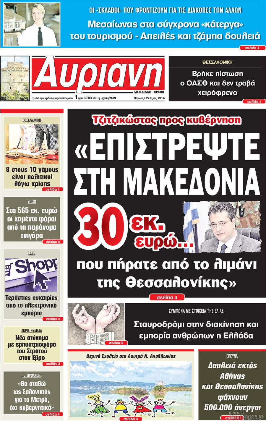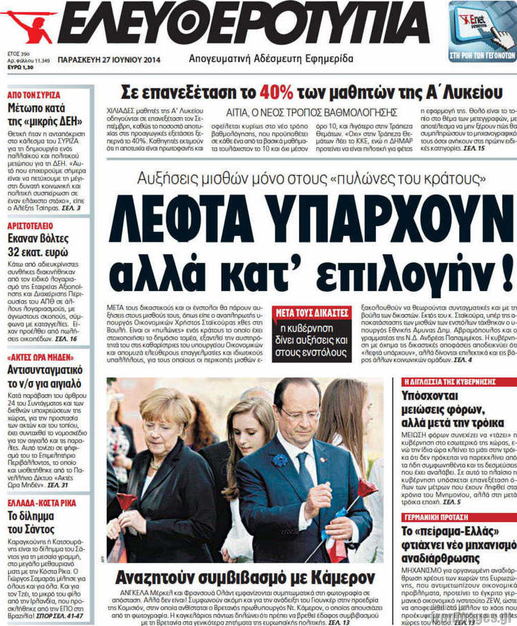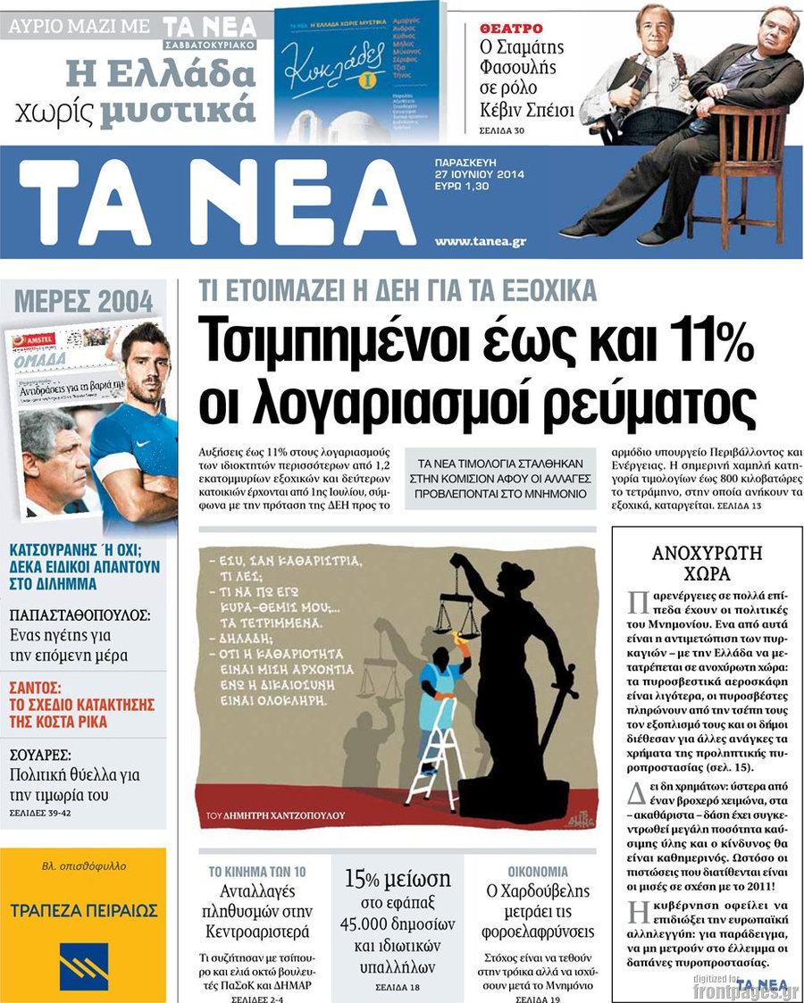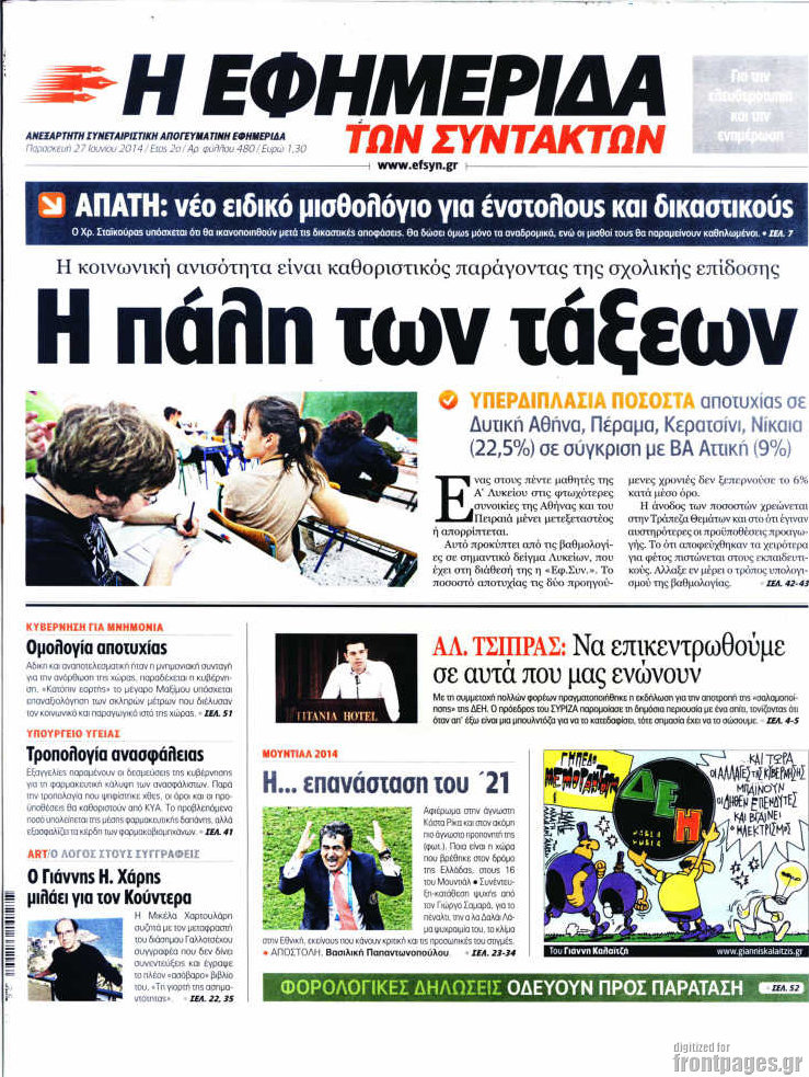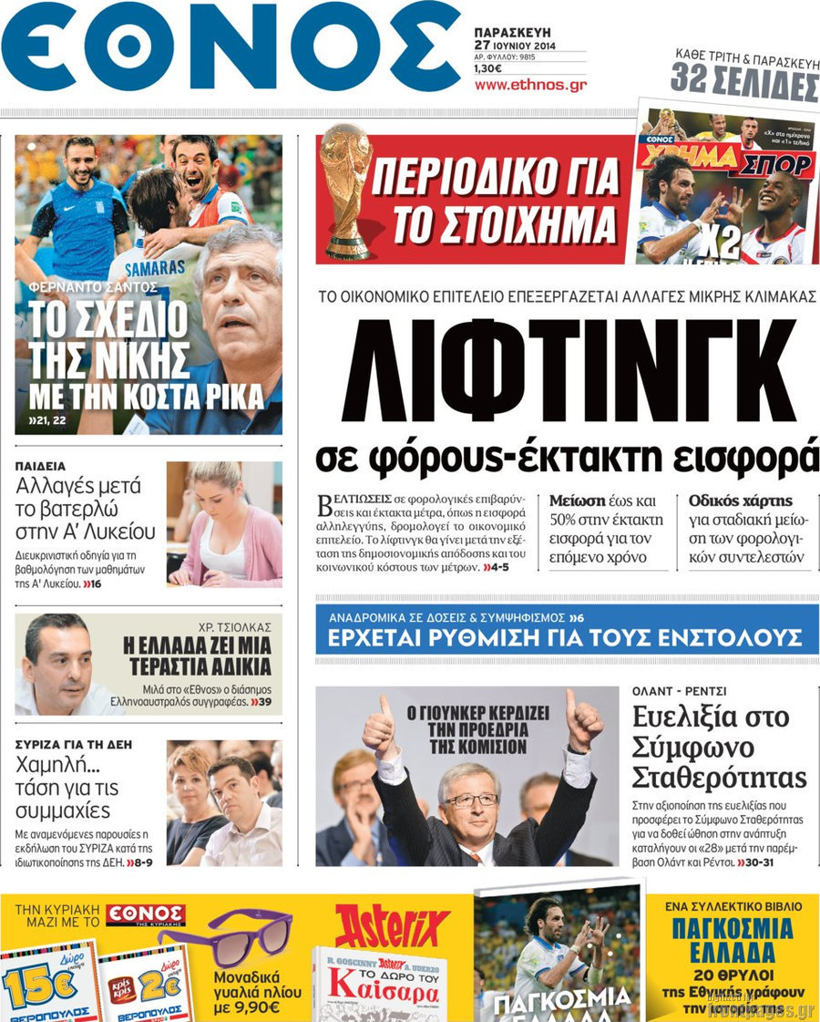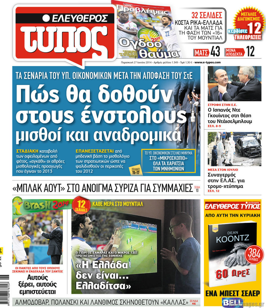 Οι πολιτικές εφημερίδες Enikos Newsroom 08:04, Παρασκευή 27 Ιουνίου 2014 Media Οι πολιτικές εφημερίδες Διαβάστε τα πρωτοσέλιδα των πολιτικών εφημερίδων: ΕΦΗΜΕΡΙΔΕΣ ΠΟΛΙΤΙΚΕΣ ΕΦΗΜΕΡΙΔΕΣ ΠΡΩΤΟΣΕΛΙΔΑ Μοιράσου το: σχολίασε κι εσύ (0 σχόλια) Ακολουθήστε το enikos.gr στο Google News και μάθετε πρώτοι όλες τις ειδήσεις Δείτε όλες τις τελευταίες ειδήσεις από την Ελλάδα και τον Κόσμο στο enikos.gr Ειδήσεις Ροή Ειδήσεων 2 ώρες πριν Μπλόκα: Οι αγρότες σηκώνουν τις μπάρες σε διόδια για τους εκδρομείς των Χριστουγέννων και μοιράζουν προϊόντα – Βίντεο 2 ώρες πριν Τσιάρας προς αγρότες: Τα μπλόκα και τα πείσματα δεν ωφελούν – Οι λύσεις περνούν μέσα από τον διάλογο 3 ώρες πριν Αρχεία Έπσταϊν: Οι συγκλονιστικές φωτογραφίες – Ο Μάικλ Τζάκσον, ο Μικ Τζάγκερ και ο Κέβιν Σπέισι ανάμεσα στους διάσημους που απεικονίζονται 59 λεπτά πριν Μαθητές διακινούσαν κοκαΐνη και χασίς σε σχολείο της Αττικής – 12 συλλήψεις 1 ώρα πριν Βέλγιο: Άγνωστοι έριξαν κόκκινη μπογιά στο προξενείο της Πολωνίας στις Βρυξέλλες 5 ώρες πριν Μία νέα «χρυσή» περίοδος αρχίζει για 3 ζώδια από σήμερα – «Μία αναπάντεχη ευκαιρία οδηγεί στην επιτυχία» 4 ώρες πριν Διαιτολόγος αποκαλύπτει 9 πρωινές συνήθειες που «λιώνουν» το κοιλιακό λίπος – «Υποστηρίζουν την υγιεινή απώλεια βάρους» 5 ώρες πριν Οι 7 φράσεις που δεν λένε ποτέ οι συναισθηματικά έξυπνοι άνθρωποι κατά τη διάρκεια ενός καβγά 7 ώρες πριν Enerwave: Το νέο «ρεύμα» στη λιανική ενέργειας που αλλάζει την εμπειρία του καταναλωτή 7 λεπτά πριν Μαρινάκης στον Realfm 97,8: Η κυβέρνηση σέβεται κάθε λογική διεκδίκηση των αγροτών, αλλά και το αίτημα των πολιτών να μην ταλαιπωρούνται 13 λεπτά πριν O Πάντερ MVP της 17ης αγωνιστικής στην Euroleague 22 λεπτά πριν Πέθανε η τραγουδίστρια Κλαούντια Ντελμέρ 30 λεπτά πριν Μία ανεκμετάλλευτη πηγή θα μπορούσε να προσφέρει ανεξάντλητη ενέργεια – Οι επιστήμονες ίσως γνωρίζουν πώς να την ξεκλειδώσουν 38 λεπτά πριν Θεσσαλονίκη: Ανήλικος που είχε εξαφανιστεί βρέθηκε στο σπίτι Τούρκων μετά από αστυνομική επιχείρηση ENIKOS NETWORK Η αποχή από την αναπαραγωγή παρατείνει τη ζωή στα ζώα, σύμφωνα με μελέτη – Τι ισχύει για τους ανθρώπους; Σημαντικές επαφές στις ΗΠΑ είχε ο υπουργός Υγείας Άδωνις Γεωργιάδης Ευλογιά αιγοπροβάτων: Παρατεταμένη επιζωοτία, αυστηρά μέτρα – Τι ισχύει για τον εμβολιασμό και την ανασύσταση του ζωικού κε... Τσιάρας προς αγρότες: Έχει ικανοποιηθεί το 74% των αιτημάτων – Τα μπλόκα και τα πείσματα δεν ωφελούν Χαρτογραφώντας το «σημείο χωρίς επιστροφή»: Για πρώτη φορά αποκαλύπτεται με λεπτομέρεια το ακανθώδες όριο της ατμόσφαιρας τ... Η Google καταργεί τη λειτουργία «dark web report» – Πώς θα μπορούν οι χρήστες να διαγράφουν τα δεδομένα τους περισσότερα 14:04 , Σάββατο 20 Δεκεμβρίου 2025 Η Realnews αυτής της Κυριακής (21/12/2025) Με τίτλο: «Ασπίδα προστασίας για την Ελλάδα» κυκλοφορεί, αυτήν την Κυριακή, η Realnews. Σημαντ... 12:53 , Σάββατο 20 Δεκεμβρίου 2025 Να μ’ αγαπάς: Το παρελθόν έρχεται στο φως – Καταιγιστικές εξελίξεις στα τελευταία επεισόδια του 2025 Ο Άγγελος αποκαλύπτεται, η Φωτεινή ανησυχεί για τον Λευτέρη και η Ζωή έρχεται αντιμέτωπη με το... 11:41 , Σάββατο 20 Δεκεμβρίου 2025 «Η αγάπη δεν χάνεται ποτέ»: Η μικρού μήκους ταινία κινουμένων σχεδίων που θέτει ερωτήματα για τη ζωή και τον θάνατο Ο θάνατος είναι ένα από τα πιο σκληρά θέματα που καλείται να διαχειριστεί κάποιος στη διάρκεια... 09:30 , Σάββατο 20 Δεκεμβρίου 2025 «Porto Leone: Στη γειτονιά με τα κόκκινα φανάρια» – Ο Χρόνης αποκαλύπτει στη