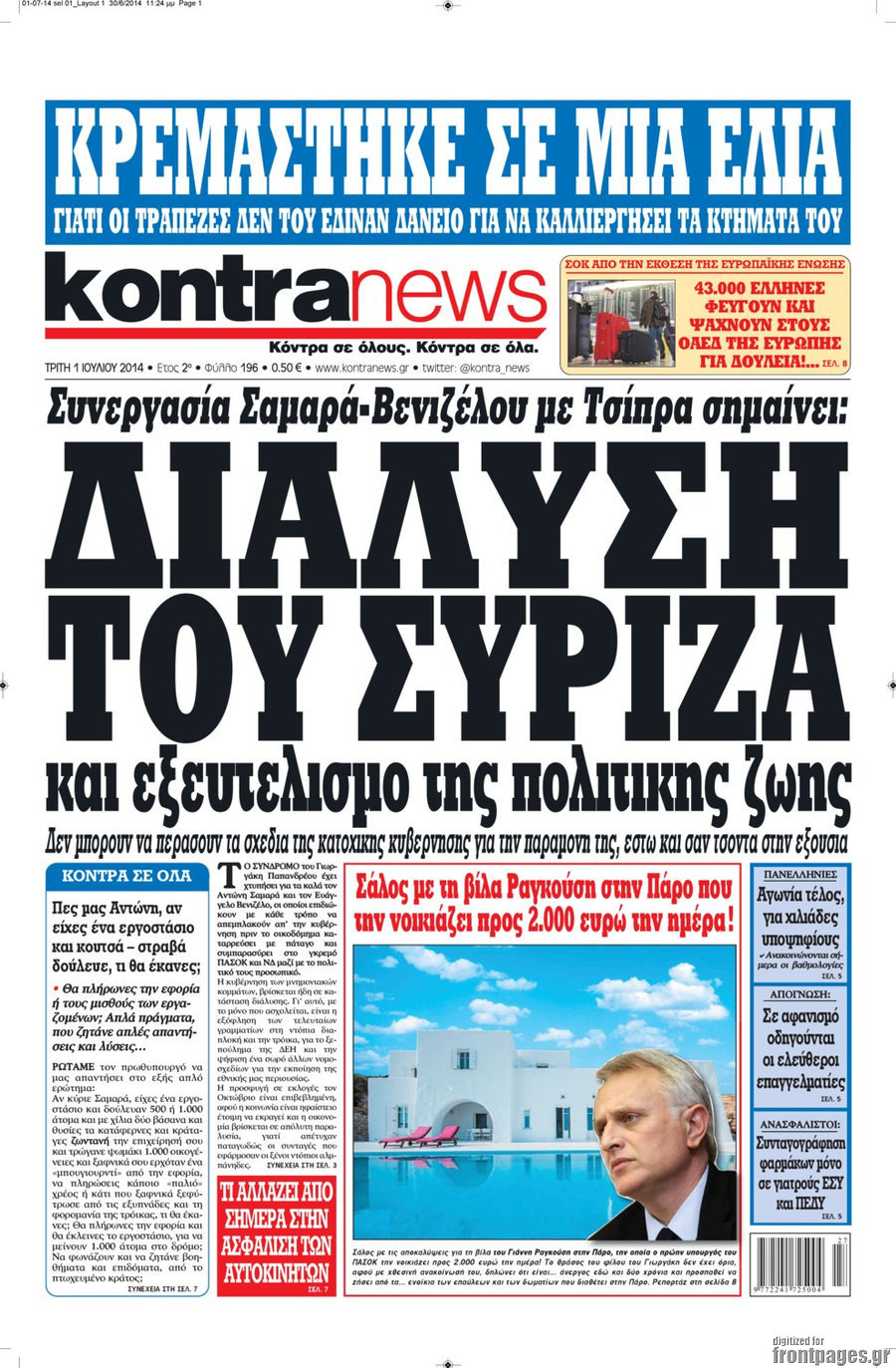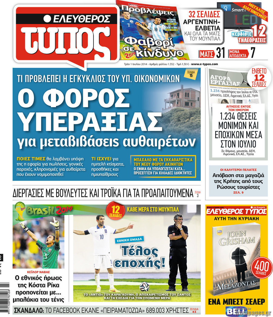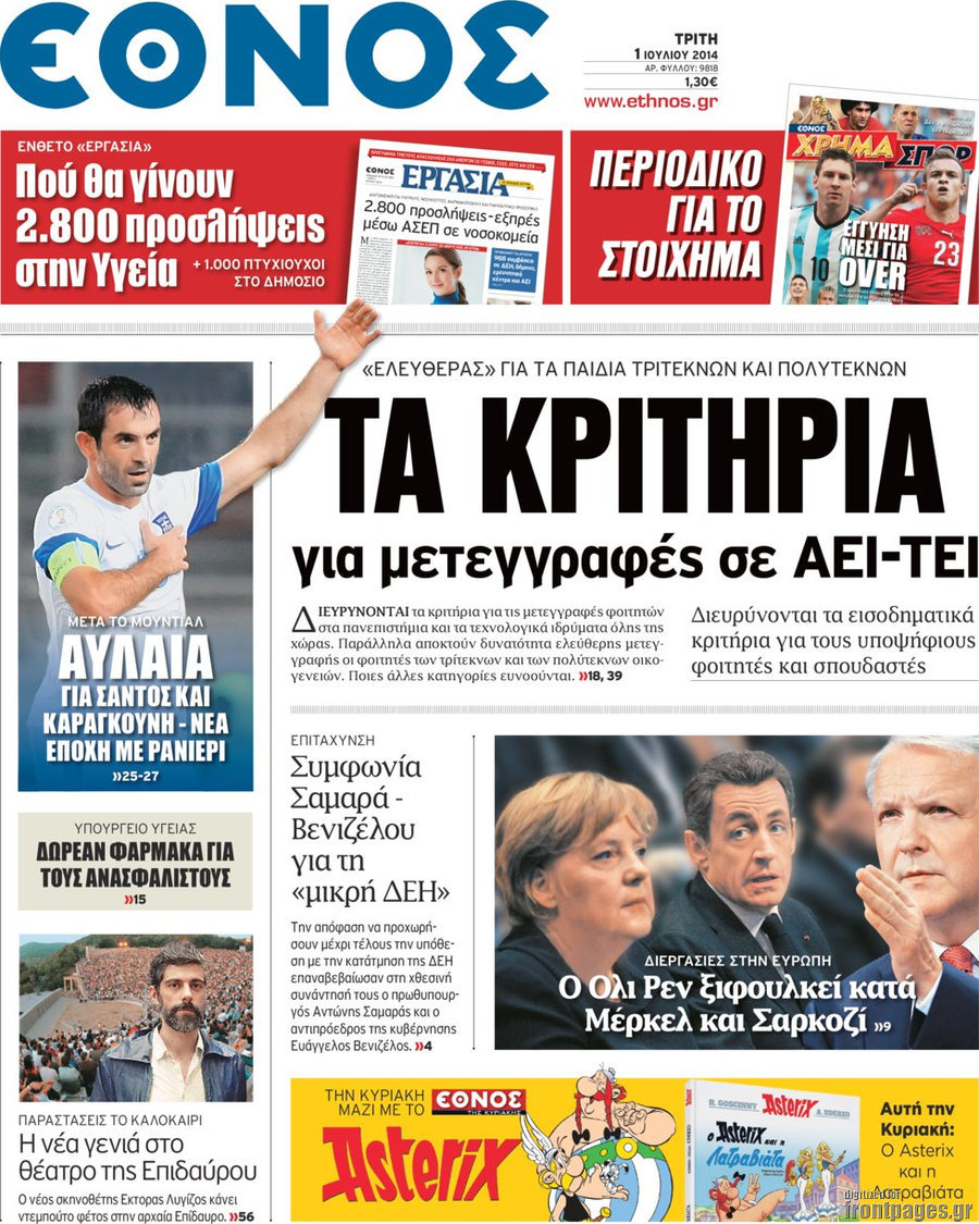 Οι πολιτικές εφημερίδες Enikos Newsroom 07:58, Τρίτη 01 Ιουλίου 2014 Media Οι πολιτικές εφημερίδες Διαβάστε τα πρωτοσέλιδα των πολιτικών εφημερίδων: ΕΦΗΜΕΡΙΔΕΣ ΠΟΛΙΤΙΚΕΣ ΕΦΗΜΕΡΙΔΕΣ ΠΡΩΤΟΣΕΛΙΔΑ Μοιράσου το: σχολίασε κι εσύ (0 σχόλια) Ακολουθήστε το enikos.gr στο Google News και μάθετε πρώτοι όλες τις ειδήσεις Δείτε όλες τις τελευταίες ειδήσεις από την Ελλάδα και τον Κόσμο στο enikos.gr Ειδήσεις Ροή Ειδήσεων 2 ώρες πριν Γιορτές με μπλόκα για τους αγρότες: Ανοίγουν διόδια και μοιράζουν προϊόντα στους ταξιδιώτες 2 ώρες πριν Τα αρχεία του Έπσταϊν αποκαλύπτουν φωτογραφία του έκπτωτου πρίγκιπα Άντριου – Είναι ξαπλωμένος στην αγκαλιά 5 γυναικών 1 ώρα πριν Νέες ταυτότητες: Μεγάλη αναμονή για ραντεβού στην Αττική – Τέλος τα ταξίδια εκτός Ελλάδος από τον Αύγουστο για όσους δεν έχουν αλλάξει 2 ώρες πριν Εξαφάνιση 33χρονου γιατρού στην Κρήτη: «Άναψα τα φώτα, τρόμαξε και άρχισε να τρέχει στα χωράφια» – Η τελευταία διαδρομή και η μαρτυρία «κλειδί» 28 λεπτά πριν Ινδία: Επτά ελέφαντες σκοτώθηκαν κατά τη σύγκρουση επιβατικού τρένου με κοπάδι 2 ώρες πριν Μία νέα «χρυσή» περίοδος αρχίζει για 3 ζώδια από σήμερα – «Μία αναπάντεχη ευκαιρία οδηγεί στην επιτυχία» 4 ώρες πριν Αρχαιολόγοι ανακάλυψαν σε χωράφι απεικόνιση 600 ετών ενός Αγίου – Τα στοιχεία που δείχνουν ότι μαρτύρησε 3 ώρες πριν Αγχώνεται για το χριστουγεννιάτικο δώρο που πήρε στην πλούσια σύντροφό του – «Φοβάμαι πως θα το βρει φθηνιάρικο, φοράει βραχιόλια Cartier» 25 λεπτά πριν Διαιτολόγος αποκαλύπτει 9 πρωινές συνήθειες που «λιώνουν» το κοιλιακό λίπος – «Υποστηρίζουν την υγιεινή απώλεια βάρους» 4 λεπτά πριν Χρήστος Μάντακας: «Θα μπορούσα να είχα φύγει από τη ζωή, δεν μπορούσα να περπατήσω…» 12 λεπτά πριν Εντυπωσιακό βίντεο από «τσουνάμι» πάγου στη Σιβηρία – Πώς προκαλείται το σπάνιο φαινόμενο 20 λεπτά πριν Μυλωνάκης κατά Τζάκρη: Την καλώ να ανασκευάσει το αδιανόητο ψέμα της. Η ανοχή έχει και τα όρια της» 25 λεπτά πριν Διαιτολόγος αποκαλύπτει 9 πρωινές συνήθειες που «λιώνουν» το κοιλιακό λίπος – «Υποστηρίζουν την υγιεινή απώλεια βάρους» 28 λεπτά πριν Ινδία: Επτά ελέφαντες σκοτώθηκαν κατά τη σύγκρουση επιβατικού τρένου με κοπάδι ENIKOS NETWORK Είστε μόνιμα απρόσεκτοι; 3 σημάδια που δείχνουν ότι μπορεί να είναι σύμπτωμα πάθησης Πόσα κιλά παίρνουμε πραγματικά τα Χριστούγεννα, σύμφωνα με την επιστήμη – Πώς να το αποτρέψουμε; Χριστούγεννα και Πρωτοχρονιά: Πώς αμείβονται όσοι εργαστούν e-ΕΦΚΑ και ΔΥΠΑ: Έρχονται νέες πληρωμές έως τις 24 Δεκεμβρίου – Ποιοι πάνε ταμείο Χαρτογραφώντας το «σημείο χωρίς επιστροφή»: Για πρώτη φορά αποκαλύπτεται με λεπτομέρεια το ακανθώδες όριο της ατμόσφαιρας τ... Η Google καταργεί τη λειτουργία «dark web report» – Πώς θα μπορούν οι χρήστες να διαγράφουν τα δεδομένα τους περισσότερα 11:41 , Σάββατο 20 Δεκεμβρίου 2025 «Η αγάπη δεν χάνεται ποτέ»: Η μικρού μήκους ταινία κινουμένων σχεδίων που θέτει ερωτήματα για τη ζωή και τον θάνατο Ο θάνατος είναι ένα από τα πιο σκληρά θέματα που καλείται να διαχειριστεί κάποιος στη διάρκεια... 09:30 , Σάββατο 20 Δεκεμβρίου 2025 «Porto Leone: Στη γειτονιά με τα κόκκινα φανάρια» – Ο Χρόνης αποκαλύπτει στην Αλεξάνδρα το μυστικό για το παιδί της Λένας Η μεγάλη δραματική σειρά του Apha «Porto Leone: Στη γειτονιά με τα κόκκινα φανάρια» μας μεταφέ... 08:14 , Σάββατο 20 Δεκεμβρίου 2025 Τρομεροί γονείς: Η Μαρία Καβογιάννη εισβάλλει στο σπίτι της οικογένειας Στεφανίδη Όσα θα δούμε στο νέο διπλό επεισόδιο της σειράς «Τρομεροί γον