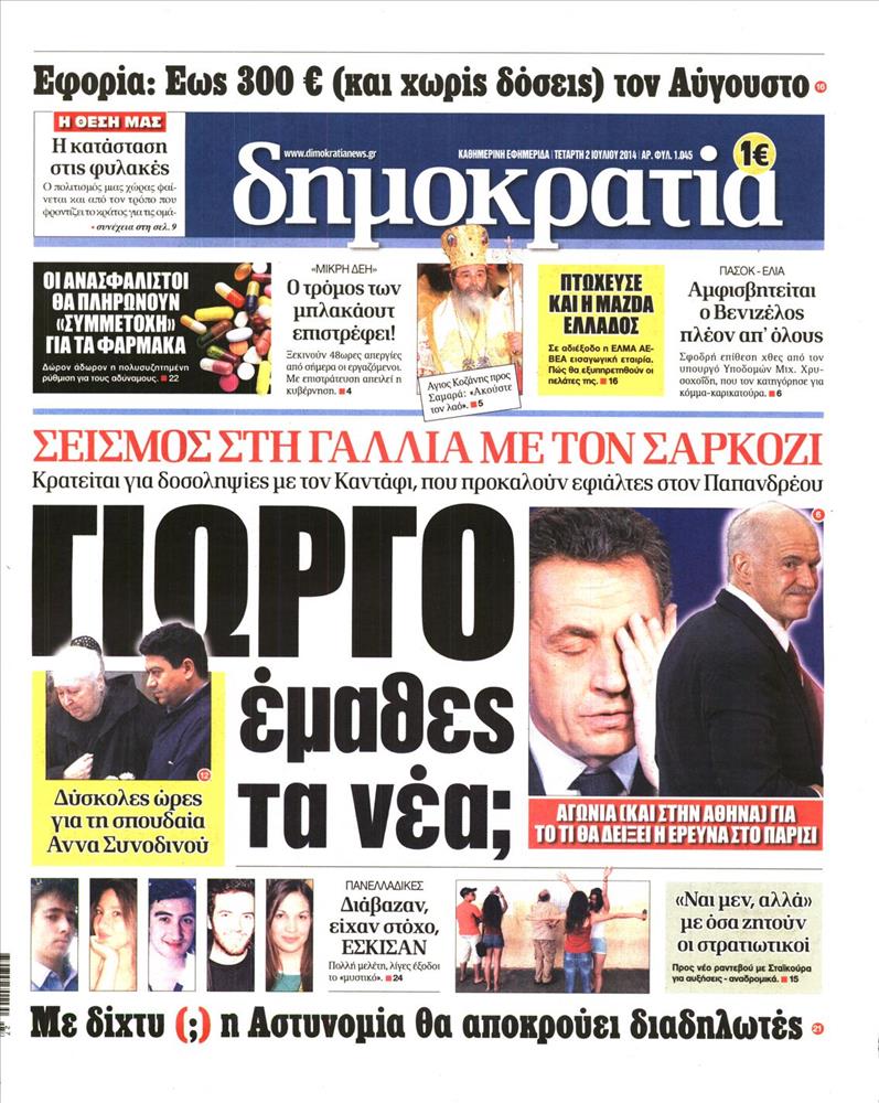 Οι πολιτικές εφημερίδες Enikos Newsroom 08:07, Τετάρτη 02 Ιουλίου 2014 Media Οι πολιτικές εφημερίδες Διαβάστε τα πρωτοσέλιδα των πολιτικών εφημερίδων: ΕΦΗΜΕΡΙΔΕΣ ΠΟΛΙΤΙΚΕΣ ΕΦΗΜΕΡΙΔΕΣ ΠΡΩΤΟΣΕΛΙΔΑ Μοιράσου το: σχολίασε κι εσύ (0 σχόλια) Ακολουθήστε το enikos.gr στο Google News και μάθετε πρώτοι όλες τις ειδήσεις Δείτε όλες τις τελευταίες ειδήσεις από την Ελλάδα και τον Κόσμο στο enikos.gr Ειδήσεις Ροή Ειδήσεων 1 ώρα πριν Αγρότες: Πολύωροι αποκλεισμοί στα τελωνεία Προμαχώνα, Εξοχής, Ευζώνων και Νίκης – Κλείνουν τον κόμβο Φιλώτα οι παραγωγοί στη Δυτική Μακεδονία 43 λεπτά πριν Νίκος Παππάς: Ζητώ συγγνώμη για αυτό το επεισόδιο – Δεν τον γρονθοκόπησα 3 ώρες πριν Ευρωπαϊκό Συμβούλιο: Όλες οι λεπτομέρειες για το δάνειο των 90 δισ. ευρώ στην Ουκρανία – Τα συμπεράσματα της Συνόδου Κορυφής 2 ώρες πριν Αίγιο: 22χρονη κατήγγειλε ότι έπεσε θύμα βιασμού και ληστείας από συγγενικά της πρόσωπα 2 ώρες πριν Σφοδρές βροχές και καταιγίδες πλήττουν τα Ηνωμένα Αραβικά Εμιράτα: Ακυρώσεις πτήσεων, προβλήματα στην κυκλοφορία 1 ώρα πριν Αλλαγή σελίδας για 3 ζώδια – «Μία δύσκολη περίοδος φτάνει στο τέλος της» 3 ώρες πριν Πώς το αρχαίο DNA του κυνηγού – συλλέκτη ξεκλείδωσε τα μυστικά της μακροζωίας 2 ημέρες πριν 20 χρόνια τα Χριστούγεννα ξεκινούν στα Public με μεγάλη ποικιλία σε δώρα! 2 ώρες πριν Ο σύζυγός της συμπεριφέρεται όπως το παιδί τους – «Χρησιμοποιεί αστείες δικαιολογίες για να μην κάνει δουλειές και να ξοδεύει λεφτά» 5 λεπτά πριν Ενίσχυση δρομολογίων του Μετρό τις Κυριακές 21 και 28 Δεκεμβρίου – Κυκλοφοριακές ρυθμίσεις αύριο στη Γραμμή 7 του τραμ λόγω εορταστικών εκδηλώσεων 9 λεπτά πριν Βλαντίμιρ Πούτιν: LIVE η συνέντευξη Τύπου για τον απολογισμό της χρονιάς 15 λεπτά πριν Αλμπέρτο Εσκενάζυ: Υπό τους ήχους του τραγουδιού «Του Αιγαίου τα μπλουζ» το τελευταίο αντίο στο αποτεφρωτήριο της Ριτσώνας 19 λεπτά πριν TikTok: Ο ιδιοκτήτης του υπέγραψε συμφωνία για να αποφύγει την απαγόρευση στις ΗΠΑ 24 λεπτά πριν Τομ Κρουζ: Χορεύει με ένα φτυάρι στη νέα ταινία του Αλεχάντρο Γκονζάλες Ινιάριτου, «Digger» ENIKOS NETWORK Καρκίνος του πνεύμονα: Έως 8.000 ζωές μπορούν να σωθούν με την έγκαιρη διάγνωση Καρδιοπαθείς: Οι νέες συστάσεις για τα εμβόλια που πρέπει να κάνουν τον χειμώνα Απειλή για τον Προϋπολογισμό τα ληξιπρόθεσμα χρέη των ιδιωτών προς την εφορία – Τι δείχνουν τα στοιχεία Συντάξεις: Οι κερδισμένοι και οι χαμένοι από τις αυξήσεις – Αναλυτικός οδηγός Χαρτογραφώντας το «σημείο χωρίς επιστροφή»: Για πρώτη φορά αποκαλύπτεται με λεπτομέρεια το ακανθώδες όριο της ατμόσφαιρας τ... Η Google καταργεί τη λειτουργία «dark web report» – Πώς θα μπορούν οι χρήστες να διαγράφουν τα δεδομένα τους περισσότερα 08:00 , Παρασκευή 19 Δεκεμβρίου 2025 Την Κυριακή με τη Realnews: Δωροεπιταγή 10€ Δωροεπιταγή αξίας 10€ για αγορές άνω των 60€ από τα πολυκαταστήματα FactoryOutlet H προσφορά ι... 05:48 , Παρασκευή 19 Δεκεμβρίου 2025 Οι οικονομικές εφημερίδες 19/12/2025 Διαβάστε τα πρωτοσέλιδα από τις οικονομικές εφημερίδες, σήμερα 19/12/2025. 05:43 , Παρασκευή 19 Δεκεμβρίου 2025 Οι αθλητικές εφημερίδες 19/12/2025 Διαβάστε τα πρωτοσέλιδα από τις αθλητικές εφημερίδες, σήμερα 19/12/2025. 05:38 , Παρασκευή 19 Δεκεμβρίου 2025 Οι πολιτικές εφημερίδες 19/12/2025 Διαβάστε τα πρωτοσέλιδα από τις πολιτικές εφημερίδες, σήμερα 19/12/2025. ΤΕΛΕΥΤΑΙΕΣ ΕΙΔΗΣΕΙΣ 5 λεπτά πριν Ενίσχυση δρομολογίων του Μετρό τις Κυριακές 21 και 28... 9 λεπτά πριν Βλαντίμιρ Πούτιν: LIVE η συνέντευξη Τύπου για τον... 15 λεπτά πριν Αλμπέρτο Εσκενάζυ: Υπό τους ή