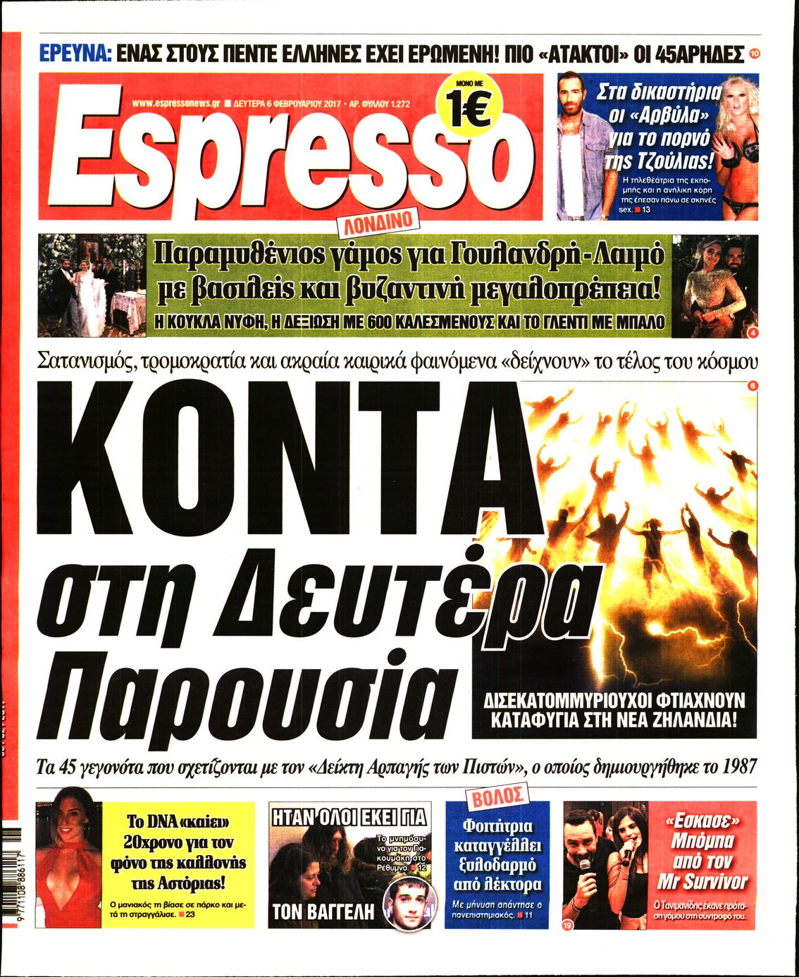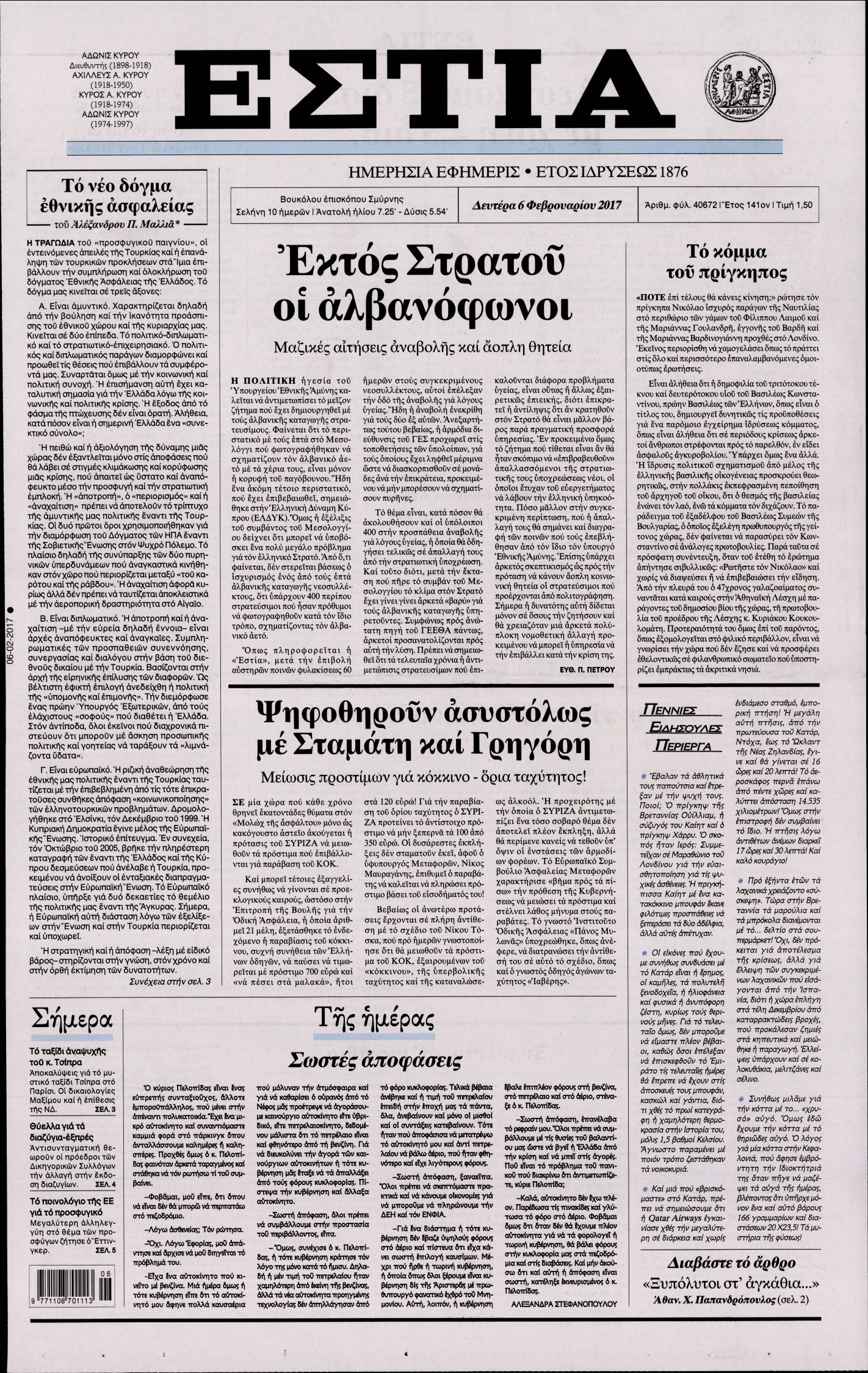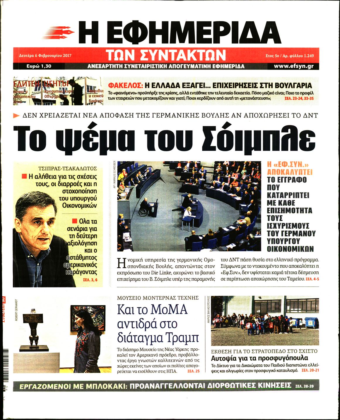 Οι πολιτικές εφημερίδες 6/2/2017 Enikos Newsroom 05:34, Δευτέρα 06 Φεβρουαρίου 2017 Media Διαβάστε τα σημερινά πρωτοσέλιδα των πολιτικών εφημερίδων: ΠΟΛΙΤΙΚΕΣ ΕΦΗΜΕΡΙΔΕΣ ΠΡΩΤΟΣΕΛΙΔΑ Μοιράσου το: σχολίασε κι εσύ (0 σχόλια) Ακολουθήστε το enikos.gr στο Google News και μάθετε πρώτοι όλες τις ειδήσεις Δείτε όλες τις τελευταίες ειδήσεις από την Ελλάδα και τον Κόσμο στο enikos.gr Ειδήσεις Ροή Ειδήσεων 2 ώρες πριν Μπλόκα: Οι αγρότες σηκώνουν τις μπάρες σε διόδια για τους εκδρομείς των Χριστουγέννων και μοιράζουν προϊόντα – Βίντεο 2 ώρες πριν Τσιάρας προς αγρότες: Τα μπλόκα και τα πείσματα δεν ωφελούν – Οι λύσεις περνούν μέσα από τον διάλογο 3 ώρες πριν Αρχεία Έπσταϊν: Οι συγκλονιστικές φωτογραφίες – Ο Μάικλ Τζάκσον, ο Μικ Τζάγκερ και ο Κέβιν Σπέισι ανάμεσα στους διάσημους που απεικονίζονται 54 λεπτά πριν Μαθητές διακινούσαν κοκαΐνη και χασίς σε σχολείο της Αττικής – 12 συλλήψεις 60 λεπτά πριν Βέλγιο: Άγνωστοι έριξαν κόκκινη μπογιά στο προξενείο της Πολωνίας στις Βρυξέλλες 5 ώρες πριν Μία νέα «χρυσή» περίοδος αρχίζει για 3 ζώδια από σήμερα – «Μία αναπάντεχη ευκαιρία οδηγεί στην επιτυχία» 3 ώρες πριν Διαιτολόγος αποκαλύπτει 9 πρωινές συνήθειες που «λιώνουν» το κοιλιακό λίπος – «Υποστηρίζουν την υγιεινή απώλεια βάρους» 4 ώρες πριν Οι 7 φράσεις που δεν λένε ποτέ οι συναισθηματικά έξυπνοι άνθρωποι κατά τη διάρκεια ενός καβγά 6 ώρες πριν Enerwave: Το νέο «ρεύμα» στη λιανική ενέργειας που αλλάζει την εμπειρία του καταναλωτή 3 λεπτά πριν Μαρινάκης στον Realfm 97,8: Η κυβέρνηση σέβεται κάθε λογική διεκδίκηση των αγροτών, αλλά και το αίτημα των πολιτών να μην ταλαιπωρούνται 9 λεπτά πριν O Πάντερ MVP της 17ης αγωνιστικής στην Euroleague 18 λεπτά πριν Πέθανε η τραγουδίστρια Κλαούντια Ντελμέρ 25 λεπτά πριν Μία ανεκμετάλλευτη πηγή θα μπορούσε να προσφέρει ανεξάντλητη ενέργεια – Οι επιστήμονες ίσως γνωρίζουν πώς να την ξεκλειδώσουν 34 λεπτά πριν Θεσσαλονίκη: Ανήλικος που είχε εξαφανιστεί βρέθηκε στο σπίτι Τούρκων μετά από αστυνομική επιχείρηση ENIKOS NETWORK Η αποχή από την αναπαραγωγή παρατείνει τη ζωή στα ζώα, σύμφωνα με μελέτη – Τι ισχύει για τους ανθρώπους; Σημαντικές επαφές στις ΗΠΑ είχε ο υπουργός Υγείας Άδωνις Γεωργιάδης Ευλογιά αιγοπροβάτων: Παρατεταμένη επιζωοτία, αυστηρά μέτρα – Τι ισχύει για τον εμβολιασμό και την ανασύσταση του ζωικού κε... Τσιάρας προς αγρότες: Έχει ικανοποιηθεί το 74% των αιτημάτων – Τα μπλόκα και τα πείσματα δεν ωφελούν Χαρτογραφώντας το «σημείο χωρίς επιστροφή»: Για πρώτη φορά αποκαλύπτεται με λεπτομέρεια το ακανθώδες όριο της ατμόσφαιρας τ... Η Google καταργεί τη λειτουργία «dark web report» – Πώς θα μπορούν οι χρήστες να διαγράφουν τα δεδομένα τους περισσότερα 14:04 , Σάββατο 20 Δεκεμβρίου 2025 Η Realnews αυτής της Κυριακής (21/12/2025) Με τίτλο: «Ασπίδα προστασίας για την Ελλάδα» κυκλοφορεί, αυτήν την Κυριακή, η Realnews. Σημαντ... 12:53 , Σάββατο 20 Δεκεμβρίου 2025 Να μ’ αγαπάς: Το παρελθόν έρχεται στο φως – Καταιγιστικές εξελίξεις στα τελευταία επεισόδια του 2025 Ο Άγγελος αποκαλύπτεται, η Φωτεινή ανησυχεί για τον Λευτέρη και η Ζωή έρχεται αντιμέτωπη με το... 11:41 , Σάββατο 20 Δεκεμβρίου 2025 «Η αγάπη δεν χάνεται ποτέ»: Η μικρού μήκους ταινία κινουμένων σχεδίων που θέτει ερωτήματα για τη ζωή και τον θάνατο Ο θάνατος είναι ένα από τα πιο σκληρά θέματα που καλείται να διαχειριστεί κάποιος στη διάρκεια... 09:30 , Σάββατο 20 Δεκεμβρίου 2025 «Porto Leone: Στη γειτονιά με τα κόκκινα φανάρια» – Ο Χρόνης αποκαλύπτει στην Αλεξάνδρα το μυ