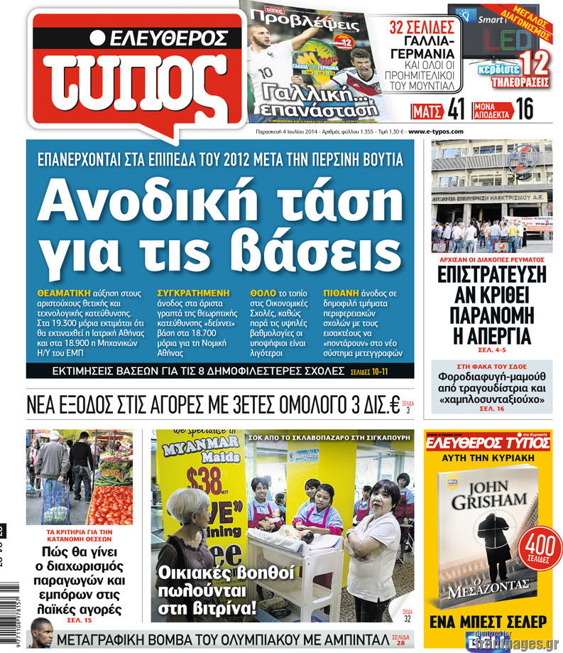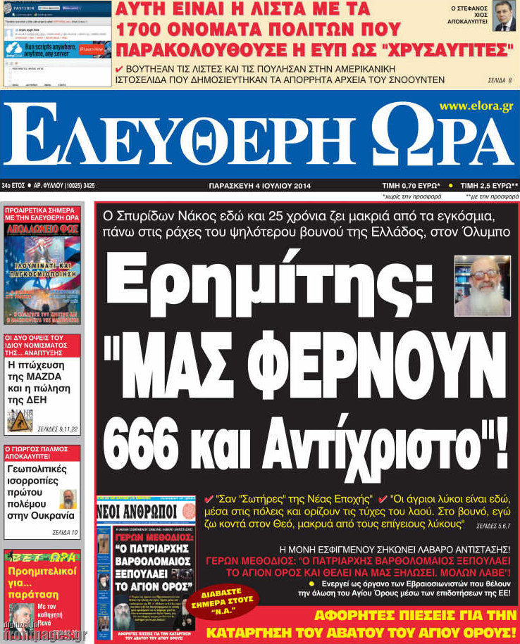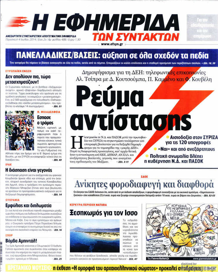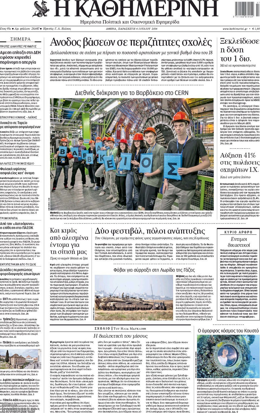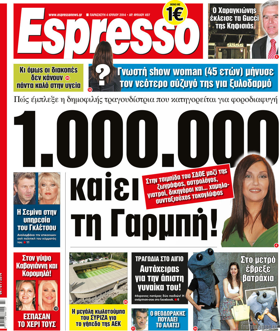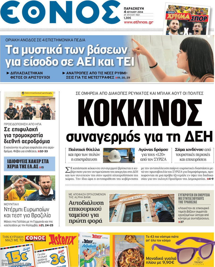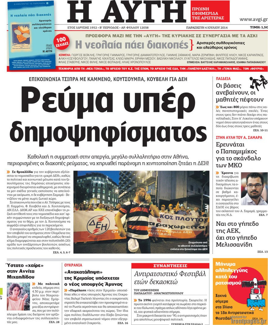 Οι πολιτικές εφημερίδες Enikos Newsroom 07:29, Παρασκευή 04 Ιουλίου 2014 Media Οι πολιτικές εφημερίδες Διαβάστε τα πρωτοσέλιδα των πολιτικών εφημερίδων: ΕΦΗΜΕΡΙΔΕΣ ΠΟΛΙΤΙΚΕΣ ΕΦΗΜΕΡΙΔΕΣ ΠΡΩΤΟΣΕΛΙΔΑ Μοιράσου το: σχολίασε κι εσύ (0 σχόλια) Ακολουθήστε το enikos.gr στο Google News και μάθετε πρώτοι όλες τις ειδήσεις Δείτε όλες τις τελευταίες ειδήσεις από την Ελλάδα και τον Κόσμο στο enikos.gr Ειδήσεις Ροή Ειδήσεων 4 ώρες πριν Από το Ορμένιο ως τα Μάλγαρα κι από τη Σιάτιστα μέχρι τη Νίκαια: Μπλόκα σε όλη την Ελλάδα – Το Σάββατο ανοίγουν τα διόδια οι αγρότες 1 ώρα πριν Εμπλοκή και αερομαχίες με οπλισμένα τουρκικά F-16 στο Αιγαίο 3 ώρες πριν Αττική: Θρίλερ με νεκρό βρέφος 5 μηνών – Κοιμόταν στο ίδιο κρεβάτι με τους γονείς του 58 λεπτά πριν Πούτιν: «Ναι, είμαι ερωτευμένος» – Βίντεο από τη σπάνια προσωπική παραδοχή του 3 ώρες πριν Μεσόγειος: Η διαδρομή του ρωσικού τάνκερ «Qendil» και η στοχευμένη επίθεση της Ουκρανίας με drone – Ο Πούτιν προειδοποίησε για αντίποινα 5 ώρες πριν Τα 5 ζώδια που ευνοούνται στην ερωτική ζωή τους την επόμενη εβδομάδα – «Η ενέργεια του Αιγόκερου φέρνει αγάπη και σταθερότητα» 6 ώρες πριν Αυτό το έξυπνο μαθηματικό κόλπο θα μπορούσε να αλλάξει τον τρόπο με τον οποίο οι επιστήμονες μελετούν τους σεισμούς 2 ώρες πριν Μήπως έχετε χάσει τον εαυτό σας στη σχέση σας; 7 «αθόρυβες» υποχωρήσεις που μάλλον κάνατε, χωρίς να το συνειδητοποιήσετε 4 ώρες πριν Κουίζ για την παλιά Αθήνα: Αναγνωρίζετε την περιοχή; Έχετε περάσει 100% από εκεί 4 λεπτά πριν Μπαράκ Ομπάμα: Τα βιβλία, οι ταινίες και τα τραγούδια που ξεχώρισε το 2025 – Πλήρης λίστα 9 λεπτά πριν Don’t Forget The Lyrics: Η Έλλη Κοκκίνου υποδέχεται 4 παίκτες που θα κάνουν τα πάντα για να μη χάσουν ούτε… μισή λέξη από τους στίχους 15 λεπτά πριν Πλεύρης στον ΑΝΤ1: Η βασική πολιτική που ψηφίστηκε από τους υπουργούς Μετανάστευσης είναι η δημιουργία κέντρων κράτησης μεταναστών στην Αφρική – ΒΙΝΤΕΟ 20 λεπτά πριν Η εξομολόγηση της Νίκης Σερέτη: «Δεν κρύβω ότι ήταν πάρα πολύ δύσκολο όλο αυτό που βίωσα» 25 λεπτά πριν Αγρότες: Κλειστό ξανά το ρεύμα εισόδου στα Μάλγαρα – Άνοιξαν τον κόμβο της Χαλκηδόνας ENIKOS NETWORK Έχετε πραγματικά μεγάλη καρδιά; 10 χαρακτηριστικά όσων έχουν καλοσύνη «Η σούπερ» γρίπη εξαπλώνεται στην Ευρώπη-Στοιχεία από το ECDC για την αποτελεσματικότητα του εμβολίου Επίδομα παιδιού: Πότε ανοίγει ξανά η πλατφόρμα για τις αιτήσεις Προκήρυξη ΑΣΕΠ για 397 μόνιμες προσλήψεις στο Δημόσιο: Βγήκαν τα προσωρινά αποτελέσματα – Πότε αρχίζει η υποβολή ενστάσεων Χαρτογραφώντας το «σημείο χωρίς επιστροφή»: Για πρώτη φορά αποκαλύπτεται με λεπτομέρεια το ακανθώδες όριο της ατμόσφαιρας τ... Η Google καταργεί τη λειτουργία «dark web report» – Πώς θα μπορούν οι χρήστες να διαγράφουν τα δεδομένα τους περισσότερα 20:37 , Παρασκευή 19 Δεκεμβρίου 2025 Don’t Forget The Lyrics: Η Έλλη Κοκκίνου υποδέχεται 4 παίκτες που θα κάνουν τα πάντα για να μη χάσουν ούτε… μισή λέξη από τους στίχους Το «Don’t Forget The Lyrics» επιστρέφει απόψε, Παρασκευή 19 Δεκεμβρίου, στις 21:00 με νέο επει... 19:31 , Παρασκευή 19 Δεκεμβρίου 2025 GNTM: Απόψε ο μεγάλος τελικός για τους 4 φιναλίστ Έπειτα από μήνες γεμάτους μόδα, δημιουργία και έντονες αναμετρήσεις, το GNTM 2025 κορυφώνεται,... 18:11 , Παρασκευή 19 Δεκεμβρίου 2025 Το σόι σου: Ο Άρης έρχεται στην Ελλάδα για τις γιορτές των Χριστουγέννων – Τι θα δούμε στο αποψινό εορταστικό επεισόδιο Ένα απολαυστικό, εορταστικό επεισόδιο της σειράς “Το σόι σου”, γεμάτο ευτράπελα αλ... 15:15 , Παρασκευή 19 Δ