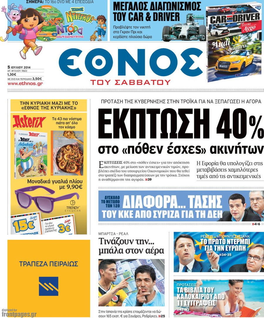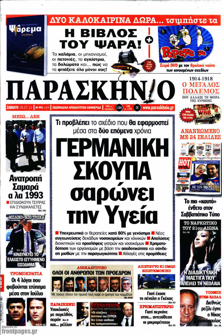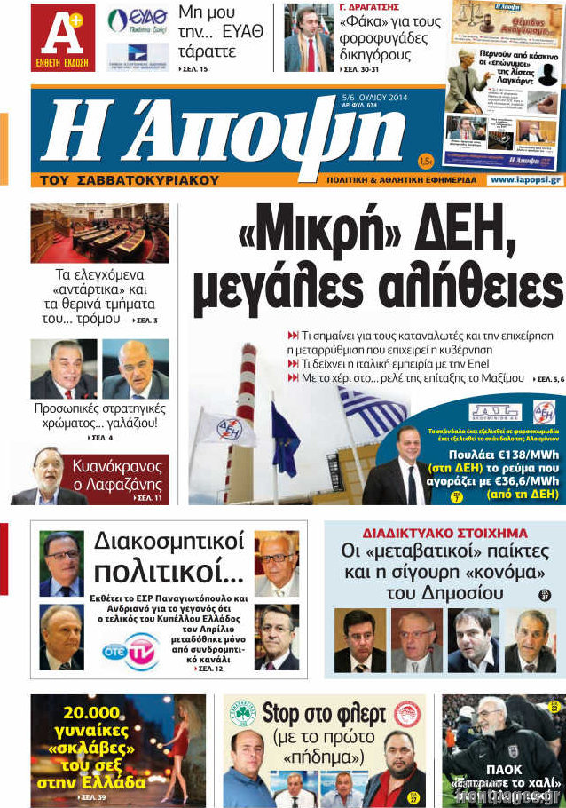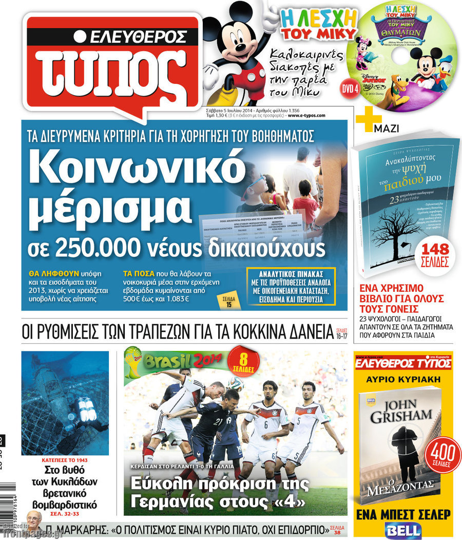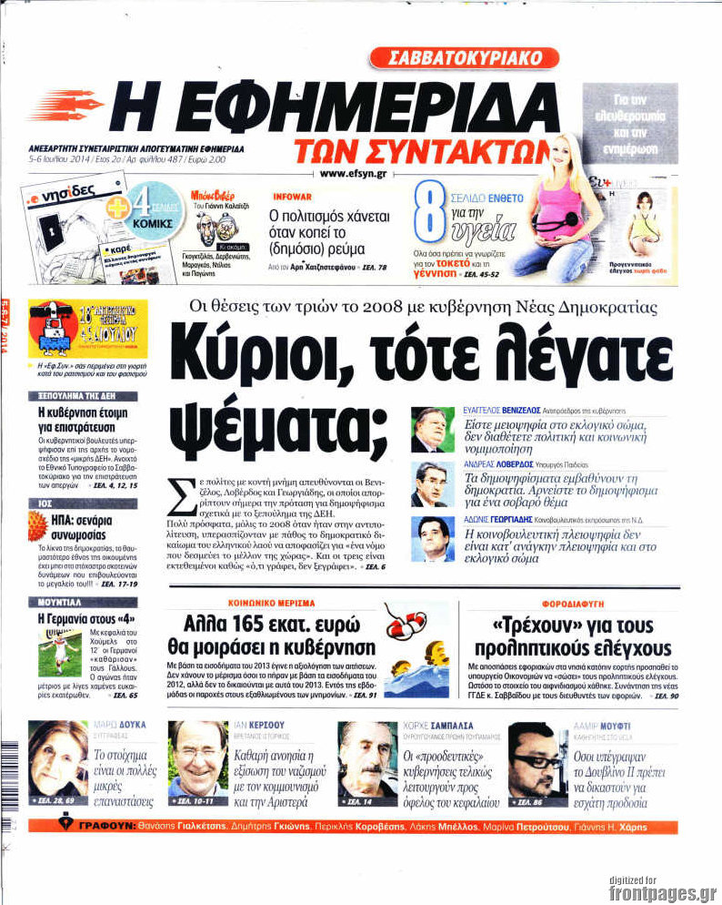 Οι πολιτικές εφημερίδες Enikos Newsroom 07:52, Σάββατο 05 Ιουλίου 2014 Media Οι πολιτικές εφημερίδες Διαβάστε τα πρωτοσέλιδα των πολιτικών εφημερίδων: ΕΦΗΜΕΡΙΔΕΣ ΠΟΛΙΤΙΚΕΣ ΕΦΗΜΕΡΙΔΕΣ ΠΡΩΤΟΣΕΛΙΔΑ Μοιράσου το: σχολίασε κι εσύ (0 σχόλια) Ακολουθήστε το enikos.gr στο Google News και μάθετε πρώτοι όλες τις ειδήσεις Δείτε όλες τις τελευταίες ειδήσεις από την Ελλάδα και τον Κόσμο στο enikos.gr Ειδήσεις Ροή Ειδήσεων 49 λεπτά πριν Μπλόκα: Οι αγρότες σηκώνουν τις μπάρες σε διόδια για τους εκδρομείς των Χριστουγέννων και μοιράζουν προϊόντα – Βίντεο 1 ώρα πριν Τσιάρας προς αγρότες: Τα μπλόκα και τα πείσματα δεν ωφελούν – Οι λύσεις περνούν μέσα από τον διάλογο 2 ώρες πριν Αρχεία Έπσταϊν: Οι συγκλονιστικές φωτογραφίες – Ο Μάικλ Τζάκσον, ο Μικ Τζάγκερ και ο Κέβιν Σπέισι ανάμεσα στους διάσημους που απεικονίζονται 8 λεπτά πριν Μαθητές διακινούσαν κοκαΐνη και χασίς σε σχολείο της Αττικής – 12 συλλήψεις 3 ώρες πριν Ινδία: Επτά ελέφαντες σκοτώθηκαν κατά τη σύγκρουση επιβατικού τρένου με κοπάδι 5 ώρες πριν Μία νέα «χρυσή» περίοδος αρχίζει για 3 ζώδια από σήμερα – «Μία αναπάντεχη ευκαιρία οδηγεί στην επιτυχία» 6 ώρες πριν Αγχώνεται για το χριστουγεννιάτικο δώρο που πήρε στην πλούσια σύντροφό του – «Φοβάμαι πως θα το βρει φθηνιάρικο, φοράει βραχιόλια Cartier» 3 ώρες πριν Διαιτολόγος αποκαλύπτει 9 πρωινές συνήθειες που «λιώνουν» το κοιλιακό λίπος – «Υποστηρίζουν την υγιεινή απώλεια βάρους» 4 ώρες πριν Οι 7 φράσεις που δεν λένε ποτέ οι συναισθηματικά έξυπνοι άνθρωποι κατά τη διάρκεια ενός καβγά 5 λεπτά πριν Γερμανού για Μαζωνάκη: «Η σχέση μας μετράει 30 χρόνια – Σαφώς και έχω άποψη» 8 λεπτά πριν Μαθητές διακινούσαν κοκαΐνη και χασίς σε σχολείο της Αττικής – 12 συλλήψεις 14 λεπτά πριν Βέλγιο: Άγνωστοι έριξαν κόκκινη μπογιά στο προξενείο της Πολωνίας στις Βρυξέλλες 21 λεπτά πριν Γρηγόρης Δημητριάδης: Χριστουγεννιάτικη συνάντηση με τα παιδιά της ΔΑΠ-ΝΔΦΚ και της ΟΝΝΕΔ 29 λεπτά πριν Στέφανος Παπαδόπουλος: Ξέσπασε σε κλάματα – «Θέλω να έρθει μπροστά μου και να μου πει ότι είμαι ψεύτης» ENIKOS NETWORK Η αποχή από την αναπαραγωγή παρατείνει τη ζωή στα ζώα, σύμφωνα με μελέτη – Τι ισχύει για τους ανθρώπους; Σημαντικές επαφές στις ΗΠΑ είχε ο υπουργός Υγείας Άδωνις Γεωργιάδης Τσιάρας προς αγρότες: Έχει ικανοποιηθεί το 74% των αιτημάτων – Τα μπλόκα και τα πείσματα δεν ωφελούν MyHealth App: Τα στοιχεία για τον Προσωπικό Βοηθό Υγείας Πολίτη – Τι ερωτήματα έγιναν μέσα σε 7 ημέρες Χαρτογραφώντας το «σημείο χωρίς επιστροφή»: Για πρώτη φορά αποκαλύπτεται με λεπτομέρεια το ακανθώδες όριο της ατμόσφαιρας τ... Η Google καταργεί τη λειτουργία «dark web report» – Πώς θα μπορούν οι χρήστες να διαγράφουν τα δεδομένα τους περισσότερα 14:04 , Σάββατο 20 Δεκεμβρίου 2025 Η Realnews αυτής της Κυριακής (21/12/2025) Με τίτλο: «Ασπίδα προστασίας για την Ελλάδα» κυκλοφορεί, αυτήν την Κυριακή, η Realnews. Σημαντ... 12:53 , Σάββατο 20 Δεκεμβρίου 2025 Να μ’ αγαπάς: Το παρελθόν έρχεται στο φως – Καταιγιστικές εξελίξεις στα τελευταία επεισόδια του 2025 Ο Άγγελος αποκαλύπτεται, η Φωτεινή ανησυχεί για τον Λευτέρη και η Ζωή έρχεται αντιμέτωπη με το... 11:41 , Σάββατο 20 Δεκεμβρίου 2025 «Η αγάπη δεν χάνεται ποτέ»: Η μικρού μήκους ταινία κινουμένων σχεδίων που θέτει ερωτήματα για τη ζωή και τον θάνατο Ο θάνατος είναι ένα από τα πιο σκληρά θέματα που καλείται να διαχειριστεί κάποιος στη διάρκεια... 09:30 , Σάββατο 20 Δεκεμβρίου 2025 «Porto Leone: Στη γειτονιά με τα κόκκινα φανάρια» – Ο Χρόνης αποκαλύπτει σ