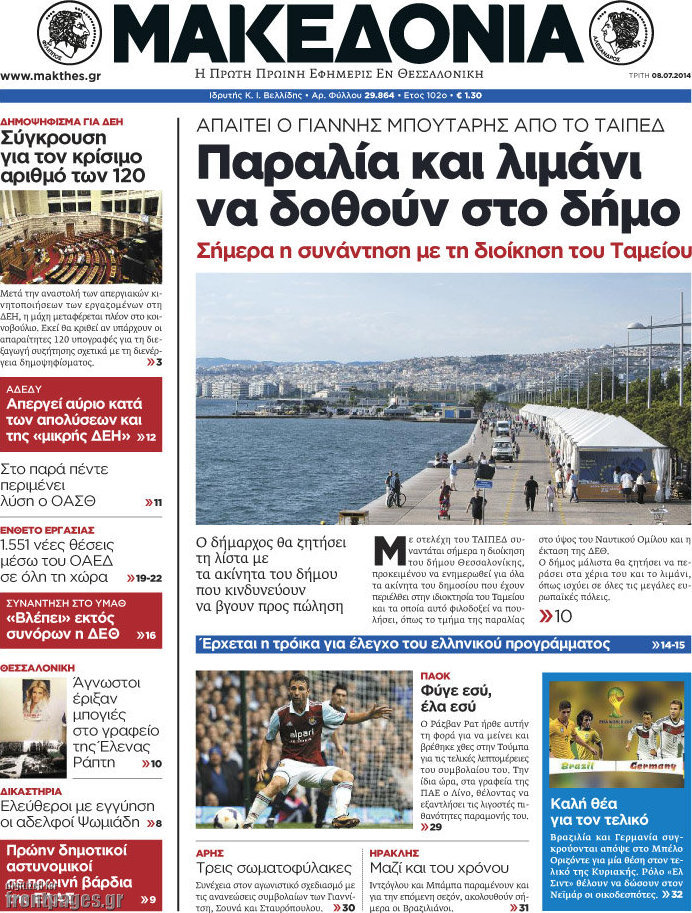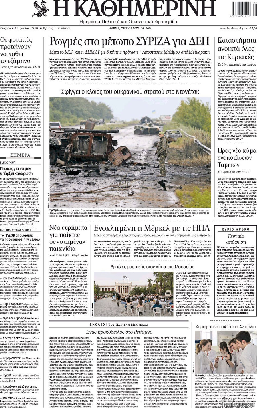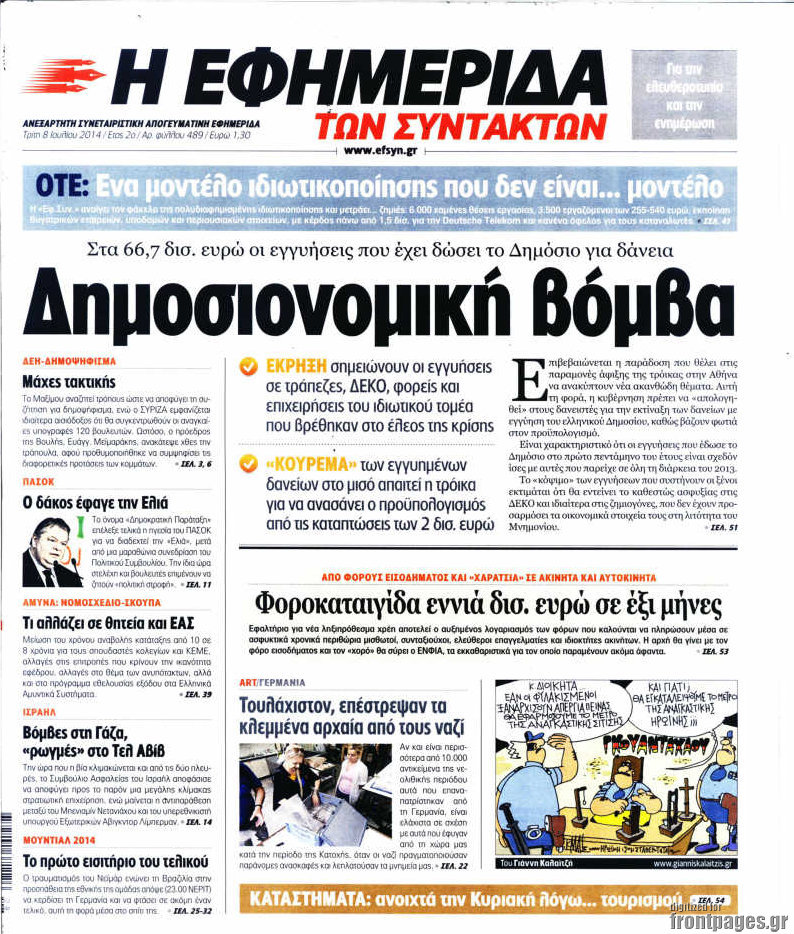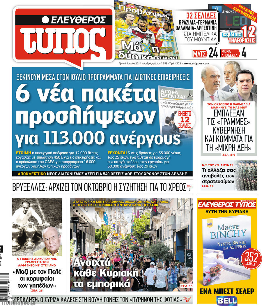 Οι πολιτικές εφημερίδες Enikos Newsroom 07:50, Τρίτη 08 Ιουλίου 2014 Media Οι πολιτικές εφημερίδες Διαβάστε τα πρωτοσέλιδα των πολιτικών εφημερίδων: ΕΦΗΜΕΡΙΔΕΣ ΠΟΛΙΤΙΚΕΣ ΕΦΗΜΕΡΙΔΕΣ ΠΡΩΤΟΣΕΛΙΔΑ Μοιράσου το: σχολίασε κι εσύ (0 σχόλια) Ακολουθήστε το enikos.gr στο Google News και μάθετε πρώτοι όλες τις ειδήσεις Δείτε όλες τις τελευταίες ειδήσεις από την Ελλάδα και τον Κόσμο στο enikos.gr Ειδήσεις Ροή Ειδήσεων 5 ώρες πριν Εκτός ευρωομάδας ΣΥΡΙΖΑ ο Νίκος Παππάς μετά την επίθεση στον δημοσιογράφο Νίκο Γιαννόπουλο – Η μήνυση και οι νέες δηλώσεις 6 ώρες πριν «Αγριεύουν» οι αγρότες: «Δεν συντρέχει λόγος συνάντησης με τον πρωθυπουργό» – Ώρα αποφάσεων στη σύσκεψη της Πέμπτης 6 ώρες πριν Κυψέλη: Χωρίς την οικογένειά της δίπλα της απολογήθηκε η 16χρονη – «Της είχε επιτεθεί κάποιος για να την βιάσει, φοβήθηκε και κυκλοφορούσε με μαχαίρι» 5 ώρες πριν Politico: Το πρόβλημα της Ευρώπης δεν είναι το Βέλγιο αλλά ο Ντόναλντ Τραμπ 7 ώρες πριν Αλεξανδρούπολη: Πολυοργανική ανεπάρκεια λόγω υποσιτισμού η αιτία θανάτου του 3χρονου αγοριού 6 ώρες πριν Μυστήριο με τεράστιες κυκλικές πέτρες 200 κιλών – Ανακαλύφθηκαν τυχαία κατά τη διάρκεια οδικών έργων και κανείς δεν ξέρει από πού προέρχονται 7 ώρες πριν Ύπνος: Ειδικός εξηγεί τον πραγματικό λόγο που ξυπνάτε στις 4 τα ξημερώματα – Ο ρόλος των ορμονών και του κιρκάδιου ρυθμού 8 ώρες πριν Αριθμολογία: Οι άνθρωποι που έχουν γεννηθεί αυτές τις 4 ημερομηνίες, είναι τρυφεροί και αγαπούν ανιδιοτελώς 19 ώρες πριν 20 χρόνια τα Χριστούγεννα ξεκινούν στα Public με μεγάλη ποικιλία σε δώρα! 4 λεπτά πριν Κτηνοτρόφοι: Με δάκρυα στα μάτια ζουν τον εφιάλτη των άδειων στάβλων – «Καταστράφηκαν οι ζωές μας» 19 λεπτά πριν Νέο αμερικανικό πλήγμα σε σκάφος που φέρεται να μετέφερε ναρκωτικά στον Ειρηνικό – Τέσσερις νεκροί 34 λεπτά πριν Αλ Τσαντίρι Νιουζ: «Λύγισε» ο Δημήτρης Λάλος για τον Δημήτρη Ήμελλο – «Τον μνημονεύω, να ‘ναι καλά εκεί που είναι» 49 λεπτά πριν GNTM: Με δάκρυα τον αποχαιρέτησε η Ηλιάνα Παπαγεωργίου πριν από τον ημιτελικό – «Αισθάνομαι πολύ παράξενα» 1 ώρα πριν Αμερικανικά στρατεύματα στον Ισημερινό για «προσωρινή» επιχείρηση κατά των ναρκωτικών ENIKOS NETWORK Αϋπνία: Το κόλπο που θα σας βοηθήσει να κοιμηθείτε απόψε – Είναι απλό και έχει αποτέλεσμα 2,6 εκατομμύρια πολίτες έχουν ήδη εμβολιαστεί κατά της γρίπης ΕΛΣΤΑΤ: Τι δείχνουν τα νέα στοιχεία για τις ηλεκτρονικές παραγγελίες των επιχειρήσεων ΚΕΠΕ: Οι 3 διακριτές συμβολές των ΜμΕ και της μεταποίησης στην ελληνική οικονομία Χαρτογραφώντας το «σημείο χωρίς επιστροφή»: Για πρώτη φορά αποκαλύπτεται με λεπτομέρεια το ακανθώδες όριο της ατμόσφαιρας τ... Η Google καταργεί τη λειτουργία «dark web report» – Πώς θα μπορούν οι χρήστες να διαγράφουν τα δεδομένα τους περισσότερα 02:30 , Πέμπτη 18 Δεκεμβρίου 2025 Αλ Τσαντίρι Νιουζ: Η κόρη της Πάολα στο κοινό – Η ατάκα Λαζόπουλου που την έκανε να «κοκκινήσει» Γιορτινή διάθεση και ευχάριστες στιγμές γέμισε η αποψινή, τελευταία για το 2025, εκπομπή του «... 22:24 , Τετάρτη 17 Δεκεμβρίου 2025 Το Σπίτι Δίπλα Στο Ποτάμι: Σε κίνδυνο η υγεία του Απόστολου – Τι θα δούμε απόψε “Το Σπίτι Δίπλα στο Ποτάμι” ξετυλίγει το νήμα της ζωής των πέντε αδελφών με καταισ... 21:14 , Τετάρτη 17 Δεκεμβρίου 2025 Παιχνίδια Εκδίκησης: Θα καταφέρει ο Χρήστος να κλονίσει την εμπιστοσύνη της Μάγιας απέναντι στον Άγη; Τα «Παιχνίδια Εκδίκησης» έρχονται απόψε στις 22:30, στον Αντ1, με το τελευταίο επεισόδιο της χ... 20:57 , Τετάρτη 17 Δεκεμβρίου 2025 Άγι