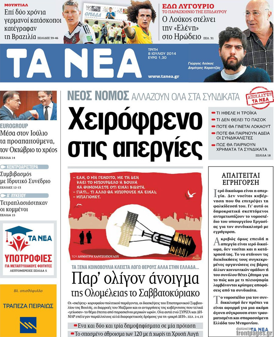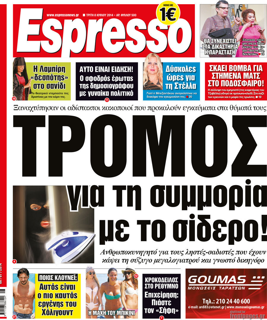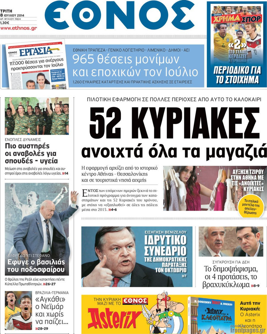 Οι πολιτικές εφημερίδες Enikos Newsroom 07:50, Τρίτη 08 Ιουλίου 2014 Media Οι πολιτικές εφημερίδες Διαβάστε τα πρωτοσέλιδα των πολιτικών εφημερίδων: ΕΦΗΜΕΡΙΔΕΣ ΠΟΛΙΤΙΚΕΣ ΕΦΗΜΕΡΙΔΕΣ ΠΡΩΤΟΣΕΛΙΔΑ Μοιράσου το: σχολίασε κι εσύ (0 σχόλια) Ακολουθήστε το enikos.gr στο Google News και μάθετε πρώτοι όλες τις ειδήσεις Δείτε όλες τις τελευταίες ειδήσεις από την Ελλάδα και τον Κόσμο στο enikos.gr Ειδήσεις Ροή Ειδήσεων 5 ώρες πριν Εκτός ευρωομάδας ΣΥΡΙΖΑ ο Νίκος Παππάς μετά την επίθεση στον δημοσιογράφο Νίκο Γιαννόπουλο – Η μήνυση και οι νέες δηλώσεις 6 ώρες πριν «Αγριεύουν» οι αγρότες: «Δεν συντρέχει λόγος συνάντησης με τον πρωθυπουργό» – Ώρα αποφάσεων στη σύσκεψη της Πέμπτης 6 ώρες πριν Κυψέλη: Χωρίς την οικογένειά της δίπλα της απολογήθηκε η 16χρονη – «Της είχε επιτεθεί κάποιος για να την βιάσει, φοβήθηκε και κυκλοφορούσε με μαχαίρι» 5 ώρες πριν Politico: Το πρόβλημα της Ευρώπης δεν είναι το Βέλγιο αλλά ο Ντόναλντ Τραμπ 7 ώρες πριν Αλεξανδρούπολη: Πολυοργανική ανεπάρκεια λόγω υποσιτισμού η αιτία θανάτου του 3χρονου αγοριού 6 ώρες πριν Μυστήριο με τεράστιες κυκλικές πέτρες 200 κιλών – Ανακαλύφθηκαν τυχαία κατά τη διάρκεια οδικών έργων και κανείς δεν ξέρει από πού προέρχονται 7 ώρες πριν Ύπνος: Ειδικός εξηγεί τον πραγματικό λόγο που ξυπνάτε στις 4 τα ξημερώματα – Ο ρόλος των ορμονών και του κιρκάδιου ρυθμού 8 ώρες πριν Αριθμολογία: Οι άνθρωποι που έχουν γεννηθεί αυτές τις 4 ημερομηνίες, είναι τρυφεροί και αγαπούν ανιδιοτελώς 19 ώρες πριν 20 χρόνια τα Χριστούγεννα ξεκινούν στα Public με μεγάλη ποικιλία σε δώρα! 4 λεπτά πριν Κτηνοτρόφοι: Με δάκρυα στα μάτια ζουν τον εφιάλτη των άδειων στάβλων – «Καταστράφηκαν οι ζωές μας» 19 λεπτά πριν Νέο αμερικανικό πλήγμα σε σκάφος που φέρεται να μετέφερε ναρκωτικά στον Ειρηνικό – Τέσσερις νεκροί 34 λεπτά πριν Αλ Τσαντίρι Νιουζ: «Λύγισε» ο Δημήτρης Λάλος για τον Δημήτρη Ήμελλο – «Τον μνημονεύω, να ‘ναι καλά εκεί που είναι» 49 λεπτά πριν GNTM: Με δάκρυα τον αποχαιρέτησε η Ηλιάνα Παπαγεωργίου πριν από τον ημιτελικό – «Αισθάνομαι πολύ παράξενα» 1 ώρα πριν Αμερικανικά στρατεύματα στον Ισημερινό για «προσωρινή» επιχείρηση κατά των ναρκωτικών ENIKOS NETWORK Αϋπνία: Το κόλπο που θα σας βοηθήσει να κοιμηθείτε απόψε – Είναι απλό και έχει αποτέλεσμα 2,6 εκατομμύρια πολίτες έχουν ήδη εμβολιαστεί κατά της γρίπης ΕΛΣΤΑΤ: Τι δείχνουν τα νέα στοιχεία για τις ηλεκτρονικές παραγγελίες των επιχειρήσεων ΚΕΠΕ: Οι 3 διακριτές συμβολές των ΜμΕ και της μεταποίησης στην ελληνική οικονομία Χαρτογραφώντας το «σημείο χωρίς επιστροφή»: Για πρώτη φορά αποκαλύπτεται με λεπτομέρεια το ακανθώδες όριο της ατμόσφαιρας τ... Η Google καταργεί τη λειτουργία «dark web report» – Πώς θα μπορούν οι χρήστες να διαγράφουν τα δεδομένα τους περισσότερα 02:30 , Πέμπτη 18 Δεκεμβρίου 2025 Αλ Τσαντίρι Νιουζ: Η κόρη της Πάολα στο κοινό – Η ατάκα Λαζόπουλου που την έκανε να «κοκκινήσει» Γιορτινή διάθεση και ευχάριστες στιγμές γέμισε η αποψινή, τελευταία για το 2025, εκπομπή του «... 22:24 , Τετάρτη 17 Δεκεμβρίου 2025 Το Σπίτι Δίπλα Στο Ποτάμι: Σε κίνδυνο η υγεία του Απόστολου – Τι θα δούμε απόψε “Το Σπίτι Δίπλα στο Ποτάμι” ξετυλίγει το νήμα της ζωής των πέντε αδελφών με καταισ... 21:14 , Τετάρτη 17 Δεκεμβρίου 2025 Παιχνίδια Εκδίκησης: Θα καταφέρει ο Χρήστος να κλονίσει την εμπιστοσύνη της Μάγιας απέναντι στον Άγη; Τα «Παιχνίδια Εκδίκησης» έρχονται απόψε στις 22:30, στον Αντ1, με το τελευταίο επεισόδιο της χ... 20:57 , Τετάρτη 17 Δεκεμβρίου 2025 Άγι