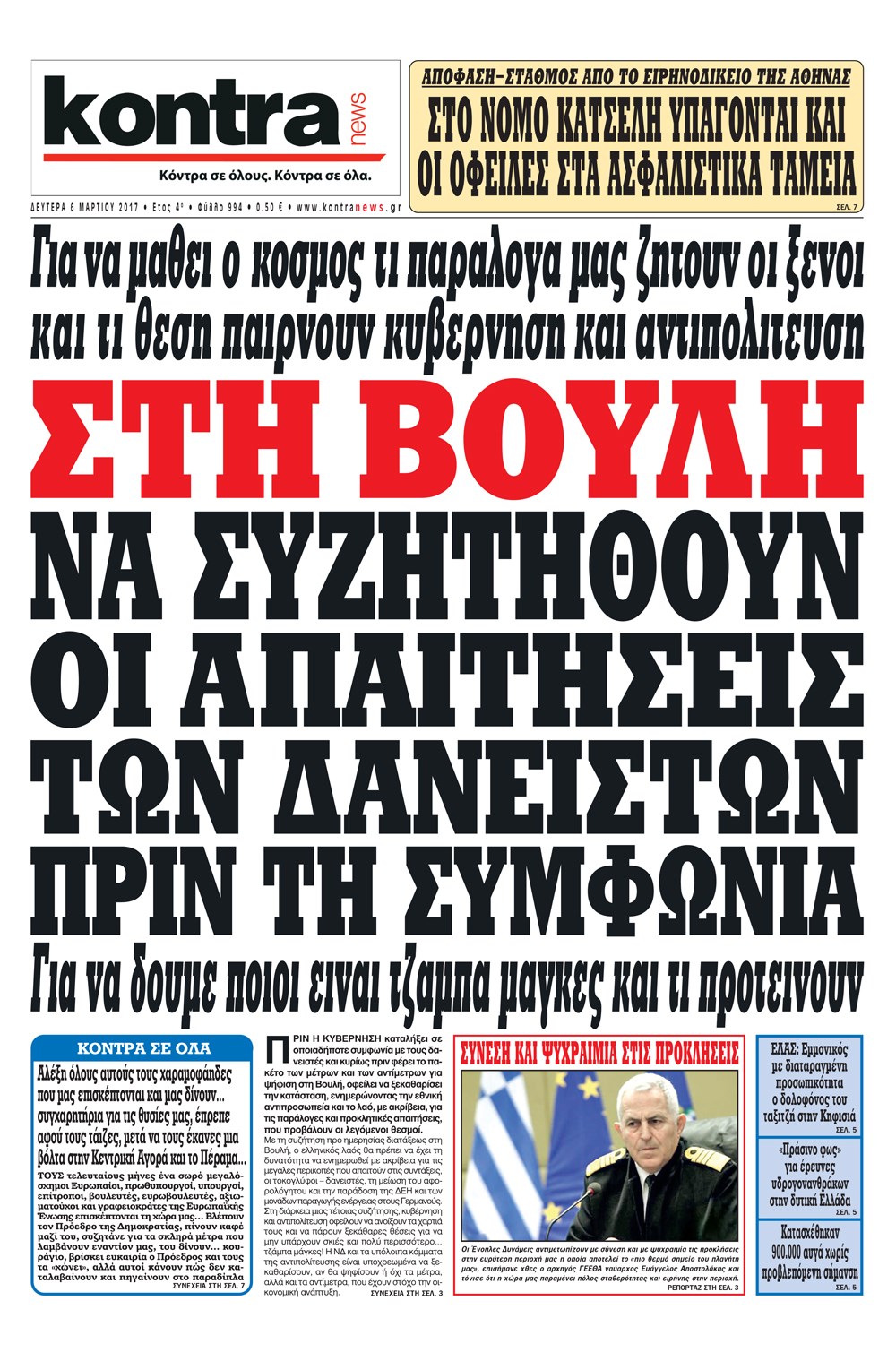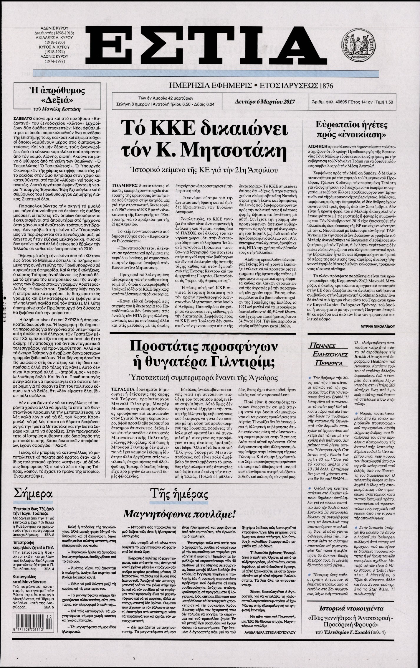 Διαβάστε τα σημερινά πρωτοσέλιδα των πολιτικών εφημερίδων: