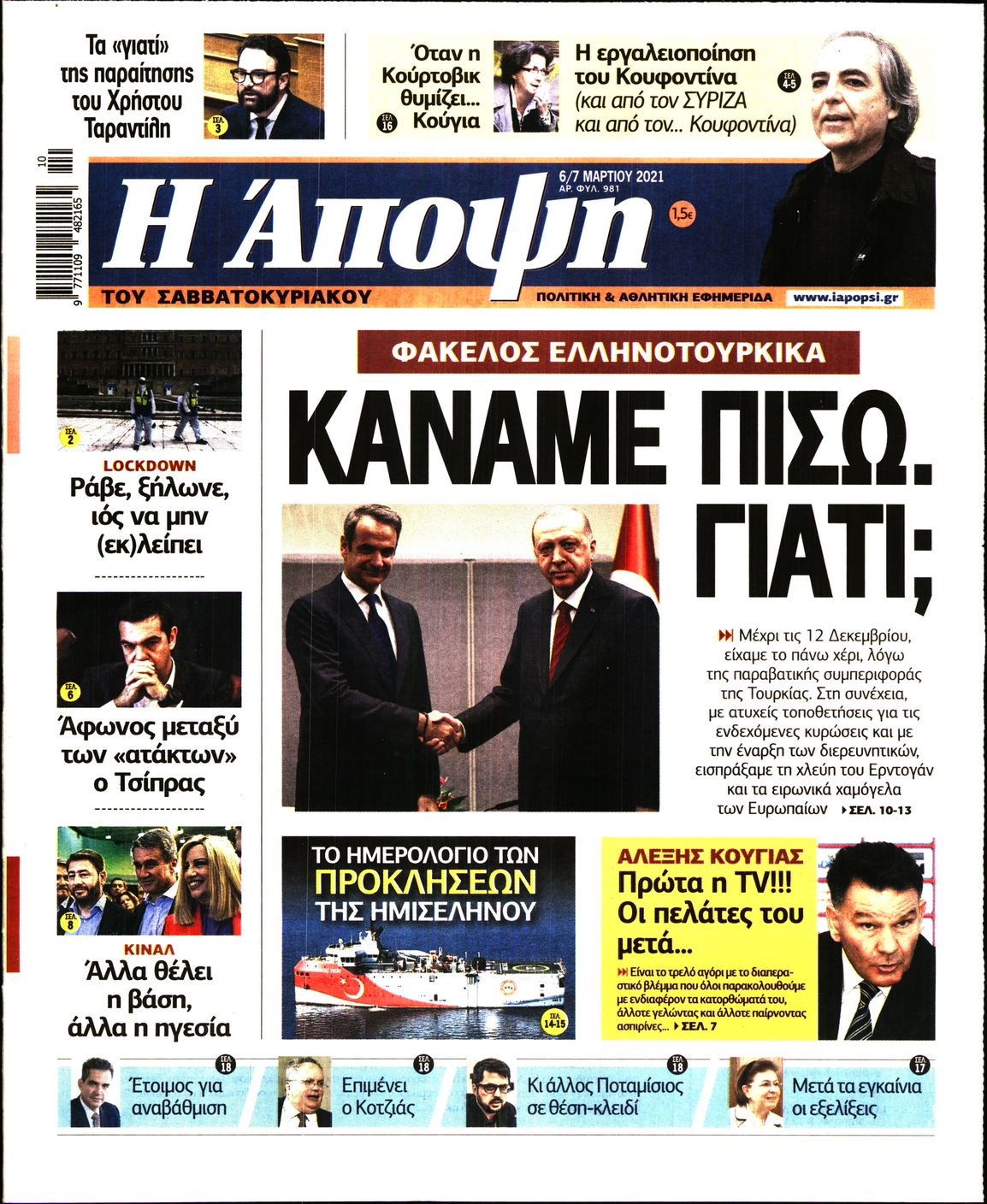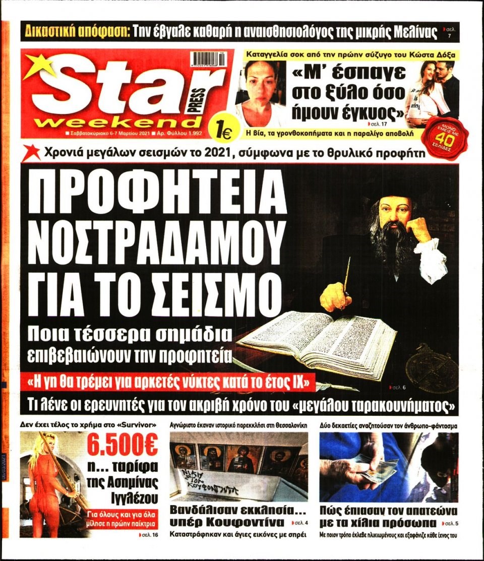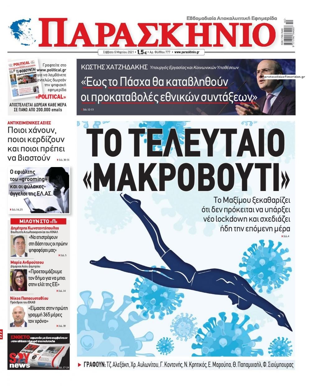 Οι πολιτικές εφημερίδες 6/3/2021 Διονύσης Νίκκας 07:08, Σάββατο 06 Μαρτίου 2021 Media Διαβάστε τα πρωτοσέλιδα των πολιτικών εφημερίδων… ΕΦΗΜΕΡΙΔΕΣ ΠΡΩΤΟΣΕΛΙΔΑ Μοιράσου το: σχολίασε κι εσύ (0 σχόλια) Ακολουθήστε το enikos.gr στο Google News και μάθετε πρώτοι όλες τις ειδήσεις Δείτε όλες τις τελευταίες ειδήσεις από την Ελλάδα και τον Κόσμο στο enikos.gr Ειδήσεις Ροή Ειδήσεων 4 ώρες πριν Υπόθεση Έπσταϊν: Το Υπουργείο Δικαιοσύνης δημοσιοποίησε μια σειρά από εξαιρετικά επεξεργασμένα αρχεία – «Λείπουν τα πιο σημαντικά έγγραφα», λένε οι Δημοκρατικοί 49 λεπτά πριν Γιορτές με μπλόκα για τους αγρότες: Ανοίγουν διόδια και μοιράζουν προϊόντα στους ταξιδιώτες 1 ώρα πριν Εξαφάνιση 33χρονου γιατρού στην Κρήτη: «Άναψα τα φώτα, τρόμαξε και άρχισε να τρέχει στα χωράφια» – Η τελευταία διαδρομή και η μαρτυρία «κλειδί» 3 ώρες πριν Ο «χάρτης» με τις αυξήσεις και τις φοροελαφρύνσεις του 2026 – Ποιοι και πόσα κερδίζουν 1 ώρα πριν Τα αρχεία του Έπσταϊν αποκαλύπτουν φωτογραφία του έκπτωτου πρίγκιπα Άντριου – Είναι ξαπλωμένος στην αγκαλιά 5 γυναικών 1 ώρα πριν Μία νέα «χρυσή» περίοδος αρχίζει για 3 ζώδια από σήμερα – «Μία αναπάντεχη ευκαιρία οδηγεί στην επιτυχία» 5 ώρες πριν Αυγά: Πόσα μπορείτε να τρώτε την ημέρα με ασφάλεια για μέγιστη πρόσληψη πρωτεΐνης 3 ώρες πριν Αρχαιολόγοι ανακάλυψαν σε χωράφι απεικόνιση 600 ετών ενός Αγίου – Τα στοιχεία που δείχνουν ότι μαρτύρησε 2 ώρες πριν Αγχώνεται για το χριστουγεννιάτικο δώρο που πήρε στην πλούσια σύντροφό του – «Φοβάμαι πως θα το βρει φθηνιάρικο, φοράει βραχιόλια Cartier» 7 λεπτά πριν Τα Labubu «μετακομίζουν» στο Χόλιγουντ: Η Sony Pictures ετοιμάζει live-action ταινία με τον σκηνοθέτη του «Wonka» 14 λεπτά πριν Νέες ταυτότητες: Μεγάλη αναμονή για ραντεβού στην Αττική – Τέλος τα ταξίδια εκτός Ελλάδος από τον Αύγουστο για όσους δεν έχουν αλλάξει 23 λεπτά πριν Οι 7 φράσεις που δεν λένε ποτέ οι συναισθηματικά έξυπνοι άνθρωποι κατά τη διάρκεια ενός καβγά 26 λεπτά πριν Τηλεθέαση (19/12): Ανατροπές και πρωτιές στην πρωινή ζώνη 34 λεπτά πριν Πώς η κλιματική αλλαγή επηρεάζει εγκύους και βρέφη – Οι επιπτώσεις των υψηλών θερμοκρασιών ENIKOS NETWORK Είστε μόνιμα απρόσεκτοι; 3 σημάδια που δείχνουν ότι μπορεί να είναι σύμπτωμα πάθησης Πόσα κιλά παίρνουμε πραγματικά τα Χριστούγεννα, σύμφωνα με την επιστήμη – Πώς να το αποτρέψουμε; e-ΕΦΚΑ και ΔΥΠΑ: Έρχονται νέες πληρωμές έως τις 24 Δεκεμβρίου – Ποιοι πάνε ταμείο Επίδομα παιδιού: Τι αλλάζει από το 2026 – Το όφελος από τις φορολογικές ελαφρύνσεις Χαρτογραφώντας το «σημείο χωρίς επιστροφή»: Για πρώτη φορά αποκαλύπτεται με λεπτομέρεια το ακανθώδες όριο της ατμόσφαιρας τ... Η Google καταργεί τη λειτουργία «dark web report» – Πώς θα μπορούν οι χρήστες να διαγράφουν τα δεδομένα τους περισσότερα 09:30 , Σάββατο 20 Δεκεμβρίου 2025 «Porto Leone: Στη γειτονιά με τα κόκκινα φανάρια» – Ο Χρόνης αποκαλύπτει στην Αλεξάνδρα το μυστικό για το παιδί της Λένας Η μεγάλη δραματική σειρά του Apha «Porto Leone: Στη γειτονιά με τα κόκκινα φανάρια» μας μεταφέ... 08:14 , Σάββατο 20 Δεκεμβρίου 2025 Τρομεροί γονείς: Η Μαρία Καβογιάννη εισβάλλει στο σπίτι της οικογένειας Στεφανίδη Όσα θα δούμε στο νέο διπλό επεισόδιο της σειράς «Τρομεροί γονείς», σήμερα Σάββατο 20 Δεκεμβρίο... 05:48 , Σάββατο 20 Δεκεμβρίου 2025 Οι οικονομικές εφημερίδες 20/12/2025 Διαβάστε τα πρωτοσέλιδα από τις οικονομικές εφημερίδες, σήμερα 20/12/2025. 05:43 , Σάββατο 20 Δεκεμβρίου 2025 Οι αθλητικές εφημερίδες 20/12/2025 Διαβάστε τα πρωτοσέλιδα από τις αθλητικ