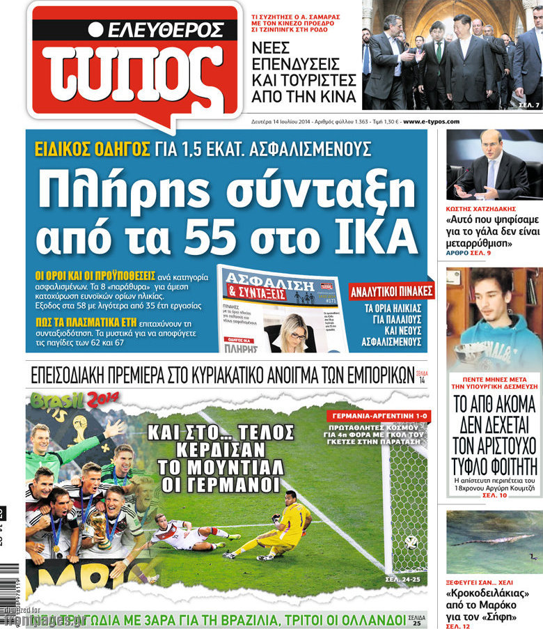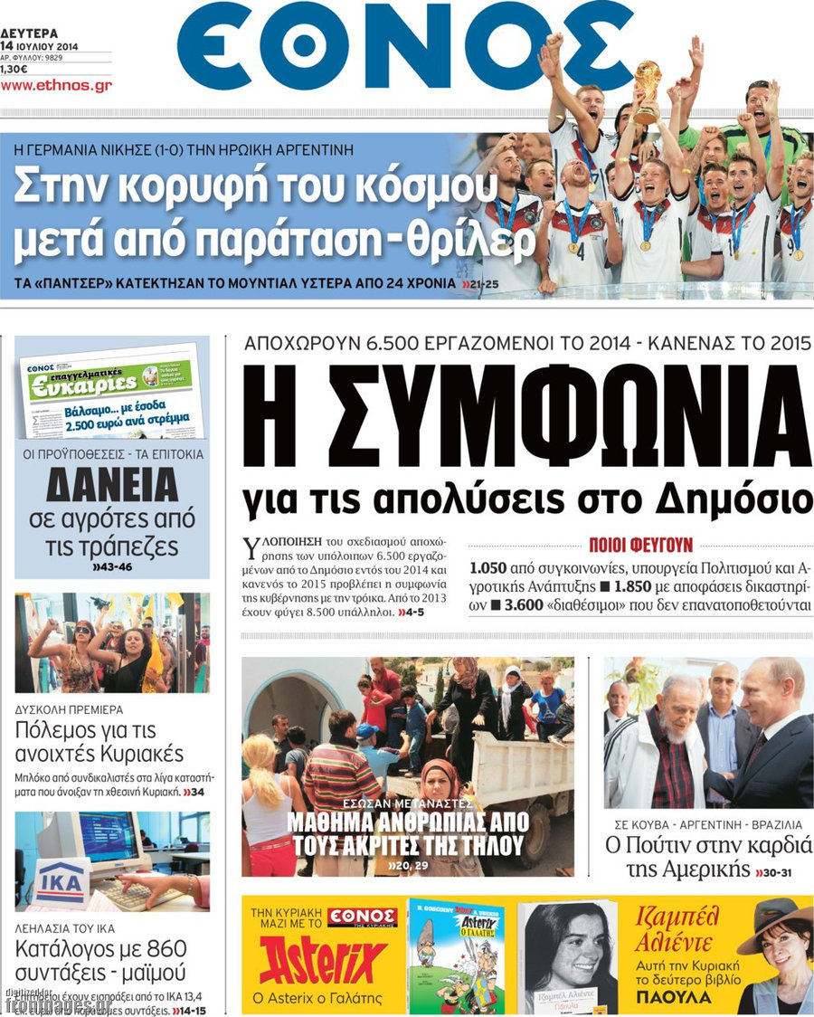 Οι πολιτικές εφημερίδες Enikos Newsroom 07:58, Δευτέρα 14 Ιουλίου 2014 Media Οι πολιτικές εφημερίδες Διαβάστε τα πρωτοσέλιδα των πολιτικών εφημερίδων. ΠΟΛΙΤΙΚΕΣ ΕΦΗΜΕΡΙΔΕΣ ΠΡΩΤΟΣΕΛΙΔΑ Μοιράσου το: σχολίασε κι εσύ (0 σχόλια) Ακολουθήστε το enikos.gr στο Google News και μάθετε πρώτοι όλες τις ειδήσεις Δείτε όλες τις τελευταίες ειδήσεις από την Ελλάδα και τον Κόσμο στο enikos.gr Ειδήσεις Ροή Ειδήσεων 2 ώρες πριν Πώς δρούσε το κύκλωμα που διακινούσε ναρκωτικά σε σχολεία – Υπέβαλαν σε βασανιστήρια όσους δεν τηρούσαν τους «κανόνες πειθαρχίας» 2 ώρες πριν Αγρότες: Γιορτές στα μπλόκα με ανοιχτά διόδια – Δικογραφία στα Ιωάννινα για το σήκωμα των μπαρών 2 ώρες πριν Ζελένσκι: Οι Αμερικανοί πρότειναν συνάντηση Ουκρανίας, ΗΠΑ, Ρωσίας στο Μαϊάμι 1 ώρα πριν Αττική: Εξαρθρώθηκε εγκληματική οργάνωση που έκλεβε οχήματα, τα παραποιούσε και τα μεταπωλούσε σε πολίτες – Πώς δρούσε το κύκλωμα 1 ώρα πριν Μικαέλα Μπέντχαους: Ο πρώτος άνθρωπος σε αναπηρικό αμαξίδιο που ταξίδεψε στο διάστημα – ΒΙΝΤΕΟ 3 ώρες πριν Η τύχη χαμογελά σε 3 ζώδια έως τις 28 Δεκεμβρίου – «Προσέξτε τις επιλογές σας και η επιμονή σας θα ανταμειφθεί» 7 ώρες πριν Διαιτολόγος αποκαλύπτει 9 πρωινές συνήθειες που «λιώνουν» το κοιλιακό λίπος – «Υποστηρίζουν την υγιεινή απώλεια βάρους» 4 ώρες πριν Μία ανεκμετάλλευτη πηγή θα μπορούσε να προσφέρει ανεξάντλητη ενέργεια – Οι επιστήμονες ίσως γνωρίζουν πώς να την ξεκλειδώσουν 10 ώρες πριν Enerwave: Το νέο «ρεύμα» στη λιανική ενέργειας που αλλάζει την εμπειρία του καταναλωτή 8 λεπτά πριν Λούλα: Προειδοποιεί πως μια επέμβαση των ΗΠΑ στη Βενεζουέλα θα μπορούσε να είναι καταστροφική 17 λεπτά πριν Τραμπ: Πώς περνάει τις γιορτές των Χριστουγέννων – Τα δώρα που κάνει στα εγγόνια του 29 λεπτά πριν HOTΕΛ ΕΛVIRA: Η Ελβίρα μαθαίνει πως ο Χάρι μένει κρυφά στο ξενοδοχείο του Παντελή 39 λεπτά πριν Ερντογάν: «Δεν έχουμε βλέψεις στα εδάφη κανενός, αλλά δεν θα επιτρέψουμε να παραβιαστούν τα δικαιώματά μας» 48 λεπτά πριν Η Realnews στο www.pressreader.com ENIKOS NETWORK Γιατί πρέπει να ζητάμε χάρες; Ποιο είναι το φαινόμενο Ben Franklin που κάνει τους άλλους να μας συμπαθούν Η αποχή από την αναπαραγωγή παρατείνει τη ζωή στα ζώα, σύμφωνα με μελέτη – Τι ισχύει για τους ανθρώπους; Ολοκληρώθηκαν πληρωμές 22,16 εκατ. ευρώ για το μεταφορικό ισοδύναμο – Κικίλιας: Στηρίζουμε τη νησιωτικότητα Η Realnews στο www.pressreader.com Χαρτογραφώντας το «σημείο χωρίς επιστροφή»: Για πρώτη φορά αποκαλύπτεται με λεπτομέρεια το ακανθώδες όριο της ατμόσφαιρας τ... Η Google καταργεί τη λειτουργία «dark web report» – Πώς θα μπορούν οι χρήστες να διαγράφουν τα δεδομένα τους περισσότερα 18:19 , Σάββατο 20 Δεκεμβρίου 2025 HOTΕΛ ΕΛVIRA: Η Ελβίρα μαθαίνει πως ο Χάρι μένει κρυφά στο ξενοδοχείο του Παντελή Συνεχίζονται οι εκλογές για πρόεδρο, στο νέο επεισόδιο της κωμικής σειράς του MEGA, HOTΕΛ ΕΛVI... 14:04 , Σάββατο 20 Δεκεμβρίου 2025 Η Realnews αυτής της Κυριακής (21/12/2025) Με τίτλο: «Ασπίδα προστασίας για την Ελλάδα» κυκλοφορεί, αυτήν την Κυριακή, η Realnews. Σημαντ... 12:53 , Σάββατο 20 Δεκεμβρίου 2025 Να μ’ αγαπάς: Το παρελθόν έρχεται στο φως – Καταιγιστικές εξελίξεις στα τελευταία επεισόδια του 2025 Ο Άγγελος αποκαλύπτεται, η Φωτεινή ανησυχεί για τον Λευτέρη και η Ζωή έρχεται αντιμέτωπη με το... 11:41 , Σάββατο 20 Δεκεμβρίου 2025 «Η αγάπη δεν χάνεται ποτέ»: Η μικρού μήκους ταινία κινουμένων σχεδίων που θέτει ερωτήματα για τη ζωή και τον θάνατο Ο θάνατος είναι ένα από τα πιο σκληρά θέματα που καλείται να διαχειριστεί κάποιος στη 
