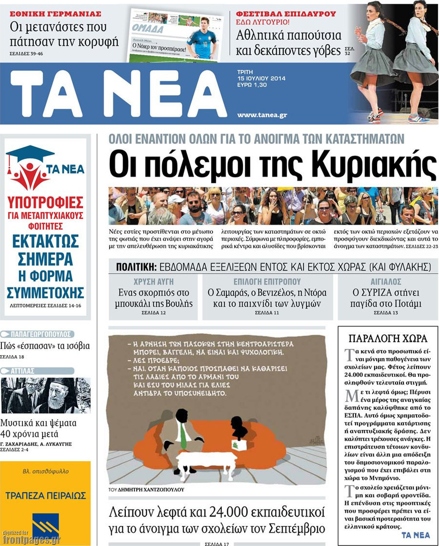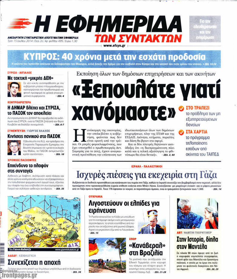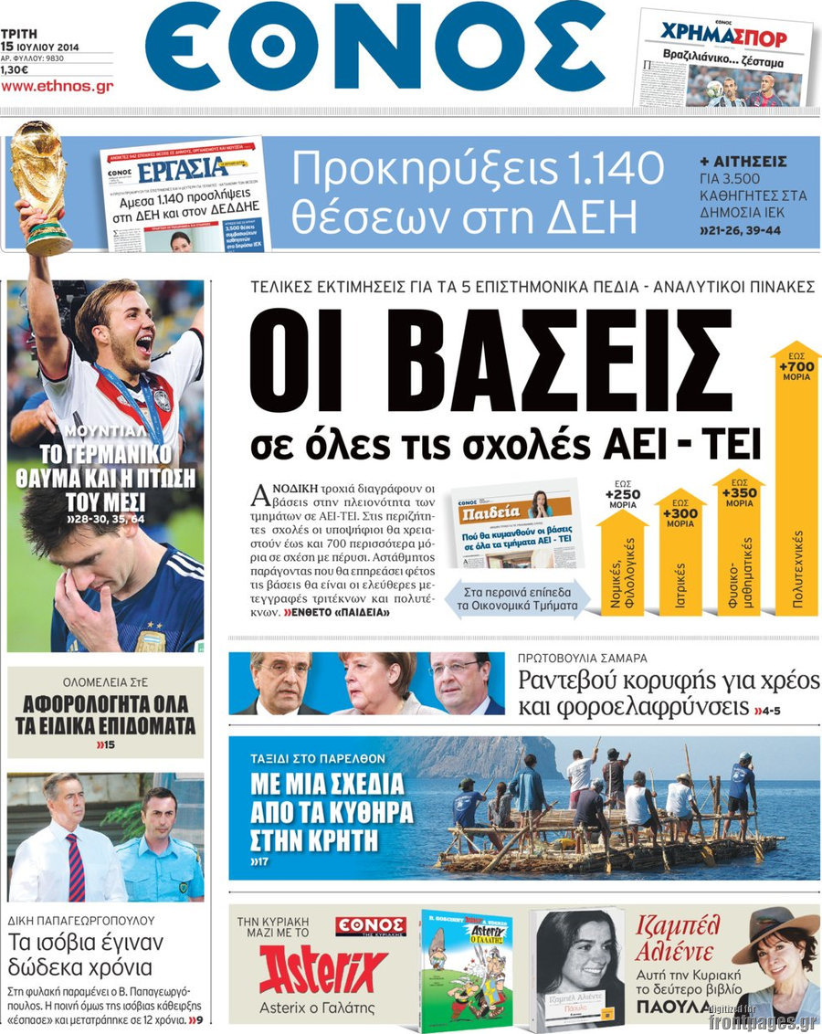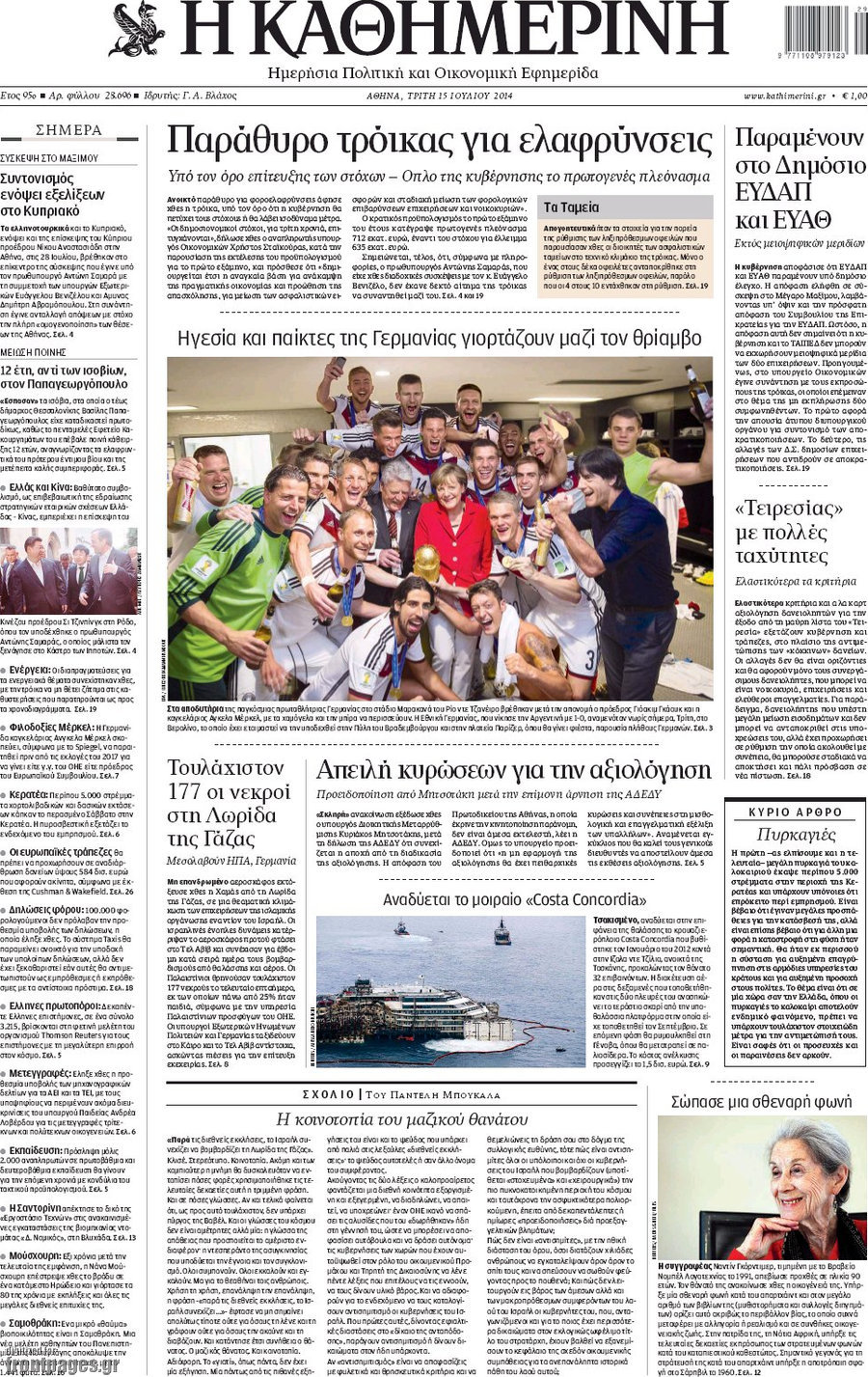 Οι πολιτικές εφημερίδες Enikos Newsroom 08:07, Τρίτη 15 Ιουλίου 2014 Media Οι πολιτικές εφημερίδες Διαβάστε τα πρωτοσέλιδα των πολιτικών εφημερίδων: ΕΦΗΜΕΡΙΔΕΣ ΠΟΛΙΤΙΚΕΣ ΕΦΗΜΕΡΙΔΕΣ ΠΡΩΤΟΣΕΛΙΔΑ Μοιράσου το: σχολίασε κι εσύ (0 σχόλια) Ακολουθήστε το enikos.gr στο Google News και μάθετε πρώτοι όλες τις ειδήσεις Δείτε όλες τις τελευταίες ειδήσεις από την Ελλάδα και τον Κόσμο στο enikos.gr Ειδήσεις Ροή Ειδήσεων 3 ώρες πριν Χριστούγεννα στα μπλόκα οι αγρότες: Άνοιξαν στα διόδια και μοίρασαν προϊόντα στους πολίτες – Νέα σύσκεψη την Κυριακή στη Νίκαια 3 ώρες πριν Κύκλωμα διακίνησης ναρκωτικών σε σχολεία: Τηλεφωνούσαν στους ανηλίκους την ώρα του μαθήματος – Οι διάλογοι-σοκ, τα «ψευδώνυμα» και τα βασανιστήρια 3 ώρες πριν Αρχεία Επστάιν: Οι 500 σελίδες που λείπουν, τα αναπάντητα ερωτήματα και οι επώνυμοι – Τι έπεται 4 ώρες πριν Ζελένσκι: Μόνο οι ΗΠΑ και ο Τραμπ μπορούν να πιέσουν τη Ρωσία να βάλει τέλος στον πόλεμο 5 ώρες πριν Φοινικούντα: Προφυλακιστέος ο 30χρονος για συνέργεια στη διπλή δολοφονία – Και άλλα πρόσωπα στο «μικροσκόπιο» 3 ώρες πριν Αποκαλύφθηκε το άγνωστο «GPS» της αρχαιότητας – Πώς οι ναοί «φώτιζαν» τον δρόμο των ναυτικών πριν από την εφεύρεση των φάρων 4 ώρες πριν Ύπνος: Η διατροφή που μπορεί να σας βοηθήσει να κοιμάστε καλύτερα και να ζήσετε περισσότερο 5 ώρες πριν Αριθμολογία: Ο αριθμός του φύλακα αγγέλου σας, με βάση τον μήνα γέννησής σας – «Έτσι σας στέλνει σημάδια το σύμπαν» 17 ώρες πριν Enerwave: Το νέο «ρεύμα» στη λιανική ενέργειας που αλλάζει την εμπειρία του καταναλωτή 20 λεπτά πριν Φωτεινή Αθερίδου: «Προσπαθώ να είμαι κάθετη και αυστηρή σαν μαμά πια» 35 λεπτά πριν ΗΠΑ, Αίγυπτος, Κατάρ και Τουρκία συζήτησαν τη δεύτερη φάση του ειρηνευτικού σχεδίου για τη Γάζα 51 λεπτά πριν Γιάννης Αντετοκούνμπο: Έμεινε στην 6η θέση της ψηφοφορίας του ESPN για το βραβείο του MVP του NBA 1 ώρα πριν Ρετζέπ Ταγίπ Ερντογάν: Δεν έχουμε καμία βλέψη στα εδάφη ή την κυριαρχία κανενός – Δεν θα επιτρέψουμε να παραβιαστούν τα δικαιώματά μας 1 ώρα πριν Γερμανία: Εκδήλωση μνήμης για τα θύματα της επίθεσης στη χριστουγεννιάτικη αγορά του Μαγδεμβούργου ENIKOS NETWORK Οι γυναίκες αποκαλύπτουν το πιο ελκυστικό πράγμα που μπορεί να κάνει ένας άνδρας Ομορφιά και αντιγήρανση: Ειδικοί μιλούν για συσκευές περιποίησης του δέρματος «Πολεμική» προετοιμασία από την ευρωπαϊκή βιομηχανία ενέργειας – Η Eurelectric ζητεί «ομπρέλα» προστασίας για τις υποδομές Ακύρωση ΑΦΜ για απάτες – Ποιους βάζει στο στόχαστρο η ΑΑΔΕ Χαρτογραφώντας το «σημείο χωρίς επιστροφή»: Για πρώτη φορά αποκαλύπτεται με λεπτομέρεια το ακανθώδες όριο της ατμόσφαιρας τ... Η Google καταργεί τη λειτουργία «dark web report» – Πώς θα μπορούν οι χρήστες να διαγράφουν τα δεδομένα τους περισσότερα 00:00 , Κυριακή 21 Δεκεμβρίου 2025 The Voice: Η επιστροφή της Έλενας Παπαρίζου και η ατάκα του Γιώργου Μαζωνάκη μετά τις καταγγελίες Στη φάση των Cross Battles Live μπήκε το The Voice, με την Έλενα Παπαρίζου να επιστρέφει στο π... 20:30 , Σάββατο 20 Δεκεμβρίου 2025 Αυτή την Κυριακή με τη Realnews: Instyle, μαζί Drive και Realnews Geopolitics Αυτή την Κυριακή με τη Realnews: Instyle, μαζί Drive και Realnews Geopolitics Instyle Η Άννα Ρ... 20:28 , Σάββατο 20 Δεκεμβρίου 2025 Ο ΑΝΤ1 γεμίζει τις γιορτές με μουσική – Ποιους καλλιτέχνες θα απολαύσουμε Φέτος στον ΑΝΤ1 γιορτάζουμε τις νύχτες μας παρέα με αγαπημένους καλλιτέχνες και μεγάλες μουσι... 18:19 , Σάββατο 20 Δεκεμβρίου 2025 HOTΕΛ ΕΛVIRA: Η Ελβίρα μαθαίνει πως ο Χάρι μένει κρυφά στο ξενοδοχείο του Παντελή Συνεχίζονται 