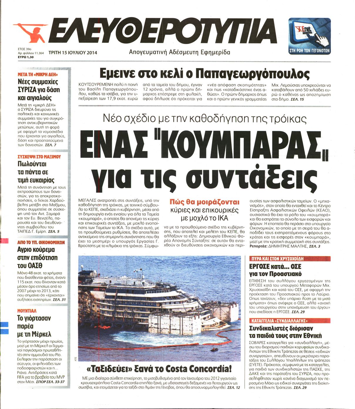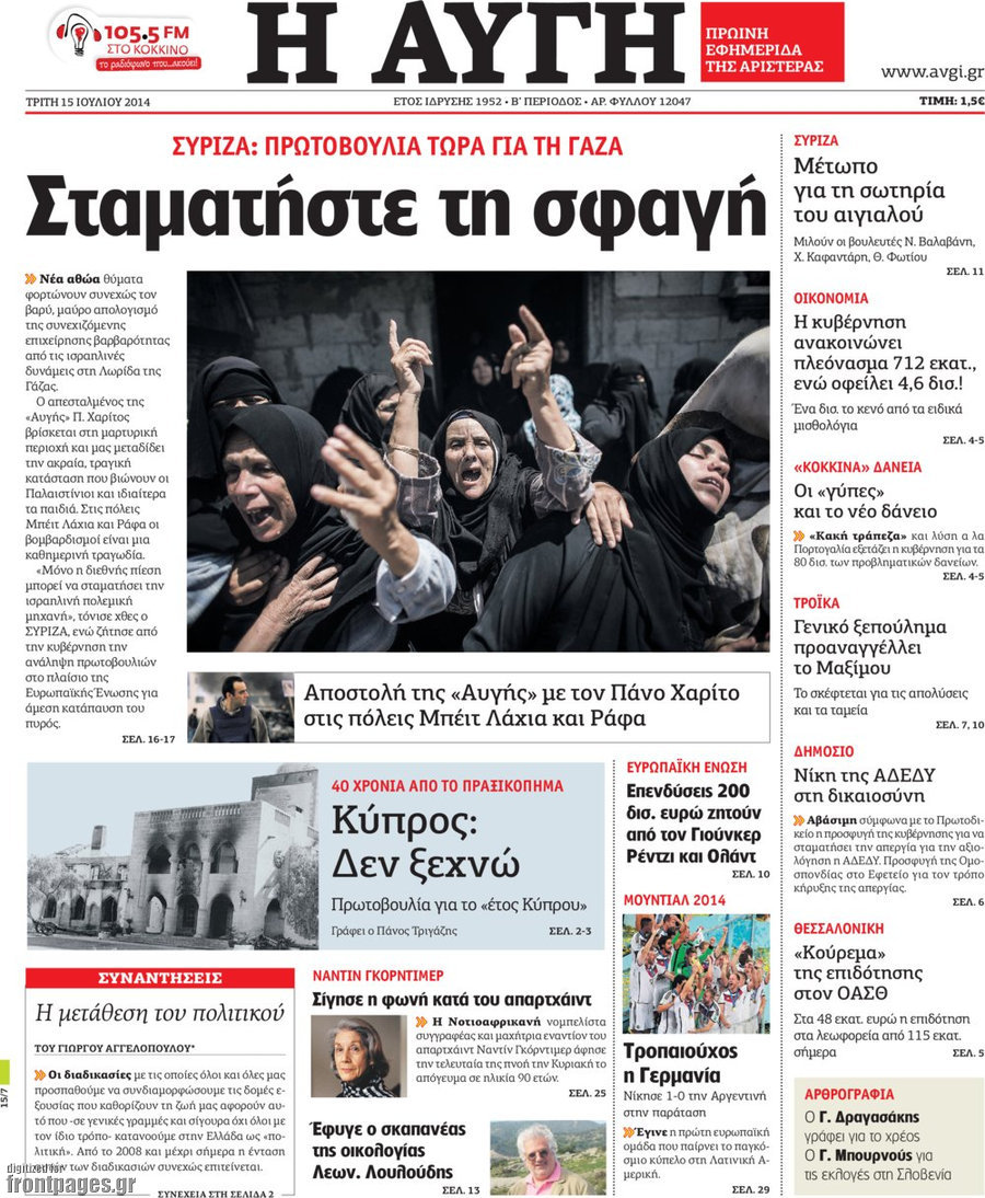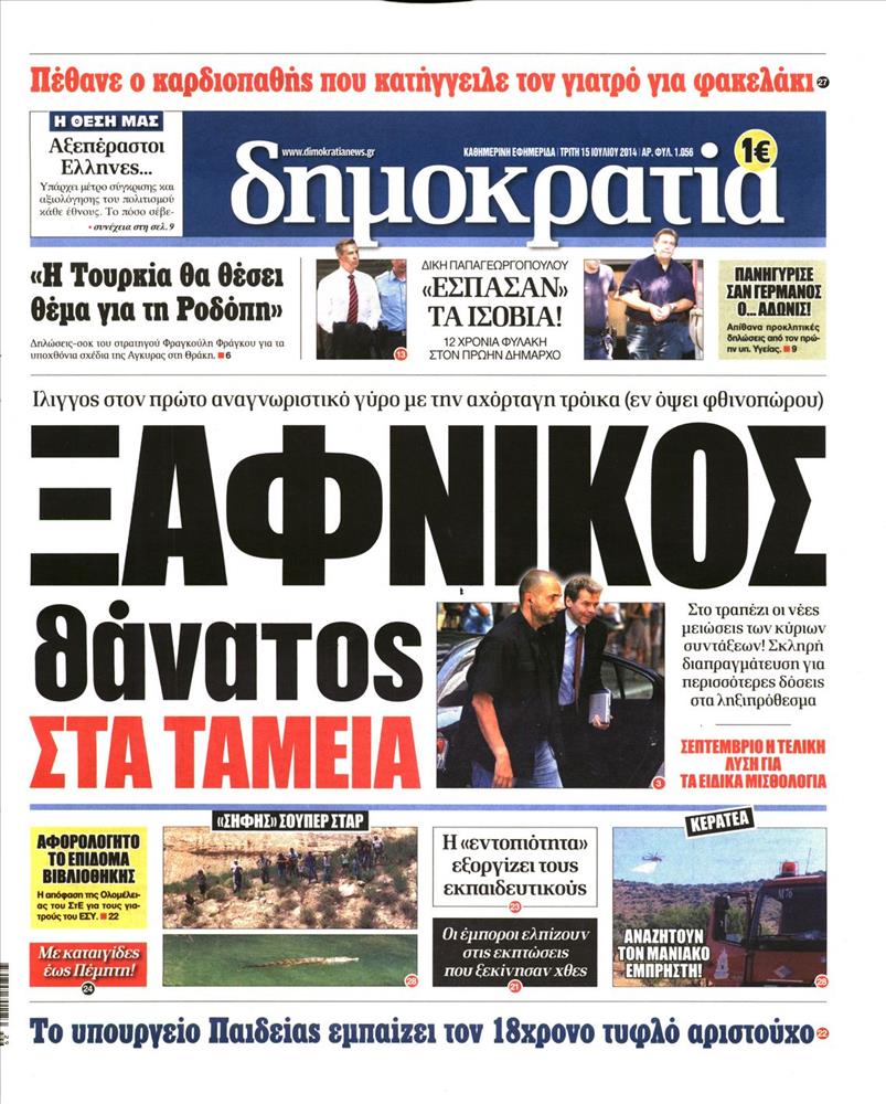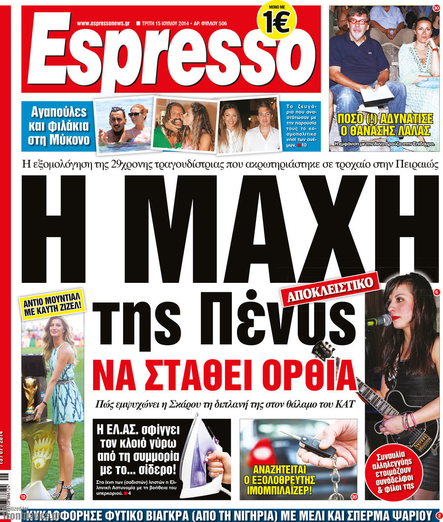 Οι πολιτικές εφημερίδες Enikos Newsroom 08:07, Τρίτη 15 Ιουλίου 2014 Media Οι πολιτικές εφημερίδες Διαβάστε τα πρωτοσέλιδα των πολιτικών εφημερίδων: ΕΦΗΜΕΡΙΔΕΣ ΠΟΛΙΤΙΚΕΣ ΕΦΗΜΕΡΙΔΕΣ ΠΡΩΤΟΣΕΛΙΔΑ Μοιράσου το: σχολίασε κι εσύ (0 σχόλια) Ακολουθήστε το enikos.gr στο Google News και μάθετε πρώτοι όλες τις ειδήσεις Δείτε όλες τις τελευταίες ειδήσεις από την Ελλάδα και τον Κόσμο στο enikos.gr Ειδήσεις Ροή Ειδήσεων 3 ώρες πριν Χριστούγεννα στα μπλόκα οι αγρότες: Άνοιξαν στα διόδια και μοίρασαν προϊόντα στους πολίτες – Νέα σύσκεψη την Κυριακή στη Νίκαια 3 ώρες πριν Κύκλωμα διακίνησης ναρκωτικών σε σχολεία: Τηλεφωνούσαν στους ανηλίκους την ώρα του μαθήματος – Οι διάλογοι-σοκ, τα «ψευδώνυμα» και τα βασανιστήρια 3 ώρες πριν Αρχεία Επστάιν: Οι 500 σελίδες που λείπουν, τα αναπάντητα ερωτήματα και οι επώνυμοι – Τι έπεται 4 ώρες πριν Ζελένσκι: Μόνο οι ΗΠΑ και ο Τραμπ μπορούν να πιέσουν τη Ρωσία να βάλει τέλος στον πόλεμο 5 ώρες πριν Φοινικούντα: Προφυλακιστέος ο 30χρονος για συνέργεια στη διπλή δολοφονία – Και άλλα πρόσωπα στο «μικροσκόπιο» 3 ώρες πριν Αποκαλύφθηκε το άγνωστο «GPS» της αρχαιότητας – Πώς οι ναοί «φώτιζαν» τον δρόμο των ναυτικών πριν από την εφεύρεση των φάρων 4 ώρες πριν Ύπνος: Η διατροφή που μπορεί να σας βοηθήσει να κοιμάστε καλύτερα και να ζήσετε περισσότερο 5 ώρες πριν Αριθμολογία: Ο αριθμός του φύλακα αγγέλου σας, με βάση τον μήνα γέννησής σας – «Έτσι σας στέλνει σημάδια το σύμπαν» 17 ώρες πριν Enerwave: Το νέο «ρεύμα» στη λιανική ενέργειας που αλλάζει την εμπειρία του καταναλωτή 20 λεπτά πριν Φωτεινή Αθερίδου: «Προσπαθώ να είμαι κάθετη και αυστηρή σαν μαμά πια» 35 λεπτά πριν ΗΠΑ, Αίγυπτος, Κατάρ και Τουρκία συζήτησαν τη δεύτερη φάση του ειρηνευτικού σχεδίου για τη Γάζα 51 λεπτά πριν Γιάννης Αντετοκούνμπο: Έμεινε στην 6η θέση της ψηφοφορίας του ESPN για το βραβείο του MVP του NBA 1 ώρα πριν Ρετζέπ Ταγίπ Ερντογάν: Δεν έχουμε καμία βλέψη στα εδάφη ή την κυριαρχία κανενός – Δεν θα επιτρέψουμε να παραβιαστούν τα δικαιώματά μας 1 ώρα πριν Γερμανία: Εκδήλωση μνήμης για τα θύματα της επίθεσης στη χριστουγεννιάτικη αγορά του Μαγδεμβούργου ENIKOS NETWORK Οι γυναίκες αποκαλύπτουν το πιο ελκυστικό πράγμα που μπορεί να κάνει ένας άνδρας Ομορφιά και αντιγήρανση: Ειδικοί μιλούν για συσκευές περιποίησης του δέρματος «Πολεμική» προετοιμασία από την ευρωπαϊκή βιομηχανία ενέργειας – Η Eurelectric ζητεί «ομπρέλα» προστασίας για τις υποδομές Ακύρωση ΑΦΜ για απάτες – Ποιους βάζει στο στόχαστρο η ΑΑΔΕ Χαρτογραφώντας το «σημείο χωρίς επιστροφή»: Για πρώτη φορά αποκαλύπτεται με λεπτομέρεια το ακανθώδες όριο της ατμόσφαιρας τ... Η Google καταργεί τη λειτουργία «dark web report» – Πώς θα μπορούν οι χρήστες να διαγράφουν τα δεδομένα τους περισσότερα 00:00 , Κυριακή 21 Δεκεμβρίου 2025 The Voice: Η επιστροφή της Έλενας Παπαρίζου και η ατάκα του Γιώργου Μαζωνάκη μετά τις καταγγελίες Στη φάση των Cross Battles Live μπήκε το The Voice, με την Έλενα Παπαρίζου να επιστρέφει στο π... 20:30 , Σάββατο 20 Δεκεμβρίου 2025 Αυτή την Κυριακή με τη Realnews: Instyle, μαζί Drive και Realnews Geopolitics Αυτή την Κυριακή με τη Realnews: Instyle, μαζί Drive και Realnews Geopolitics Instyle Η Άννα Ρ... 20:28 , Σάββατο 20 Δεκεμβρίου 2025 Ο ΑΝΤ1 γεμίζει τις γιορτές με μουσική – Ποιους καλλιτέχνες θα απολαύσουμε Φέτος στον ΑΝΤ1 γιορτάζουμε τις νύχτες μας παρέα με αγαπημένους καλλιτέχνες και μεγάλες μουσι... 18:19 , Σάββατο 20 Δεκεμβρίου 2025 HOTΕΛ ΕΛVIRA: Η Ελβίρα μαθαίνει πως ο Χάρι μένει κρυφά στο ξενοδοχείο του Παντελή Συνεχίζονται 