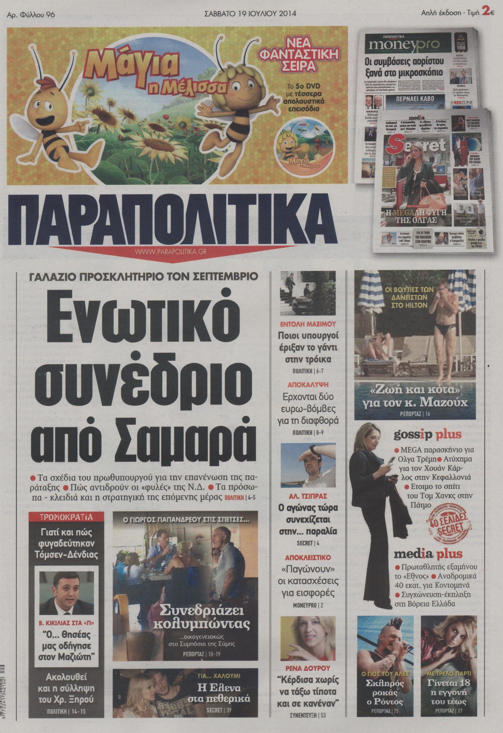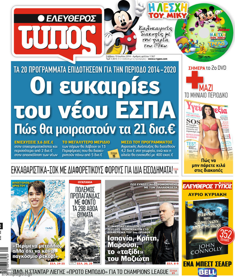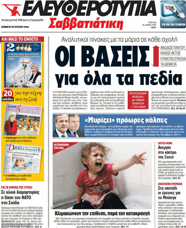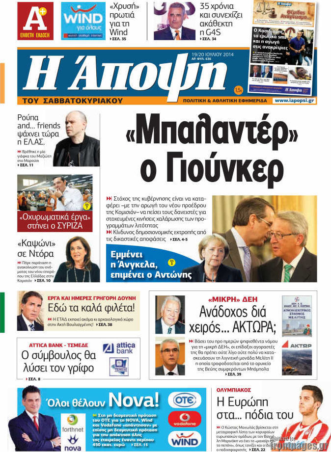 Οι πολιτικές εφημερίδες Enikos Newsroom 08:34, Σάββατο 19 Ιουλίου 2014 Media Οι πολιτικές εφημερίδες Διαβάστε τα πρωτοσέλιδα των πολιτικών εφημερίδων: ΠΟΛΙΤΙΚΕΣ ΕΦΗΜΕΡΙΔΕΣ ΠΡΩΤΟΣΕΛΙΔΑ ΣΑΒΒΑΤΟ Μοιράσου το: σχολίασε κι εσύ (0 σχόλια) Ακολουθήστε το enikos.gr στο Google News και μάθετε πρώτοι όλες τις ειδήσεις Δείτε όλες τις τελευταίες ειδήσεις από την Ελλάδα και τον Κόσμο στο enikos.gr Ειδήσεις Ροή Ειδήσεων 2 ώρες πριν Αγρότες: Έδωσαν στη δημοσιότητα τη λίστα με τα αιτήματά τους – Δείτε αναλυτικά τι ζητούν 43 λεπτά πριν Τρομοκρατική επίθεση στο Σίδνεϊ: Νέο βίντεο από τα 15 λεπτά της φρίκης – Παιδιά και γονείς πεσμένοι στο έδαφος, οι φωνές και οι εκκλήσεις 4 ώρες πριν ΟΠΕΚΕΠΕ-Κρήτη: Προθεσμία να απολογηθούν από την Τρίτη έως την Πέμπτη έλαβαν οι 16 συλληφθέντες 55 λεπτά πριν Τραγική εξέλιξη στο Αίγιο: Πέθανε ο 43χρονος που γρονθοκόπησε γιατρό στο νοσοκομείο 1 ώρα πριν Θεσσαλονίκη: «Δεν έκανα κάτι παράνομο» είπε ο οδηγός του λεωφορείου – Αφέθηκε ελεύθερος, προκαταρκτική έρευνα διέταξε η εισαγγελέας 50 λεπτά πριν Οι 7 βραδινές συνήθειες που μαρτυρούν ότι κάποιος υποφέρει από βαθιά μοναξιά, σύμφωνα με την ψυχολογία 4 ώρες πριν Τα 5 ζώδια που ευνοούνται στα ερωτικά τους έως τις 21 Δεκεμβρίου – «Η επόμενη σχέση σας θα είναι καθοριστική» 5 ώρες πριν Γεωλογική αποκάλυψη: Επιστήμονες εξηγούν πώς η Ιβηρική Χερσόνησος περιστρέφεται σαν… ρολόι 9 ώρες πριν Τα 8 πράγματα που τα ευτυχισμένα ζευγάρια δεν κάνουν ποτέ μπροστά στα παιδιά τους 3 λεπτά πριν Τρομοκρατική επίθεση στο Σίδνεϊ: Για τους Εβραίους της Αυστραλίας μοιάζει τραγικά αναπόφευκτη 11 λεπτά πριν ΟΛΜΕ: Συμμετέχει στην 24ωρη απεργία της ΑΔΕΔΥ στις 16 Δεκεμβρίου 19 λεπτά πριν Κουτσούμπας από τα μπλόκα των αγροτών στη Φθιώτιδα: «Ο κόμπος έχει φτάσει στο χτένι» 27 λεπτά πριν Ναταλία Γερμανού: «Την ορφάνια την ένιωσα όταν πέθανε η γιαγιά μου» 35 λεπτά πριν Αττική: Συνελήφθησαν 15 παρκαδόροι και 8 υπεύθυνοι καταστημάτων για αυθαίρετη κατάληψη δημοσίων χώρων ENIKOS NETWORK 8 κορυφαίες συμβουλές για άνδρες που θέλουν φλογερή σεξουαλική ζωή, σύμφωνα με ειδικό Baby botox: Ποια τα οφέλη και οι κίνδυνοι του να ξεκινήσει κάποιος τις ενέσεις πριν εμφανιστούν ρυτίδες Δημόσιο: Αποτελεσματικότητα και διαφάνεια μέσω του ψηφιακού μετασχηματισμού – Παπαστεργίου: «Ένα στοίχημα που κερδίζουμε χρ... Πορτοκαλί τιμολόγια ρεύματος: Πότε θα αρχίσει η εφαρμογή τους – Τι ισχύει για νοικοκυριά και επιχειρήσεις – Παραδείγματα Σύγχρονος Νοστράδαμος: Προειδοποιεί για «μεγάλο γεγονός» τους επόμενους μήνες που θα συγκλονίσει τη Βρετανία και τον κόσμο Τεστ παρατηρητικότητας: Μπορείτε να βρείτε τις 3 διαφορές στις εικόνες με έναν πιγκουίνο σε 14 δευτερόλεπτα περισσότερα 17:38 , Κυριακή 14 Δεκεμβρίου 2025 Τηλεθέαση (13/12): Τα ποσοστά για το βράδυ του Σαββάτου Η «μάχη» της prime time για την τηλεθέαση, συνεχίστηκε δυναμικά το βράδυ του Σαββάτου (13/12).... 16:32 , Κυριακή 14 Δεκεμβρίου 2025 Τηλεθέαση (13/12): Πώς κινήθηκαν οι εκπομπές στην πρωινή ζώνη το Σάββατο Με αμείωτη ένταση συνεχίστηκε η μάχη για την τηλεθέαση στην πρωινή ζώνη των τηλεοπτικών καναλι... 15:07 , Κυριακή 14 Δεκεμβρίου 2025 IQ160: Η Μαρίνα στέλνει το φούτερ του Τηλέμαχου για το τεστ πατρότητας Η Πηνελόπη αποφασίζει να κάνει αμνιοπαρακέντηση, για να βεβαιωθεί για την υγεία του μωρού της ... 12:46 , Κυριακή 14 Δεκεμβρίου 2025 Η Realnews στο www.pressreader.com Διαβάστε την ψηφιακή έκδοση της εφημερίδας στην οθόνη του κινητού, του tablet και του υπολογισ... ΤΕΛΕΥΤΑΙΕΣ 