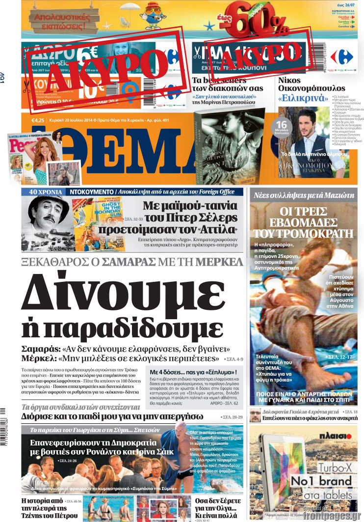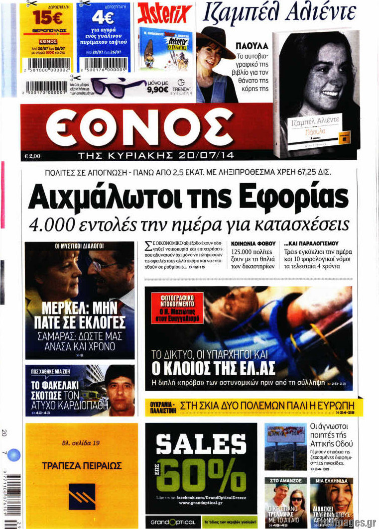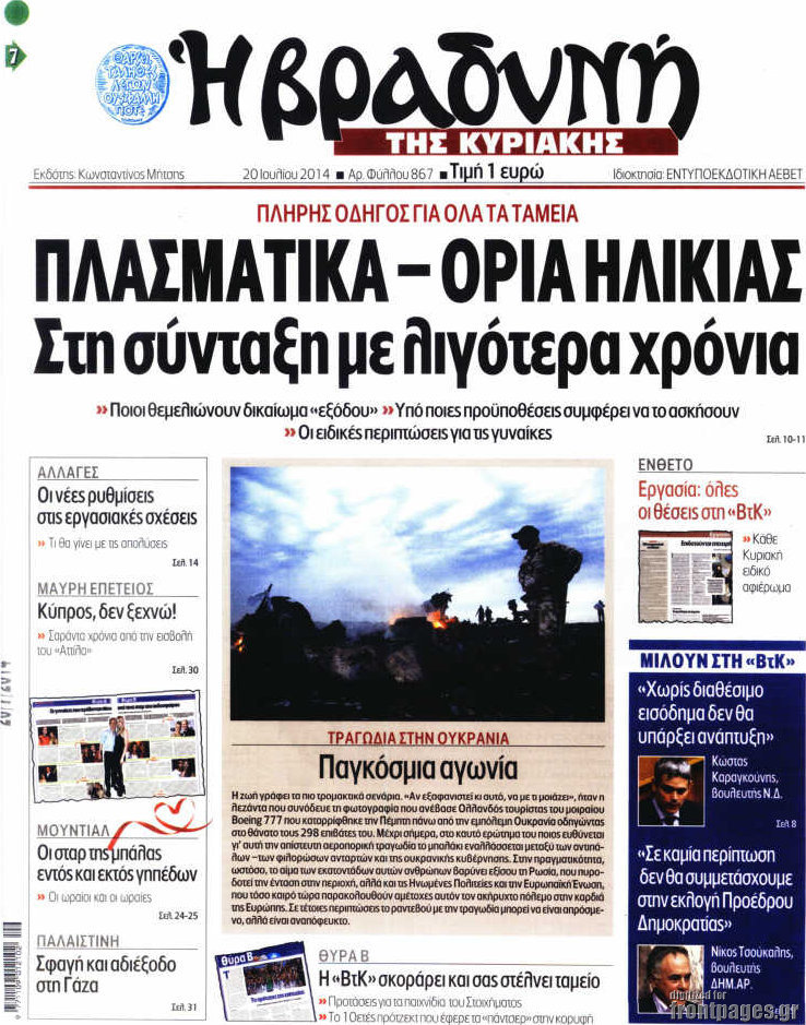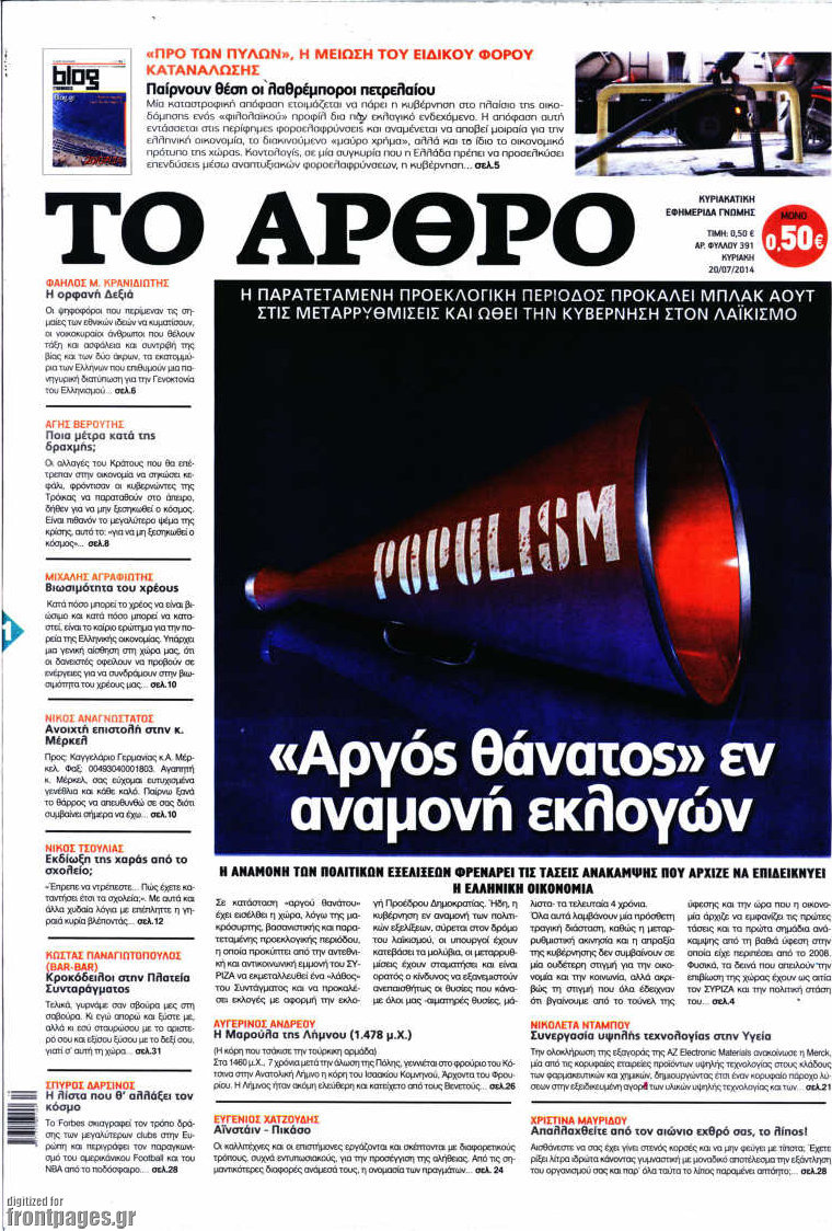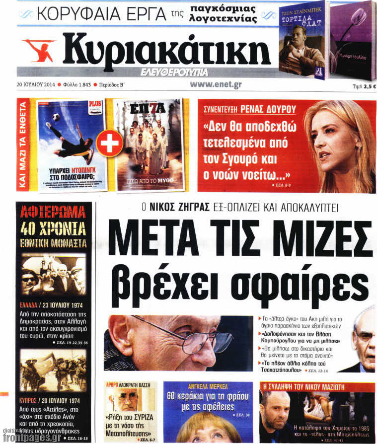 Οι πολιτικές εφημερίδες Enikos Newsroom 08:33, Κυριακή 20 Ιουλίου 2014 Media Οι πολιτικές εφημερίδες Διαβάστε τα πρωτοσέλιδα των πολιτικών εφημερίδων: ΚΥΡΙΑΚΑΤΙΚΕΣ ΕΦΗΜΕΡΙΔΕΣ ΚΥΡΙΑΚΗ ΠΟΛΙΤΙΚΕΣ ΕΦΗΜΕΡΙΔΕΣ ΠΡΩΤΟΣΕΛΙΔΑ Μοιράσου το: σχολίασε κι εσύ (0 σχόλια) Ακολουθήστε το enikos.gr στο Google News και μάθετε πρώτοι όλες τις ειδήσεις Δείτε όλες τις τελευταίες ειδήσεις από την Ελλάδα και τον Κόσμο στο enikos.gr Ειδήσεις Ροή Ειδήσεων 2 ώρες πριν Αγρότες: Έδωσαν στη δημοσιότητα τη λίστα με τα αιτήματά τους – Δείτε αναλυτικά τι ζητούν 42 λεπτά πριν Τρομοκρατική επίθεση στο Σίδνεϊ: Νέο βίντεο από τα 15 λεπτά της φρίκης – Παιδιά και γονείς πεσμένοι στο έδαφος, οι φωνές και οι εκκλήσεις 4 ώρες πριν ΟΠΕΚΕΠΕ-Κρήτη: Προθεσμία να απολογηθούν από την Τρίτη έως την Πέμπτη έλαβαν οι 16 συλληφθέντες 54 λεπτά πριν Τραγική εξέλιξη στο Αίγιο: Πέθανε ο 43χρονος που γρονθοκόπησε γιατρό στο νοσοκομείο 1 ώρα πριν Θεσσαλονίκη: «Δεν έκανα κάτι παράνομο» είπε ο οδηγός του λεωφορείου – Αφέθηκε ελεύθερος, προκαταρκτική έρευνα διέταξε η εισαγγελέας 49 λεπτά πριν Οι 7 βραδινές συνήθειες που μαρτυρούν ότι κάποιος υποφέρει από βαθιά μοναξιά, σύμφωνα με την ψυχολογία 4 ώρες πριν Τα 5 ζώδια που ευνοούνται στα ερωτικά τους έως τις 21 Δεκεμβρίου – «Η επόμενη σχέση σας θα είναι καθοριστική» 5 ώρες πριν Γεωλογική αποκάλυψη: Επιστήμονες εξηγούν πώς η Ιβηρική Χερσόνησος περιστρέφεται σαν… ρολόι 9 ώρες πριν Τα 8 πράγματα που τα ευτυχισμένα ζευγάρια δεν κάνουν ποτέ μπροστά στα παιδιά τους 3 λεπτά πριν Τρομοκρατική επίθεση στο Σίδνεϊ: Για τους Εβραίους της Αυστραλίας μοιάζει τραγικά αναπόφευκτη 11 λεπτά πριν ΟΛΜΕ: Συμμετέχει στην 24ωρη απεργία της ΑΔΕΔΥ στις 16 Δεκεμβρίου 18 λεπτά πριν Κουτσούμπας από τα μπλόκα των αγροτών στη Φθιώτιδα: «Ο κόμπος έχει φτάσει στο χτένι» 26 λεπτά πριν Ναταλία Γερμανού: «Την ορφάνια την ένιωσα όταν πέθανε η γιαγιά μου» 34 λεπτά πριν Αττική: Συνελήφθησαν 15 παρκαδόροι και 8 υπεύθυνοι καταστημάτων για αυθαίρετη κατάληψη δημοσίων χώρων ENIKOS NETWORK 8 κορυφαίες συμβουλές για άνδρες που θέλουν φλογερή σεξουαλική ζωή, σύμφωνα με ειδικό Baby botox: Ποια τα οφέλη και οι κίνδυνοι του να ξεκινήσει κάποιος τις ενέσεις πριν εμφανιστούν ρυτίδες Δημόσιο: Αποτελεσματικότητα και διαφάνεια μέσω του ψηφιακού μετασχηματισμού – Παπαστεργίου: «Ένα στοίχημα που κερδίζουμε χρ... Πορτοκαλί τιμολόγια ρεύματος: Πότε θα αρχίσει η εφαρμογή τους – Τι ισχύει για νοικοκυριά και επιχειρήσεις – Παραδείγματα Σύγχρονος Νοστράδαμος: Προειδοποιεί για «μεγάλο γεγονός» τους επόμενους μήνες που θα συγκλονίσει τη Βρετανία και τον κόσμο Τεστ παρατηρητικότητας: Μπορείτε να βρείτε τις 3 διαφορές στις εικόνες με έναν πιγκουίνο σε 14 δευτερόλεπτα περισσότερα 17:38 , Κυριακή 14 Δεκεμβρίου 2025 Τηλεθέαση (13/12): Τα ποσοστά για το βράδυ του Σαββάτου Η «μάχη» της prime time για την τηλεθέαση, συνεχίστηκε δυναμικά το βράδυ του Σαββάτου (13/12).... 16:32 , Κυριακή 14 Δεκεμβρίου 2025 Τηλεθέαση (13/12): Πώς κινήθηκαν οι εκπομπές στην πρωινή ζώνη το Σάββατο Με αμείωτη ένταση συνεχίστηκε η μάχη για την τηλεθέαση στην πρωινή ζώνη των τηλεοπτικών καναλι... 15:07 , Κυριακή 14 Δεκεμβρίου 2025 IQ160: Η Μαρίνα στέλνει το φούτερ του Τηλέμαχου για το τεστ πατρότητας Η Πηνελόπη αποφασίζει να κάνει αμνιοπαρακέντηση, για να βεβαιωθεί για την υγεία του μωρού της ... 12:46 , Κυριακή 14 Δεκεμβρίου 2025 Η Realnews στο www.pressreader.com Διαβάστε την ψηφιακή έκδοση της εφημερίδας στην οθόνη του κινητού, του tablet και τ