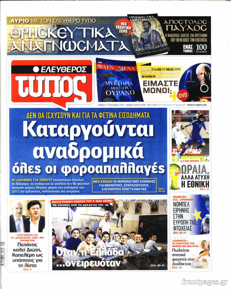 Δείτε τα πρωτοσέλιδα των πολιτικών εφημερίδων.