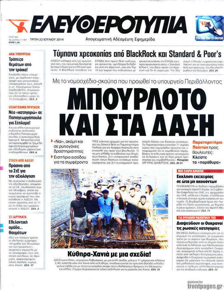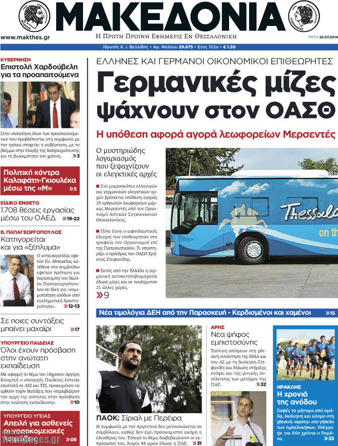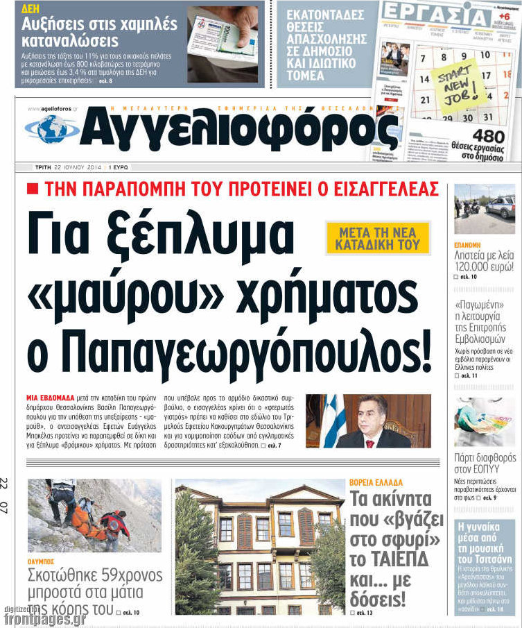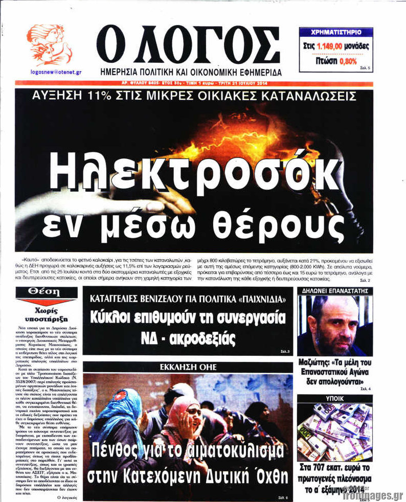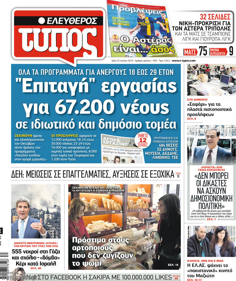 Οι πολιτικές εφημερίδες Enikos Newsroom 08:17, Τρίτη 22 Ιουλίου 2014 Media Οι πολιτικές εφημερίδες Διαβάστε τα πρωτοσέλιδα των πολιτικών εφημερίδων. ΠΟΛΙΤΙΚΕΣ ΕΦΗΜΕΡΙΔΕΣ ΠΡΩΤΟΣΕΛΙΔΑ Μοιράσου το: σχολίασε κι εσύ (0 σχόλια) Ακολουθήστε το enikos.gr στο Google News και μάθετε πρώτοι όλες τις ειδήσεις Δείτε όλες τις τελευταίες ειδήσεις από την Ελλάδα και τον Κόσμο στο enikos.gr Ειδήσεις Ροή Ειδήσεων 3 ώρες πριν Υπόθεση Έπσταϊν: Το Υπουργείο Δικαιοσύνης δημοσιοποίησε μια σειρά από εξαιρετικά επεξεργασμένα αρχεία – «Λείπουν τα πιο σημαντικά έγγραφα», λένε οι Δημοκρατικοί 26 λεπτά πριν Γιορτές με μπλόκα για τους αγρότες: Ανοίγουν διόδια και μοιράζουν προϊόντα στους ταξιδιώτες 59 λεπτά πριν Εξαφάνιση 33χρονου γιατρού στην Κρήτη: «Άναψα τα φώτα, τρόμαξε και άρχισε να τρέχει στα χωράφια» – Η τελευταία διαδρομή και η μαρτυρία «κλειδί» 2 ώρες πριν Ο «χάρτης» με τις αυξήσεις και τις φοροελαφρύνσεις του 2026 – Ποιοι και πόσα κερδίζουν 43 λεπτά πριν Τα αρχεία του Έπσταϊν αποκαλύπτουν φωτογραφία του έκπτωτου πρίγκιπα Άντριου – Είναι ξαπλωμένος στην αγκαλιά 5 γυναικών 50 λεπτά πριν Μία νέα «χρυσή» περίοδος αρχίζει για 3 ζώδια από σήμερα – «Μία αναπάντεχη ευκαιρία οδηγεί στην επιτυχία» 5 ώρες πριν Αυγά: Πόσα μπορείτε να τρώτε την ημέρα με ασφάλεια για μέγιστη πρόσληψη πρωτεΐνης 3 ώρες πριν Αρχαιολόγοι ανακάλυψαν σε χωράφι απεικόνιση 600 ετών ενός Αγίου – Τα στοιχεία που δείχνουν ότι μαρτύρησε 2 ώρες πριν Αγχώνεται για το χριστουγεννιάτικο δώρο που πήρε στην πλούσια σύντροφό του – «Φοβάμαι πως θα το βρει φθηνιάρικο, φοράει βραχιόλια Cartier» 3 λεπτά πριν Τηλεθέαση (19/12): Ανατροπές και πρωτιές στην πρωινή ζώνη 11 λεπτά πριν Πώς η κλιματική αλλαγή επηρεάζει εγκύους και βρέφη – Οι επιπτώσεις των υψηλών θερμοκρασιών 19 λεπτά πριν e-ΕΦΚΑ και ΔΥΠΑ: Οι πληρωμές από 22 έως 24 Δεκεμβρίου – Ποιοι θα δουν χρήματα στους λογαριασμούς τους 26 λεπτά πριν Συνελήφθη οδηγός μηχανής που έτρεχε με 161 χλμ στη Συγγρού – Τον έπιασε το ραντάρ της Τροχαίας 26 λεπτά πριν Γιορτές με μπλόκα για τους αγρότες: Ανοίγουν διόδια και μοιράζουν προϊόντα στους ταξιδιώτες ENIKOS NETWORK Είστε μόνιμα απρόσεκτοι; 3 σημάδια που δείχνουν ότι μπορεί να είναι σύμπτωμα πάθησης Πόσα κιλά παίρνουμε πραγματικά τα Χριστούγεννα, σύμφωνα με την επιστήμη – Πώς να το αποτρέψουμε; Επίδομα παιδιού: Τι αλλάζει από το 2026 – Το όφελος από τις φορολογικές ελαφρύνσεις Mega χριστουγεννιάτικη φορολοταρία: «Κλείδωσε» η ημερομηνία για την κλήρωση – Ερωτήσεις και απαντήσεις Χαρτογραφώντας το «σημείο χωρίς επιστροφή»: Για πρώτη φορά αποκαλύπτεται με λεπτομέρεια το ακανθώδες όριο της ατμόσφαιρας τ... Η Google καταργεί τη λειτουργία «dark web report» – Πώς θα μπορούν οι χρήστες να διαγράφουν τα δεδομένα τους περισσότερα 09:30 , Σάββατο 20 Δεκεμβρίου 2025 «Porto Leone: Στη γειτονιά με τα κόκκινα φανάρια» – Ο Χρόνης αποκαλύπτει στην Αλεξάνδρα το μυστικό για το παιδί της Λένας Η μεγάλη δραματική σειρά του Apha «Porto Leone: Στη γειτονιά με τα κόκκινα φανάρια» μας μεταφέ... 08:14 , Σάββατο 20 Δεκεμβρίου 2025 Τρομεροί γονείς: Η Μαρία Καβογιάννη εισβάλλει στο σπίτι της οικογένειας Στεφανίδη Όσα θα δούμε στο νέο διπλό επεισόδιο της σειράς «Τρομεροί γονείς», σήμερα Σάββατο 20 Δεκεμβρίο... 05:48 , Σάββατο 20 Δεκεμβρίου 2025 Οι οικονομικές εφημερίδες 20/12/2025 Διαβάστε τα πρωτοσέλιδα από τις οικονομικές εφημερίδες, σήμερα 20/12/2025. 05:43 , Σάββατο 20 Δεκεμβρίου 2025 Οι αθλητικές εφημερίδες 20/12/2025 Διαβάστε τα πρωτοσέλιδα από τ