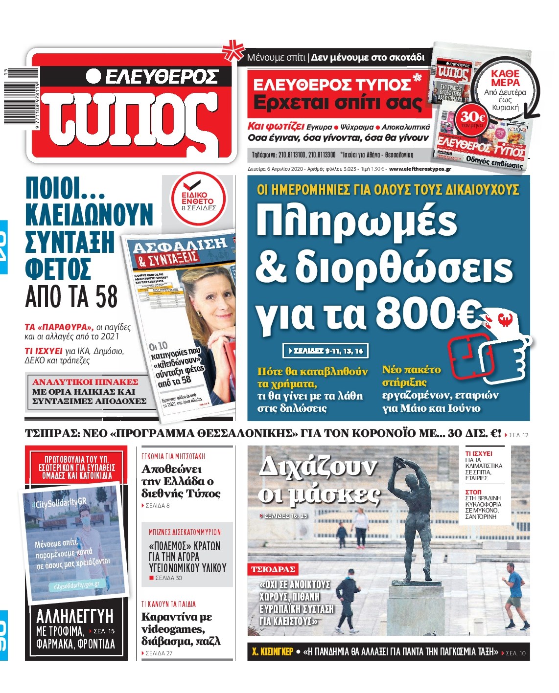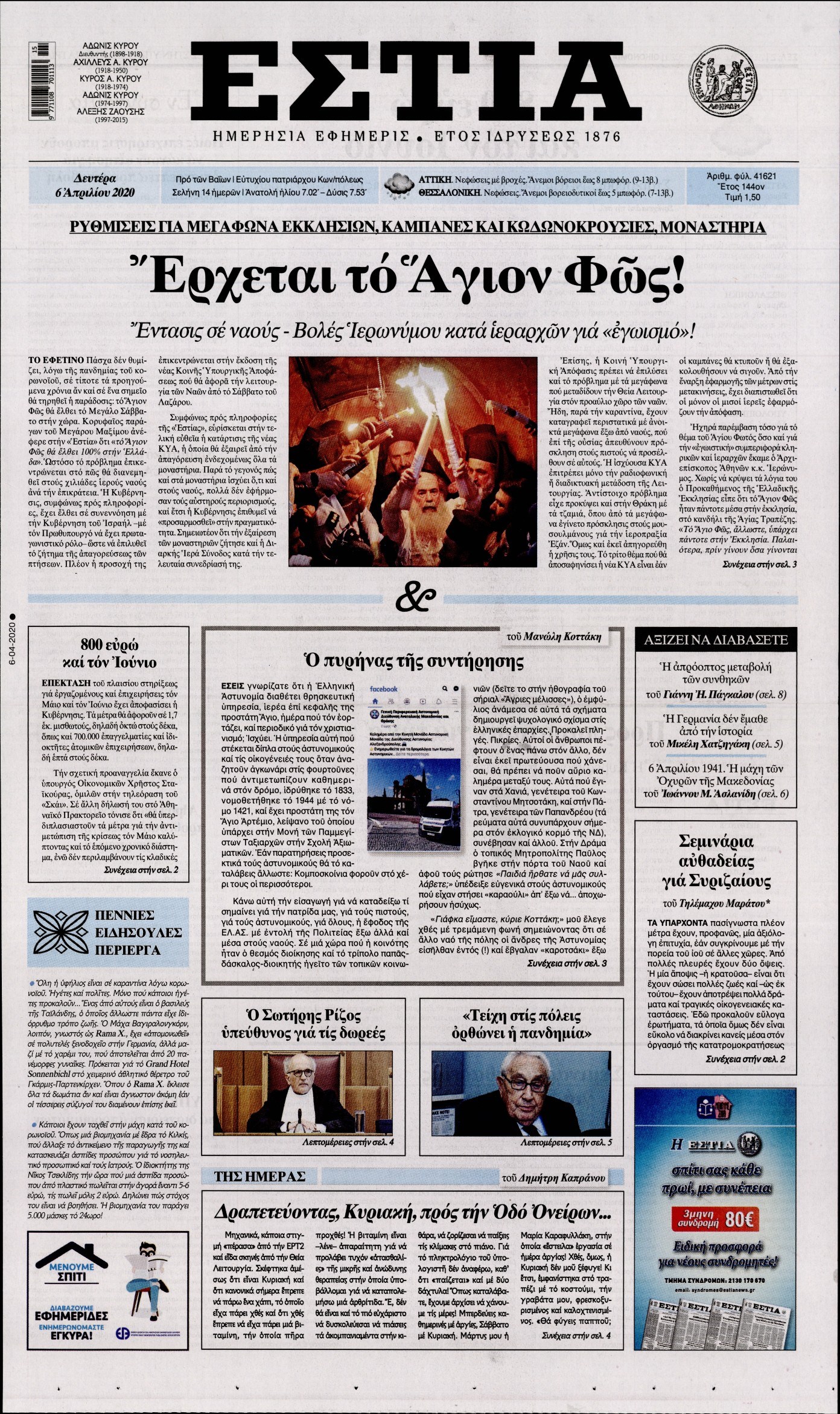 Οι πολιτικές εφημερίδες 6/4/2020 Διονύσης Νίκκας 06:15, Δευτέρα 06 Απριλίου 2020 Media Διαβάστε τα πρωτοσέλιδα των πολιτικών εφημερίδων… ΠΟΛΙΤΙΚΕΣ ΕΦΗΜΕΡΙΔΕΣ ΠΡΩΤΟΣΕΛΙΔΑ Μοιράσου το: σχολίασε κι εσύ (0 σχόλια) Ακολουθήστε το enikos.gr στο Google News και μάθετε πρώτοι όλες τις ειδήσεις Δείτε όλες τις τελευταίες ειδήσεις από την Ελλάδα και τον Κόσμο στο enikos.gr Ειδήσεις Ροή Ειδήσεων 2 ώρες πριν Χριστούγεννα στα μπλόκα: Επιμένουν στις κινητοποιήσεις τους οι αγρότες – Ανοίγουν τα διόδια το Σαββατοκύριακο 2 ώρες πριν Ουκρανία: Η άνευ προηγουμένου επίθεση σε ρωσικό τάνκερ στη Μεσόγειο και το μήνυμα προς στον Πούτιν – Το «μακρύ χέρι» του Κιέβου 2 ώρες πριν Πούτιν: Τα μηνύματα σε Ευρώπη και ΝΑΤΟ από το μαραθώνιο «σόου» του – Η απαίτηση για «σεβασμό» και η ειρήνη «με τους όρους» της Μόσχας 3 ώρες πριν Τραμπ: Δεν αποκλείει την πιθανότητα ενός πολέμου στη Βενεζουέλα – «Ο Μαδούρο ξέρει καλύτερα από τον καθένα τι ακριβώς θέλω» 3 ώρες πριν Συνεχίζει να προκαλεί ο Μίτσκοσκι: «Για μένα το όνομα Μακεδονία είναι ιερό» 2 ώρες πριν Ανακαλύφθηκαν αρχαία χρυσά νομίσματα 2.200 ετών που απεικονίζουν τον θεό Απόλλωνα – Η άγνωστη σύνδεση με τον Φίλιππο Β΄ της Μακεδονίας 3 ώρες πριν Ύπνος: Μια κρυφή κατάσταση του εγκεφάλου πριν από τον ύπνο μπορεί να είναι το “κλειδί” για υψηλή ευφυΐα και δημιουργικότητα 4 ώρες πριν Αριθμολογία: Οι άνθρωποι που έχουν γεννηθεί αυτές τις 4 ημερομηνίες, συχνά παρεξηγούνται – «Η καλοσύνη τους κρύβει τεράστια δύναμη» 5 ώρες πριν Ξεχάστε το καθάρισμα το Σαββατοκύριακο: Ο «κανόνας των 20 λεπτών» που θα σας λύσει τα χέρια 15 λεπτά πριν Φαίη Σκορδά: «Παλιότερα τα κομπλιμέντα τα προσπερνούσα, τώρα τα έχω ανάγκη» 31 λεπτά πριν Βασίλης Σπανούλης: Δεν εμφανίστηκε ούτε ένας δημοσιογράφος στην συνέντευξη Τύπου – «Καλησπέρα στον… κανέναν», δείτε βίντεο 42 λεπτά πριν Πόλεμος στην Ουκρανία: Εφτά νεκροί από ρωσική πυραυλική επίθεση στο λιμάνι της Οδησσού 45 λεπτά πριν ΗΠΑ: Η κυβέρνηση του Ντόναλντ Τραμπ άρχισε να δημοσιοποιεί τα αρχεία Έπσταϊν 57 λεπτά πριν Σάμος: Άνοιξε το μπλόκο των αγροτών στον κόμβο Κοκκαρίου – Σε νέα συνεδρίαση θα καθορίσουν την στάση τους ENIKOS NETWORK Το ΕΚΑΒ τιμήθηκε από την Ακαδημία Αθηνών για τα 40 χρόνια προσφοράς του Έχετε πραγματικά μεγάλη καρδιά; 10 χαρακτηριστικά όσων έχουν καλοσύνη Αναστολή μέτρων αναγκαστικής εκτέλεσης για κτηνοτρόφους που πλήττονται από την ευλογιά των αιγοπροβάτων Πλήρης επάρκεια προϊόντων στις λαϊκές της Αττικής, παρά τις αγροτικές κινητοποιήσεις – Τι απαντούν οι πωλητές Χαρτογραφώντας το «σημείο χωρίς επιστροφή»: Για πρώτη φορά αποκαλύπτεται με λεπτομέρεια το ακανθώδες όριο της ατμόσφαιρας τ... Η Google καταργεί τη λειτουργία «dark web report» – Πώς θα μπορούν οι χρήστες να διαγράφουν τα δεδομένα τους περισσότερα 22:42 , Παρασκευή 19 Δεκεμβρίου 2025 Γιώργος Γιαννόπουλος για “Το σόι σου”: “Είναι ευτυχία και ευλογία αυτή η σειρά” «Είναι ευτυχία και ευλογία η συγκυρία αυτής της σειράς», θα πει ο Γιώργος Γιαννόπουλος -ο αγαπ... 20:37 , Παρασκευή 19 Δεκεμβρίου 2025 Don’t Forget The Lyrics: Η Έλλη Κοκκίνου υποδέχεται 4 παίκτες που θα κάνουν τα πάντα για να μη χάσουν ούτε… μισή λέξη από τους στίχους Το «Don’t Forget The Lyrics» επιστρέφει απόψε, Παρασκευή 19 Δεκεμβρίου, στις 21:00 με νέο επει... 19:31 , Παρασκευή 19 Δεκεμβρίου 2025 GNTM: Απόψε ο μεγάλος τελικός για τους 4 φιναλίστ Έπειτα από μήνες γεμάτους μόδα, δημιουργία και έντονες αναμετρήσεις, το GNTM 2025 κορυφώνεται,... 18:11 , Παρα