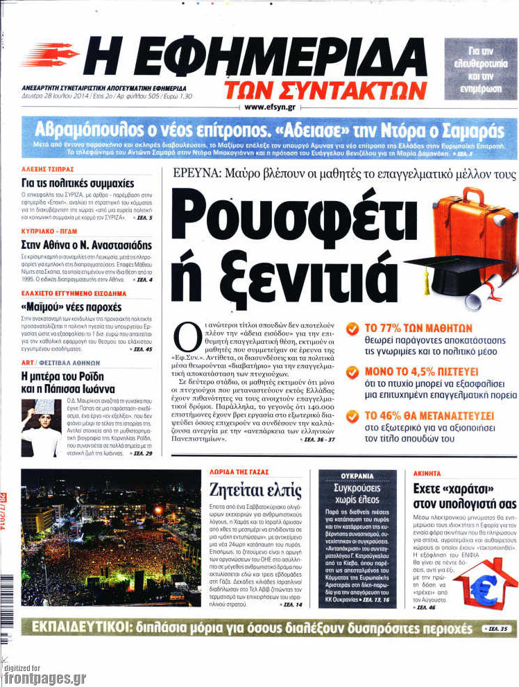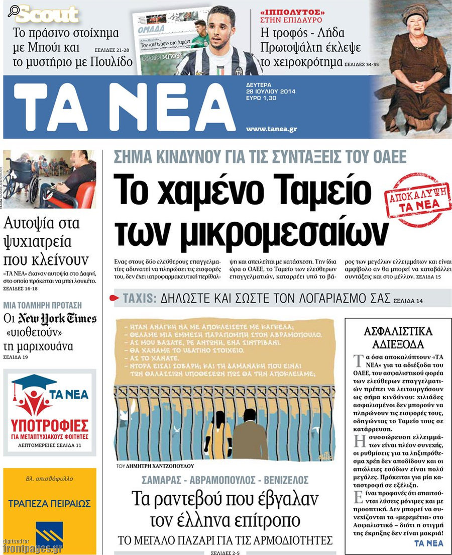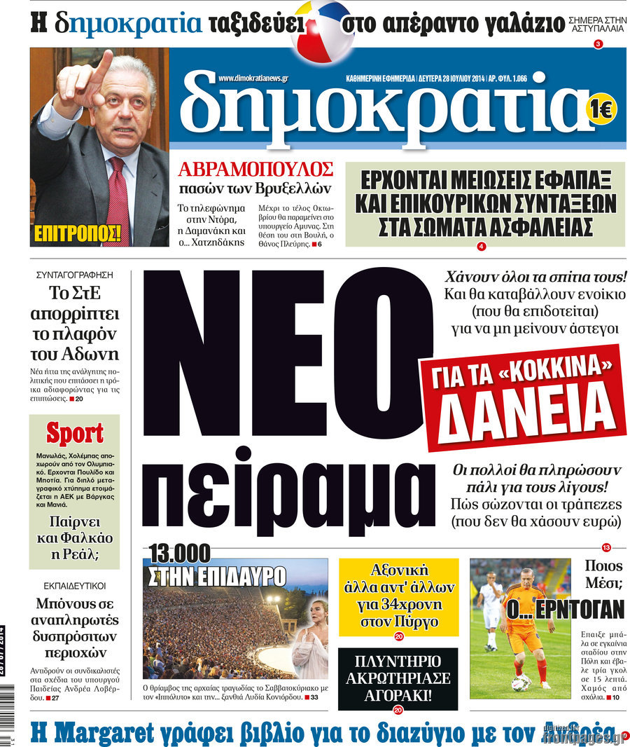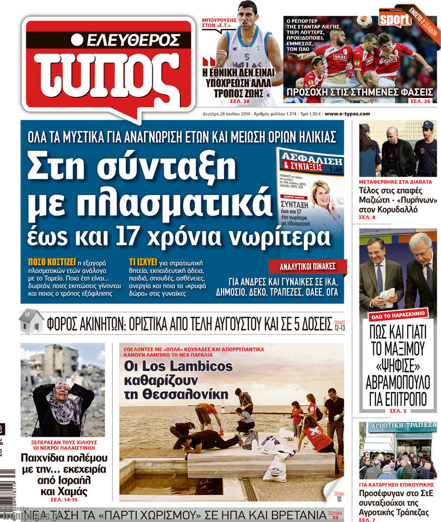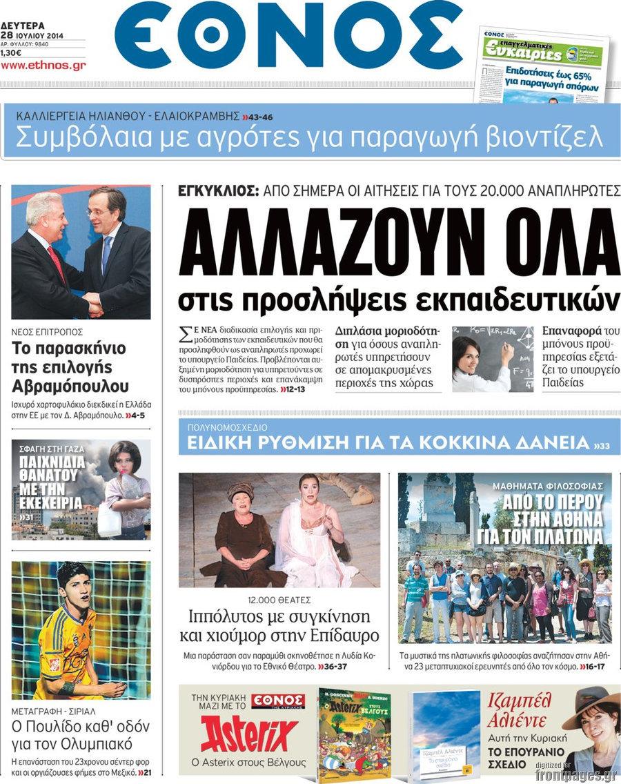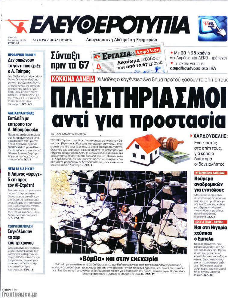 Οι πολιτικές εφημερίδες Enikos Newsroom 07:56, Δευτέρα 28 Ιουλίου 2014 Media Οι πολιτικές εφημερίδες Διαβάστε τα πρωτοσέλιδα των πολιτικών εφημερίδων. ΠΟΛΙΤΙΚΕΣ ΕΦΗΜΕΡΙΔΕΣ ΠΡΩΤΟΣΕΛΙΔΑ Μοιράσου το: σχολίασε κι εσύ (0 σχόλια) Ακολουθήστε το enikos.gr στο Google News και μάθετε πρώτοι όλες τις ειδήσεις Δείτε όλες τις τελευταίες ειδήσεις από την Ελλάδα και τον Κόσμο στο enikos.gr Ειδήσεις Ροή Ειδήσεων 2 ώρες πριν Αγρότες: Πολύωροι αποκλεισμοί στα τελωνεία Προμαχώνα, Εξοχής, Ευζώνων και Νίκης – Κλείνουν τον κόμβο Φιλώτα οι παραγωγοί στη Δυτική Μακεδονία 2 ώρες πριν Νίκος Παππάς: Ζητώ συγγνώμη για αυτό το επεισόδιο – Δεν τον γρονθοκόπησα 4 ώρες πριν Ευρωπαϊκό Συμβούλιο: Όλες οι λεπτομέρειες για το δάνειο των 90 δισ. ευρώ στην Ουκρανία – Τα συμπεράσματα της Συνόδου Κορυφής 3 ώρες πριν Αίγιο: 22χρονη κατήγγειλε ότι έπεσε θύμα βιασμού και ληστείας από συγγενικά της πρόσωπα 2 ώρες πριν Τρομακτικό βίντεο: Η στιγμή της έκρηξης στο τζετ που μετέφερε τον οδηγό του NASCAR, Γκρεγκ Μπιφλ και την οικογένειά του 2 ώρες πριν Αλλαγή σελίδας για 3 ζώδια – «Μία δύσκολη περίοδος φτάνει στο τέλος της» 2 ημέρες πριν 20 χρόνια τα Χριστούγεννα ξεκινούν στα Public με μεγάλη ποικιλία σε δώρα! 3 ώρες πριν Ο σύζυγός της συμπεριφέρεται όπως το παιδί τους – «Χρησιμοποιεί αστείες δικαιολογίες για να μην κάνει δουλειές και να ξοδεύει λεφτά» 1 ώρα πριν Γεμάτος νεροχύτης; 5 σοβαρές ευθύνες που «φοβίζουν» όσους αφήνουν άπλυτα πιάτα 3 λεπτά πριν ΕΥΔΑΠ: 17 ερωτήσεις και απαντήσεις για τις αλλαγές στα τιμολόγια του νερού 10 λεπτά πριν Οδοντιατρικός Σύλλογος Αττικής: Προσοχή στις παραπλανητικές διαφημίσεις οδοντικών εμφυτευμάτων 16 λεπτά πριν Αλεξάνδρα Νίκα για Κωνσταντίνο Αργυρό: «Τον συμβουλεύομαι για όλα» – Πώς θα περάσουν τις γιορτές 22 λεπτά πριν Κρήτη: Στο Ρέθυμνο μεταφέρονται οι εκατοντάδες μετανάστες που διασώθηκαν ανοιχτά της Γαύδου 27 λεπτά πριν Ειδικός μοιράζεται 6 κόλπα για να διατηρείστε σε φόρμα με πάνω από 40 ώρες εργασίας την εβδομάδα: «Προπονηθείτε πριν από τη δουλειά, όχι μετά» ENIKOS NETWORK Κίνδυνος παραπλάνησης από διαφημίσεις οδοντικών εμφυτευμάτων Καρκίνος του πνεύμονα: Έως 8.000 ζωές μπορούν να σωθούν με την έγκαιρη διάγνωση ΕΥΔΑΠ: Στο τραπέζι αλλαγές στους λογαριασμούς του νερού – Τι θα ισχύσει για ευάλωτα νοικοκυριά και επιχειρήσεις Επιδόματα και παροχές από τον ΟΠΕΚΑ: Τι πιστώνεται σήμερα στους τραπεζικούς λογαριασμούς Χαρτογραφώντας το «σημείο χωρίς επιστροφή»: Για πρώτη φορά αποκαλύπτεται με λεπτομέρεια το ακανθώδες όριο της ατμόσφαιρας τ... Η Google καταργεί τη λειτουργία «dark web report» – Πώς θα μπορούν οι χρήστες να διαγράφουν τα δεδομένα τους περισσότερα 08:00 , Παρασκευή 19 Δεκεμβρίου 2025 Την Κυριακή με τη Realnews: Δωροεπιταγή 10€ Δωροεπιταγή αξίας 10€ για αγορές άνω των 60€ από τα πολυκαταστήματα FactoryOutlet H προσφορά ι... 05:48 , Παρασκευή 19 Δεκεμβρίου 2025 Οι οικονομικές εφημερίδες 19/12/2025 Διαβάστε τα πρωτοσέλιδα από τις οικονομικές εφημερίδες, σήμερα 19/12/2025. 05:43 , Παρασκευή 19 Δεκεμβρίου 2025 Οι αθλητικές εφημερίδες 19/12/2025 Διαβάστε τα πρωτοσέλιδα από τις αθλητικές εφημερίδες, σήμερα 19/12/2025. 05:38 , Παρασκευή 19 Δεκεμβρίου 2025 Οι πολιτικές εφημερίδες 19/12/2025 Διαβάστε τα πρωτοσέλιδα από τις πολιτικές εφημερίδες, σήμερα 19/12/2025. ΤΕΛΕΥΤΑΙΕΣ ΕΙΔΗΣΕΙΣ 10 λεπτά πριν Οδοντιατρικός Σύλλογος Αττικής: Προσοχή στις... 16 λεπτά πριν Αλεξάνδρα Νίκα για Κωνσταντίνο Αργυρό: «Τον... 22 λεπτά πριν Κρήτη: Στο Ρέθυμνο μεταφέρονται οι εκατοντάδες...
