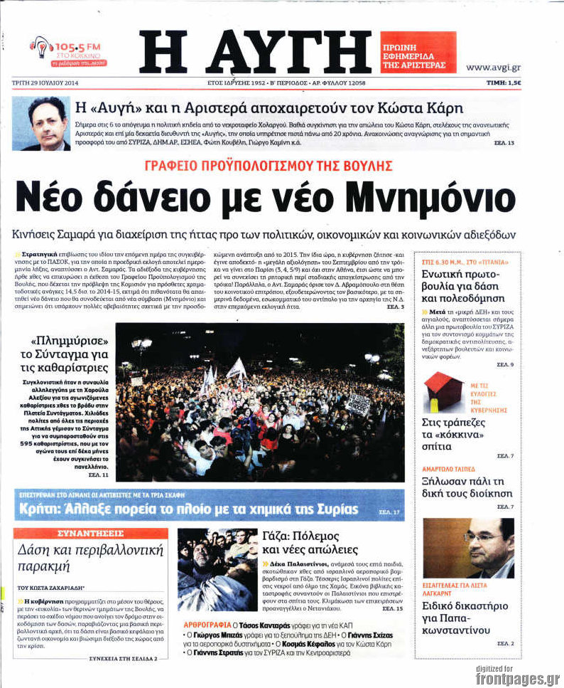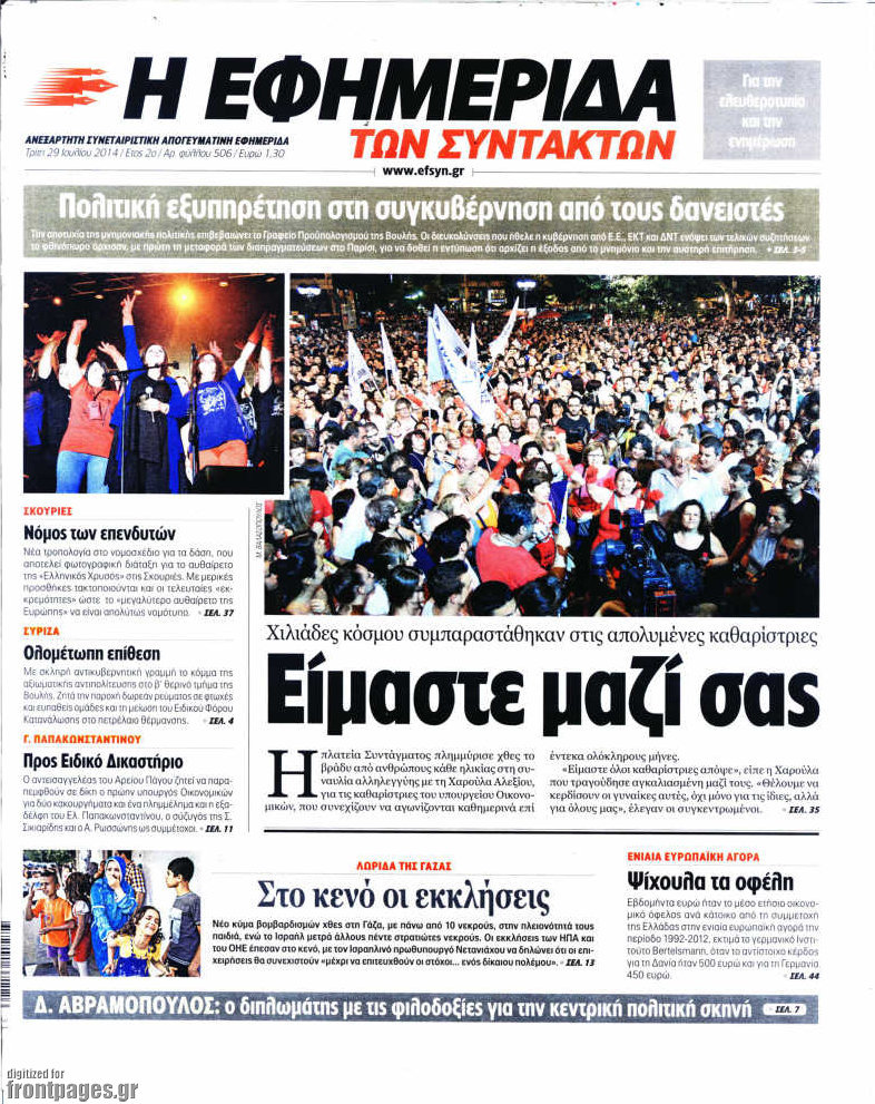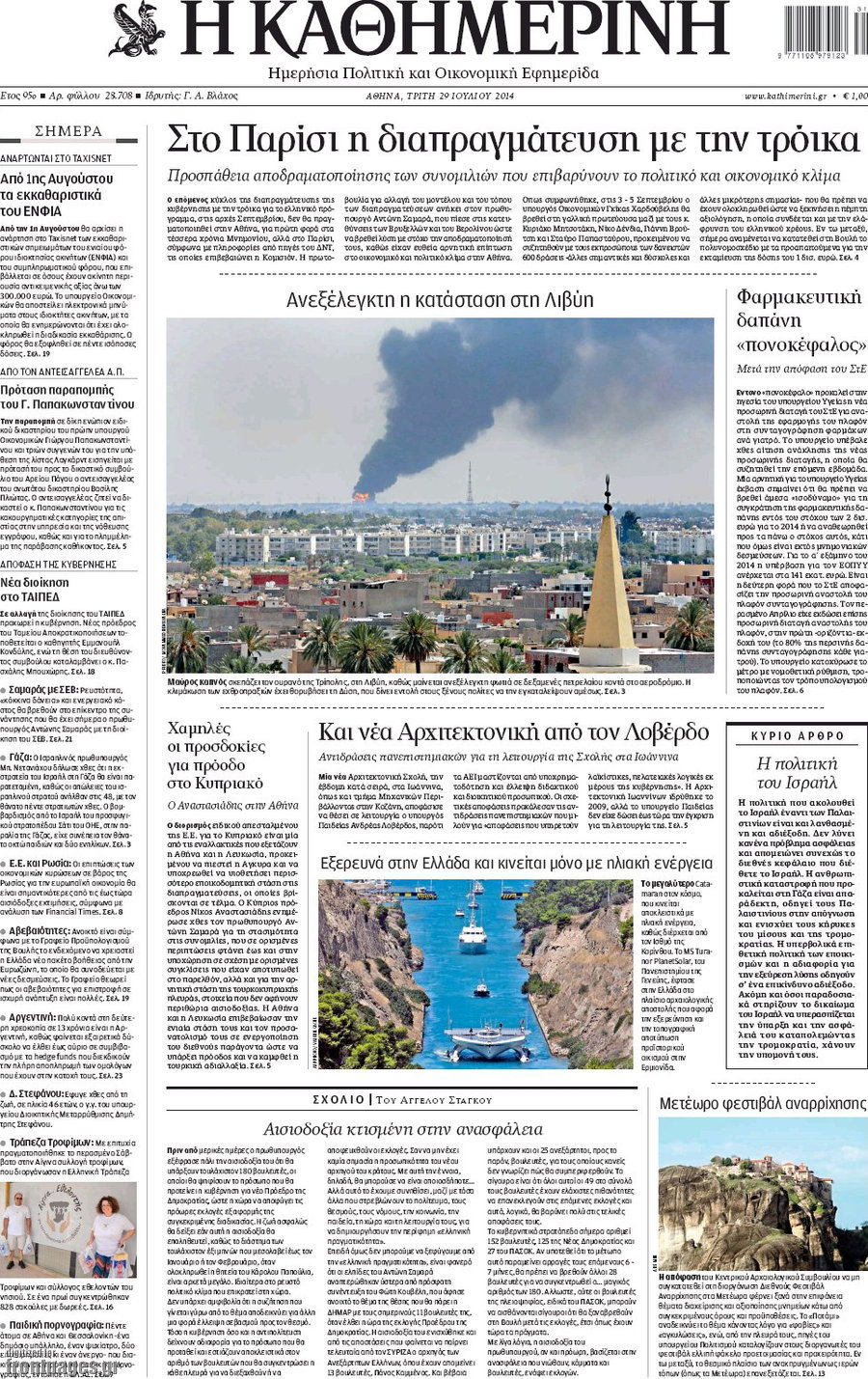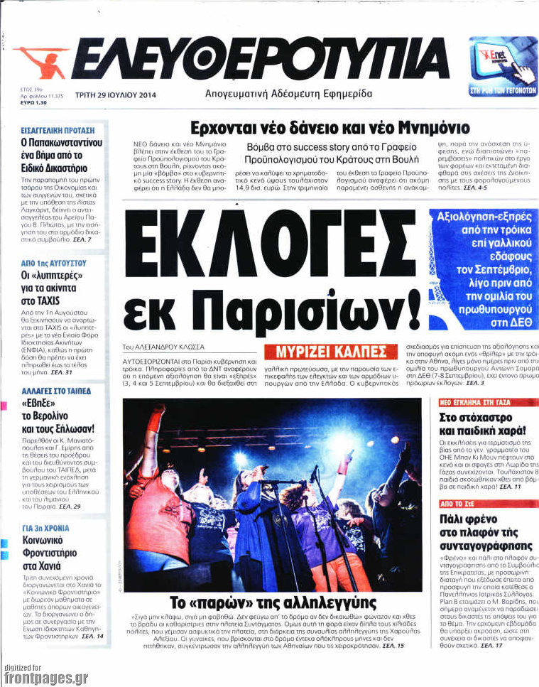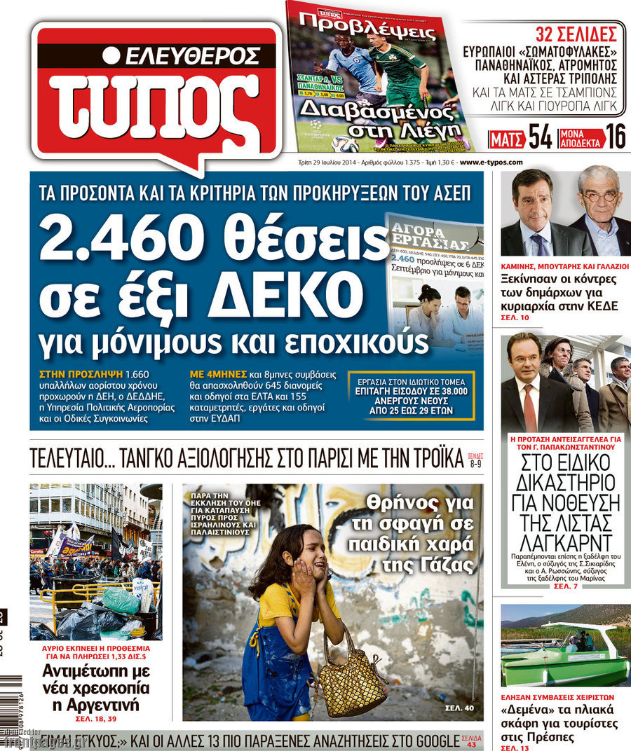 Οι πολιτικές εφημερίδες Enikos Newsroom 07:56, Τρίτη 29 Ιουλίου 2014 Media Οι πολιτικές εφημερίδες Διαβάστε τα πρωτοσέλιδα των πολιτικών εφημερίδων. ΠΡΩΤΟΣΕΛΙΔΑ Μοιράσου το: σχολίασε κι εσύ (0 σχόλια) Ακολουθήστε το enikos.gr στο Google News και μάθετε πρώτοι όλες τις ειδήσεις Δείτε όλες τις τελευταίες ειδήσεις από την Ελλάδα και τον Κόσμο στο enikos.gr Ειδήσεις Ροή Ειδήσεων 2 ώρες πριν Υπόθεση Έπσταϊν: Το Υπουργείο Δικαιοσύνης δημοσιοποίησε μια σειρά από εξαιρετικά επεξεργασμένα αρχεία – «Λείπουν τα πιο σημαντικά έγγραφα», λένε οι Δημοκρατικοί 42 λεπτά πριν Ο «χάρτης» με τις αυξήσεις και τις φοροελαφρύνσεις του 2026 – Ποιοι και πόσα κερδίζουν 11 ώρες πριν Χριστούγεννα στα μπλόκα: Επιμένουν στις κινητοποιήσεις τους οι αγρότες – Ανοίγουν τα διόδια το Σαββατοκύριακο 2 ώρες πριν ΟΝΕΧ – MEGATUGS: Ξεκίνησε η ναυπήγηση ρυμουλκών στην Ελλάδα – Προθάλαμος πολεμικών πλοίων – Δείτε φωτογραφίες και βίντεο 2 ώρες πριν Καιρός: Αλλαγή σκηνικού σήμερα με βροχές και πτώση της θερμοκρασίας – Οι προβλέψεις των μετεωρολόγων για τα Χριστούγεννα 3 ώρες πριν Αυγά: Πόσα μπορείτε να τρώτε την ημέρα με ασφάλεια για μέγιστη πρόσληψη πρωτεΐνης 4 ώρες πριν Τα ζώδια σήμερα, Σάββατο 20 Δεκεμβρίου: Παρθένοι, το σύμπαν σας δίνει το κλειδί 3 ώρες πριν Οπτική ψευδαίσθηση: Μόνο αν είσαι ο Σέρλοκ Χολμς θα βρεις τον αριθμό «87» σε 7 δευτερόλεπτα 1 ώρα πριν Αρχαιολόγοι ανακάλυψαν σε χωράφι απεικόνιση 600 ετών ενός Αγίου – Τα στοιχεία που δείχνουν ότι μαρτύρησε 5 λεπτά πριν Ουκρανία: Drones έπληξαν εξέδρα πετρελαίου και πολεμικό πλοίο της Ρωσίας στην Κασπία 14 λεπτά πριν Παιδική υπέρταση: Μια σιωπηλή απειλή που αυξάνεται διεθνώς 14 λεπτά πριν Αγχώνεται για το χριστουγεννιάτικο δώρο που πήρε στην πλούσια σύντροφό του – «Φοβάμαι πως θα το βρει φθηνιάρικο, φοράει βραχιόλια Cartier» 21 λεπτά πριν Enerwave: Το νέο «ρεύμα» στη λιανική ενέργειας που αλλάζει την εμπειρία του καταναλωτή 26 λεπτά πριν Γιώργος Μαζωνάκης: Τη Δευτέρα η μήνυση του τραγουδιστή κατά του 22χρονου ENIKOS NETWORK Πόσα κιλά παίρνουμε πραγματικά τα Χριστούγεννα, σύμφωνα με την επιστήμη – Πώς να το αποτρέψουμε; Το δημοφιλές ρόφημα που αυξάνει την πίεση πιο γρήγορα και από το αλάτι Mega χριστουγεννιάτικη φορολοταρία: «Κλείδωσε» η ημερομηνία για την κλήρωση – Ερωτήσεις και απαντήσεις Αναστολή μέτρων αναγκαστικής εκτέλεσης για κτηνοτρόφους που πλήττονται από την ευλογιά των αιγοπροβάτων Χαρτογραφώντας το «σημείο χωρίς επιστροφή»: Για πρώτη φορά αποκαλύπτεται με λεπτομέρεια το ακανθώδες όριο της ατμόσφαιρας τ... Η Google καταργεί τη λειτουργία «dark web report» – Πώς θα μπορούν οι χρήστες να διαγράφουν τα δεδομένα τους περισσότερα 08:14 , Σάββατο 20 Δεκεμβρίου 2025 Τρομεροί γονείς: Η Μαρία Καβογιάννη εισβάλλει στο σπίτι της οικογένειας Στεφανίδη Όσα θα δούμε στο νέο διπλό επεισόδιο της σειράς «Τρομεροί γονείς», σήμερα Σάββατο 20 Δεκεμβρίο... 05:48 , Σάββατο 20 Δεκεμβρίου 2025 Οι οικονομικές εφημερίδες 20/12/2025 Διαβάστε τα πρωτοσέλιδα από τις οικονομικές εφημερίδες, σήμερα 20/12/2025. 05:43 , Σάββατο 20 Δεκεμβρίου 2025 Οι αθλητικές εφημερίδες 20/12/2025 Διαβάστε τα πρωτοσέλιδα από τις αθλητικές εφημερίδες, σήμερα 20/12/2025. 05:38 , Σάββατο 20 Δεκεμβρίου 2025 Οι πολιτικές εφημερίδες 20/12/2025 Διαβάστε τα πρωτοσέλιδα από τις πολιτικές εφημερίδες, σήμερα 20/12/2025. ΤΕΛΕΥΤΑΙΕΣ ΕΙΔΗΣΕΙΣ 5 λεπτά πριν Ουκρανία: Drones έπληξαν εξέδρα πετρελαίου και πολεμικό... 14 λεπτά πριν Παιδική υπέρταση: Μια σιωπηλή απειλή που αυξάνεται... 14 λεπτά