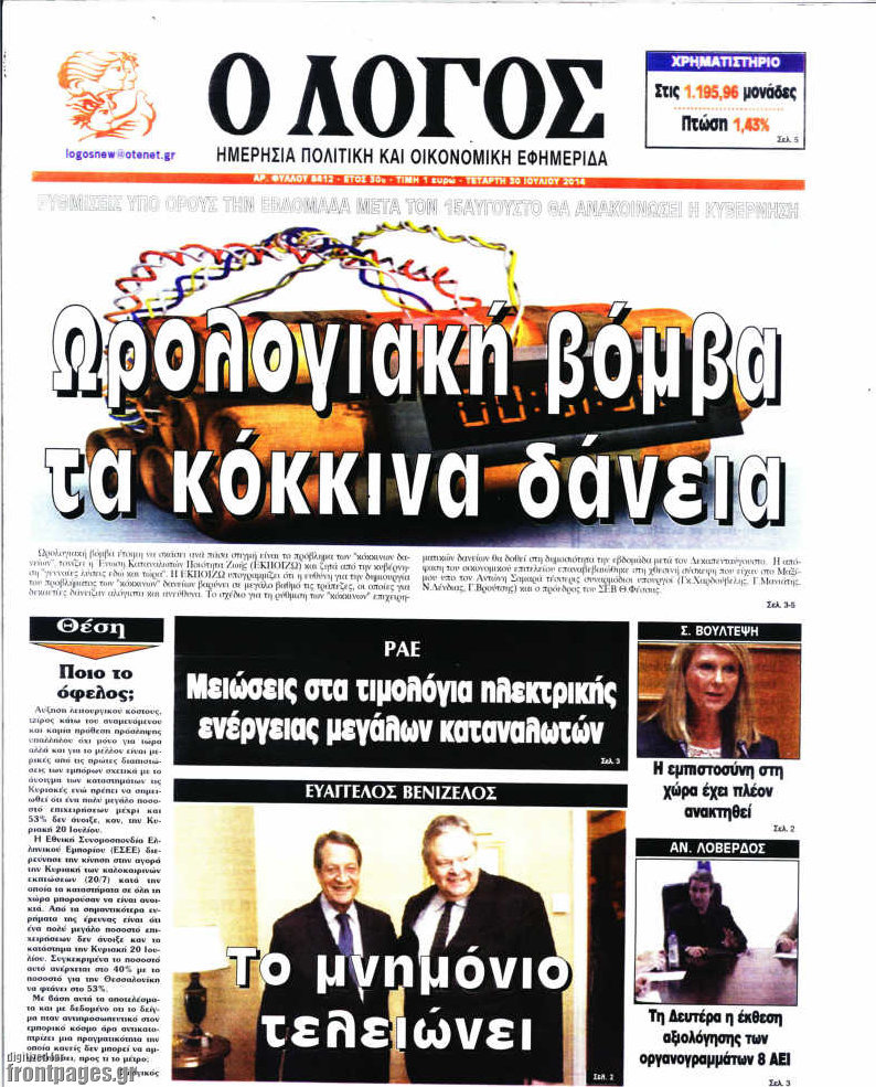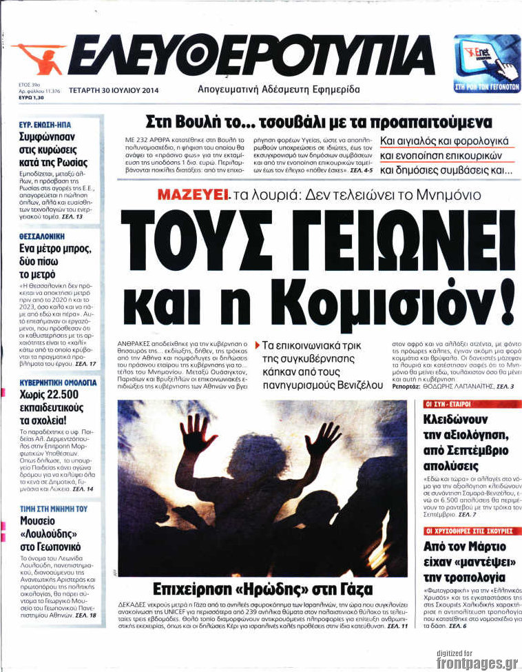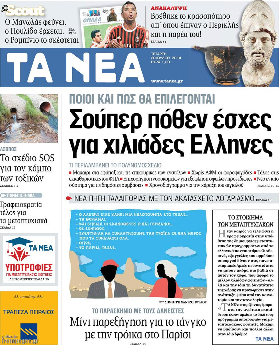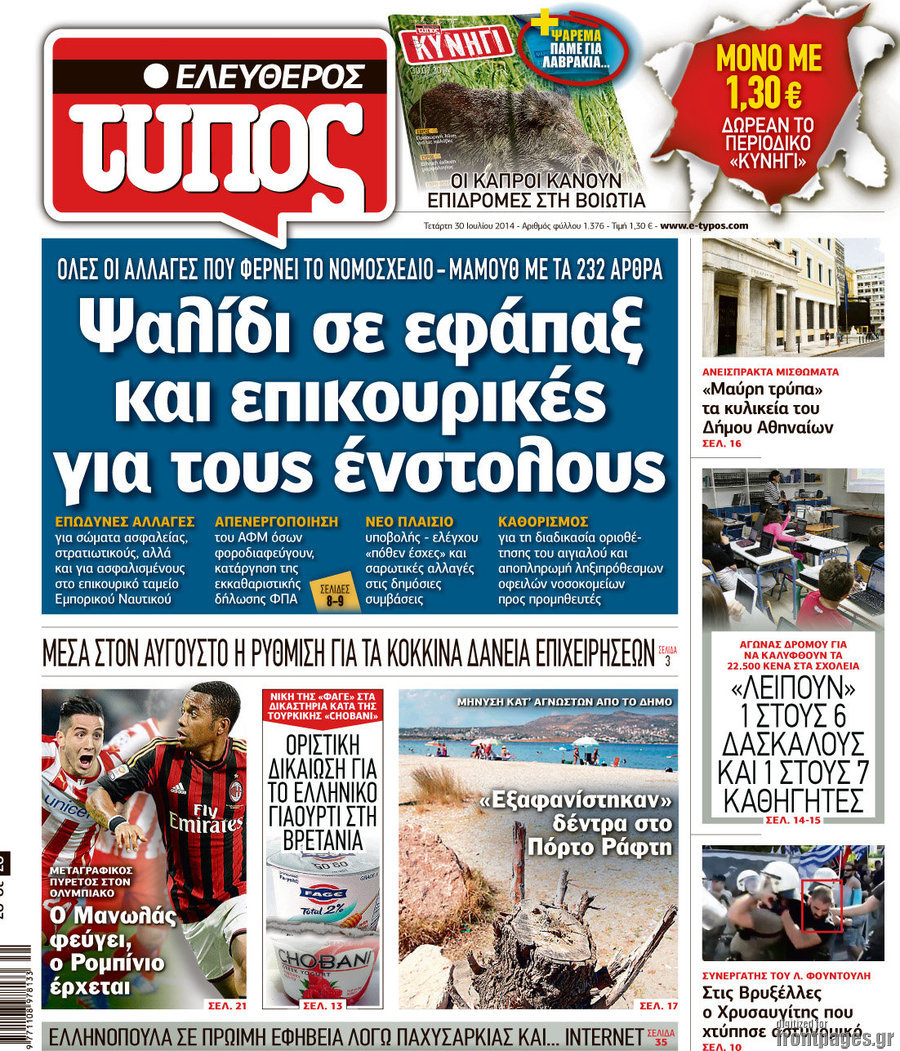 Οι πολιτικές εφημερίδες Enikos Newsroom 07:54, Τετάρτη 30 Ιουλίου 2014 Media Οι πολιτικές εφημερίδες Διαβάστε τα πρωτοσέλιδα των πολιτικών εφημερίδων. ΠΟΛΙΤΙΚΕΣ ΕΦΗΜΕΡΙΔΕΣ ΠΡΩΤΟΣΕΛΙΔΑ Μοιράσου το: σχολίασε κι εσύ (0 σχόλια) Ακολουθήστε το enikos.gr στο Google News και μάθετε πρώτοι όλες τις ειδήσεις Δείτε όλες τις τελευταίες ειδήσεις από την Ελλάδα και τον Κόσμο στο enikos.gr Ειδήσεις Ροή Ειδήσεων 2 ώρες πριν Ζελένσκι: Μόνο οι ΗΠΑ και ο Τραμπ μπορούν να πιέσουν τη Ρωσία να βάλει τέλος στον πόλεμο 2 ώρες πριν Φοινικούντα: Προφυλακιστέος ο 30χρονος για συνέργεια στη διπλή δολοφονία – Και άλλα πρόσωπα στο «μικροσκόπιο» 3 ώρες πριν Κυριάκος Μητσοτάκης: Στην Ιερουσαλήμ την Τρίτη ο Πρωθυπουργός για την τριμερή Ελλάδας, Κύπρου, Ισραήλ – Θα συναντηθεί και με τον Αμπάς 6 ώρες πριν Πώς δρούσε το κύκλωμα που διακινούσε ναρκωτικά σε σχολεία – Υπέβαλαν σε βασανιστήρια όσους δεν τηρούσαν τους «κανόνες πειθαρχίας» 2 ώρες πριν Πάπας Λέων: Όταν έχει αϋπνίες επενδύει παραγωγικά τον χρόνο του – Ποιο παιχνίδι παίζει στο κινητό 2 ώρες πριν Αριθμολογία: Ο αριθμός του φύλακα αγγέλου σας, με βάση τον μήνα γέννησής σας – «Έτσι σας στέλνει σημάδια το σύμπαν» 3 ώρες πριν Πώς να απαλλαγείτε από τη μυρωδιά του τηγανητού φαγητού: Το μυστικό βρίσκεται στην κουζίνα σας 4 ώρες πριν Μήπως οι γιορτές σας δεν είναι τόσο τέλειες; 7 χριστουγεννιάτικες συνήθειες που μαρτυρούν ότι μια οικογένεια είναι δυσλειτουργική 14 ώρες πριν Enerwave: Το νέο «ρεύμα» στη λιανική ενέργειας που αλλάζει την εμπειρία του καταναλωτή 5 λεπτά πριν Ολυμπιακός – Κηφισιά 1-1: Δεύτερη σερί ισοπαλία για τους Ερυθρόλευκους – Υπό… αμφισβήτηση η κορυφή της Super League 16 λεπτά πριν Κύκλωμα διακίνησης ναρκωτικών σε σχολεία: Τηλεφωνούσαν στους ανηλίκους την ώρα του μαθήματος – Οι διάλογοι-σοκ, τα «ψευδώνυμα» και τα βασανιστήρια 25 λεπτά πριν Χαβιέρ Μιλέι: Ο πρόεδρος της Αργεντινής χαιρετίζει την «πίεση των ΗΠΑ» στη Βενεζουέλα 33 λεπτά πριν Ξένια Τσίρκοβα: Έμαθε από την τηλεόραση ότι είναι η μεγάλη νικήτρια του GNTM – Η αντίδρασή της – ΒΙΝΤΕΟ 41 λεπτά πριν Ύπνος: Η διατροφή που μπορεί να σας βοηθήσει να κοιμάστε καλύτερα και να ζήσετε περισσότερο ENIKOS NETWORK Οι γυναίκες αποκαλύπτουν το πιο ελκυστικό πράγμα που μπορεί να κάνει ένας άνδρας Ομορφιά και αντιγήρανση: Ειδικοί μιλούν για συσκευές περιποίησης του δέρματος Ακύρωση ΑΦΜ για απάτες – Ποιους βάζει στο στόχαστρο η ΑΑΔΕ Ρεύμα: Πώς μπορείτε να αλλάξετε πάροχο γρήγορα και εύκολα – Τα βήματα της διαδικασίας Χαρτογραφώντας το «σημείο χωρίς επιστροφή»: Για πρώτη φορά αποκαλύπτεται με λεπτομέρεια το ακανθώδες όριο της ατμόσφαιρας τ... Η Google καταργεί τη λειτουργία «dark web report» – Πώς θα μπορούν οι χρήστες να διαγράφουν τα δεδομένα τους περισσότερα 20:30 , Σάββατο 20 Δεκεμβρίου 2025 Αυτή την Κυριακή με τη Realnews: Instyle, μαζί Drive και Realnews Geopolitics Αυτή την Κυριακή με τη Realnews: Instyle, μαζί Drive και Realnews Geopolitics Instyle Η Άννα Ρ... 20:28 , Σάββατο 20 Δεκεμβρίου 2025 Ο ΑΝΤ1 γεμίζει τις γιορτές με μουσική – Ποιους καλλιτέχνες θα απολαύσουμε Φέτος στον ΑΝΤ1 γιορτάζουμε τις νύχτες μας παρέα με αγαπημένους καλλιτέχνες και μεγάλες μουσι... 18:19 , Σάββατο 20 Δεκεμβρίου 2025 HOTΕΛ ΕΛVIRA: Η Ελβίρα μαθαίνει πως ο Χάρι μένει κρυφά στο ξενοδοχείο του Παντελή Συνεχίζονται οι εκλογές για πρόεδρο, στο νέο επεισόδιο της κωμικής σειράς του MEGA, HOTΕΛ ΕΛVI... 14:04 , Σάββατο 20 Δεκεμβρίου 2025 Η Realnews αυτής της Κυριακής (21/12/2025) Με τίτλο: «Ασπίδα προστασίας για την Ελλάδα» κυκλοφο