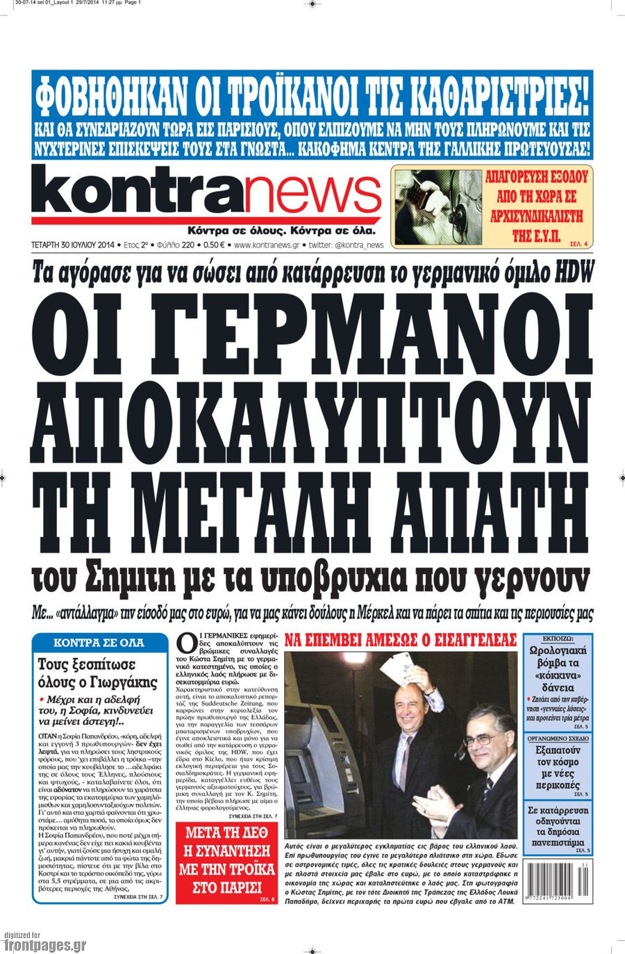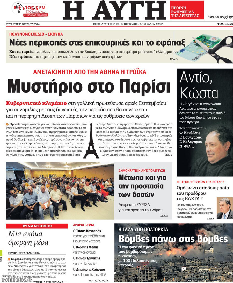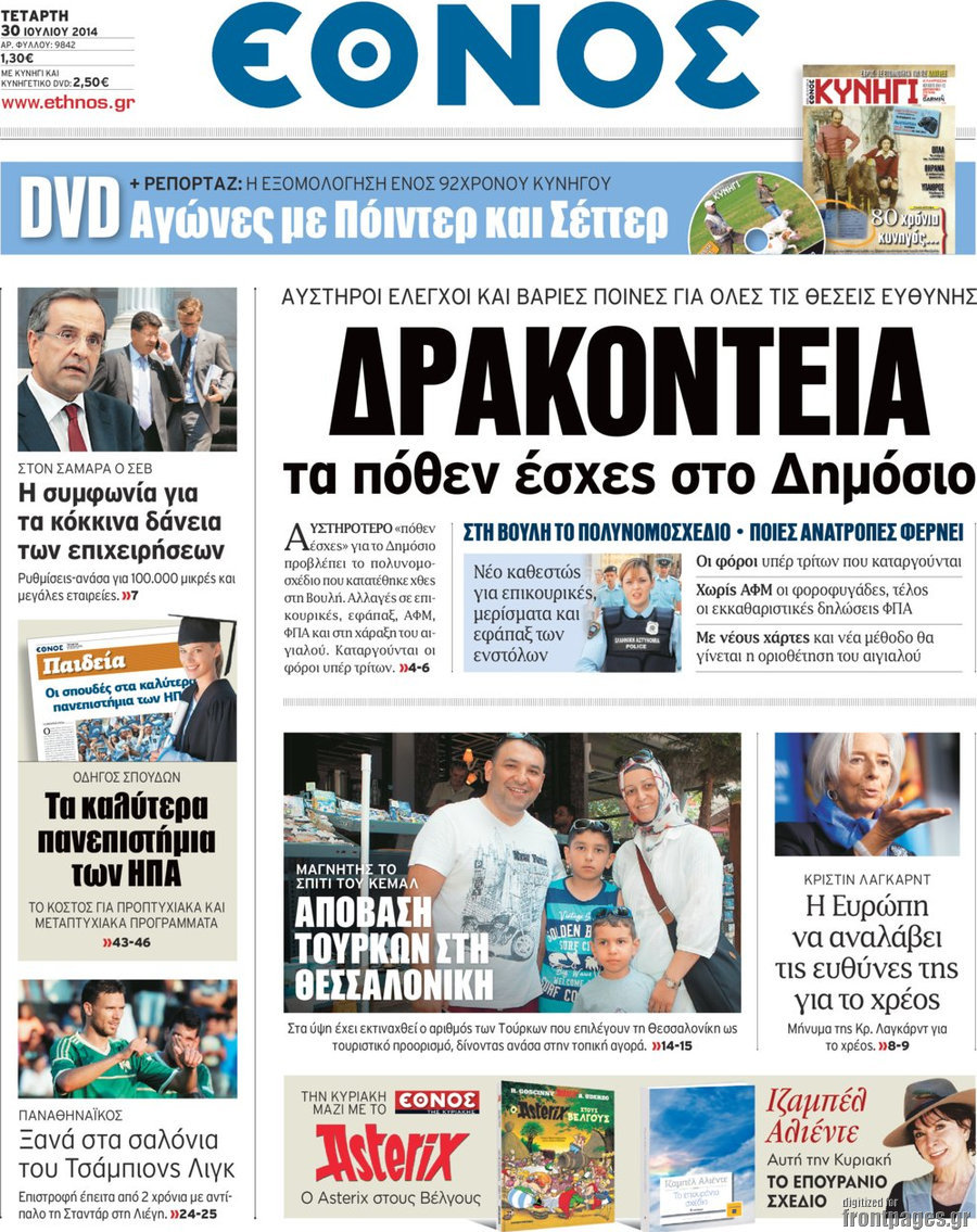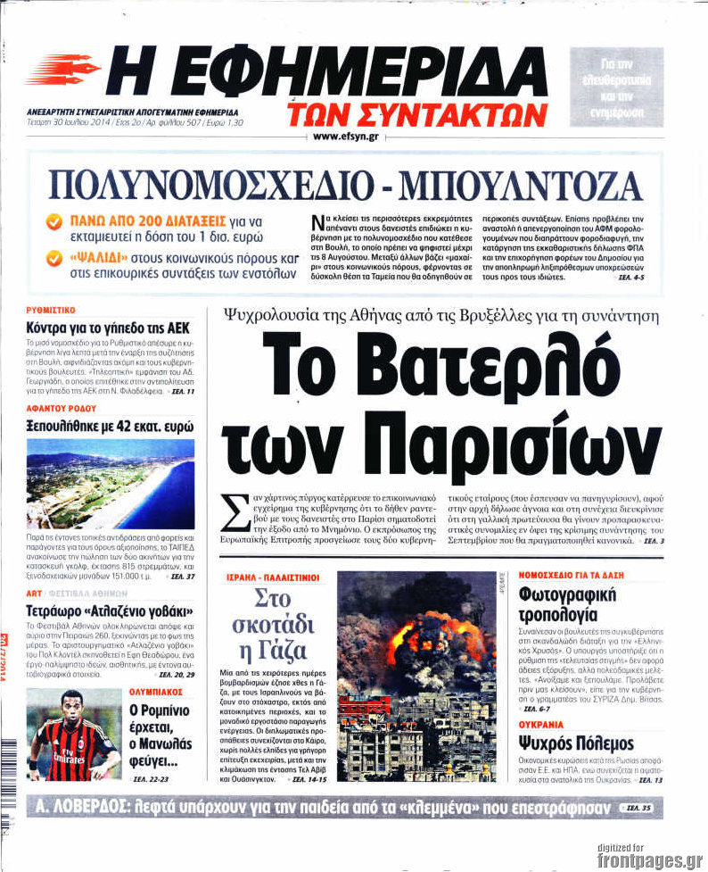 Οι πολιτικές εφημερίδες Enikos Newsroom 07:54, Τετάρτη 30 Ιουλίου 2014 Media Οι πολιτικές εφημερίδες Διαβάστε τα πρωτοσέλιδα των πολιτικών εφημερίδων. ΠΟΛΙΤΙΚΕΣ ΕΦΗΜΕΡΙΔΕΣ ΠΡΩΤΟΣΕΛΙΔΑ Μοιράσου το: σχολίασε κι εσύ (0 σχόλια) Ακολουθήστε το enikos.gr στο Google News και μάθετε πρώτοι όλες τις ειδήσεις Δείτε όλες τις τελευταίες ειδήσεις από την Ελλάδα και τον Κόσμο στο enikos.gr Ειδήσεις Ροή Ειδήσεων 2 ώρες πριν Ζελένσκι: Μόνο οι ΗΠΑ και ο Τραμπ μπορούν να πιέσουν τη Ρωσία να βάλει τέλος στον πόλεμο 2 ώρες πριν Φοινικούντα: Προφυλακιστέος ο 30χρονος για συνέργεια στη διπλή δολοφονία – Και άλλα πρόσωπα στο «μικροσκόπιο» 3 ώρες πριν Κυριάκος Μητσοτάκης: Στην Ιερουσαλήμ την Τρίτη ο Πρωθυπουργός για την τριμερή Ελλάδας, Κύπρου, Ισραήλ – Θα συναντηθεί και με τον Αμπάς 6 ώρες πριν Πώς δρούσε το κύκλωμα που διακινούσε ναρκωτικά σε σχολεία – Υπέβαλαν σε βασανιστήρια όσους δεν τηρούσαν τους «κανόνες πειθαρχίας» 2 ώρες πριν Πάπας Λέων: Όταν έχει αϋπνίες επενδύει παραγωγικά τον χρόνο του – Ποιο παιχνίδι παίζει στο κινητό 2 ώρες πριν Αριθμολογία: Ο αριθμός του φύλακα αγγέλου σας, με βάση τον μήνα γέννησής σας – «Έτσι σας στέλνει σημάδια το σύμπαν» 3 ώρες πριν Πώς να απαλλαγείτε από τη μυρωδιά του τηγανητού φαγητού: Το μυστικό βρίσκεται στην κουζίνα σας 4 ώρες πριν Μήπως οι γιορτές σας δεν είναι τόσο τέλειες; 7 χριστουγεννιάτικες συνήθειες που μαρτυρούν ότι μια οικογένεια είναι δυσλειτουργική 14 ώρες πριν Enerwave: Το νέο «ρεύμα» στη λιανική ενέργειας που αλλάζει την εμπειρία του καταναλωτή 5 λεπτά πριν Ολυμπιακός – Κηφισιά 1-1: Δεύτερη σερί ισοπαλία για τους Ερυθρόλευκους – Υπό… αμφισβήτηση η κορυφή της Super League 16 λεπτά πριν Κύκλωμα διακίνησης ναρκωτικών σε σχολεία: Τηλεφωνούσαν στους ανηλίκους την ώρα του μαθήματος – Οι διάλογοι-σοκ, τα «ψευδώνυμα» και τα βασανιστήρια 25 λεπτά πριν Χαβιέρ Μιλέι: Ο πρόεδρος της Αργεντινής χαιρετίζει την «πίεση των ΗΠΑ» στη Βενεζουέλα 33 λεπτά πριν Ξένια Τσίρκοβα: Έμαθε από την τηλεόραση ότι είναι η μεγάλη νικήτρια του GNTM – Η αντίδρασή της – ΒΙΝΤΕΟ 41 λεπτά πριν Ύπνος: Η διατροφή που μπορεί να σας βοηθήσει να κοιμάστε καλύτερα και να ζήσετε περισσότερο ENIKOS NETWORK Οι γυναίκες αποκαλύπτουν το πιο ελκυστικό πράγμα που μπορεί να κάνει ένας άνδρας Ομορφιά και αντιγήρανση: Ειδικοί μιλούν για συσκευές περιποίησης του δέρματος Ακύρωση ΑΦΜ για απάτες – Ποιους βάζει στο στόχαστρο η ΑΑΔΕ Ρεύμα: Πώς μπορείτε να αλλάξετε πάροχο γρήγορα και εύκολα – Τα βήματα της διαδικασίας Χαρτογραφώντας το «σημείο χωρίς επιστροφή»: Για πρώτη φορά αποκαλύπτεται με λεπτομέρεια το ακανθώδες όριο της ατμόσφαιρας τ... Η Google καταργεί τη λειτουργία «dark web report» – Πώς θα μπορούν οι χρήστες να διαγράφουν τα δεδομένα τους περισσότερα 20:30 , Σάββατο 20 Δεκεμβρίου 2025 Αυτή την Κυριακή με τη Realnews: Instyle, μαζί Drive και Realnews Geopolitics Αυτή την Κυριακή με τη Realnews: Instyle, μαζί Drive και Realnews Geopolitics Instyle Η Άννα Ρ... 20:28 , Σάββατο 20 Δεκεμβρίου 2025 Ο ΑΝΤ1 γεμίζει τις γιορτές με μουσική – Ποιους καλλιτέχνες θα απολαύσουμε Φέτος στον ΑΝΤ1 γιορτάζουμε τις νύχτες μας παρέα με αγαπημένους καλλιτέχνες και μεγάλες μουσι... 18:19 , Σάββατο 20 Δεκεμβρίου 2025 HOTΕΛ ΕΛVIRA: Η Ελβίρα μαθαίνει πως ο Χάρι μένει κρυφά στο ξενοδοχείο του Παντελή Συνεχίζονται οι εκλογές για πρόεδρο, στο νέο επεισόδιο της κωμικής σειράς του MEGA, HOTΕΛ ΕΛVI... 14:04 , Σάββατο 20 Δεκεμβρίου 2025 Η Realnews αυτής της Κυριακής (21/12/2025) Με τίτλο: «Ασπίδα προστασίας για την Ελλάδα» κυκλοφο