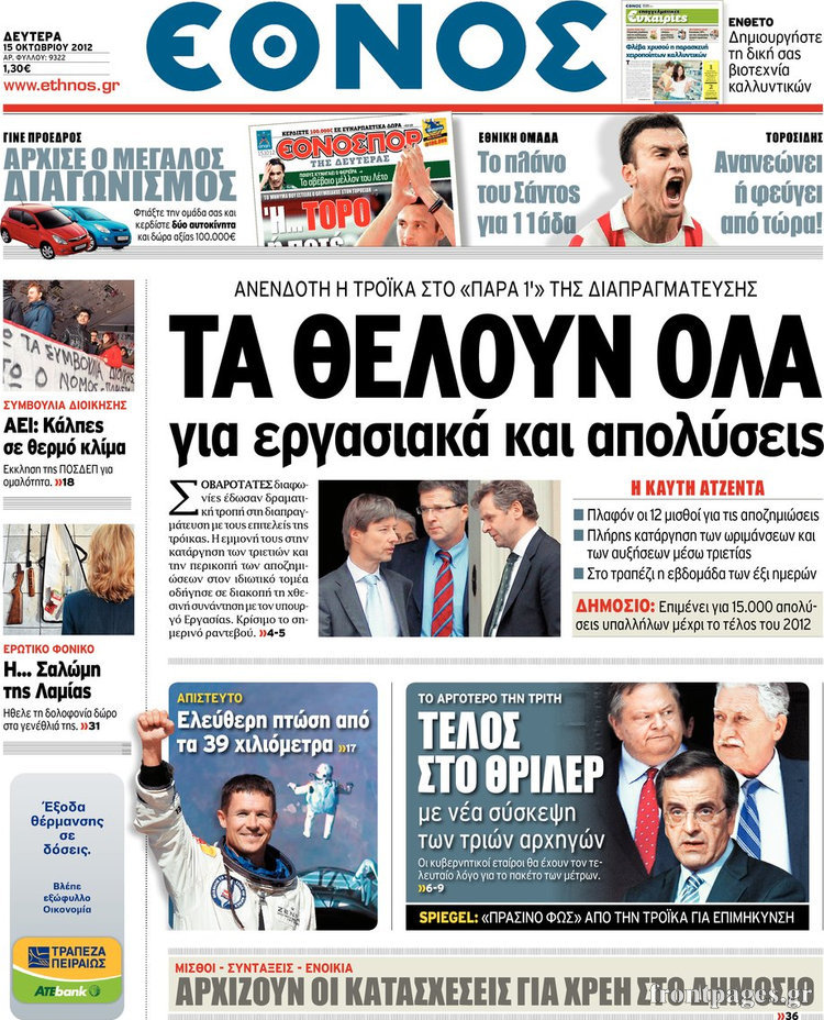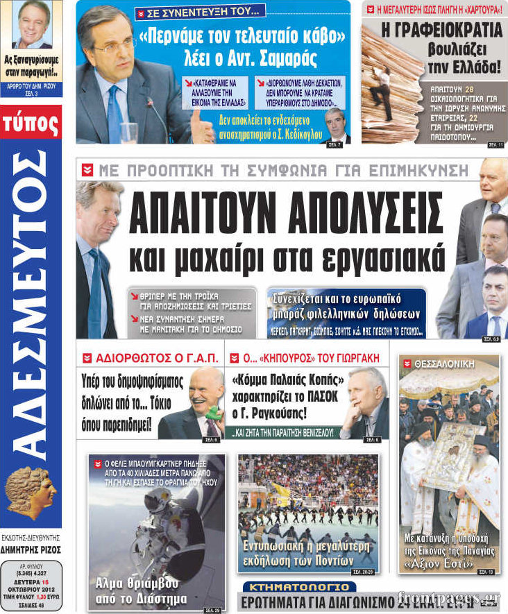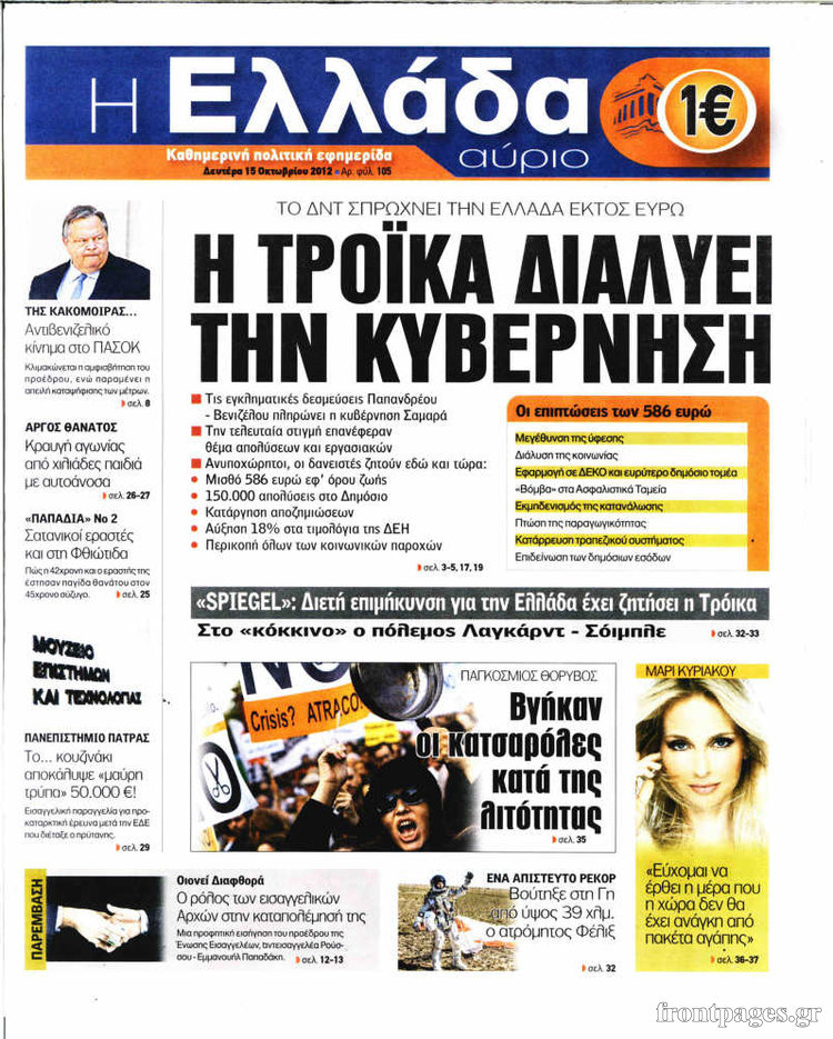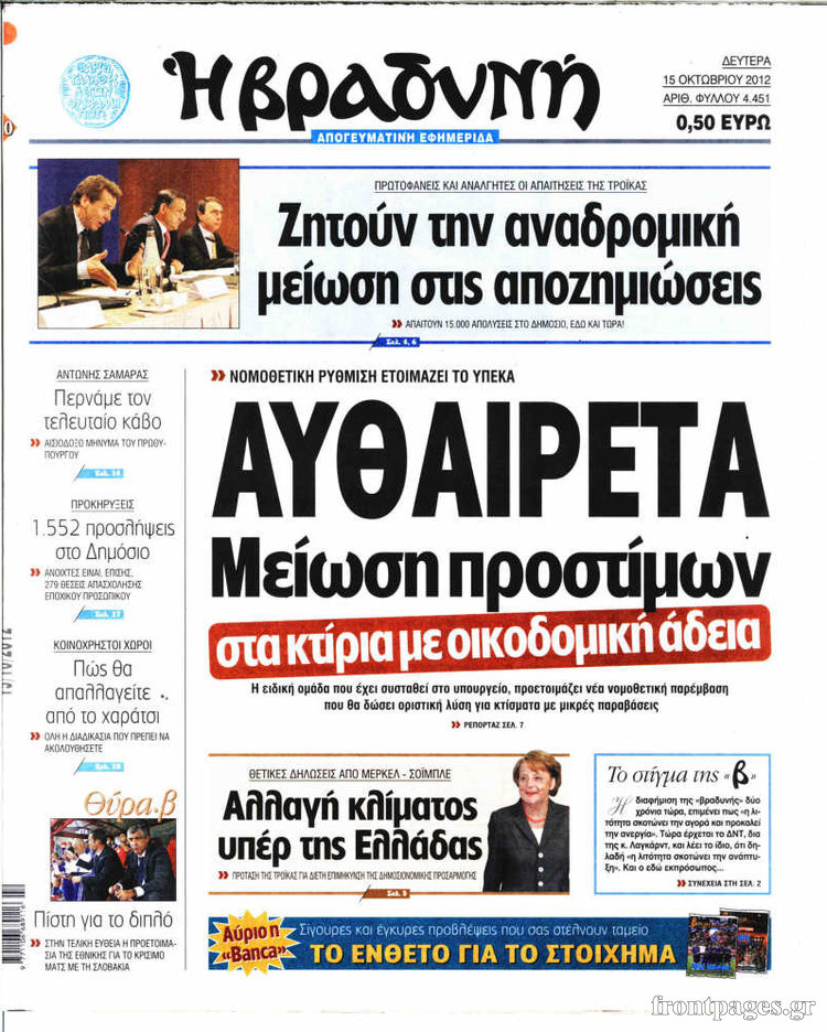 Διαβάστε τα πρωτοσέλιδα των πολιτικών εφημερίδων.