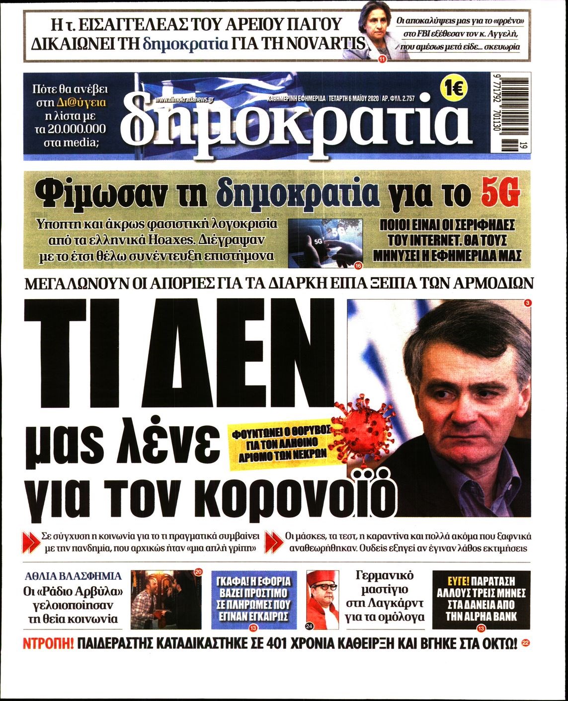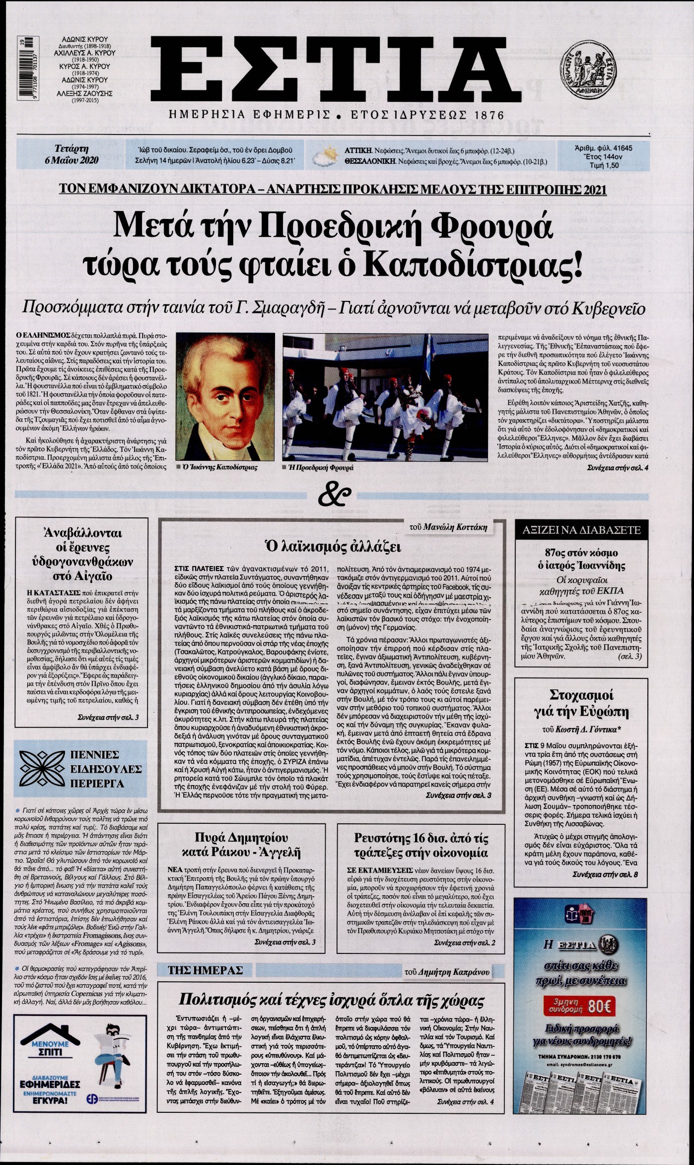 Οι πολιτικές εφημερίδες 6/5/2020 Διονύσης Νίκκας 06:09, Τετάρτη 06 Μαΐου 2020 Media Διαβάστε τα πρωτοσέλιδα των πολιτικών εφημερίδων… ΠΟΛΙΤΙΚΕΣ ΕΦΗΜΕΡΙΔΕΣ ΠΡΩΤΟΣΕΛΙΔΑ Μοιράσου το: σχολίασε κι εσύ (0 σχόλια) Ακολουθήστε το enikos.gr στο Google News και μάθετε πρώτοι όλες τις ειδήσεις Δείτε όλες τις τελευταίες ειδήσεις από την Ελλάδα και τον Κόσμο στο enikos.gr Ειδήσεις Ροή Ειδήσεων 5 ώρες πριν Χριστούγεννα στα μπλόκα: Επιμένουν στις κινητοποιήσεις τους οι αγρότες – Ανοίγουν τα διόδια το Σαββατοκύριακο 5 ώρες πριν Ουκρανία: Η άνευ προηγουμένου επίθεση σε ρωσικό τάνκερ στη Μεσόγειο και το μήνυμα προς στον Πούτιν – Το «μακρύ χέρι» του Κιέβου 4 ώρες πριν Πούτιν: Τα μηνύματα σε Ευρώπη και ΝΑΤΟ από το μαραθώνιο «σόου» του – Η απαίτηση για «σεβασμό» και η ειρήνη «με τους όρους» της Μόσχας 5 ώρες πριν Τραμπ: Δεν αποκλείει την πιθανότητα ενός πολέμου στη Βενεζουέλα – «Ο Μαδούρο ξέρει καλύτερα από τον καθένα τι ακριβώς θέλω» 6 ώρες πριν Συνεχίζει να προκαλεί ο Μίτσκοσκι: «Για μένα το όνομα Μακεδονία είναι ιερό» 4 ώρες πριν Ανακαλύφθηκαν αρχαία χρυσά νομίσματα 2.200 ετών που απεικονίζουν τον θεό Απόλλωνα – Η άγνωστη σύνδεση με τον Φίλιππο Β΄ της Μακεδονίας 5 ώρες πριν Ύπνος: Μια κρυφή κατάσταση του εγκεφάλου πριν από τον ύπνο μπορεί να είναι το “κλειδί” για υψηλή ευφυΐα και δημιουργικότητα 6 ώρες πριν Αριθμολογία: Οι άνθρωποι που έχουν γεννηθεί αυτές τις 4 ημερομηνίες, συχνά παρεξηγούνται – «Η καλοσύνη τους κρύβει τεράστια δύναμη» 7 ώρες πριν Ξεχάστε το καθάρισμα το Σαββατοκύριακο: Ο «κανόνας των 20 λεπτών» που θα σας λύσει τα χέρια 9 λεπτά πριν Η Ελλάδα προσχωρεί στη Διεθνή Επιτροπή Αποζημιώσεων για την Ουκρανία 24 λεπτά πριν GNTM: Η Ξένια Τσίρκοβα αναδείχθηκε μεγάλη νικήτρια και πήρε τις 50.000 ευρώ – Ποιος βρέθηκε σε απόσταση αναπνοής; 39 λεπτά πριν Θεσσαλονίκη: Εξαφανίστηκε 13χρονος από χώρο φιλοξενίας ασυνόδευτων ανηλίκων στο Ωραιόκαστρο 49 λεπτά πριν Ντόναλντ Τραμπ: «Πολύ βαριά αντίποινα» στη Συρία – «Πλήττουμε πολύ δυνατά οχυρά του Ισλαμικού Κράτους» 1 ώρα πριν Εξάρχεια: Ένταση με μολότοφ, χημικά και κρότου λάμψης ENIKOS NETWORK Το ΕΚΑΒ τιμήθηκε από την Ακαδημία Αθηνών για τα 40 χρόνια προσφοράς του Έχετε πραγματικά μεγάλη καρδιά; 10 χαρακτηριστικά όσων έχουν καλοσύνη Αναστολή μέτρων αναγκαστικής εκτέλεσης για κτηνοτρόφους που πλήττονται από την ευλογιά των αιγοπροβάτων Πλήρης επάρκεια προϊόντων στις λαϊκές της Αττικής, παρά τις αγροτικές κινητοποιήσεις – Τι απαντούν οι πωλητές Χαρτογραφώντας το «σημείο χωρίς επιστροφή»: Για πρώτη φορά αποκαλύπτεται με λεπτομέρεια το ακανθώδες όριο της ατμόσφαιρας τ... Η Google καταργεί τη λειτουργία «dark web report» – Πώς θα μπορούν οι χρήστες να διαγράφουν τα δεδομένα τους περισσότερα 02:50 , Σάββατο 20 Δεκεμβρίου 2025 GNTM: Η Ξένια Τσίρκοβα αναδείχθηκε μεγάλη νικήτρια και πήρε τις 50.000 ευρώ – Ποιος βρέθηκε σε απόσταση αναπνοής; Με φαντασμαγορικό τρόπο ολοκληρώθηκε το βράδυ της Παρασκευής ο μεγάλος τελικός του GNTM, μέσα ... 22:42 , Παρασκευή 19 Δεκεμβρίου 2025 Γιώργος Γιαννόπουλος για “Το σόι σου”: “Είναι ευτυχία και ευλογία αυτή η σειρά” «Είναι ευτυχία και ευλογία η συγκυρία αυτής της σειράς», θα πει ο Γιώργος Γιαννόπουλος -ο αγαπ... 20:37 , Παρασκευή 19 Δεκεμβρίου 2025 Don’t Forget The Lyrics: Η Έλλη Κοκκίνου υποδέχεται 4 παίκτες που θα κάνουν τα πάντα για να μη χάσουν ούτε… μισή λέξη από τους στίχους Το «Don’t Forget The Lyrics» επιστρέφει απόψε, Παρασκευή 19 Δεκεμβρίου, στις 21:00 με νέο ε