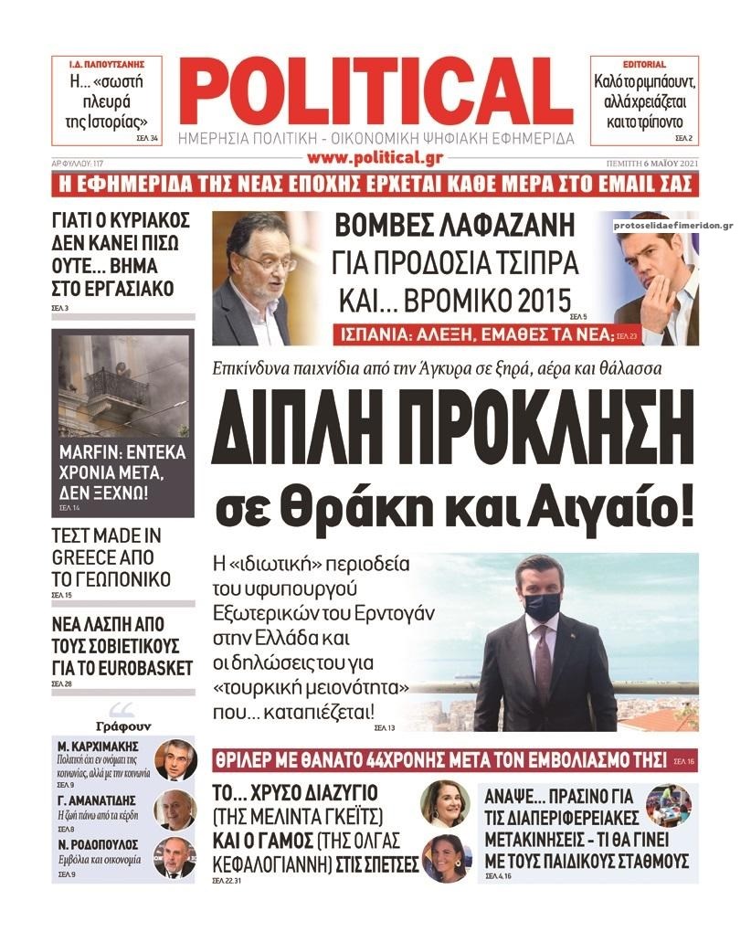 Οι πολιτικές εφημερίδες 6/5/2021 Σήφης Γαρυφαλάκης 06:32, Πέμπτη 06 Μαΐου 2021 Media Διαβάστε τα πρωτοσέλιδα των πολιτικών εφημερίδων… ΕΦΗΜΕΡΙΔΕΣ ΠΟΛΙΤΙΚΕΣ ΕΦΗΜΕΡΙΔΕΣ ΠΡΩΤΟΣΕΛΙΔΑ ΠΡΩΤΟΣΕΛΙΔΑ ΕΦΗΜΕΡΙΔΩΝ Μοιράσου το: σχολίασε κι εσύ (0 σχόλια) Ακολουθήστε το enikos.gr στο Google News και μάθετε πρώτοι όλες τις ειδήσεις Δείτε όλες τις τελευταίες ειδήσεις από την Ελλάδα και τον Κόσμο στο enikos.gr Ειδήσεις Ροή Ειδήσεων 1 ώρα πριν Νίκος Παππάς: Άφαντος παραμένει ο ευρωβουλευτής μετά την επίθεση στον Νίκο Γιαννόπουλο 43 λεπτά πριν Μητσοτάκης: Η Ελλάδα στηρίζει την Ουκρανία και θα υποστηρίξει οποιαδήποτε λύση της παρέχει χρηματοδοτική σταθερότητα 1 ώρα πριν Συναγερμός και στην Ελλάδα για τη «σούπερ γρίπη»: Πόσο σοβαρή είναι και ποιοι θεωρούνται πιο ευάλωτοι – 3 ειδικοί μιλούν στο enikos.gr 1 ώρα πριν Με το βλέμμα στραμμένο στις Σέρρες οι αγρότες – Ο χάρτης των μπλόκων στη Βόρεια Ελλάδα 3 ώρες πριν Ντόναλντ Τραμπ: Το διάγγελμα, η πτώση στις δημοσκοπήσεις και το… χάος που κληρονόμησε από τον Μπάιντεν 2 ώρες πριν Τα 4 ζώδια που λαμβάνουν ένα ισχυρό σημάδι από το σύμπαν – «Αποκαλύπτεται κάτι που μπορεί να αλλάξει τη ζωή μας» 3 ώρες πριν Η σύζυγός του παραπονιέται για τα χρήματα που της δίνει για ψώνια κάθε μήνα – «Λέει ότι νιώθει φτωχή και της είπα να βρει δουλειά» 1 ώρα πριν Αν κάνετε συνεχώς αυτά τα 8 πράγματα με τα κατοικίδιά σας, σας λείπει η ανθρώπινη επαφή 1 ημέρα πριν 20 χρόνια τα Χριστούγεννα ξεκινούν στα Public με μεγάλη ποικιλία σε δώρα! 2 λεπτά πριν Καμμένος σε Καρυστιανού: Σας πολεμάνε, γιατί σας φοβούνται – Η ανάγκη για Οξυγόνο θα επικρατήσει 8 λεπτά πριν Άνδρας 30 ετών αποκαλύπτει πώς έχασε 45 κιλά σε 1 χρόνο: «Ήμουν νωθρός και ανασφαλής – Πλέον νιώθω ικανός για οτιδήποτε» 15 λεπτά πριν Ανατροπή για τα ενοίκια: Παράταση 3 μηνών για την υποχρεωτική πληρωμή μέσω τράπεζας 20 λεπτά πριν Φωκίδα: «Τώρα θα πάω στους αγγέλους»: Τα τελευταία λόγια του άνδρα που βρέθηκε απανθρακωμένος στο αυτοκίνητό του 25 λεπτά πριν Πιερρακάκης για ΕΛΤΑ: Στο σχέδιο δεν προβλέπεται κλείσιμο αλλά μετασχηματισμός καταστημάτων ENIKOS NETWORK Τι περιλαμβάνει το σχέδιο της ΕΕ για την καρδιαγγειακή υγεία-Οι προτάσεις της Ελληνικής Καρδιολογικής Εταιρείας Σύγχρονες τεχνικές αποκατάστασης χόνδρινων βλαβών & διατήρησης της άρθρωσης Ειδικό επιδοτούμενο πρόγραμμα κατάρτισης από ΔΥΠΑ και ΕΛΓΟ – ΔΗΜΗΤΡΑ: Έως αύριο οι ενστάσεις – Όσα πρέπει να γνωρίζετε Συντάξεις Ιανουαρίου 2026: Ποια ταμεία πιστώνουν σήμερα τα ποσά Χαρτογραφώντας το «σημείο χωρίς επιστροφή»: Για πρώτη φορά αποκαλύπτεται με λεπτομέρεια το ακανθώδες όριο της ατμόσφαιρας τ... Η Google καταργεί τη λειτουργία «dark web report» – Πώς θα μπορούν οι χρήστες να διαγράφουν τα δεδομένα τους περισσότερα 08:00 , Πέμπτη 18 Δεκεμβρίου 2025 Την Κυριακή με τη Realnews: Δωροεπιταγή 10€ Δωροεπιταγή αξίας 10€ για αγορές άνω των 60€ από τα πολυκαταστήματα FactoryOutlet H προσφορά ι... 07:50 , Πέμπτη 18 Δεκεμβρίου 2025 «Το σόι σου»: Backstage στα γυρίσματα για το εορταστικό επεισόδιο «Το σόι σου» φορά τα γιορτινά του για τα Χριστούγεννα και η Όλγα Λαφαζάνη, με την κάμερα του «... 07:36 , Πέμπτη 18 Δεκεμβρίου 2025 Οι αθλητικές μεταδόσεις 18/12/2025 – Πού θα δείτε τον αγώνα της ΑΕΚ με την Κραϊόβα για το Conference League Τα ματς ΑΕΚ – Ουνιβερσιτάτεα Κραϊόβα για το Conference League και Παναθηναϊκός – Χάποελ Τελ Αβ... 05:48 , Πέμπτη 18 Δεκεμβρίου 2025 Οι οικονομικές εφημερίδες 18/12/2025 Διαβάστε τα πρωτοσέλιδα από τις οικονομικές εφημερίδες, σήμερα 18