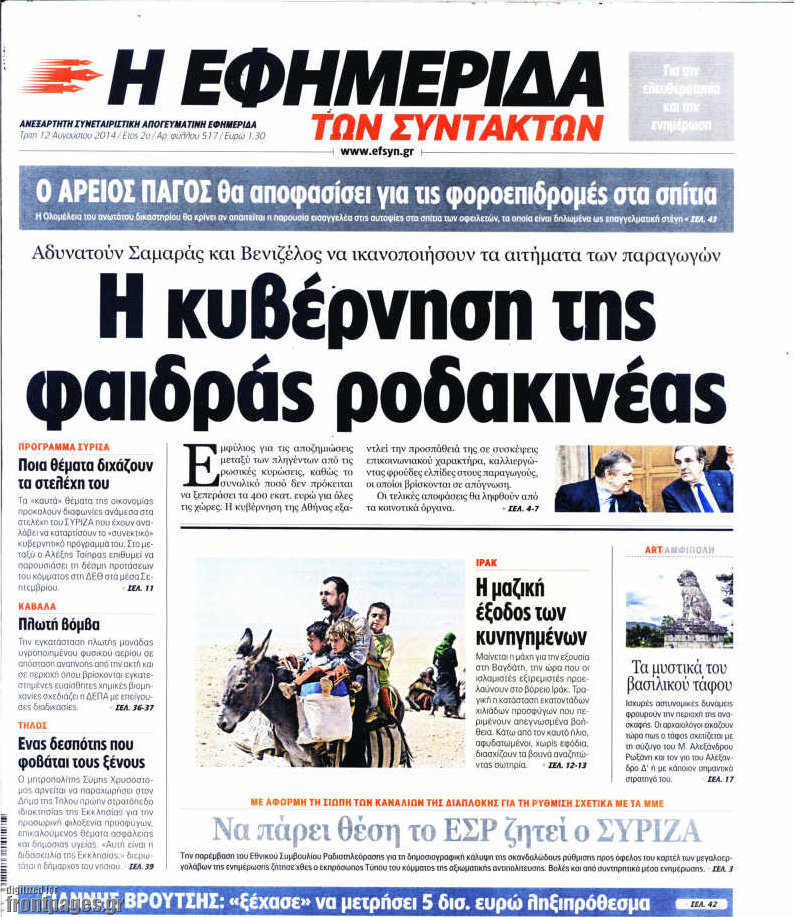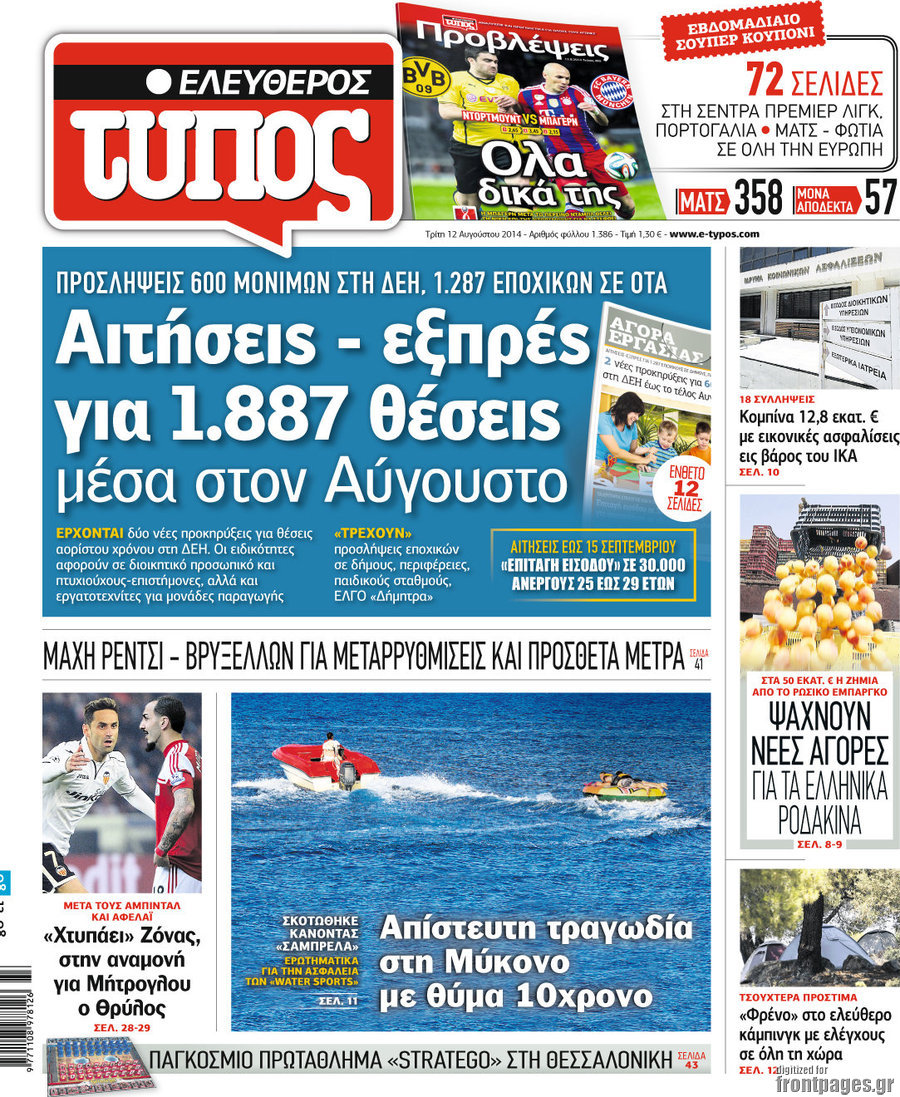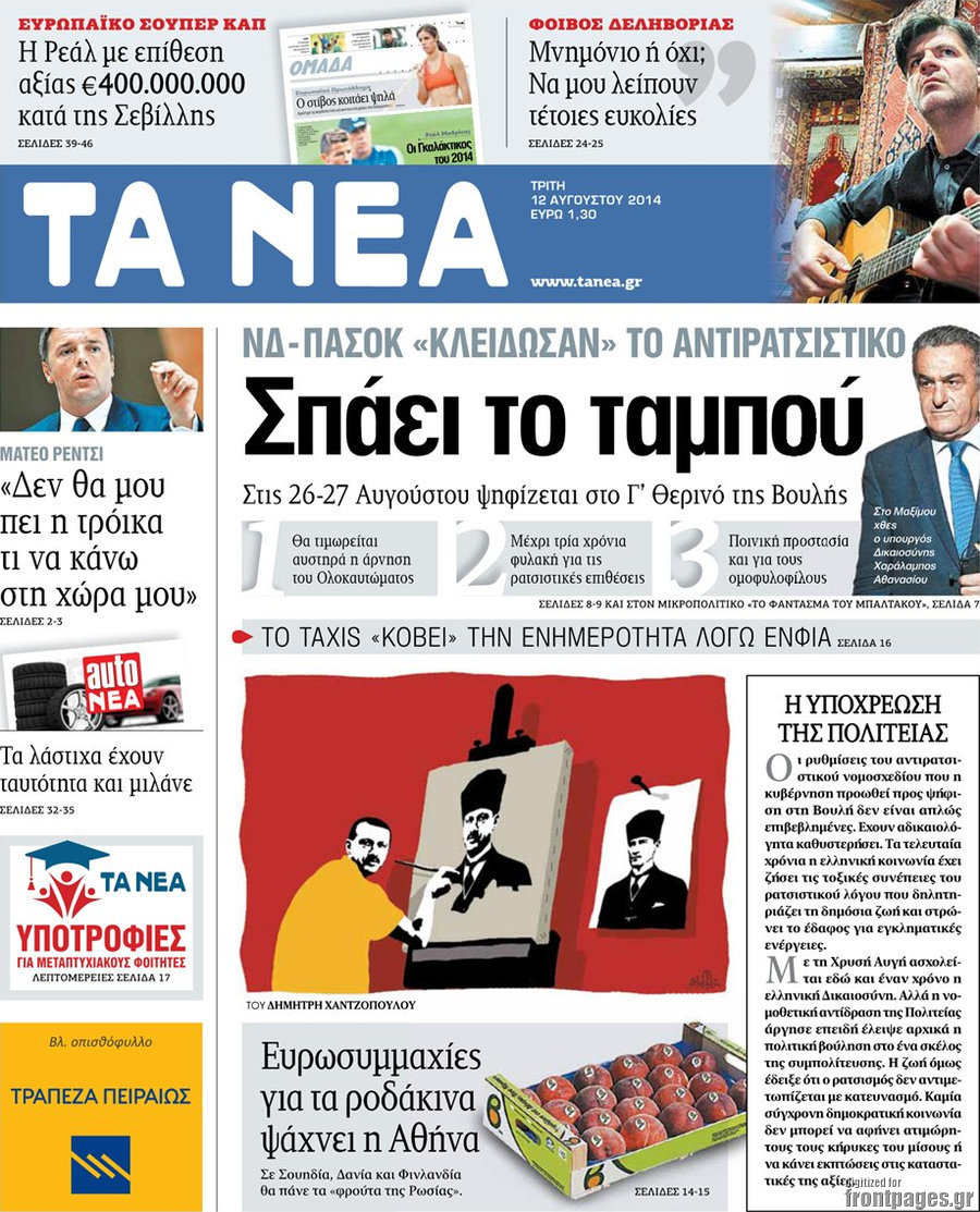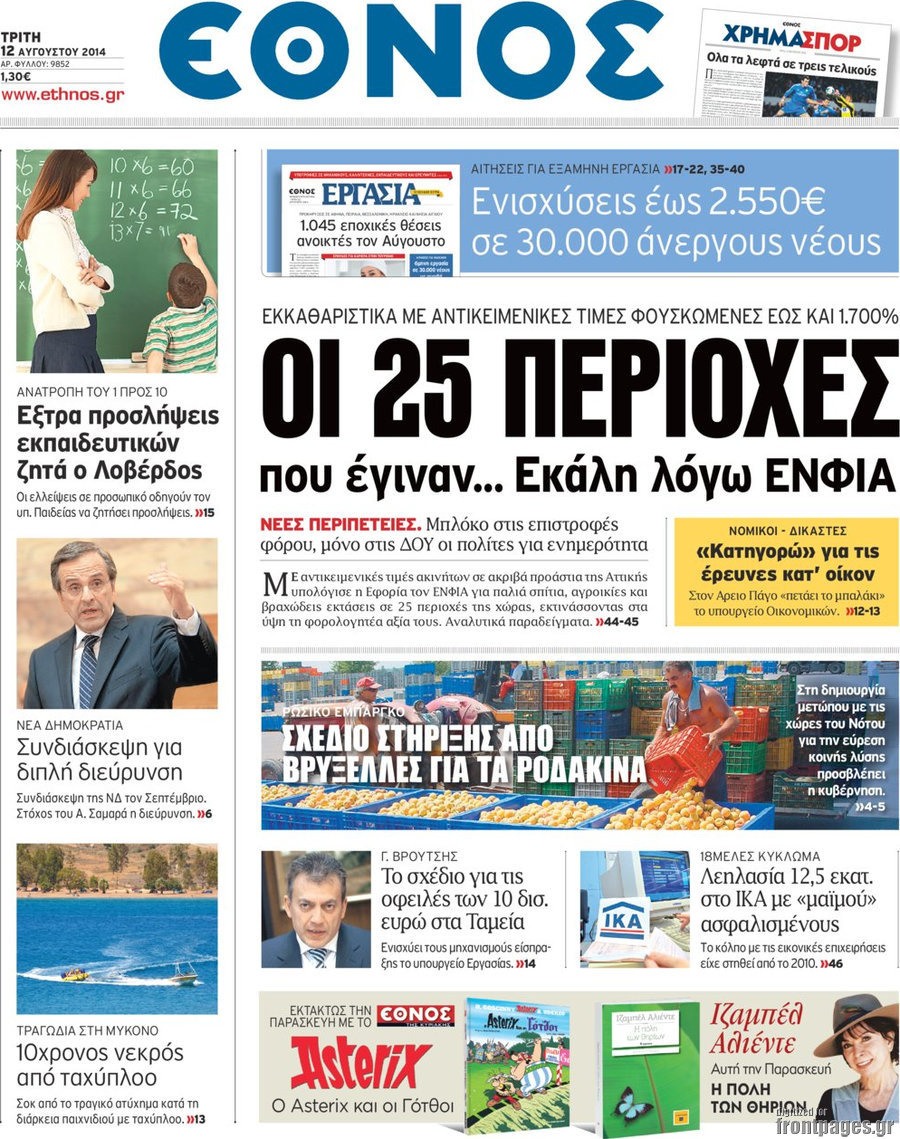 Οι πολιτικές εφημερίδες Enikos Newsroom 08:11, Τρίτη 12 Αυγούστου 2014 Media Οι πολιτικές εφημερίδες Διαβάστε τα πρωτοσέλιδα των πολιτικών εφημερίδων: ΕΦΗΜΕΡΙΔΕΣ ΠΟΛΙΤΙΚΕΣ ΕΦΗΜΕΡΙΔΕΣ ΠΡΩΤΟΣΕΛΙΔΑ Μοιράσου το: σχολίασε κι εσύ (0 σχόλια) Ακολουθήστε το enikos.gr στο Google News και μάθετε πρώτοι όλες τις ειδήσεις Δείτε όλες τις τελευταίες ειδήσεις από την Ελλάδα και τον Κόσμο στο enikos.gr Ειδήσεις Ροή Ειδήσεων 4 ώρες πριν Κύκλωμα διακίνησης ναρκωτικών σε σχολεία: Βίντεο ντοκουμέντο από τα βασανιστήρια στους ανήλικους – Συζητούσαν για το πώς θα κάνουν «ξέπλυμα χρήματος» 3 ώρες πριν Κλιμακώνουν τις κινητοποιήσεις τους οι αγρότες: Κλείνουν τη Δευτέρα τις σήραγγες των Τεμπών για τα φορτηγά – Ανοίγουν την Τρίτη τους δρόμους για τους εκδρομείς 4 ώρες πριν Αιματηρό επεισόδιο στον Άγιο Παντελεήμονα – Δύο τραυματίες, αναζητείται ο δράστης 3 ώρες πριν ΗΠΑ: Αυξάνουν την πίεση στην Βενεζουέλα – Το νέο ρεσάλτο σε τάνκερ και ο στόχος του Τραμπ 3 ώρες πριν Κασσελάκης για παραίτηση Μάλαμα: «Η πορεία μας δεν θα καθοριστεί από μεμονωμένα πρόσωπα, μηχανισμούς και προσωπικές ατζέντες» 4 ώρες πριν Ύπνος: Τι είναι ο «κανόνας 3-3-3» που χρησιμοποιεί ένας γιατρός για να ξεχωρίσει την κόπωση από την αϋπνία 5 ώρες πριν Αριθμολογία: Οι άνθρωποι που έχουν γεννηθεί αυτές τις 4 ημερομηνίες, είναι οι πιο πιστοί και αφοσιωμένοι σύντροφοι 3 ώρες πριν Αρχαιολογικό θρίλερ στην καρδιά της Ευρώπης: Παράξενο θραύσμα με ανάγλυφα και σφηνοειδή γραφή ανακαλύφθηκε σε μέρος που δεν περίμενε κανείς 2 ημέρες πριν Enerwave: Το νέο «ρεύμα» στη λιανική ενέργειας που αλλάζει την εμπειρία του καταναλωτή 19 λεπτά πριν ΠΑΟΚ: Ζημιά στον «δικέφαλο του Βορρά» με τον Παβλένκα – Υπέστη κάκωση στον έσω πλάγιο σύνδεσμο – Εκτός για 1 με 1,5 μήνα 27 λεπτά πριν Μάρκο Νίκολιτς μετά το ΑΕΚ-ΟΦΗ: «Τα τελευταία πολλά χρόνια δεν παίρναμε νίκη τα Χριστούγεννα και φέτος τα καταφέραμε» 40 λεπτά πριν Νείλος: Νεκρή μία 47χρονη Ιταλίδα έπειτα από σύγκρουση δύο κρουαζιερόπλοιων 55 λεπτά πριν Τζέιμς Ράνσον: Πέθανε σε ηλικία 46 ετών ο Αμερικανός ηθοποιός – Γνωστός για την συμμετοχή του στην σειρά «The Wire» 1 ώρα πριν Πέθανε ο Rosa von Praunheim – Πρωτοπόρος του queer κινηματογράφου και της γκέι απελευθέρωσης ENIKOS NETWORK Οι γυναίκες έχουν βρει μια νέα απόλαυση στην κρεβατοκάμαρα που οι περισσότεροι άνδρες αγνοούν Christmas glow: 5 χρυσές συμβουλές για επιδερμίδα που λάμπει από ομορφιά τα Χριστούγεννα Νέο έτος ρεκόρ για τον ελληνικό τουρισμό το 2025: «Είμαστε μέσα στους 10 πλέον επισκέψιμους προορισμούς παγκοσμίως» λέει η ... Τιμές καυσίμων: Πόσο θα πληρώσουν οι εκδρομείς των Χριστουγέννων – Το κόστος μετακινήσεων σε δημοφιλείς προορισμούς Χαρτογραφώντας το «σημείο χωρίς επιστροφή»: Για πρώτη φορά αποκαλύπτεται με λεπτομέρεια το ακανθώδες όριο της ατμόσφαιρας τ... Η Google καταργεί τη λειτουργία «dark web report» – Πώς θα μπορούν οι χρήστες να διαγράφουν τα δεδομένα τους περισσότερα 00:13 , Δευτέρα 22 Δεκεμβρίου 2025 MasterChef: Στον… αέρα το τρέιλερ του 10ου κύκλου – ΒΙΝΤΕΟ Κυκλοφόρησε το τρέιλερ για τον 10ο κύκλο του MasterChef, σηματοδοτώντας την επιστροφή του δημο... 21:30 , Κυριακή 21 Δεκεμβρίου 2025 Ο Δικαστής: Στα χέρια της Αστυνομίας βίντεο, που ανατρέπει όλα τα δεδομένα – Στενεύει ο κλοιός γύρω από τον Δικαστή Καταιγιστικές εξελίξεις στο τελευταίο επεισόδιο της χρονιάς της σειράς “Ο Δικαστής”... 17:18 , Κυριακή 21 Δεκεμβρίου 2025 «Η Μεγάλη Χίμαιρα»: Μάγεψε το κοινό κατά την avant-première της προβολής της Την Π