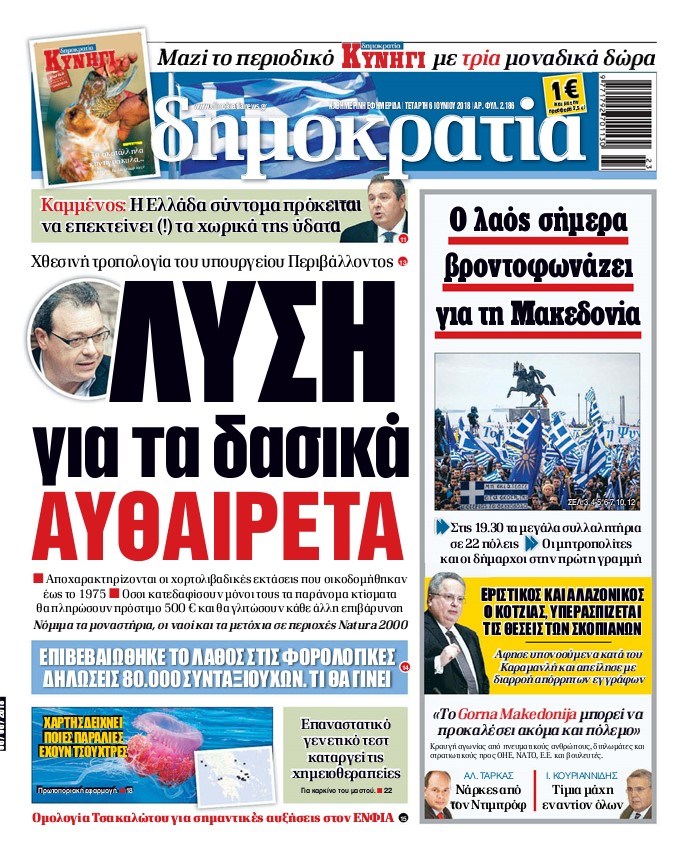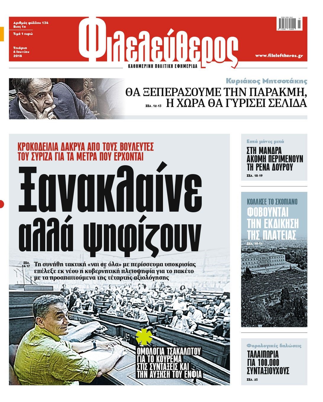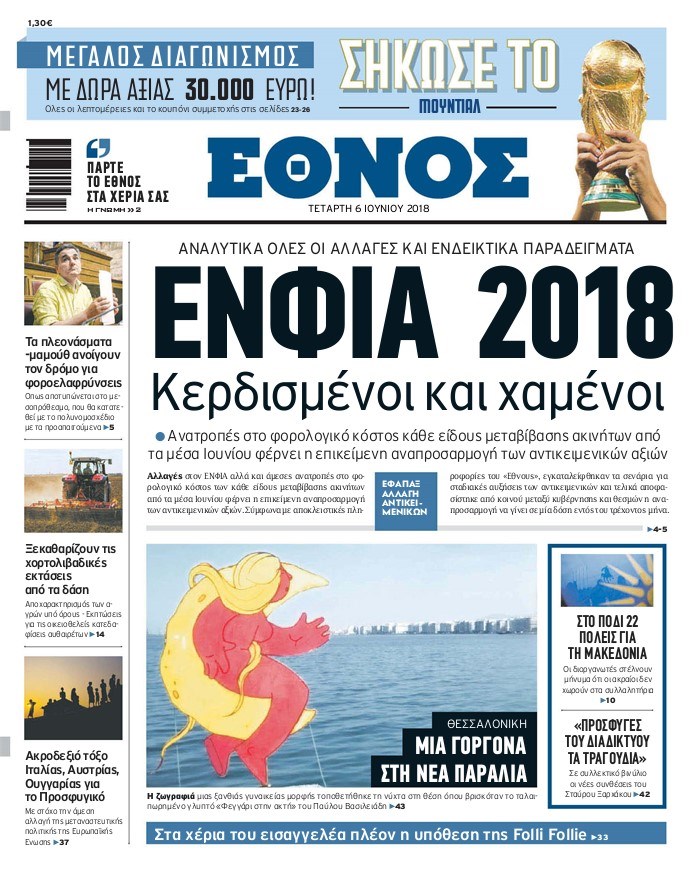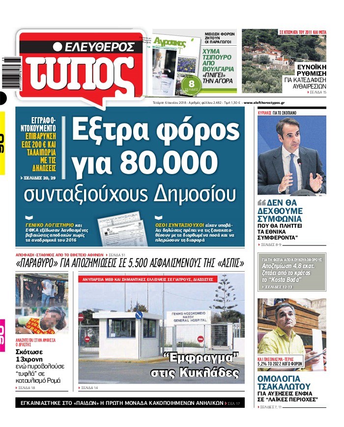 Οι πολιτικές εφημερίδες 6/6/2018 Enikos Newsroom 07:33, Τετάρτη 06 Ιουνίου 2018 Media Διαβάστε τα σημερινά πρωτοσέλιδα των πολιτικών εφημερίδων. ΕΦΗΜΕΡΙΔΕΣ ΠΟΛΙΤΙΚΕΣ ΕΦΗΜΕΡΙΔΕΣ ΠΡΩΤΟΣΕΛΙΔΑ Μοιράσου το: σχολίασε κι εσύ (0 σχόλια) Ακολουθήστε το enikos.gr στο Google News και μάθετε πρώτοι όλες τις ειδήσεις Δείτε όλες τις τελευταίες ειδήσεις από την Ελλάδα και τον Κόσμο στο enikos.gr Ειδήσεις Ροή Ειδήσεων 2 ώρες πριν Μπλόκα: Οι αγρότες σηκώνουν τις μπάρες σε διόδια για τους εκδρομείς των Χριστουγέννων και μοιράζουν προϊόντα – Βίντεο 3 ώρες πριν Τσιάρας προς αγρότες: Τα μπλόκα και τα πείσματα δεν ωφελούν – Οι λύσεις περνούν μέσα από τον διάλογο 4 ώρες πριν Αρχεία Έπσταϊν: Οι συγκλονιστικές φωτογραφίες – Ο Μάικλ Τζάκσον, ο Μικ Τζάγκερ και ο Κέβιν Σπέισι ανάμεσα στους διάσημους που απεικονίζονται 2 ώρες πριν Μαθητές διακινούσαν κοκαΐνη και χασίς σε σχολείο της Αττικής – 12 συλλήψεις 2 ώρες πριν Βέλγιο: Άγνωστοι έριξαν κόκκινη μπογιά στο προξενείο της Πολωνίας στις Βρυξέλλες 6 ώρες πριν Μία νέα «χρυσή» περίοδος αρχίζει για 3 ζώδια από σήμερα – «Μία αναπάντεχη ευκαιρία οδηγεί στην επιτυχία» 4 ώρες πριν Διαιτολόγος αποκαλύπτει 9 πρωινές συνήθειες που «λιώνουν» το κοιλιακό λίπος – «Υποστηρίζουν την υγιεινή απώλεια βάρους» 5 ώρες πριν Οι 7 φράσεις που δεν λένε ποτέ οι συναισθηματικά έξυπνοι άνθρωποι κατά τη διάρκεια ενός καβγά 7 ώρες πριν Enerwave: Το νέο «ρεύμα» στη λιανική ενέργειας που αλλάζει την εμπειρία του καταναλωτή 12 λεπτά πριν Στο νοσοκομείο ο Λευτέρης Πανταζής – Τι συνέβη 21 λεπτά πριν Super League: Με Κηφισιά ο Ολυμπιακός για να «κλείσει» το 2025 στην κορυφή – Αναλυτικά το πρόγραμμα της 15ης αγωνιστικής 26 λεπτά πριν ΕΛΑΣ: Συνελήφθησαν Υπαρχιπυροσβέστης και δύο ακόμη άτομα για κατοχή και διακίνηση ναρκωτικών ουσιών – Η καταγγελία και ο τιμοκατάλογος 34 λεπτά πριν Πακιστάν: Σε κάθειρξη 17 ετών καταδικάστηκαν ο πρώην πρωθυπουργός Ίμραν Χαν και η σύζυγός του 43 λεπτά πριν Μαρινάκης στον Realfm 97,8: Η κυβέρνηση σέβεται κάθε λογική διεκδίκηση των αγροτών, αλλά και το αίτημα των πολιτών να μην ταλαιπωρούνται ENIKOS NETWORK Η αποχή από την αναπαραγωγή παρατείνει τη ζωή στα ζώα, σύμφωνα με μελέτη – Τι ισχύει για τους ανθρώπους; Σημαντικές επαφές στις ΗΠΑ είχε ο υπουργός Υγείας Άδωνις Γεωργιάδης Επιτροπή Ανταγωνισμού: Στο μικροσκόπιο σχολικές τσάντες και επώνυμα brands – Τι ερευνάται Ευλογιά αιγοπροβάτων: Παρατεταμένη επιζωοτία, αυστηρά μέτρα – Τι ισχύει για τον εμβολιασμό και την ανασύσταση του ζωικού κε... Χαρτογραφώντας το «σημείο χωρίς επιστροφή»: Για πρώτη φορά αποκαλύπτεται με λεπτομέρεια το ακανθώδες όριο της ατμόσφαιρας τ... Η Google καταργεί τη λειτουργία «dark web report» – Πώς θα μπορούν οι χρήστες να διαγράφουν τα δεδομένα τους περισσότερα 14:04 , Σάββατο 20 Δεκεμβρίου 2025 Η Realnews αυτής της Κυριακής (21/12/2025) Με τίτλο: «Ασπίδα προστασίας για την Ελλάδα» κυκλοφορεί, αυτήν την Κυριακή, η Realnews. Σημαντ... 12:53 , Σάββατο 20 Δεκεμβρίου 2025 Να μ’ αγαπάς: Το παρελθόν έρχεται στο φως – Καταιγιστικές εξελίξεις στα τελευταία επεισόδια του 2025 Ο Άγγελος αποκαλύπτεται, η Φωτεινή ανησυχεί για τον Λευτέρη και η Ζωή έρχεται αντιμέτωπη με το... 11:41 , Σάββατο 20 Δεκεμβρίου 2025 «Η αγάπη δεν χάνεται ποτέ»: Η μικρού μήκους ταινία κινουμένων σχεδίων που θέτει ερωτήματα για τη ζωή και τον θάνατο Ο θάνατος είναι ένα από τα πιο σκληρά θέματα που καλείται να διαχειριστεί κάποιος στη διάρκεια... 09:30 , Σάββατο 20 Δεκεμβρίου 2025 «Porto Leone: Στη γειτον