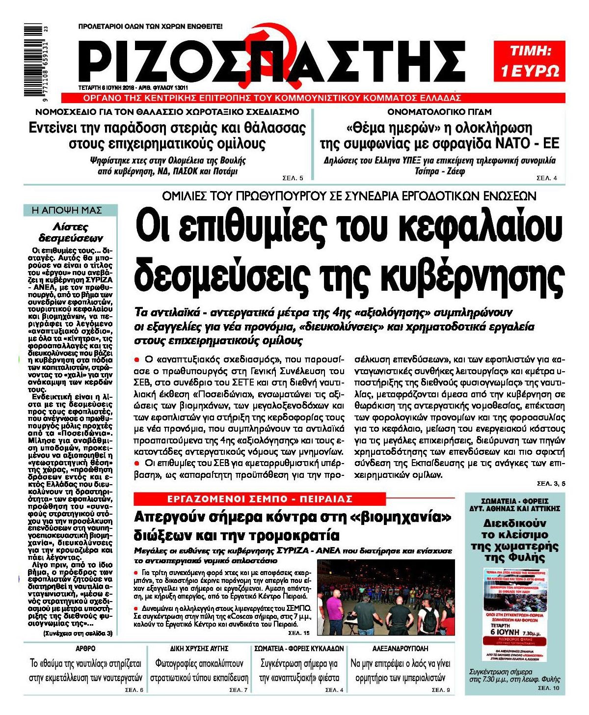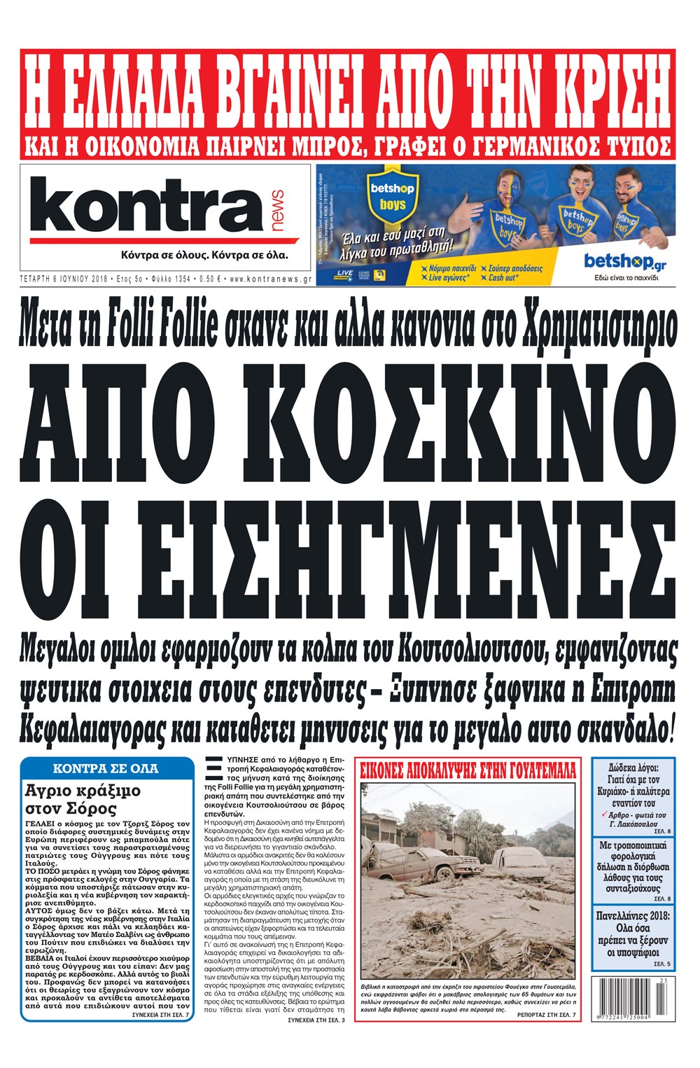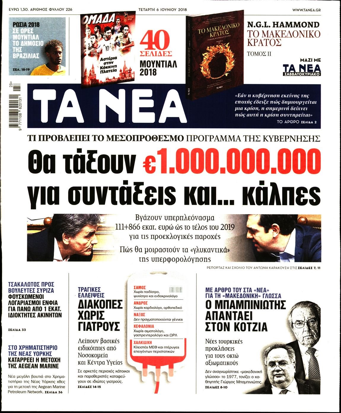 Οι πολιτικές εφημερίδες 6/6/2018 Enikos Newsroom 07:33, Τετάρτη 06 Ιουνίου 2018 Media Διαβάστε τα σημερινά πρωτοσέλιδα των πολιτικών εφημερίδων. ΕΦΗΜΕΡΙΔΕΣ ΠΟΛΙΤΙΚΕΣ ΕΦΗΜΕΡΙΔΕΣ ΠΡΩΤΟΣΕΛΙΔΑ Μοιράσου το: σχολίασε κι εσύ (0 σχόλια) Ακολουθήστε το enikos.gr στο Google News και μάθετε πρώτοι όλες τις ειδήσεις Δείτε όλες τις τελευταίες ειδήσεις από την Ελλάδα και τον Κόσμο στο enikos.gr Ειδήσεις Ροή Ειδήσεων 2 ώρες πριν Μπλόκα: Οι αγρότες σηκώνουν τις μπάρες σε διόδια για τους εκδρομείς των Χριστουγέννων και μοιράζουν προϊόντα – Βίντεο 3 ώρες πριν Τσιάρας προς αγρότες: Τα μπλόκα και τα πείσματα δεν ωφελούν – Οι λύσεις περνούν μέσα από τον διάλογο 4 ώρες πριν Αρχεία Έπσταϊν: Οι συγκλονιστικές φωτογραφίες – Ο Μάικλ Τζάκσον, ο Μικ Τζάγκερ και ο Κέβιν Σπέισι ανάμεσα στους διάσημους που απεικονίζονται 2 ώρες πριν Μαθητές διακινούσαν κοκαΐνη και χασίς σε σχολείο της Αττικής – 12 συλλήψεις 2 ώρες πριν Βέλγιο: Άγνωστοι έριξαν κόκκινη μπογιά στο προξενείο της Πολωνίας στις Βρυξέλλες 6 ώρες πριν Μία νέα «χρυσή» περίοδος αρχίζει για 3 ζώδια από σήμερα – «Μία αναπάντεχη ευκαιρία οδηγεί στην επιτυχία» 4 ώρες πριν Διαιτολόγος αποκαλύπτει 9 πρωινές συνήθειες που «λιώνουν» το κοιλιακό λίπος – «Υποστηρίζουν την υγιεινή απώλεια βάρους» 5 ώρες πριν Οι 7 φράσεις που δεν λένε ποτέ οι συναισθηματικά έξυπνοι άνθρωποι κατά τη διάρκεια ενός καβγά 7 ώρες πριν Enerwave: Το νέο «ρεύμα» στη λιανική ενέργειας που αλλάζει την εμπειρία του καταναλωτή 12 λεπτά πριν Στο νοσοκομείο ο Λευτέρης Πανταζής – Τι συνέβη 21 λεπτά πριν Super League: Με Κηφισιά ο Ολυμπιακός για να «κλείσει» το 2025 στην κορυφή – Αναλυτικά το πρόγραμμα της 15ης αγωνιστικής 26 λεπτά πριν ΕΛΑΣ: Συνελήφθησαν Υπαρχιπυροσβέστης και δύο ακόμη άτομα για κατοχή και διακίνηση ναρκωτικών ουσιών – Η καταγγελία και ο τιμοκατάλογος 34 λεπτά πριν Πακιστάν: Σε κάθειρξη 17 ετών καταδικάστηκαν ο πρώην πρωθυπουργός Ίμραν Χαν και η σύζυγός του 43 λεπτά πριν Μαρινάκης στον Realfm 97,8: Η κυβέρνηση σέβεται κάθε λογική διεκδίκηση των αγροτών, αλλά και το αίτημα των πολιτών να μην ταλαιπωρούνται ENIKOS NETWORK Η αποχή από την αναπαραγωγή παρατείνει τη ζωή στα ζώα, σύμφωνα με μελέτη – Τι ισχύει για τους ανθρώπους; Σημαντικές επαφές στις ΗΠΑ είχε ο υπουργός Υγείας Άδωνις Γεωργιάδης Επιτροπή Ανταγωνισμού: Στο μικροσκόπιο σχολικές τσάντες και επώνυμα brands – Τι ερευνάται Ευλογιά αιγοπροβάτων: Παρατεταμένη επιζωοτία, αυστηρά μέτρα – Τι ισχύει για τον εμβολιασμό και την ανασύσταση του ζωικού κε... Χαρτογραφώντας το «σημείο χωρίς επιστροφή»: Για πρώτη φορά αποκαλύπτεται με λεπτομέρεια το ακανθώδες όριο της ατμόσφαιρας τ... Η Google καταργεί τη λειτουργία «dark web report» – Πώς θα μπορούν οι χρήστες να διαγράφουν τα δεδομένα τους περισσότερα 14:04 , Σάββατο 20 Δεκεμβρίου 2025 Η Realnews αυτής της Κυριακής (21/12/2025) Με τίτλο: «Ασπίδα προστασίας για την Ελλάδα» κυκλοφορεί, αυτήν την Κυριακή, η Realnews. Σημαντ... 12:53 , Σάββατο 20 Δεκεμβρίου 2025 Να μ’ αγαπάς: Το παρελθόν έρχεται στο φως – Καταιγιστικές εξελίξεις στα τελευταία επεισόδια του 2025 Ο Άγγελος αποκαλύπτεται, η Φωτεινή ανησυχεί για τον Λευτέρη και η Ζωή έρχεται αντιμέτωπη με το... 11:41 , Σάββατο 20 Δεκεμβρίου 2025 «Η αγάπη δεν χάνεται ποτέ»: Η μικρού μήκους ταινία κινουμένων σχεδίων που θέτει ερωτήματα για τη ζωή και τον θάνατο Ο θάνατος είναι ένα από τα πιο σκληρά θέματα που καλείται να διαχειριστεί κάποιος στη διάρκεια... 09:30 , Σάββατο 20 Δεκεμβρίου 2025 «Porto Leone: Στη γειτον