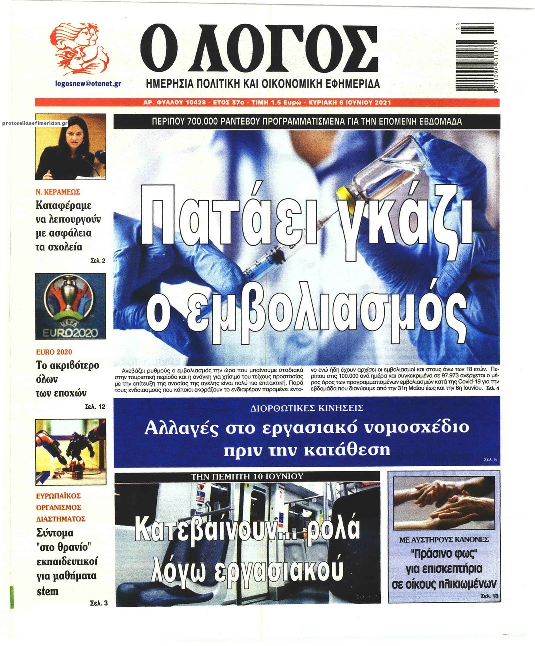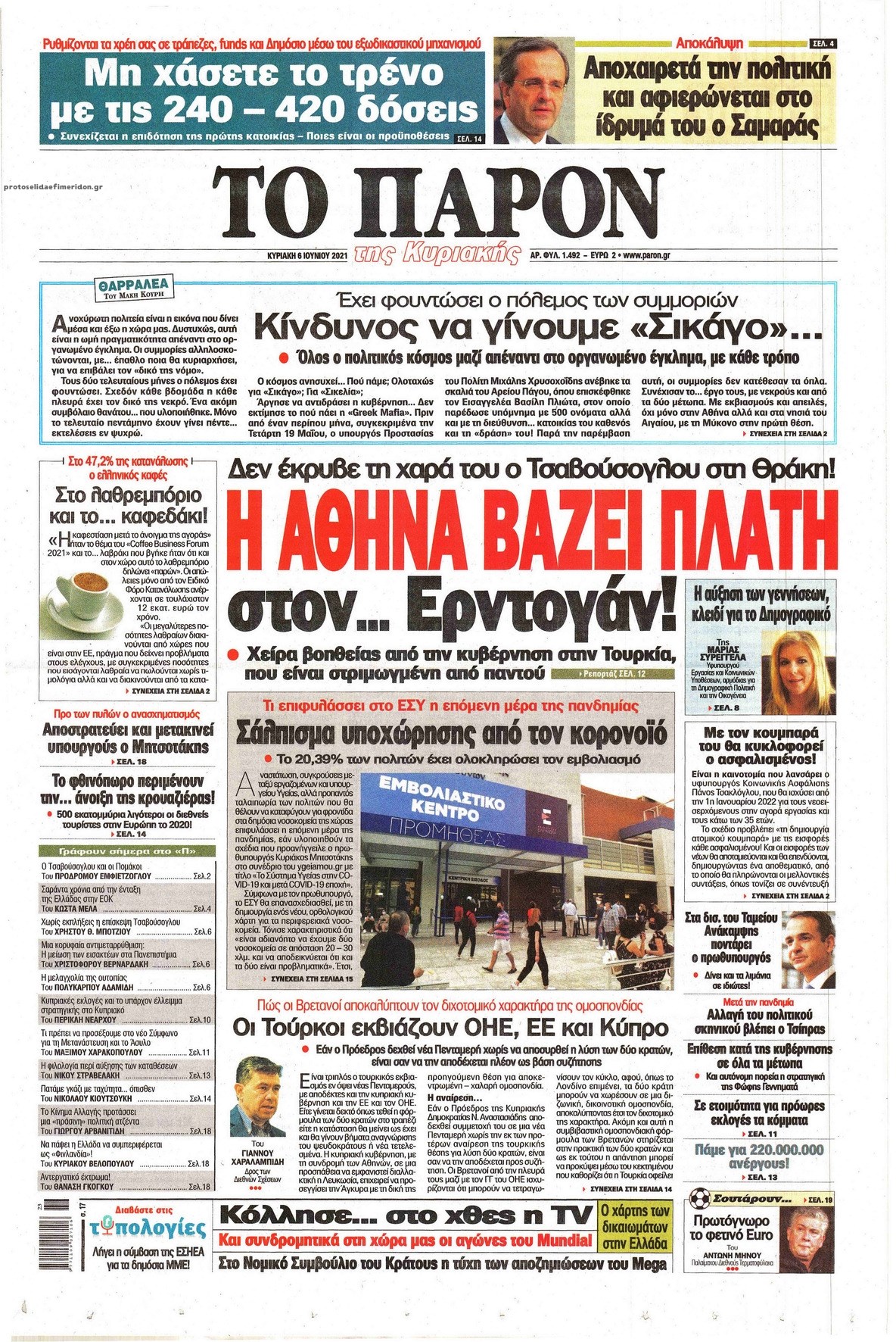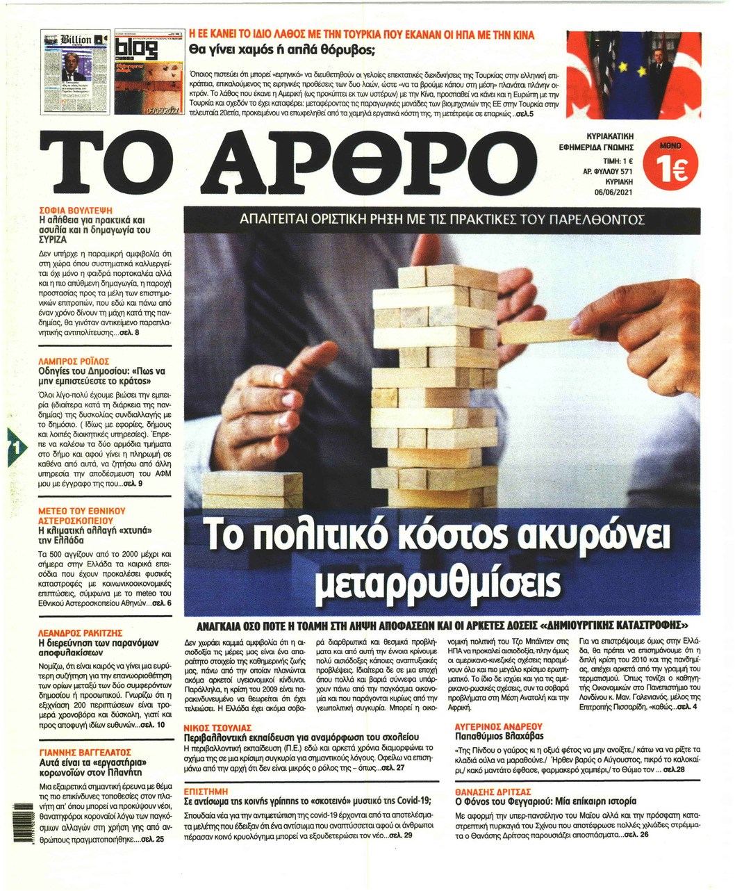Οι πολιτικές εφημερίδες 6/6/2021 Σήφης Γαρυφαλάκης 07:14, Κυριακή 06 Ιουνίου 2021 Media Διαβάστε τα πρωτοσέλιδα των πολιτικών εφημερίδων. ΕΦΗΜΕΡΙΔΕΣ ΠΟΛΙΤΙΚΕΣ ΕΦΗΜΕΡΙΔΕΣ ΠΡΩΤΟΣΕΛΙΔΑ ΠΡΩΤΟΣΕΛΙΔΑ ΕΦΗΜΕΡΙΔΩΝ Μοιράσου το: σχολίασε κι εσύ (0 σχόλια) Ακολουθήστε το enikos.gr στο Google News και μάθετε πρώτοι όλες τις ειδήσεις Δείτε όλες τις τελευταίες ειδήσεις από την Ελλάδα και τον Κόσμο στο enikos.gr Ειδήσεις Ροή Ειδήσεων 6 ώρες πριν «Βιολάντα»: Αυτά είναι τα κρίσιμα σχέδια των εγκαταστάσεων που κατέθεσε η επιχείρηση στις αρμόδιες υπηρεσίες – Αποκάλυψη enikos.gr 3 ώρες πριν Αρχεία Επστάιν: Σάλος με τις αποκαλύψεις για τους φίλους του καταδικασμένου χρηματιστή – Οι Ρωσίδες, ο Γκέιτς, τα ΣΜΝ, τα ελικόπτερα και ο Μασκ 3 ώρες πριν Τροχαίο δυστύχημα στη Ρουμανία: Θρήνος στις κηδείες των 2 φιλάθλων του ΠΑΟΚ – Το Σάββατο η εξόδιος ακολουθία για τους 3 νέους από την Αλεξάνδρεια Ημαθίας 3 ώρες πριν Βιολάντα: Διευρυμένη εισαγγελική έρευνα για τα αίτια της τραγωδίας στα Τρίκαλα – Οι αποκαλύψεις για το αδήλωτο υπόγειο, οι καταθέσεις-«φωτιά» και το νέο βίντεο 7 ώρες πριν Νίκος Κούρκουλος: Η συνέντευξη στο «Ενώπιος Ενωπίω» και τον Νίκο Χατζηνικολάου το 1994 – Τι είχε πει για τα παιδικά του χρόνια, το θέατρο και την προσωπική του ζωή 5 ώρες πριν Αριθμολογία: Οι 3 πιο ανιδιοτελείς ημερομηνίες γέννησης – «Είναι οι πιο γενναιόδωροι και δοτικοί άνθρωποι» 4 ώρες πριν Ύπνος: Η μέθοδος αναπνοής που «διώχνει τις αρνητικές σκέψεις», σύμφωνα με ειδικούς 3 ώρες πριν Στο φως η πρώτη αραμαϊκή επιγραφή ενός ξεχασμένου ελληνιστικού βασιλείου – Για μοναδική ανακάλυψη που ξαναγράφει την ιστορία μιλούν οι αρχαιολόγοι 10 ώρες πριν Allwyn: Η νέα εποχή του ΟΠΑΠ – Νέο brand, περισσότερη διασκέδαση και σύγχρονες εμπειρίες ψυχαγωγίας για τους πελάτες 28 λεπτά πριν ΟΗΕ: Νέα ανανέωση της θητείας των κυανόκρανων στην Κύπρο με 13 ψήφους υπέρ και 2 αποχές 44 λεπτά πριν Εύβοια: Καταθέτουν στην αστυνομία οι 4 τραυματίες της αιματηρής συμπλοκής – Ποια η «πέτρα του σκανδάλου» 1 ώρα πριν Έργκιν Άταμαν: «Κάναμε ντροπιαστικά λάθη στα τελευταία δύο λεπτά» – «Εξαιρετικός ο Σλούκας» 1 ώρα πριν Βιλερμπάν – Παναθηναϊκός 78-79: Επιστροφή στις νίκες με πρωταγωνιστή τον Σλούκα – Όλα τα αποτελέσματα και η βαθμολογία 2 ώρες πριν Σε δημόσια ηλεκτρονική διαβούλευση το νομοσχέδιο για την επιστολική ψήφο των αποδήμων ENIKOS NETWORK Τα 8 πράγματα που κάνουν οι πιο ευτυχισμένοι άνθρωποι για να νιώθουν πάντα νέοι Πώς επηρεάζει η ηλικία την υγεία της εγκυμοσύνης; ΗΠΑ: Πέφτει κατακόρυφα η τιμή του χρυσού και του ασημιού, μετά την επιλογή του Κέβιν Γουόρς για την ηγεσία της Fed Τράπεζα της Ελλάδας: Αύξηση πάνω από 80 δισ. ευρώ στις καταθέσεις νοικοκυριών από το 2019 – Σε υψηλό 15ετίας τον Δεκέμβριο Google Search: Αναβαθμίζει τις δυνατότητες AI με Gemini 3 και Follow-up ερωτήσεις Κουίζ: Πόσο καλός είσαι στην ελληνική μυθολογία; Δοκίμασε τις γνώσεις σου και κάνε το 3 στα 3 περισσότερα 21:42 , Παρασκευή 30 Ιανουαρίου 2026 Το σόι σου: Η Λυδία ψάχνει απεγνωσμένα για δουλειά Ένα ακόμη σπαρταριστό επεισόδιο της πολυαγαπημένης σειράς “Το σόι σου” έρχεται την... 19:40 , Παρασκευή 30 Ιανουαρίου 2026 Η Εταιρεία Ελλήνων Σκηνοθετών τιμά τον Σμαραγδή και τον «Καποδίστρια» του «Του αξίζουν συγχαρητήρια…». Οι Έλληνες σκηνοθέτες συγχαίρουν τον Γιάννη Σμαραγδή για το... 19:03 , Παρασκευή 30 Ιανουαρίου 2026 Νίκος Κούρκουλος: Η συνέντευξη στο «Ενώπιος Ενωπίω» και τον Νίκο Χατζηνικολάου το 1994 – Τι είχε πει για τα π