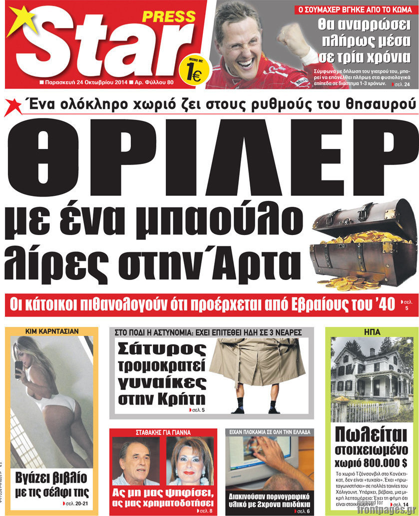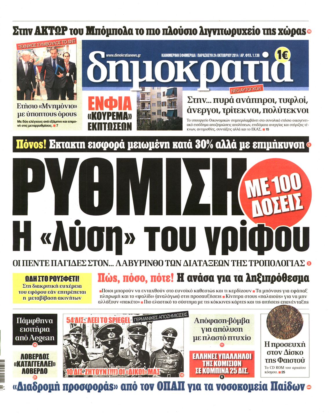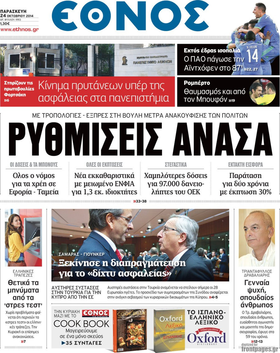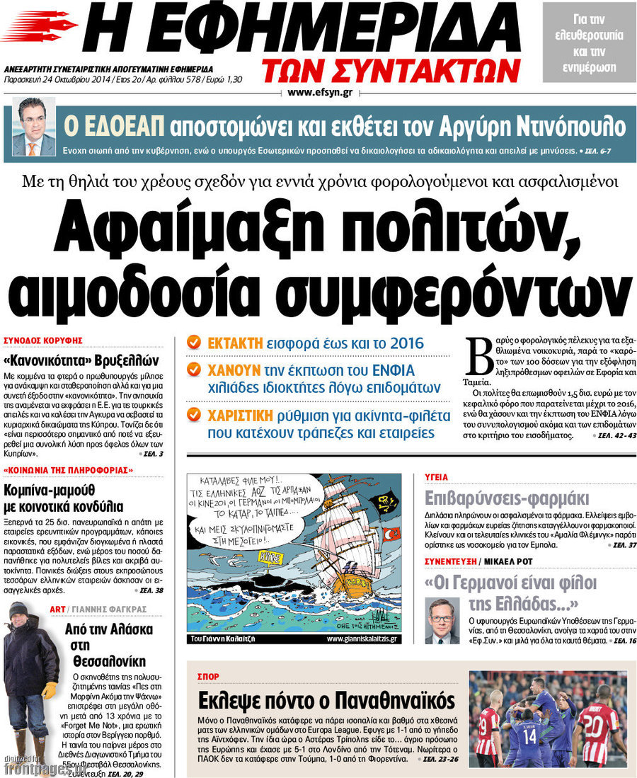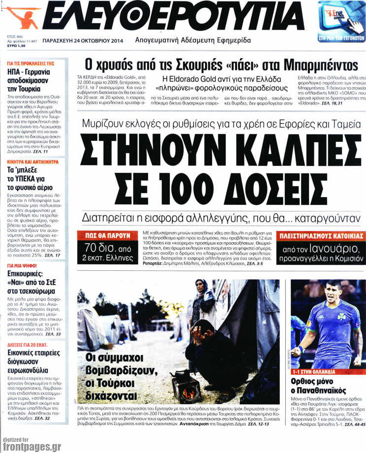 Οι πολιτικές εφημερίδες Enikos Newsroom 07:56, Παρασκευή 24 Οκτωβρίου 2014 Media Οι πολιτικές εφημερίδες Διαβάστε τα πρωτοσέλιδα των πολιτικών εφημερίδων: ΕΦΗΜΕΡΙΔΕΣ ΠΟΛΙΤΙΚΕΣ ΕΦΗΜΕΡΙΔΕΣ ΠΡΩΤΟΣΕΛΙΔΑ Μοιράσου το: σχολίασε κι εσύ (0 σχόλια) Ακολουθήστε το enikos.gr στο Google News και μάθετε πρώτοι όλες τις ειδήσεις Δείτε όλες τις τελευταίες ειδήσεις από την Ελλάδα και τον Κόσμο στο enikos.gr Ειδήσεις Ροή Ειδήσεων 42 λεπτά πριν Υπόθεση Έπσταϊν: Το Υπουργείο Δικαιοσύνης δημοσιοποίησε μια σειρά από εξαιρετικά επεξεργασμένα αρχεία – «Λείπουν τα πιο σημαντικά έγγραφα», λένε οι Δημοκρατικοί 2 ώρες πριν Σαρωτικοί οι έλεγχοι στους δρόμους ενόψει εορτών – Μπλόκα της τροχαίας σε κεντρικές αρτηρίες της Αττικής 53 λεπτά πριν ΟΝΕΧ – MEGATUGS: Ξεκίνησε η ναυπήγηση ρυμουλκών στην Ελλάδα – Προθάλαμος πολεμικών πλοίων – Δείτε φωτογραφίες και βίντεο 45 λεπτά πριν Καιρός: Αλλαγή σκηνικού σήμερα με βροχές και πτώση της θερμοκρασίας – Οι προβλέψεις των μετεωρολόγων για τα Χριστούγεννα 10 ώρες πριν Χριστούγεννα στα μπλόκα: Επιμένουν στις κινητοποιήσεις τους οι αγρότες – Ανοίγουν τα διόδια το Σαββατοκύριακο 2 ώρες πριν Αυγά: Πόσα μπορείτε να τρώτε την ημέρα με ασφάλεια για μέγιστη πρόσληψη πρωτεΐνης 3 ώρες πριν Τα ζώδια σήμερα, Σάββατο 20 Δεκεμβρίου: Παρθένοι, το σύμπαν σας δίνει το κλειδί 2 ώρες πριν Οπτική ψευδαίσθηση: Μόνο αν είσαι ο Σέρλοκ Χολμς θα βρεις τον αριθμό «87» σε 7 δευτερόλεπτα 22 λεπτά πριν Αρχαιολόγοι ανακάλυψαν σε χωράφι απεικόνιση 600 ετών ενός Αγίου – Τα στοιχεία που δείχνουν ότι μαρτύρησε 7 λεπτά πριν MyHealth App: Τα στοιχεία για τον Προσωπικό Βοηθό Υγείας Πολίτη – Τι ερωτήματα έγιναν μέσα σε 7 ημέρες 14 λεπτά πριν Τρομεροί γονείς: Η Μαρία Καβογιάννη εισβάλλει στο σπίτι της οικογένειας Στεφανίδη 22 λεπτά πριν Αρχαιολόγοι ανακάλυψαν σε χωράφι απεικόνιση 600 ετών ενός Αγίου – Τα στοιχεία που δείχνουν ότι μαρτύρησε 30 λεπτά πριν Mega χριστουγεννιάτικη φορολοταρία: «Κλείδωσε» η ημερομηνία για την κλήρωση – Ερωτήσεις και απαντήσεις 37 λεπτά πριν ΗΠΑ: Τέσσερις μετανάστες πέθαναν σε κέντρα κράτησης – Αύξηση θανάτων σε επίπεδο ρεκόρ το 2025 ENIKOS NETWORK Το τεστ των 10 δευτερολέπτων που μπορεί να προβλέψει το προσδόκιμο ζωής σας – Τι λέει ειδικός του Cleveland Επιλέξτε καρέκλα για να μάθετε ποια είναι τα κρυφά χαρακτηριστικά σας – Τι αποκάλυψε για εσάς αυτό το τεστ προσωπικότητας; Mega χριστουγεννιάτικη φορολοταρία: «Κλείδωσε» η ημερομηνία για την κλήρωση – Ερωτήσεις και απαντήσεις Αναστολή μέτρων αναγκαστικής εκτέλεσης για κτηνοτρόφους που πλήττονται από την ευλογιά των αιγοπροβάτων Χαρτογραφώντας το «σημείο χωρίς επιστροφή»: Για πρώτη φορά αποκαλύπτεται με λεπτομέρεια το ακανθώδες όριο της ατμόσφαιρας τ... Η Google καταργεί τη λειτουργία «dark web report» – Πώς θα μπορούν οι χρήστες να διαγράφουν τα δεδομένα τους περισσότερα 08:14 , Σάββατο 20 Δεκεμβρίου 2025 Τρομεροί γονείς: Η Μαρία Καβογιάννη εισβάλλει στο σπίτι της οικογένειας Στεφανίδη Όσα θα δούμε στο νέο διπλό επεισόδιο της σειράς «Τρομεροί γονείς», σήμερα Σάββατο 20 Δεκεμβρίο... 05:48 , Σάββατο 20 Δεκεμβρίου 2025 Οι οικονομικές εφημερίδες 20/12/2025 Διαβάστε τα πρωτοσέλιδα από τις οικονομικές εφημερίδες, σήμερα 20/12/2025. 05:43 , Σάββατο 20 Δεκεμβρίου 2025 Οι αθλητικές εφημερίδες 20/12/2025 Διαβάστε τα πρωτοσέλιδα από τις αθλητικές εφημερίδες, σήμερα 20/12/2025. 05:38 , Σάββατο 20 Δεκεμβρίου 2025 Οι πολιτικές εφημερίδες 20/12/2025 Διαβάστε τα πρωτοσέλιδα από τις πολιτικές εφημερίδες, σήμ