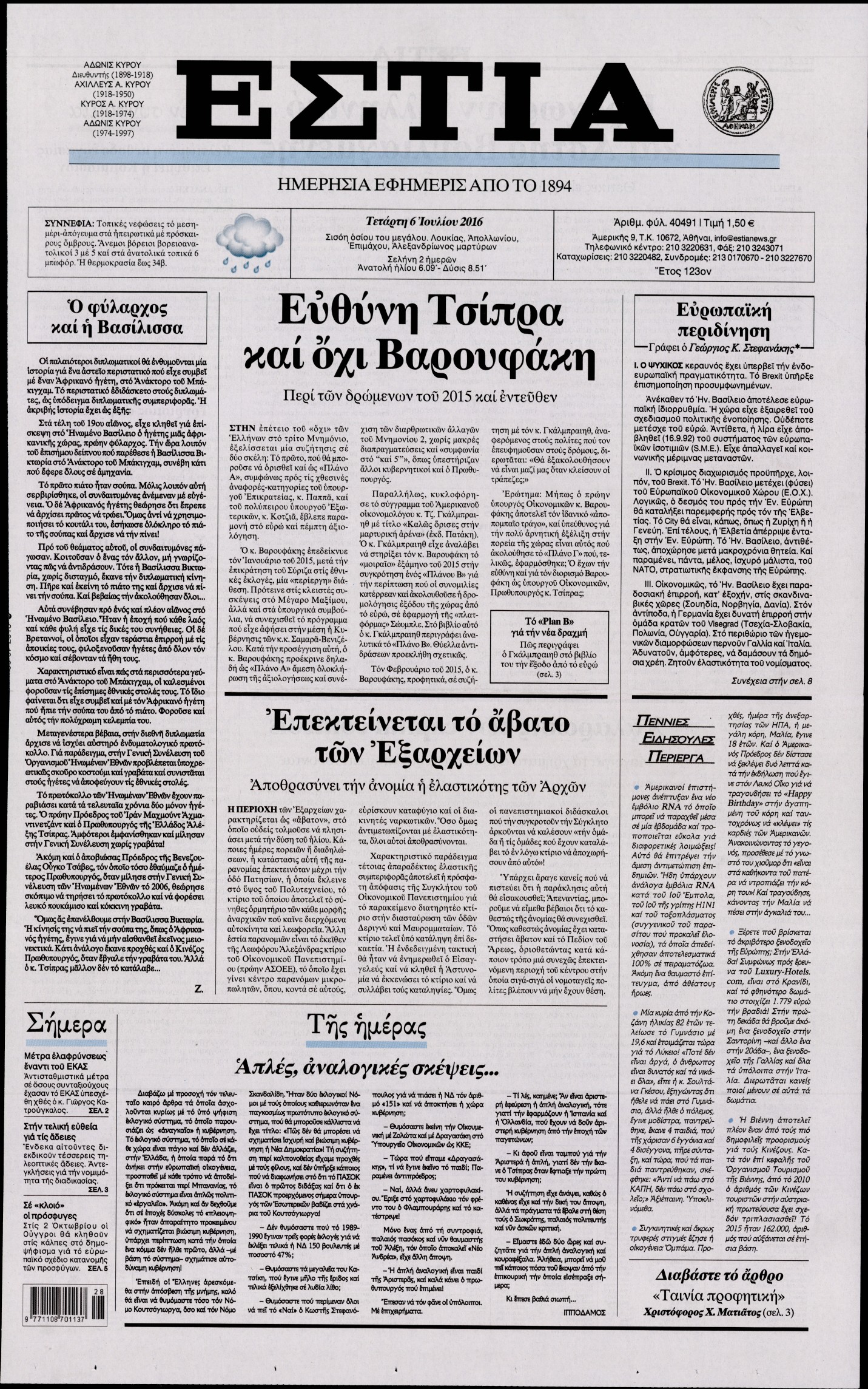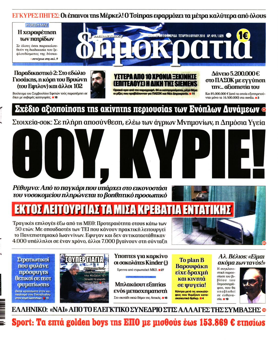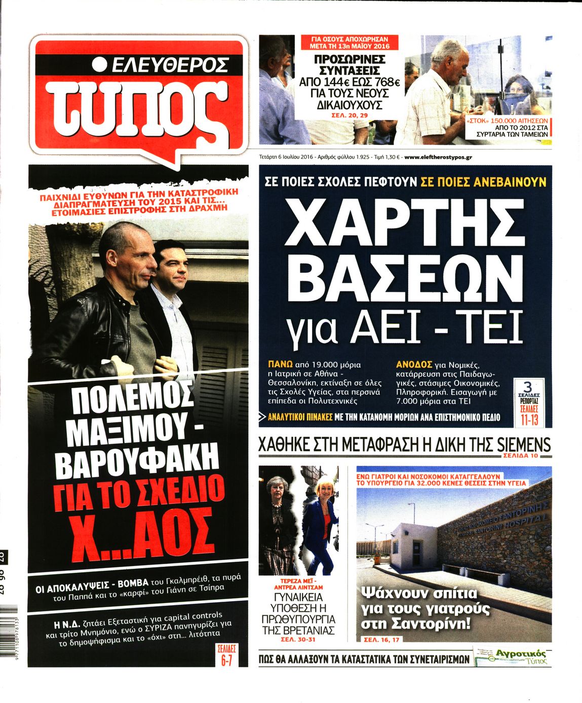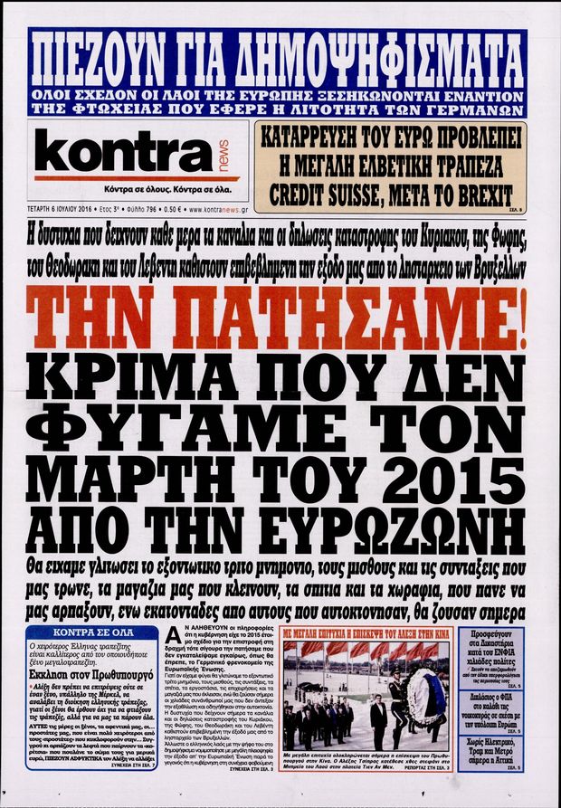 Οι πολιτικές εφημερίδες 6/7/2016 Enikos Newsroom 05:08, Τετάρτη 06 Ιουλίου 2016 Media Διαβάστε τα σημερινά πρωτοσέλιδα των πολιτικών εφημερίδων: ΠΟΛΙΤΙΚΕΣ ΕΦΗΜΕΡΙΔΕΣ ΠΡΩΤΟΣΕΛΙΔΑ Μοιράσου το: σχολίασε κι εσύ (0 σχόλια) Ακολουθήστε το enikos.gr στο Google News και μάθετε πρώτοι όλες τις ειδήσεις Δείτε όλες τις τελευταίες ειδήσεις από την Ελλάδα και τον Κόσμο στο enikos.gr Ειδήσεις Ροή Ειδήσεων 43 λεπτά πριν Χίος: 15 νεκροί και πολλοί τραυματίες μετά το σοβαρό επεισόδιο Λιμενικού και σκάφους διακινητών 2 ώρες πριν Δολοφονία στη Νέα Πέραμο: Στο «μικροσκόπιο» των Αρχών η τεράστια περιουσία του 27χρονου – Η κατάθεση της συντρόφου του και όσα λένε συγγενικά του πρόσωπα 1 ώρα πριν Υπόθεση Επστάιν: Η σαπίλα που αναδύεται έχει βαθιές ρίζες – Η Αμερική πρέπει τώρα να αναρωτηθεί αν μπορεί να ξεπεράσει μια κουλτούρα ντροπής 1 ώρα πριν Πέπλο μυστηρίου γύρω από την εξαφάνιση της 16χρονης Λόρας – Ο άνδρας που βρέθηκε μαζί της στην πτήση, ο «αυταρχικός» πατέρας και η αντίδραση του αδελφού της 4 ώρες πριν Κλειστό για τρεις ημέρες το Ειδικό Σχολείο Σάμου: «Κάθε έλλειψη είναι κίνδυνος», λένε οι γονείς – Τι υποστηρίζει ο Δήμος 2 ώρες πριν «Χρυσή» αρχαιολογική ανακάλυψη σε χωριό – Βρέθηκε αριστοκρατικός οικισμός σε κτήματα θρυλικού βασιλιά 4 ώρες πριν Πώς να προσελκύσετε πλούτο, ανάλογα με τον μήνα γέννησής σας 5 ώρες πριν Οι άνδρες που δεν σταματούν ποτέ να κάνουν τις γυναίκες τους να νιώθουν ξεχωριστές, έχουν συνήθως αυτά τα 4 ιδιαίτερα χαρακτηριστικά 6 ώρες πριν Air fryer: Η απλή μέθοδος καθαρισμού για να απαλλαγείτε από τη βρωμιά σε 2 λεπτά χωρίς τρίψιμο 8 λεπτά πριν Τηλεφωνική επικοινωνία Κιρ Στάρμερ – Ντόναλντ Τραμπ για Ουκρανία και ρωσικά πλήγματα σε ενεργειακές υποδομές 24 λεπτά πριν Εργκίν Αταμάν: Τα έβαλε με τους δημοσιογράφους έξω από τα αποδυτήρια: «Συνεχίστε να γράφετε…» 40 λεπτά πριν Η Άρσεναλ προκρίθηκε στον τελικό του League Cup με δεύτερη νίκη επί της Τσέλσι 43 λεπτά πριν Χίος: 15 νεκροί και πολλοί τραυματίες μετά το σοβαρό επεισόδιο Λιμενικού και σκάφους διακινητών 50 λεπτά πριν Χίος: Τεράστια κινητοποίηση στο νοσοκομείο μετά τη σύγκρουση σκάφους του Λιμενικού με ταχύπλοο διακινητών – «Ετοιμάζονται για χειρουργείο οι τραυματίες» λέει ο δήμαρχος ENIKOS NETWORK Κρίση άγχους: Το πρώτο πράγμα που προτείνει ένας ψυχοθεραπευτής να κάνετε για να ηρεμήσετε Άδωνις Γεωργιάδης: Σε app για το κινητό τηλέφωνο το Εθνικό Μητρώο Νεοπλασιών ΕΑΕΕ: Άνοδος στην παραγωγή ασφαλίστρων το ενδεκάμηνο του 2025 – Τι δείχνουν τα στοιχεία Κενές περισσότερες από 70.000 θέσεις εργασίας στον γεωργικό τομέα – «Περίπου το 10% του καρπού της ελιάς έχει μείνει στα δέ... Ευπάθεια στο moltbook ai αποκαλύπτει email, tokens σύνδεσης και api keys Αυτός είναι ο ρόλος της μικρής τρύπας στους νυχοκόπτες – «Είμαι ο μόνος που δεν το ήξερε;»» περισσότερα 21:33 , Τρίτη 03 Φεβρουαρίου 2026 Porto Leone: Στη γειτονιά με τα κόκκινα φανάρια – Η Ασημίνα αποκαλύπτει στην Αλεξάνδρα την εγκυμοσύνη της Λένας Η μεγάλη δραματική σειρά του Apha «Porto Leone: Στη γειτονιά με τα κόκκινα φανάρια» επιστρέφει... 19:52 , Τρίτη 03 Φεβρουαρίου 2026 Να μ’ αγαπάς: Ο Θεόφιλος ζητά από την Σοφία να φύγει από το σπίτι Στο σπίτι των Καλλιγά, τα αληθινά αποτελέσματα DNA επιβεβαιώνουν ότι η Εβίτα είναι κόρη του Θε... 10:57 , Τρίτη 03 Φεβρουαρίου 2026 Ακούστε το σχόλιο του Νίκου Χατζηνικολάου 3/2/2026 Ακούστε το σχόλιο του Νίκου Χατζηνικολάου στον ραδιοφωνικό σταθμό Realfm 97,8, την Τρίτη 3 Φεβ... 10:42 , Τρίτη 03 Φεβρουαρίου 2026 Τηλεθέα