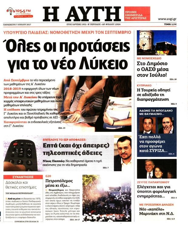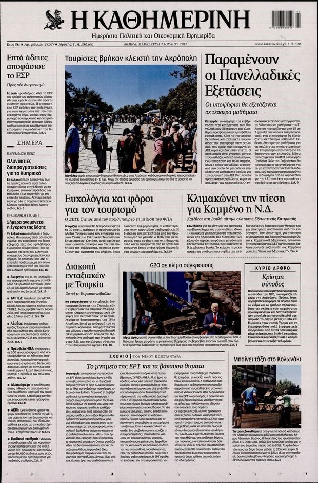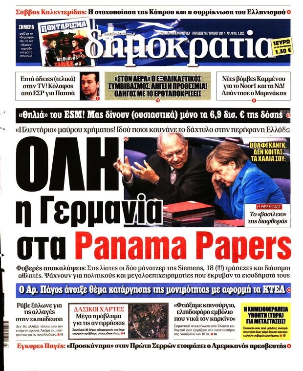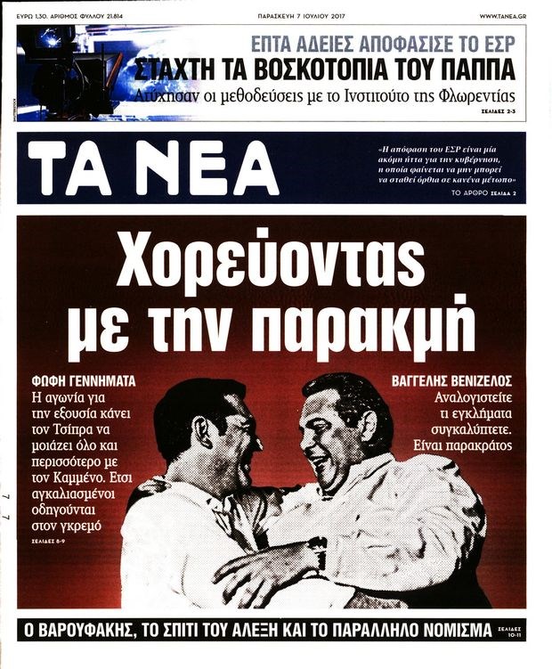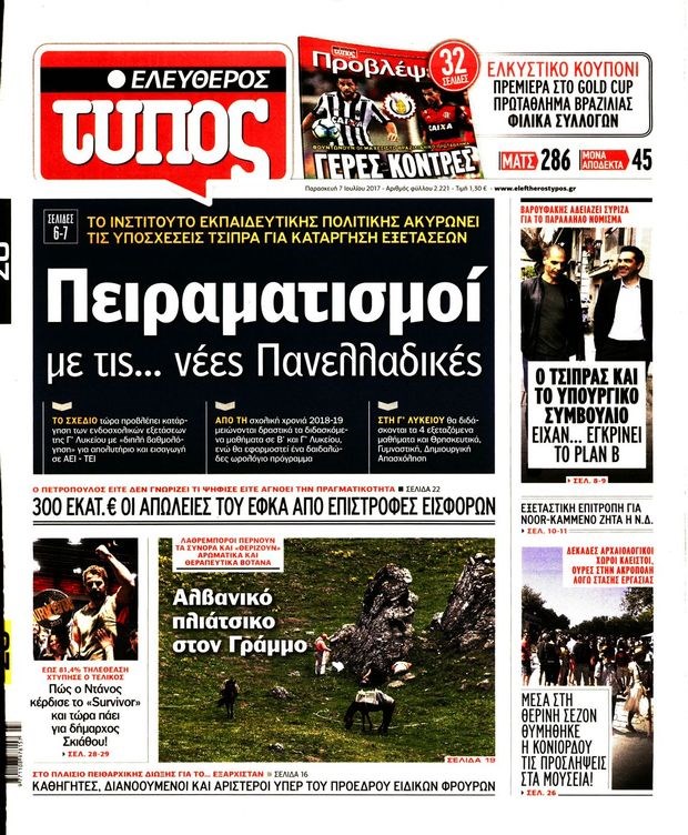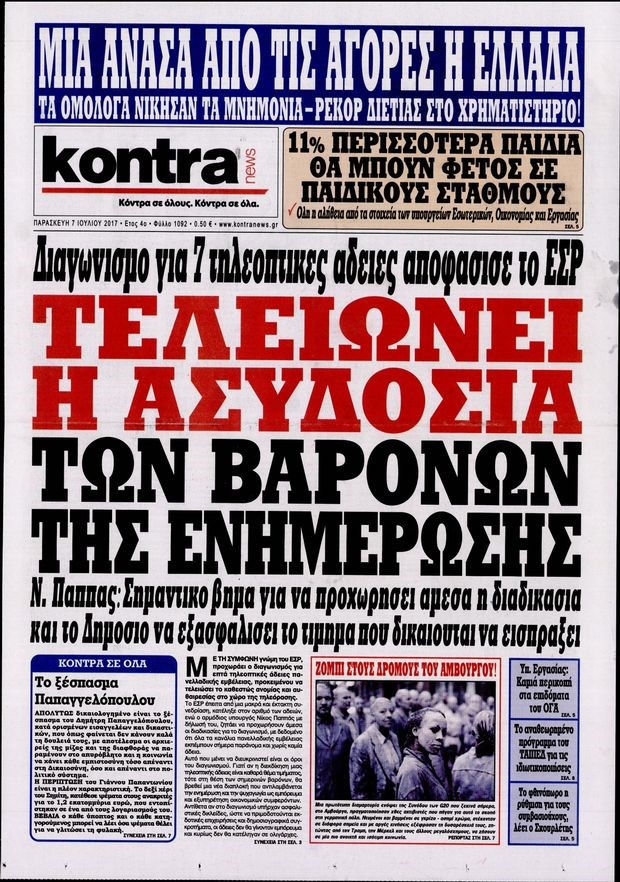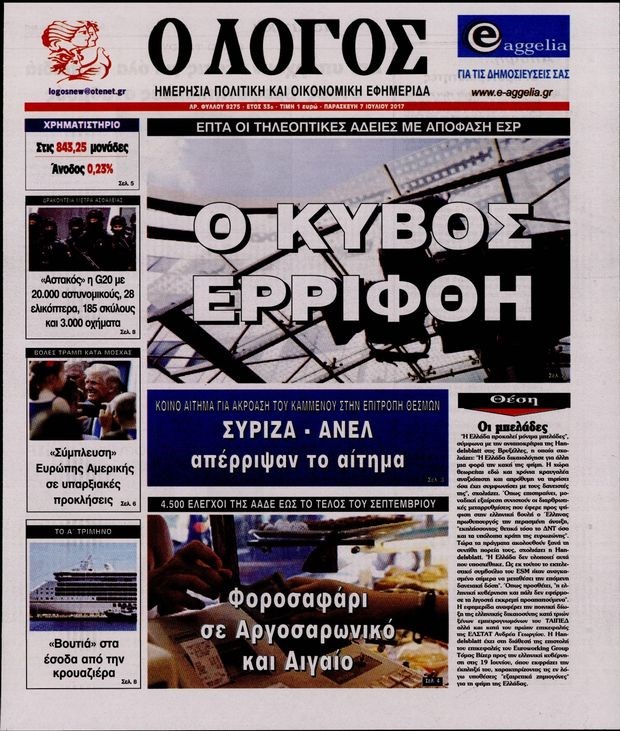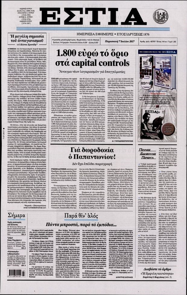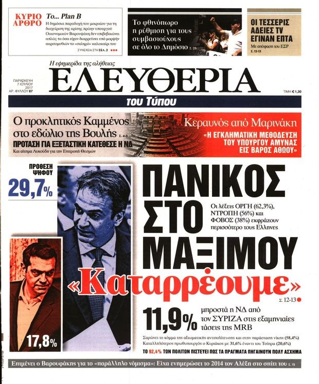 Οι πολιτικές εφημερίδες 7/7/2017 Enikos Newsroom 07:24, Παρασκευή 07 Ιουλίου 2017 Media Διαβάστε τα σημερινά πρωτοσέλιδα των πολιτικών εφημερίδων: ΠΟΛΙΤΙΚΕΣ ΕΦΗΜΕΡΙΔΕΣ ΠΡΩΤΟΣΕΛΙΔΑ Μοιράσου το: σχολίασε κι εσύ (0 σχόλια) Ακολουθήστε το enikos.gr στο Google News και μάθετε πρώτοι όλες τις ειδήσεις Δείτε όλες τις τελευταίες ειδήσεις από την Ελλάδα και τον Κόσμο στο enikos.gr Ειδήσεις Ροή Ειδήσεων 3 ώρες πριν Χριστούγεννα στα μπλόκα: Επιμένουν στις κινητοποιήσεις τους οι αγρότες – Ανοίγουν τα διόδια το Σαββατοκύριακο 4 ώρες πριν Ουκρανία: Η άνευ προηγουμένου επίθεση σε ρωσικό τάνκερ στη Μεσόγειο και το μήνυμα προς στον Πούτιν – Το «μακρύ χέρι» του Κιέβου 3 ώρες πριν Πούτιν: Τα μηνύματα σε Ευρώπη και ΝΑΤΟ από το μαραθώνιο «σόου» του – Η απαίτηση για «σεβασμό» και η ειρήνη «με τους όρους» της Μόσχας 4 ώρες πριν Τραμπ: Δεν αποκλείει την πιθανότητα ενός πολέμου στη Βενεζουέλα – «Ο Μαδούρο ξέρει καλύτερα από τον καθένα τι ακριβώς θέλω» 5 ώρες πριν Συνεχίζει να προκαλεί ο Μίτσκοσκι: «Για μένα το όνομα Μακεδονία είναι ιερό» 3 ώρες πριν Ανακαλύφθηκαν αρχαία χρυσά νομίσματα 2.200 ετών που απεικονίζουν τον θεό Απόλλωνα – Η άγνωστη σύνδεση με τον Φίλιππο Β΄ της Μακεδονίας 4 ώρες πριν Ύπνος: Μια κρυφή κατάσταση του εγκεφάλου πριν από τον ύπνο μπορεί να είναι το “κλειδί” για υψηλή ευφυΐα και δημιουργικότητα 5 ώρες πριν Αριθμολογία: Οι άνθρωποι που έχουν γεννηθεί αυτές τις 4 ημερομηνίες, συχνά παρεξηγούνται – «Η καλοσύνη τους κρύβει τεράστια δύναμη» 6 ώρες πριν Ξεχάστε το καθάρισμα το Σαββατοκύριακο: Ο «κανόνας των 20 λεπτών» που θα σας λύσει τα χέρια 21 λεπτά πριν Πρόταση γάμου στο ΣΕΦ κατά την διάρκεια του αγώνα Ολυμπιακός-Βιλερμπάν – Δείτε βίντεο 36 λεπτά πριν Euroleague: Επέστρεψε στις νίκες ο Ολυμπιακός, πήρε την ματσάρα της χρονιάς η Μπάρτσα – Τα αποτελέσματα και η βαθμολογία 51 λεπτά πριν Συρία: Μαζικά πλήγματα των ΗΠΑ σε θέσεις του Ισλαμικού Κράτους – Χέγκσεθ: «Δεν είναι αρχή πολέμου, είναι μια δήλωση εκδίκησης» για το θάνατο των στρατιωτών μας 1 ώρα πριν Ουκρανία: Ολοκληρώθηκαν οι συνομιλίες με τους Αμερικανούς κι Ευρωπαίους διαπραγματευτές 1 ώρα πριν Μπαρτσελόνα – Μπασκόνια 134-124: Οι «μπλαουγκράνα» πήραν το ματς της χρονιάς ύστερα από τρεις παρατάσεις ENIKOS NETWORK Το ΕΚΑΒ τιμήθηκε από την Ακαδημία Αθηνών για τα 40 χρόνια προσφοράς του Έχετε πραγματικά μεγάλη καρδιά; 10 χαρακτηριστικά όσων έχουν καλοσύνη Αναστολή μέτρων αναγκαστικής εκτέλεσης για κτηνοτρόφους που πλήττονται από την ευλογιά των αιγοπροβάτων Πλήρης επάρκεια προϊόντων στις λαϊκές της Αττικής, παρά τις αγροτικές κινητοποιήσεις – Τι απαντούν οι πωλητές Χαρτογραφώντας το «σημείο χωρίς επιστροφή»: Για πρώτη φορά αποκαλύπτεται με λεπτομέρεια το ακανθώδες όριο της ατμόσφαιρας τ... Η Google καταργεί τη λειτουργία «dark web report» – Πώς θα μπορούν οι χρήστες να διαγράφουν τα δεδομένα τους περισσότερα 22:42 , Παρασκευή 19 Δεκεμβρίου 2025 Γιώργος Γιαννόπουλος για “Το σόι σου”: “Είναι ευτυχία και ευλογία αυτή η σειρά” «Είναι ευτυχία και ευλογία η συγκυρία αυτής της σειράς», θα πει ο Γιώργος Γιαννόπουλος -ο αγαπ... 20:37 , Παρασκευή 19 Δεκεμβρίου 2025 Don’t Forget The Lyrics: Η Έλλη Κοκκίνου υποδέχεται 4 παίκτες που θα κάνουν τα πάντα για να μη χάσουν ούτε… μισή λέξη από τους στίχους Το «Don’t Forget The Lyrics» επιστρέφει απόψε, Παρασκευή 19 Δεκεμβρίου, στις 21:00 με νέο επει... 19:31 , Παρασκευή 19 Δεκεμβρίου 2025 GNTM: Απόψε ο μεγάλος τελικός για τους 4 φιναλίστ Έπειτα από μήνες γεμά