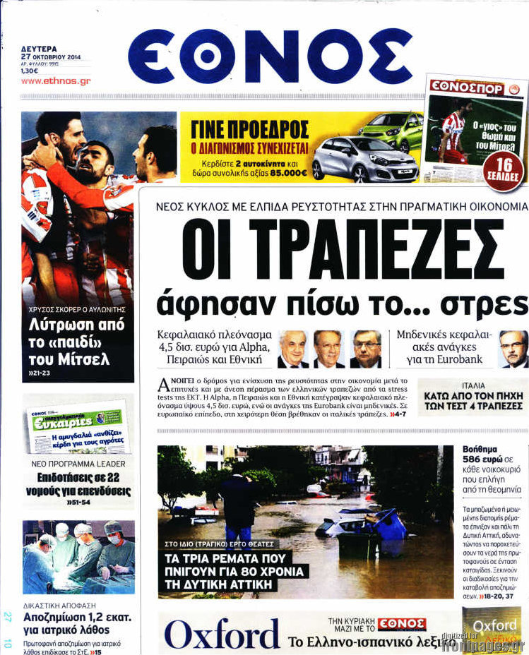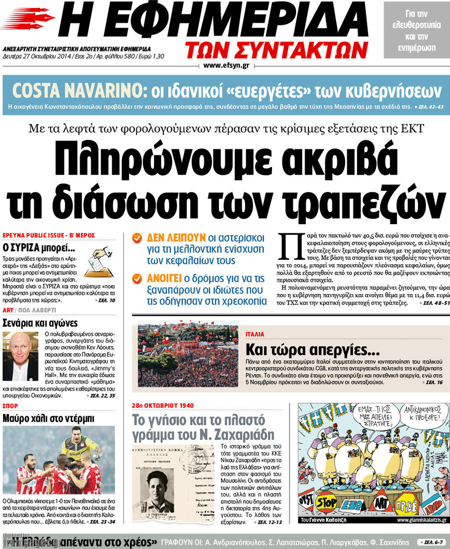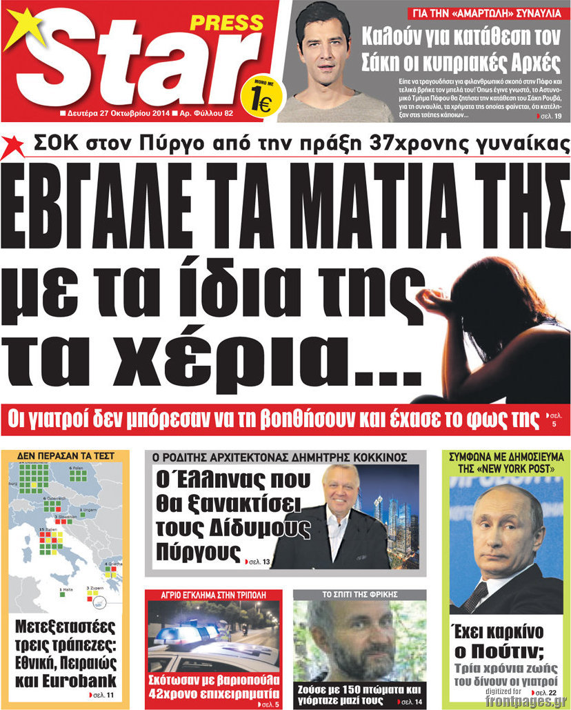 Οι πολιτικές εφημερίδες Enikos Newsroom 07:51, Δευτέρα 27 Οκτωβρίου 2014 Media Οι πολιτικές εφημερίδες Διαβάστε τα πρωτοσέλιδα των πολιτικών εφημερίδων: ΕΦΗΜΕΡΙΔΕΣ ΠΟΛΙΤΙΚΕΣ ΕΦΗΜΕΡΙΔΕΣ ΠΡΩΤΟΣΕΛΙΔΑ Μοιράσου το: σχολίασε κι εσύ (0 σχόλια) Ακολουθήστε το enikos.gr στο Google News και μάθετε πρώτοι όλες τις ειδήσεις Δείτε όλες τις τελευταίες ειδήσεις από την Ελλάδα και τον Κόσμο στο enikos.gr Ειδήσεις Ροή Ειδήσεων 2 ώρες πριν Νέες εστίες ακρίβειας «ροκανίζουν» τα εισοδήματα – Πού καταγράφονται οι μεγαλύτερες αυξήσεις 1 ώρα πριν Συνεχίζουν τις κινητοποιήσεις οι αγρότες: Κλείνουν τις σήραγγες των Τεμπών για τα φορτηγά – Τι θα γίνει τα Χριστούγεννα 2 ώρες πριν «Έπιασαν δουλειά» οι 8 κάμερες που λειτουργούν πιλοτικά – Περισσότερες από 1.000 παραβάσεις σε 4 ημέρες 1 ώρα πριν Ουκρανία: Συνομιλίες στη Φλόριντα με υποσημειώσεις και βαθιές διαφωνίες – Το δύσκολο παζλ των διαπραγματεύσεων και το χάσμα Ουάσιγκτον – Μόσχας 2 ώρες πριν Η Τουρκία μοστράρει τις κορβέτες της – Η χαμένη ευκαιρία της Ελλάδας 3 ώρες πριν Άνοια και εγκεφαλικό: Γιατρός προειδοποιεί για ένα δημοφιλές ρόφημα που αυξάνει τον κίνδυνο κατά 290% και 300% αντίστοιχα 29 λεπτά πριν Ο άνδρας της απαιτεί να κάνει όλες τις δουλειές του σπιτιού από τότε που παραιτήθηκε – «Εξακολουθώ να συνδράμω οικονομικά στο σπίτι» 1 ώρα πριν Ανακαλύφθηκε βραχογράφημα που παραπέμπει στον Ηρακλή και την Ύδρα από ελληνικά νομίσματα του 325 π.Χ. 2 ημέρες πριν Enerwave: Το νέο «ρεύμα» στη λιανική ενέργειας που αλλάζει την εμπειρία του καταναλωτή 4 λεπτά πριν Σοκ στη Φλόριντα: Δύο ανήλικοι δολοφόνησαν 14χρονη και έκαψαν το πτώμα της για μια διαμάχη στα social media 9 λεπτά πριν Νέες δηλώσεις του αγροτοσυνδικαλιστή Ανεστίδη: Όσα λέγονται είναι λάσπη στον ανεμιστήρα για να σπάσουν τα μπλόκα 10 λεπτά πριν Τηλεθέαση (21/12): Μάχη στην prime time – Ποιοι ξεχώρισαν σε δυναμικό και σύνολο 15 λεπτά πριν Σίδνεϊ: Οι δράστες της τρομοκρατικής επίθεσης εκπαιδεύτηκαν στην Αυστραλία – Τα στοιχεία που τους συνδέουν με το Ισλαμικό Κράτος 20 λεπτά πριν Συναγερμός στην UNESCO για την Αγιά Σοφιά – Ζητεί από την τουρκική κυβέρνηση να γινει αυτοψία ENIKOS NETWORK Ποιο γλυκό φρούτο ρυθμίζει το σάκχαρο και μπορούν να φάνε οι διαβητικοί, σύμφωνα με μελέτη Νέα δεδομένα αλλάζουν τη θεραπευτική προσέγγιση στον καρκίνο του παγκρέατος Νέες εστίες ακρίβειας «ροκανίζουν» τα εισοδήματα – Πού καταγράφονται οι μεγαλύτερες αυξήσεις Νέο έτος ρεκόρ για τον ελληνικό τουρισμό το 2025: «Είμαστε μέσα στους 10 πλέον επισκέψιμους προορισμούς παγκοσμίως» λέει η ... Χαρτογραφώντας το «σημείο χωρίς επιστροφή»: Για πρώτη φορά αποκαλύπτεται με λεπτομέρεια το ακανθώδες όριο της ατμόσφαιρας τ... Η Google καταργεί τη λειτουργία «dark web report» – Πώς θα μπορούν οι χρήστες να διαγράφουν τα δεδομένα τους περισσότερα 07:02 , Δευτέρα 22 Δεκεμβρίου 2025 Αυτή την Κυριακή με τη Realnews: Το μυστήριο των Χριστουγέννων της Vicki Delany – Μαζί αστυνομικά μυθιστορήματα Αυτή την Κυριακή με τη Realnews: Το μυστήριο των Χριστουγέννων της Vicki Delany – Μαζί α... 05:48 , Δευτέρα 22 Δεκεμβρίου 2025 Οι οικονομικές εφημερίδες 22/12/2025 Διαβάστε τα πρωτοσέλιδα από τις οικονομικές εφημερίδες, σήμερα 22/12/2025 05:43 , Δευτέρα 22 Δεκεμβρίου 2025 Οι αθλητικές εφημερίδες 22/12/2025 Διαβάστε τα πρωτοσέλιδα από τις αθλητικές εφημερίδες, σήμερα 22/12/2025. 05:38 , Δευτέρα 22 Δεκεμβρίου 2025 Οι πολιτικές εφημερίδες 22/12/2025 Διαβάστε τα πρωτοσέλιδα από τις πολιτικές εφημερίδες, σήμερα 22/12/2025. ΤΕΛΕΥΤΑΙΕΣ ΕΙΔΗΣΕΙΣ 4 λ