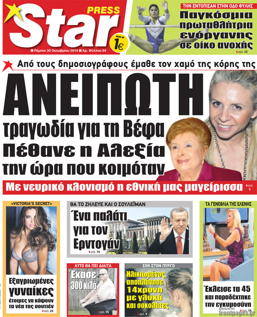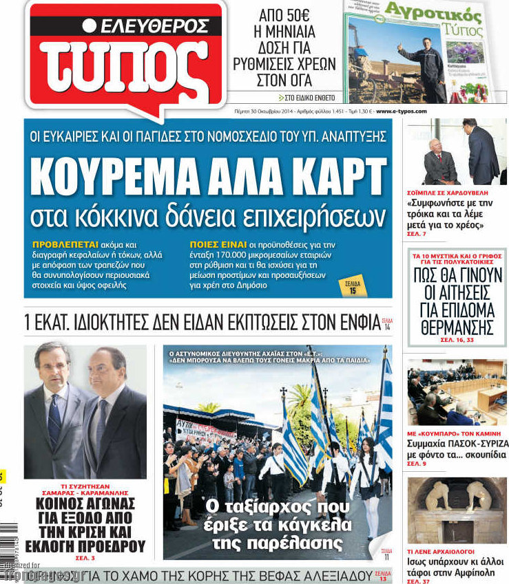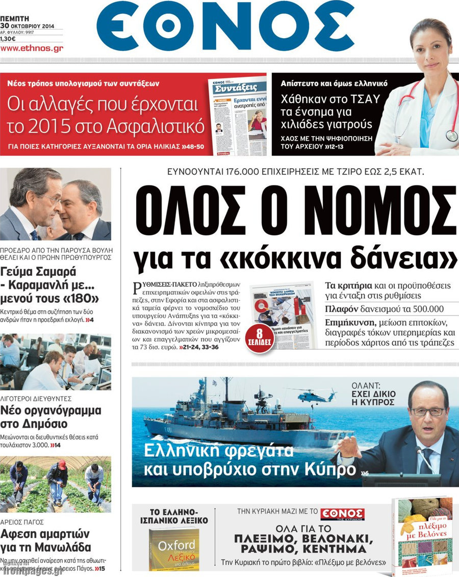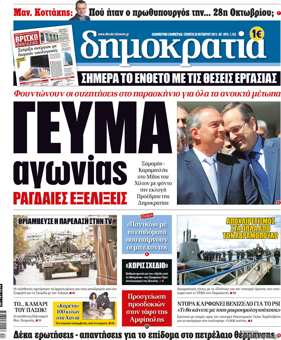 Οι πολιτικές εφημερίδες Enikos Newsroom 07:48, Πέμπτη 30 Οκτωβρίου 2014 Media Οι πολιτικές εφημερίδες Διαβάστε τα πρωτοσέλιδα των πολιτικών εφημερίδων: ΕΦΗΜΕΡΙΔΕΣ ΠΟΛΙΤΙΚΕΣ ΕΦΗΜΕΡΙΔΕΣ ΠΡΩΤΟΣΕΛΙΔΑ Μοιράσου το: σχολίασε κι εσύ (0 σχόλια) Ακολουθήστε το enikos.gr στο Google News και μάθετε πρώτοι όλες τις ειδήσεις Δείτε όλες τις τελευταίες ειδήσεις από την Ελλάδα και τον Κόσμο στο enikos.gr Ειδήσεις Ροή Ειδήσεων 4 ώρες πριν Κύκλωμα διακίνησης ναρκωτικών σε σχολεία: Βίντεο ντοκουμέντο από τα βασανιστήρια στους ανήλικους – Συζητούσαν για το πώς θα κάνουν «ξέπλυμα χρήματος» 3 ώρες πριν Κλιμακώνουν τις κινητοποιήσεις τους οι αγρότες: Κλείνουν τη Δευτέρα τις σήραγγες των Τεμπών για τα φορτηγά – Ανοίγουν την Τρίτη τους δρόμους για τους εκδρομείς 4 ώρες πριν Αιματηρό επεισόδιο στον Άγιο Παντελεήμονα – Δύο τραυματίες, αναζητείται ο δράστης 3 ώρες πριν ΗΠΑ: Αυξάνουν την πίεση στην Βενεζουέλα – Το νέο ρεσάλτο σε τάνκερ και ο στόχος του Τραμπ 3 ώρες πριν Κασσελάκης για παραίτηση Μάλαμα: «Η πορεία μας δεν θα καθοριστεί από μεμονωμένα πρόσωπα, μηχανισμούς και προσωπικές ατζέντες» 4 ώρες πριν Ύπνος: Τι είναι ο «κανόνας 3-3-3» που χρησιμοποιεί ένας γιατρός για να ξεχωρίσει την κόπωση από την αϋπνία 5 ώρες πριν Αριθμολογία: Οι άνθρωποι που έχουν γεννηθεί αυτές τις 4 ημερομηνίες, είναι οι πιο πιστοί και αφοσιωμένοι σύντροφοι 3 ώρες πριν Αρχαιολογικό θρίλερ στην καρδιά της Ευρώπης: Παράξενο θραύσμα με ανάγλυφα και σφηνοειδή γραφή ανακαλύφθηκε σε μέρος που δεν περίμενε κανείς 2 ημέρες πριν Enerwave: Το νέο «ρεύμα» στη λιανική ενέργειας που αλλάζει την εμπειρία του καταναλωτή 19 λεπτά πριν ΠΑΟΚ: Ζημιά στον «δικέφαλο του Βορρά» με τον Παβλένκα – Υπέστη κάκωση στον έσω πλάγιο σύνδεσμο – Εκτός για 1 με 1,5 μήνα 27 λεπτά πριν Μάρκο Νίκολιτς μετά το ΑΕΚ-ΟΦΗ: «Τα τελευταία πολλά χρόνια δεν παίρναμε νίκη τα Χριστούγεννα και φέτος τα καταφέραμε» 40 λεπτά πριν Νείλος: Νεκρή μία 47χρονη Ιταλίδα έπειτα από σύγκρουση δύο κρουαζιερόπλοιων 54 λεπτά πριν Τζέιμς Ράνσον: Πέθανε σε ηλικία 46 ετών ο Αμερικανός ηθοποιός – Γνωστός για την συμμετοχή του στην σειρά «The Wire» 1 ώρα πριν Πέθανε ο Rosa von Praunheim – Πρωτοπόρος του queer κινηματογράφου και της γκέι απελευθέρωσης ENIKOS NETWORK Οι γυναίκες έχουν βρει μια νέα απόλαυση στην κρεβατοκάμαρα που οι περισσότεροι άνδρες αγνοούν Christmas glow: 5 χρυσές συμβουλές για επιδερμίδα που λάμπει από ομορφιά τα Χριστούγεννα Νέο έτος ρεκόρ για τον ελληνικό τουρισμό το 2025: «Είμαστε μέσα στους 10 πλέον επισκέψιμους προορισμούς παγκοσμίως» λέει η ... Τιμές καυσίμων: Πόσο θα πληρώσουν οι εκδρομείς των Χριστουγέννων – Το κόστος μετακινήσεων σε δημοφιλείς προορισμούς Χαρτογραφώντας το «σημείο χωρίς επιστροφή»: Για πρώτη φορά αποκαλύπτεται με λεπτομέρεια το ακανθώδες όριο της ατμόσφαιρας τ... Η Google καταργεί τη λειτουργία «dark web report» – Πώς θα μπορούν οι χρήστες να διαγράφουν τα δεδομένα τους περισσότερα 00:13 , Δευτέρα 22 Δεκεμβρίου 2025 MasterChef: Στον… αέρα το τρέιλερ του 10ου κύκλου – ΒΙΝΤΕΟ Κυκλοφόρησε το τρέιλερ για τον 10ο κύκλο του MasterChef, σηματοδοτώντας την επιστροφή του δημο... 21:30 , Κυριακή 21 Δεκεμβρίου 2025 Ο Δικαστής: Στα χέρια της Αστυνομίας βίντεο, που ανατρέπει όλα τα δεδομένα – Στενεύει ο κλοιός γύρω από τον Δικαστή Καταιγιστικές εξελίξεις στο τελευταίο επεισόδιο της χρονιάς της σειράς “Ο Δικαστής”... 17:18 , Κυριακή 21 Δεκεμβρίου 2025 «Η Μεγάλη Χίμαιρα»: Μάγεψε το κοινό κατά την avant-première της προβολής της Την 