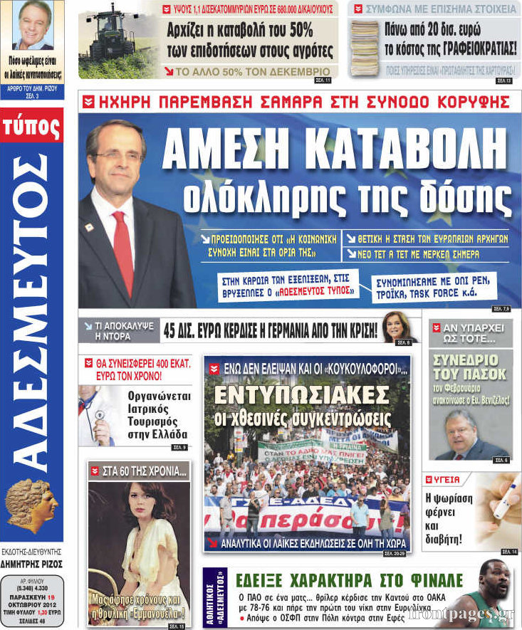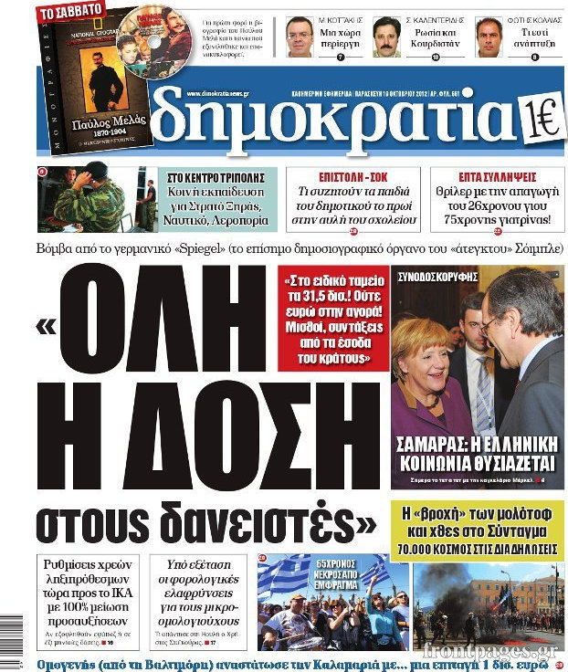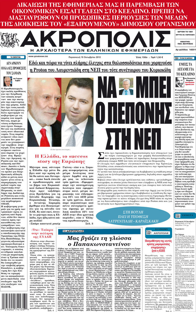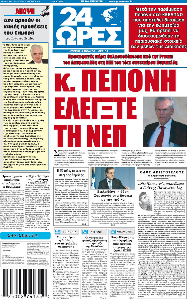 Οι πολιτικές εφημερίδες Enikos Newsroom 08:44, Παρασκευή 19 Οκτωβρίου 2012 Media Οι πολιτικές εφημερίδες Τα σημερινά πρωτοσέλιδα των πολιτικών εφημερίδων. ΕΦΗΜΕΡΙΔΕΣ ΠΟΛΙΤΙΚΕΣ ΕΦΗΜΕΡΙΔΕΣ ΠΡΩΤΟΣΕΛΙΔΑ Μοιράσου το: σχολίασε κι εσύ (0 σχόλια) Ακολουθήστε το enikos.gr στο Google News και μάθετε πρώτοι όλες τις ειδήσεις Δείτε όλες τις τελευταίες ειδήσεις από την Ελλάδα και τον Κόσμο στο enikos.gr Ειδήσεις Ροή Ειδήσεων 4 ώρες πριν Διάλογοι-σοκ από το κύκλωμα που διακινούσε ναρκωτικά σε σχολεία – «Αν δεν είσαι εκεί σε 5 λεπτά, θα φας πολύ ξύλο μπρο» 5 ώρες πριν Αγρότες από το μπλόκο Νίκαιας κλείνουν τη Δευτέρα τις σήραγγες των Τεμπών για τα φορτηγά – Τι αποφάσισαν 2 ώρες πριν Δήμος Αθηναίων: Ξεκινά τη Δευτέρα η επιστροφή πινακίδων οχημάτων από τη Δημοτική Αστυνομία 3 ώρες πριν «Πλημμύρισε» με κόσμο η Ερμού ενόψει των Χριστουγέννων – Ουρές στα καταστήματα – ΦΩΤΟ και ΒΙΝΤΕΟ 2 ώρες πριν Κόντρα Πλεύρη-Δούκα για το rave πάρτι στα σκαλιά εκκλησίας στο Γαλάτσι: «Απλά ντροπή» – «Υποκρισία και σκοταδισμός» 3 ώρες πριν Αν ανήκετε σε ένα από αυτά τα 3 ζώδια, το 2026 θα είναι η χρονιά σας – «Η ζωή σας βελτιώνεται σε όλους τους τομείς» 7 ώρες πριν Οι άνθρωποι που στρώνουν το κρεβάτι τους κάθε πρωί, διαθέτουν αυτές τις 8 κρυφές δυνάμεις 4 ώρες πριν Ένα πλάσμα στα βάθη της θάλασσας απορροφά άνθρακα από την ατμόσφαιρα – «Δεν είχαμε ιδέα για την ύπαρξή του» 1 ημέρα πριν Enerwave: Το νέο «ρεύμα» στη λιανική ενέργειας που αλλάζει την εμπειρία του καταναλωτή 16 λεπτά πριν Αγρότες: Σήκωσαν τις μπάρες στα διόδια των Αφιδνών – ΦΩΤΟ και ΒΙΝΤΕΟ 23 λεπτά πριν Είσοδος σπιτιού: Πώς να οργανώσετε το χώρο πριν έρθουν οι καλεσμένοι σας – Η ρουτίνα 3 βημάτων 31 λεπτά πριν Σταματίνα Τσιμτσιλή: «Ο μπαμπάς μου “έφυγε” σε τροχαίο, έπεσε κάποιος πάνω του και υπέκυψε στα τραύματά του» 38 λεπτά πριν Λαμία: Οι αγρότες άνοιξαν τις μπάρες στα διόδια Τραγάνας επιτρέποντας την ελεύθερη διέλευση των οχημάτων – 49 λεπτά πριν Παναθηναϊκός: Πρόστιμο 26.500 ευρώ από την UEFA για το ματς με την Στουρμ Γκρατς ENIKOS NETWORK Οι γυναίκες έχουν βρει μια νέα απόλαυση στην κρεβατοκάμαρα που οι περισσότεροι άνδρες αγνοούν Christmas glow: 5 χρυσές συμβουλές για επιδερμίδα που λάμπει από ομορφιά τα Χριστούγεννα Νέα έρευνα: Οκτώ στους δέκα Έλληνες αγοράζουν από online πλατφόρμες χωρών εκτός ΕΕ – Temu και Shein οι κορυφαίες επιλογές Αττική: Πού μπήκαν οι πρώτες «έξυπνες κάμερες» – Πώς θα φτάνει η κλήση στους παραβάτες Χαρτογραφώντας το «σημείο χωρίς επιστροφή»: Για πρώτη φορά αποκαλύπτεται με λεπτομέρεια το ακανθώδες όριο της ατμόσφαιρας τ... Η Google καταργεί τη λειτουργία «dark web report» – Πώς θα μπορούν οι χρήστες να διαγράφουν τα δεδομένα τους περισσότερα 17:18 , Κυριακή 21 Δεκεμβρίου 2025 «Η Μεγάλη Χίμαιρα»: Μάγεψε το κοινό κατά την avant-première της προβολής της Την Πρωτοχρονιά (Πέμπτη 1η Ιανουαρίου 2026) στο ERTFLIX θα γίνει η πρεμιέρα της πολυαναμενόμεν... 15:08 , Κυριακή 21 Δεκεμβρίου 2025 Μια νύχτα μόνο: Η Αρετή και ο Οδυσσέας έρχονται και πάλι κοντά Το νέο επεισόδιο της δραματικής σειράς του MEGA «Μια νύχτα μόνο», θα προβληθεί απόψε Κυριακή 2... 14:24 , Κυριακή 21 Δεκεμβρίου 2025 IQ 160: Ο φάκελος με το τεστ πατρότητας ανοίγει, απόψε στις 21:00 στο Star Ανατρεπτικό το νέο διπλό επεισόδιο της σειράς “IQ 160” στις 21:00 στο Star. Ο Τηλέ... 09:43 , Κυριακή 21 Δεκεμβρίου 2025 Το λάθος στην ταινία Die Hard που άφησε άναυδους τους θαυμαστές του Μπρους Γουίλις Ένας φανατικός των ταινιών άφησε άναυδους τους θαυμαστές του Die Hard, επισημαίνο
