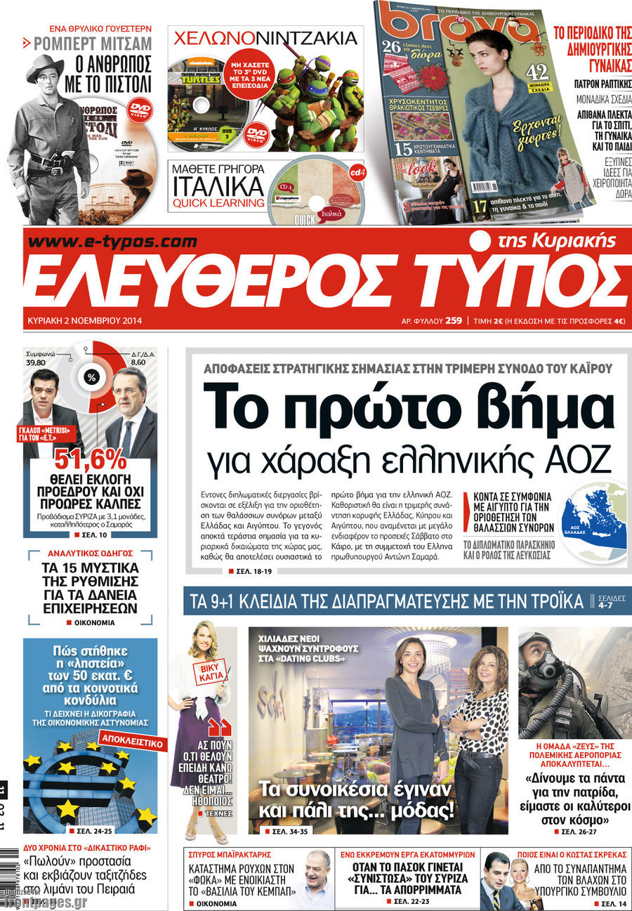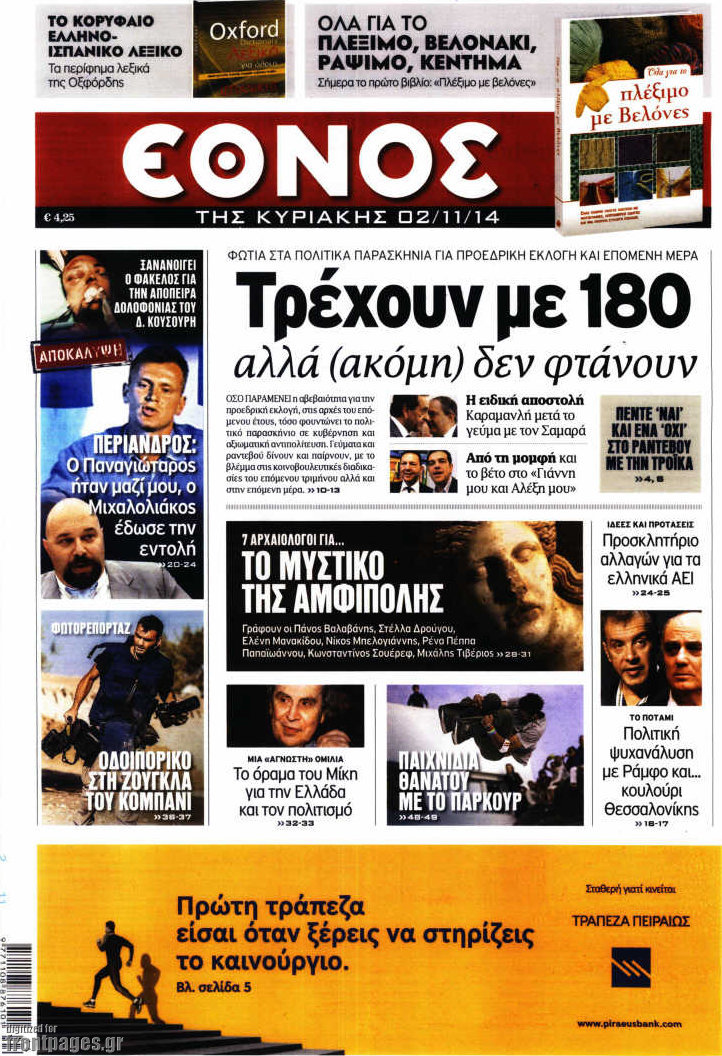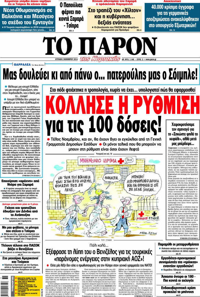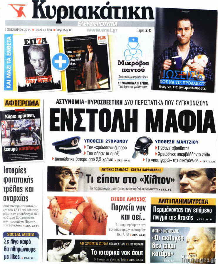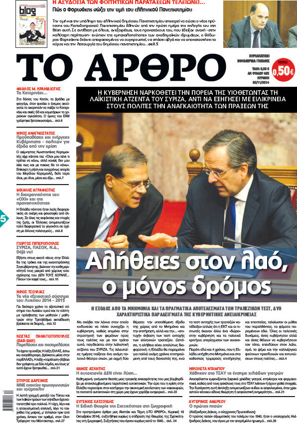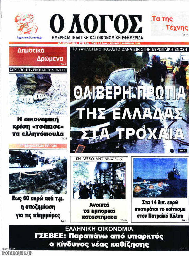 Οι πολιτικές εφημερίδες Enikos Newsroom 07:46, Κυριακή 02 Νοεμβρίου 2014 Media Οι πολιτικές εφημερίδες Διαβάστε τα πρωτοσέλιδα των πολιτικών εφημερίδων. ΠΟΛΙΤΙΚΕΣ ΕΦΗΜΕΡΙΔΕΣ ΠΡΩΤΟΣΕΛΙΔΑ Μοιράσου το: σχολίασε κι εσύ (0 σχόλια) Ακολουθήστε το enikos.gr στο Google News και μάθετε πρώτοι όλες τις ειδήσεις Δείτε όλες τις τελευταίες ειδήσεις από την Ελλάδα και τον Κόσμο στο enikos.gr Ειδήσεις Ροή Ειδήσεων 4 ώρες πριν Χριστούγεννα στα μπλόκα: Επιμένουν στις κινητοποιήσεις τους οι αγρότες – Ανοίγουν τα διόδια το Σαββατοκύριακο 4 ώρες πριν Ουκρανία: Η άνευ προηγουμένου επίθεση σε ρωσικό τάνκερ στη Μεσόγειο και το μήνυμα προς στον Πούτιν – Το «μακρύ χέρι» του Κιέβου 3 ώρες πριν Πούτιν: Τα μηνύματα σε Ευρώπη και ΝΑΤΟ από το μαραθώνιο «σόου» του – Η απαίτηση για «σεβασμό» και η ειρήνη «με τους όρους» της Μόσχας 4 ώρες πριν Τραμπ: Δεν αποκλείει την πιθανότητα ενός πολέμου στη Βενεζουέλα – «Ο Μαδούρο ξέρει καλύτερα από τον καθένα τι ακριβώς θέλω» 5 ώρες πριν Συνεχίζει να προκαλεί ο Μίτσκοσκι: «Για μένα το όνομα Μακεδονία είναι ιερό» 3 ώρες πριν Ανακαλύφθηκαν αρχαία χρυσά νομίσματα 2.200 ετών που απεικονίζουν τον θεό Απόλλωνα – Η άγνωστη σύνδεση με τον Φίλιππο Β΄ της Μακεδονίας 4 ώρες πριν Ύπνος: Μια κρυφή κατάσταση του εγκεφάλου πριν από τον ύπνο μπορεί να είναι το “κλειδί” για υψηλή ευφυΐα και δημιουργικότητα 5 ώρες πριν Αριθμολογία: Οι άνθρωποι που έχουν γεννηθεί αυτές τις 4 ημερομηνίες, συχνά παρεξηγούνται – «Η καλοσύνη τους κρύβει τεράστια δύναμη» 6 ώρες πριν Ξεχάστε το καθάρισμα το Σαββατοκύριακο: Ο «κανόνας των 20 λεπτών» που θα σας λύσει τα χέρια 39 δευτερόλεπτα πριν Εξάρχεια: Ένταση με μολότοφ, χημικά και κρότου λάμψης 16 λεπτά πριν ΗΠΑ: Τραγωδία στην Αλαμπάμα – Σκότωσε την δημοσιογράφο σύζυγό του και αυτοκτόνησε μπροστά στον 3χρονο γιο τους 31 λεπτά πριν Πρόταση γάμου στο ΣΕΦ κατά την διάρκεια του αγώνα Ολυμπιακός-Βιλερμπάν – Δείτε βίντεο 46 λεπτά πριν Euroleague: Επέστρεψε στις νίκες ο Ολυμπιακός, πήρε την ματσάρα της χρονιάς η Μπάρτσα – Τα αποτελέσματα και η βαθμολογία 1 ώρα πριν Συρία: Μαζικά πλήγματα των ΗΠΑ σε θέσεις του Ισλαμικού Κράτους – Χέγκσεθ: «Δεν είναι αρχή πολέμου, είναι μια δήλωση εκδίκησης» για το θάνατο των στρατιωτών μας ENIKOS NETWORK Το ΕΚΑΒ τιμήθηκε από την Ακαδημία Αθηνών για τα 40 χρόνια προσφοράς του Έχετε πραγματικά μεγάλη καρδιά; 10 χαρακτηριστικά όσων έχουν καλοσύνη Αναστολή μέτρων αναγκαστικής εκτέλεσης για κτηνοτρόφους που πλήττονται από την ευλογιά των αιγοπροβάτων Πλήρης επάρκεια προϊόντων στις λαϊκές της Αττικής, παρά τις αγροτικές κινητοποιήσεις – Τι απαντούν οι πωλητές Χαρτογραφώντας το «σημείο χωρίς επιστροφή»: Για πρώτη φορά αποκαλύπτεται με λεπτομέρεια το ακανθώδες όριο της ατμόσφαιρας τ... Η Google καταργεί τη λειτουργία «dark web report» – Πώς θα μπορούν οι χρήστες να διαγράφουν τα δεδομένα τους περισσότερα 22:42 , Παρασκευή 19 Δεκεμβρίου 2025 Γιώργος Γιαννόπουλος για “Το σόι σου”: “Είναι ευτυχία και ευλογία αυτή η σειρά” «Είναι ευτυχία και ευλογία η συγκυρία αυτής της σειράς», θα πει ο Γιώργος Γιαννόπουλος -ο αγαπ... 20:37 , Παρασκευή 19 Δεκεμβρίου 2025 Don’t Forget The Lyrics: Η Έλλη Κοκκίνου υποδέχεται 4 παίκτες που θα κάνουν τα πάντα για να μη χάσουν ούτε… μισή λέξη από τους στίχους Το «Don’t Forget The Lyrics» επιστρέφει απόψε, Παρασκευή 19 Δεκεμβρίου, στις 21:00 με νέο επει... 19:31 , Παρασκευή 19 Δεκεμβρίου 2025 GNTM: Απόψε ο μεγάλος τελικός για τους 4 φιναλίστ Έπειτα από μήνες γεμάτους μό
