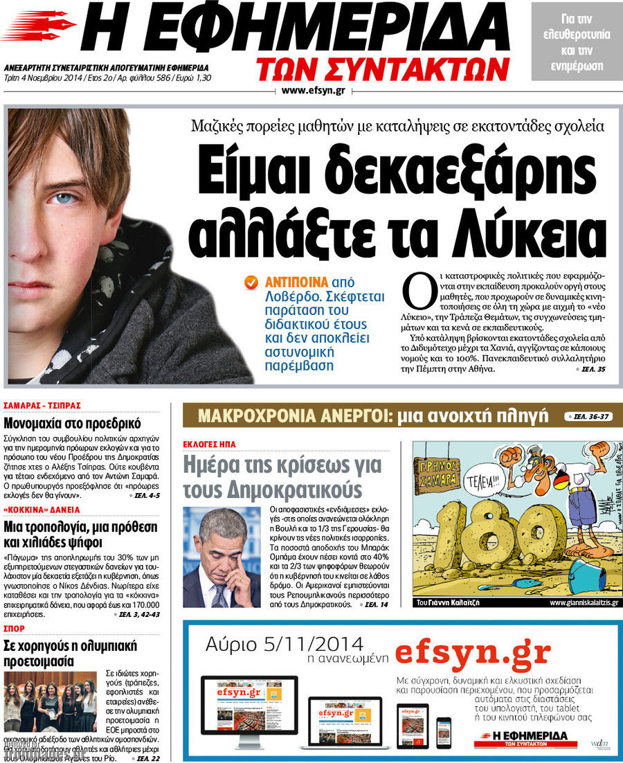Οι πολιτικές εφημερίδες Enikos Newsroom 07:44, Τρίτη 04 Νοεμβρίου 2014 Media Οι πολιτικές εφημερίδες Διαβάστε τα πρωτοσέλιδα των πολιτικών εφημερίδων: ΠΟΛΙΤΙΚΕΣ ΕΦΗΜΕΡΙΔΕΣ ΠΡΩΤΟΣΕΛΙΔΑ Μοιράσου το: σχολίασε κι εσύ (0 σχόλια) Ακολουθήστε το enikos.gr στο Google News και μάθετε πρώτοι όλες τις ειδήσεις Δείτε όλες τις τελευταίες ειδήσεις από την Ελλάδα και τον Κόσμο στο enikos.gr Ειδήσεις Ροή Ειδήσεων 3 ώρες πριν Πώς δρούσε το κύκλωμα που διακινούσε ναρκωτικά σε σχολεία – Υπέβαλαν σε βασανιστήρια όσους δεν τηρούσαν τους «κανόνες πειθαρχίας» 3 ώρες πριν Αγρότες: Γιορτές στα μπλόκα με ανοιχτά διόδια – Δικογραφία στα Ιωάννινα για το σήκωμα των μπαρών 2 ώρες πριν Ζελένσκι: Οι Αμερικανοί πρότειναν συνάντηση Ουκρανίας, ΗΠΑ, Ρωσίας στο Μαϊάμι 44 λεπτά πριν Τραμπ: Πώς περνάει τις γιορτές των Χριστουγέννων – Τα δώρα που κάνει στα εγγόνια του 2 ώρες πριν Μικαέλα Μπέντχαους: Ο πρώτος άνθρωπος σε αναπηρικό αμαξίδιο που ταξίδεψε στο διάστημα – ΒΙΝΤΕΟ 3 ώρες πριν Η τύχη χαμογελά σε 3 ζώδια έως τις 28 Δεκεμβρίου – «Προσέξτε τις επιλογές σας και η επιμονή σας θα ανταμειφθεί» 4 ώρες πριν Μία ανεκμετάλλευτη πηγή θα μπορούσε να προσφέρει ανεξάντλητη ενέργεια – Οι επιστήμονες ίσως γνωρίζουν πώς να την ξεκλειδώσουν 16 λεπτά πριν Μήπως οι γιορτές σας δεν είναι τόσο τέλειες; 7 χριστουγεννιάτικες συνήθειες που μαρτυρούν ότι μια οικογένεια είναι δυσλειτουργική 10 ώρες πριν Enerwave: Το νέο «ρεύμα» στη λιανική ενέργειας που αλλάζει την εμπειρία του καταναλωτή 5 λεπτά πριν Αστέρας Τρίπολης – Άρης 0-1: Με «κέρβερο» Αθανασιάδη «άλωσε» το «Θεόδωρος Κολοκοτρώνης» 16 λεπτά πριν Μήπως οι γιορτές σας δεν είναι τόσο τέλειες; 7 χριστουγεννιάτικες συνήθειες που μαρτυρούν ότι μια οικογένεια είναι δυσλειτουργική 19 λεπτά πριν Φωτιά σε αυτοκίνητο στην Λεωφόρο Κηφισίας στο ύψος της Φιλοθέης – Μεγάλο μποτιλιάρισμα στο σημείο 24 λεπτά πριν Πηνελόπη Πλάκα: Η εξομολόγηση για την προσωπική της ζωή – «Γούσταρα πάρα πολύ την ελευθερία μου» 35 λεπτά πριν Λούλα: Προειδοποιεί πως μια επέμβαση των ΗΠΑ στη Βενεζουέλα θα μπορούσε να είναι καταστροφική ENIKOS NETWORK Οι γυναίκες αποκαλύπτουν το πιο ελκυστικό πράγμα που μπορεί να κάνει ένας άνδρας Ομορφιά και αντιγήρανση: Ειδικοί μιλούν για συσκευές περιποίησης του δέρματος Ολοκληρώθηκαν πληρωμές 22,16 εκατ. ευρώ για το μεταφορικό ισοδύναμο – Κικίλιας: Στηρίζουμε τη νησιωτικότητα Η Realnews στο www.pressreader.com Χαρτογραφώντας το «σημείο χωρίς επιστροφή»: Για πρώτη φορά αποκαλύπτεται με λεπτομέρεια το ακανθώδες όριο της ατμόσφαιρας τ... Η Google καταργεί τη λειτουργία «dark web report» – Πώς θα μπορούν οι χρήστες να διαγράφουν τα δεδομένα τους περισσότερα 18:19 , Σάββατο 20 Δεκεμβρίου 2025 HOTΕΛ ΕΛVIRA: Η Ελβίρα μαθαίνει πως ο Χάρι μένει κρυφά στο ξενοδοχείο του Παντελή Συνεχίζονται οι εκλογές για πρόεδρο, στο νέο επεισόδιο της κωμικής σειράς του MEGA, HOTΕΛ ΕΛVI... 14:04 , Σάββατο 20 Δεκεμβρίου 2025 Η Realnews αυτής της Κυριακής (21/12/2025) Με τίτλο: «Ασπίδα προστασίας για την Ελλάδα» κυκλοφορεί, αυτήν την Κυριακή, η Realnews. Σημαντ... 12:53 , Σάββατο 20 Δεκεμβρίου 2025 Να μ’ αγαπάς: Το παρελθόν έρχεται στο φως – Καταιγιστικές εξελίξεις στα τελευταία επεισόδια του 2025 Ο Άγγελος αποκαλύπτεται, η Φωτεινή ανησυχεί για τον Λευτέρη και η Ζωή έρχεται αντιμέτωπη με το... 11:41 , Σάββατο 20 Δεκεμβρίου 2025 «Η αγάπη δεν χάνεται ποτέ»: Η μικρού μήκους ταινία κινουμένων σχεδίων που θέτει ερωτήματα για τη ζωή και τον θάνατο Ο θάνατος είναι ένα από τα πιο σκληρά 