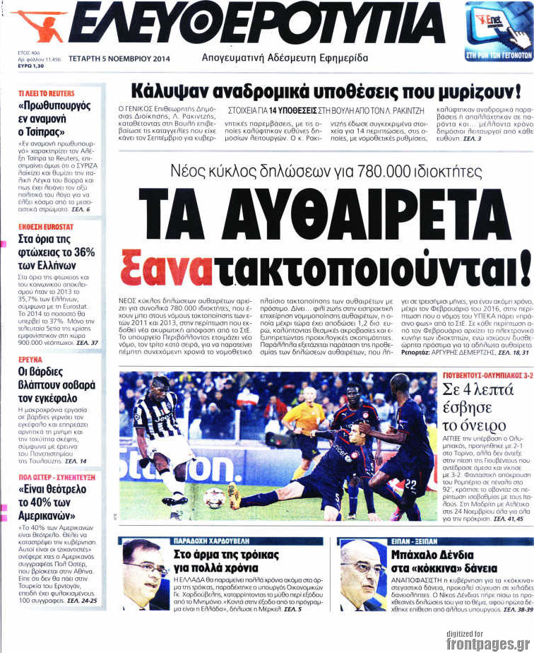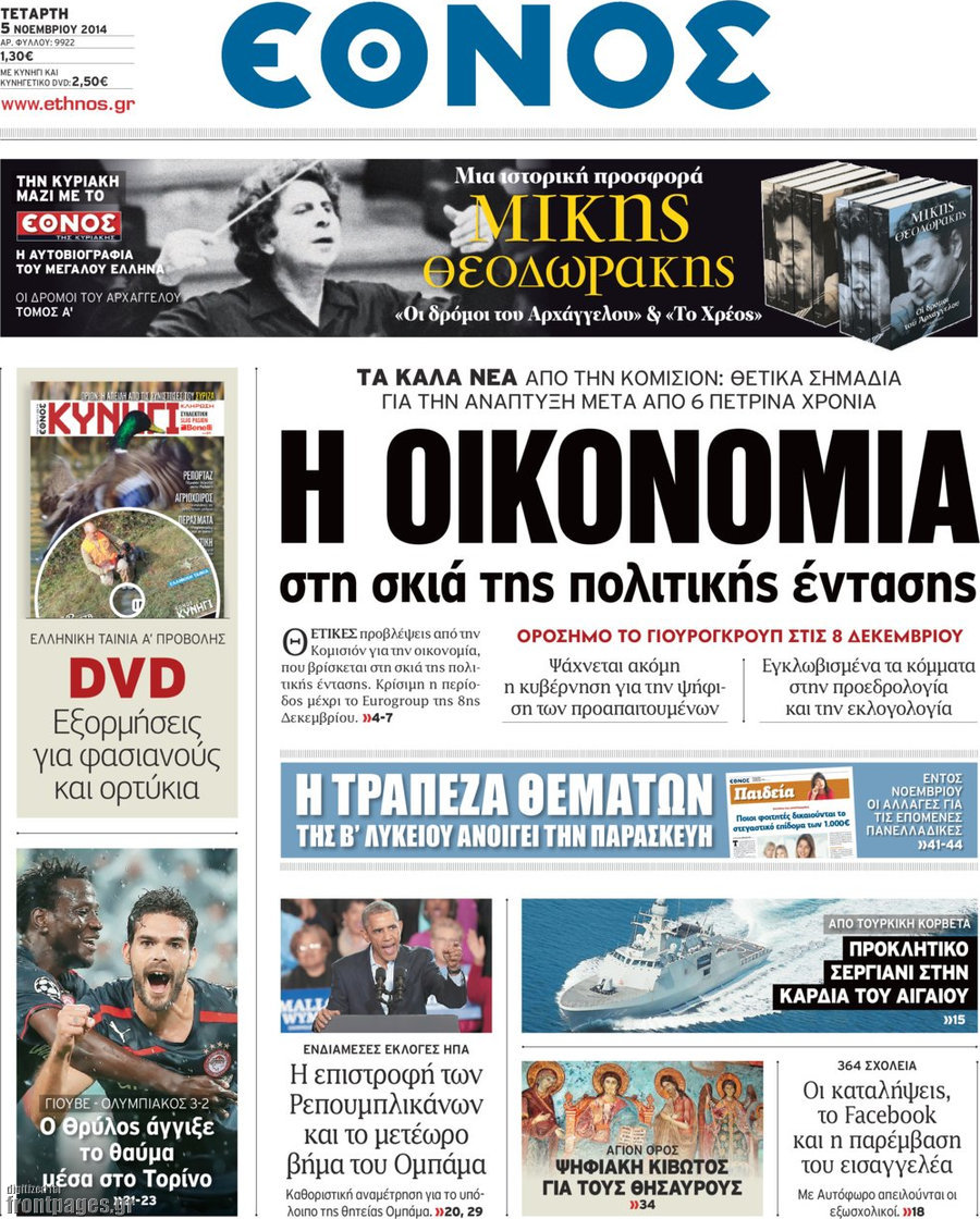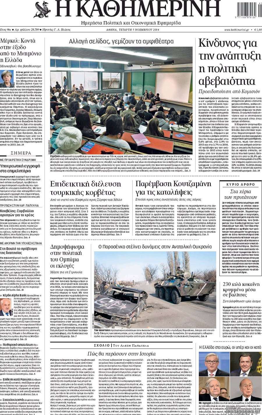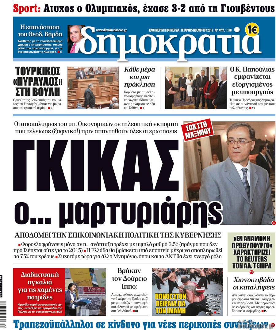 Οι πολιτικές εφημερίδες Enikos Newsroom 08:18, Τετάρτη 05 Νοεμβρίου 2014 Media Οι πολιτικές εφημερίδες Διαβάστε τα πρωτοσέλιδα των πολιτικών εφημερίδων: ΠΟΛΙΤΙΚΕΣ ΕΦΗΜΕΡΙΔΕΣ ΠΡΩΤΟΣΕΛΙΔΑ Μοιράσου το: σχολίασε κι εσύ (0 σχόλια) Ακολουθήστε το enikos.gr στο Google News και μάθετε πρώτοι όλες τις ειδήσεις Δείτε όλες τις τελευταίες ειδήσεις από την Ελλάδα και τον Κόσμο στο enikos.gr Ειδήσεις Ροή Ειδήσεων 44 λεπτά πριν Κύκλωμα διακίνησης ναρκωτικών σε σχολεία: Βίντεο ντοκουμέντο από τα βασανιστήρια στους ανήλικους – Συζητούσαν για το πώς θα κάνουν «ξέπλυμα χρήματος» 3 ώρες πριν Αγρότες: Σήκωσαν τις μπάρες στα διόδια των Αφιδνών – ΦΩΤΟ και ΒΙΝΤΕΟ 39 λεπτά πριν Αιματηρό επεισόδιο στον Άγιο Παντελεήμονα – Δύο τραυματίες, αναζητείται ο δράστης 4 ώρες πριν Κωνσταντίνος Ανεστίδης: «Είμαι αθώος, είμαι καθαρός σαν αστραπή και η αστραπή θα πέσει στο κεφάλι τους» – ΒΙΝΤΕΟ 2 ώρες πριν Αποχώρησε από το Κίνημα Δημοκρατίας η Κυριακή Μάλαμα – Οι αιχμές για τον Στέφανο Κασσελάκη 33 λεπτά πριν Ύπνος: Τι είναι ο «κανόνας 3-3-3» που χρησιμοποιεί ένας γιατρός για να ξεχωρίσει την κόπωση από την αϋπνία 4 ώρες πριν Είσοδος σπιτιού: Πώς να οργανώσετε το χώρο πριν έρθουν οι καλεσμένοι σας – Η ρουτίνα 3 βημάτων 2 ώρες πριν Αριθμολογία: Οι άνθρωποι που έχουν γεννηθεί αυτές τις 4 ημερομηνίες, είναι οι πιο πιστοί και αφοσιωμένοι σύντροφοι 2 ημέρες πριν Enerwave: Το νέο «ρεύμα» στη λιανική ενέργειας που αλλάζει την εμπειρία του καταναλωτή 8 λεπτά πριν Ελένη Βουλγαράκη για Φώτη Ιωαννίδη: «Δεν είναι ωραία η σχέση από απόσταση, φέτος τα Χριστούγεννα θα είμαι δίπλα του» 18 λεπτά πριν Κασσελάκης για παραίτηση Μάλαμα: «Η πορεία μας δεν θα καθοριστεί από μεμονωμένα πρόσωπα, μηχανισμούς και προσωπικές ατζέντες» 25 λεπτά πριν Κλήρωση ΤΖΟΚΕΡ 21/12/2025: Αυτοί είναι οι τυχεροί αριθμοί 33 λεπτά πριν Ύπνος: Τι είναι ο «κανόνας 3-3-3» που χρησιμοποιεί ένας γιατρός για να ξεχωρίσει την κόπωση από την αϋπνία 39 λεπτά πριν Αιματηρό επεισόδιο στον Άγιο Παντελεήμονα – Δύο τραυματίες, αναζητείται ο δράστης ENIKOS NETWORK Οι γυναίκες έχουν βρει μια νέα απόλαυση στην κρεβατοκάμαρα που οι περισσότεροι άνδρες αγνοούν Christmas glow: 5 χρυσές συμβουλές για επιδερμίδα που λάμπει από ομορφιά τα Χριστούγεννα Νέο έτος ρεκόρ για τον ελληνικό τουρισμό το 2025: «Είμαστε μέσα στους 10 πλέον επισκέψιμους προορισμούς παγκοσμίως» λέει η ... Τιμές καυσίμων: Πόσο θα πληρώσουν οι εκδρομείς των Χριστουγέννων – Το κόστος μετακινήσεων σε δημοφιλείς προορισμούς Χαρτογραφώντας το «σημείο χωρίς επιστροφή»: Για πρώτη φορά αποκαλύπτεται με λεπτομέρεια το ακανθώδες όριο της ατμόσφαιρας τ... Η Google καταργεί τη λειτουργία «dark web report» – Πώς θα μπορούν οι χρήστες να διαγράφουν τα δεδομένα τους περισσότερα 21:30 , Κυριακή 21 Δεκεμβρίου 2025 Ο Δικαστής: Στα χέρια της Αστυνομίας βίντεο, που ανατρέπει όλα τα δεδομένα – Στενεύει ο κλοιός γύρω από τον Δικαστή Καταιγιστικές εξελίξεις στο τελευταίο επεισόδιο της χρονιάς της σειράς “Ο Δικαστής”... 17:18 , Κυριακή 21 Δεκεμβρίου 2025 «Η Μεγάλη Χίμαιρα»: Μάγεψε το κοινό κατά την avant-première της προβολής της Την Πρωτοχρονιά (Πέμπτη 1η Ιανουαρίου 2026) στο ERTFLIX θα γίνει η πρεμιέρα της πολυαναμενόμεν... 15:08 , Κυριακή 21 Δεκεμβρίου 2025 Μια νύχτα μόνο: Η Αρετή και ο Οδυσσέας έρχονται και πάλι κοντά Το νέο επεισόδιο της δραματικής σειράς του MEGA «Μια νύχτα μόνο», θα προβληθεί απόψε Κυριακή 2... 14:24 , Κυριακή 21 Δεκεμβρίου 2025 IQ 160: Ο φάκελος με το τεστ πατρότητας ανοίγει, απόψε