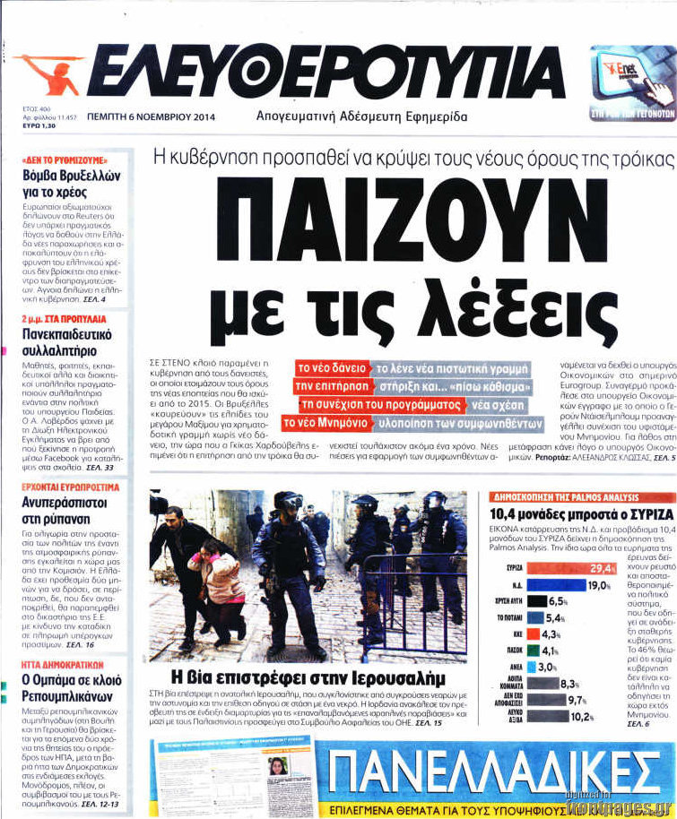 Οι πολιτικές εφημερίδες Enikos Newsroom 08:04, Πέμπτη 06 Νοεμβρίου 2014 Media Οι πολιτικές εφημερίδες Διαβάστε τα πρωτοσέλιδα των πολιτικών εφημερίδων: ΠΟΛΙΤΙΚΕΣ ΕΦΗΜΕΡΙΔΕΣ ΠΡΩΤΟΣΕΛΙΔΑ Μοιράσου το: σχολίασε κι εσύ (0 σχόλια) Ακολουθήστε το enikos.gr στο Google News και μάθετε πρώτοι όλες τις ειδήσεις Δείτε όλες τις τελευταίες ειδήσεις από την Ελλάδα και τον Κόσμο στο enikos.gr Ειδήσεις Ροή Ειδήσεων 3 ώρες πριν Πώς δρούσε το κύκλωμα που διακινούσε ναρκωτικά σε σχολεία – Υπέβαλαν σε βασανιστήρια όσους δεν τηρούσαν τους «κανόνες πειθαρχίας» 4 ώρες πριν Αγρότες: Γιορτές στα μπλόκα με ανοιχτά διόδια – Δικογραφία στα Ιωάννινα για το σήκωμα των μπαρών 3 ώρες πριν Ζελένσκι: Οι Αμερικανοί πρότειναν συνάντηση Ουκρανίας, ΗΠΑ, Ρωσίας στο Μαϊάμι 2 ώρες πριν Τραμπ: Πώς περνάει τις γιορτές των Χριστουγέννων – Τα δώρα που κάνει στα εγγόνια του 3 ώρες πριν Μικαέλα Μπέντχαους: Ο πρώτος άνθρωπος σε αναπηρικό αμαξίδιο που ταξίδεψε στο διάστημα – ΒΙΝΤΕΟ 4 ώρες πριν Η τύχη χαμογελά σε 3 ζώδια έως τις 28 Δεκεμβρίου – «Προσέξτε τις επιλογές σας και η επιμονή σας θα ανταμειφθεί» 5 ώρες πριν Μία ανεκμετάλλευτη πηγή θα μπορούσε να προσφέρει ανεξάντλητη ενέργεια – Οι επιστήμονες ίσως γνωρίζουν πώς να την ξεκλειδώσουν 1 ώρα πριν Μήπως οι γιορτές σας δεν είναι τόσο τέλειες; 7 χριστουγεννιάτικες συνήθειες που μαρτυρούν ότι μια οικογένεια είναι δυσλειτουργική 11 ώρες πριν Enerwave: Το νέο «ρεύμα» στη λιανική ενέργειας που αλλάζει την εμπειρία του καταναλωτή 4 λεπτά πριν Πέθανε η σπουδαία αρχαιολόγος Λίλα Μαραγκού – 14 λεπτά πριν Πώς να απαλλαγείτε από τη μυρωδιά του τηγανητού φαγητού: Το μυστικό βρίσκεται στην κουζίνα σας 19 λεπτά πριν Βλαχοδήμος: «Νιώθω καλά που είμαι σημαντικός για τη Σεβίλλη» – Τι είπε για τη Ρεάλ Μαδρίτης και τον Μπαπέ 28 λεπτά πριν Πρίγκιπας Ουίλιαμ: Μαγείρεψε παρέα με τον πρίγκιπα Τζορτζ για τους αστέγους – ΦΩΤΟ και ΒΙΝΤΕΟ 37 λεπτά πριν Επιχείρηση της Τροχαίας κατά της παράνομης στάθμευσης στο Νέο Ψυχικό – Τέσσερις συλλήψεις ENIKOS NETWORK Οι γυναίκες αποκαλύπτουν το πιο ελκυστικό πράγμα που μπορεί να κάνει ένας άνδρας Ομορφιά και αντιγήρανση: Ειδικοί μιλούν για συσκευές περιποίησης του δέρματος Θεοδωρικάκος: Εθνική στρατηγική για τους ημιαγωγούς – Πρώτο βήμα η χρηματοδότηση του πρώτου Κέντρου Ικανοτήτων, με 3,63 εκα... Επίδομα θέρμανσης: Μπαίνει η πρώτη δόση την Τρίτη – Οι επόμενες πληρωμές Χαρτογραφώντας το «σημείο χωρίς επιστροφή»: Για πρώτη φορά αποκαλύπτεται με λεπτομέρεια το ακανθώδες όριο της ατμόσφαιρας τ... Η Google καταργεί τη λειτουργία «dark web report» – Πώς θα μπορούν οι χρήστες να διαγράφουν τα δεδομένα τους περισσότερα 18:19 , Σάββατο 20 Δεκεμβρίου 2025 HOTΕΛ ΕΛVIRA: Η Ελβίρα μαθαίνει πως ο Χάρι μένει κρυφά στο ξενοδοχείο του Παντελή Συνεχίζονται οι εκλογές για πρόεδρο, στο νέο επεισόδιο της κωμικής σειράς του MEGA, HOTΕΛ ΕΛVI... 14:04 , Σάββατο 20 Δεκεμβρίου 2025 Η Realnews αυτής της Κυριακής (21/12/2025) Με τίτλο: «Ασπίδα προστασίας για την Ελλάδα» κυκλοφορεί, αυτήν την Κυριακή, η Realnews. Σημαντ... 12:53 , Σάββατο 20 Δεκεμβρίου 2025 Να μ’ αγαπάς: Το παρελθόν έρχεται στο φως – Καταιγιστικές εξελίξεις στα τελευταία επεισόδια του 2025 Ο Άγγελος αποκαλύπτεται, η Φωτεινή ανησυχεί για τον Λευτέρη και η Ζωή έρχεται αντιμέτωπη με το... 11:41 , Σάββατο 20 Δεκεμβρίου 2025 «Η αγάπη δεν χάνεται ποτέ»: Η μικρού μήκους ταινία κινουμένων σχεδίων που θέτει ερωτήματα για τη ζωή και τον θάνατο Ο θάνατος είναι ένα από τα πιο σκληρά θέματα που