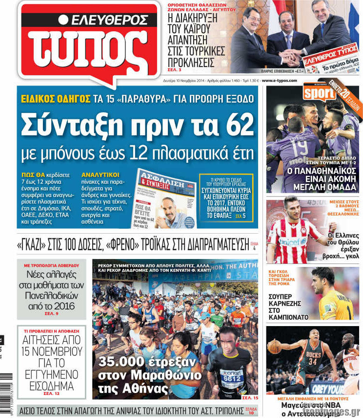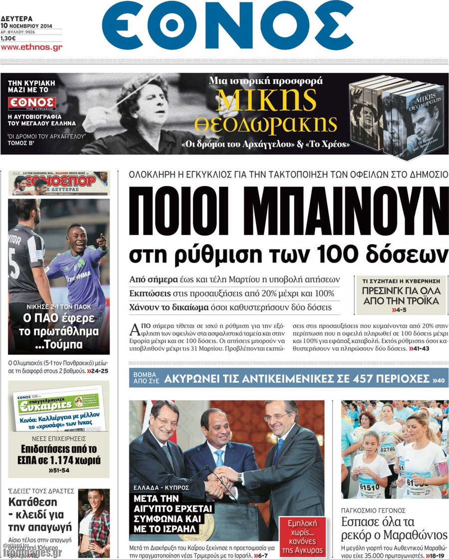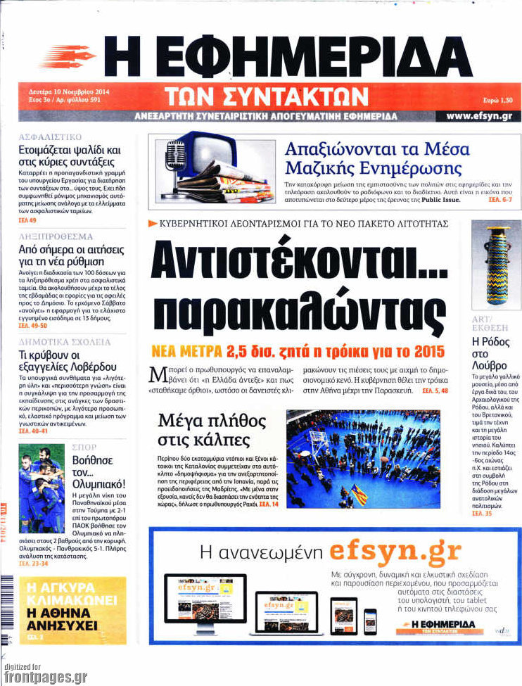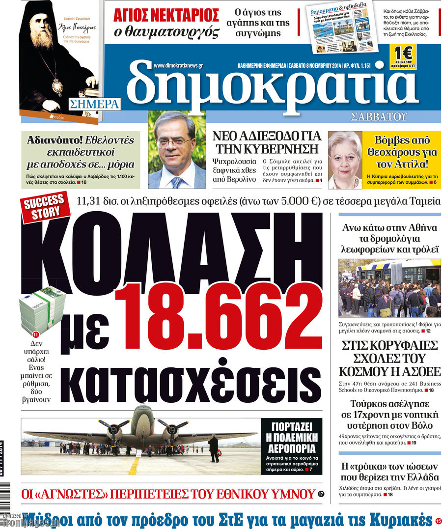 Οι πολιτικές εφημερίδες Enikos Newsroom 08:06, Δευτέρα 10 Νοεμβρίου 2014 Media Οι πολιτικές εφημερίδες Διαβάστε τα πρωτοσέλιδα των πολιτικών εφημερίδων: ΠΟΛΙΤΙΚΕΣ ΕΦΗΜΕΡΙΔΕΣ ΠΡΩΤΟΣΕΛΙΔΑ Μοιράσου το: σχολίασε κι εσύ (0 σχόλια) Ακολουθήστε το enikos.gr στο Google News και μάθετε πρώτοι όλες τις ειδήσεις Δείτε όλες τις τελευταίες ειδήσεις από την Ελλάδα και τον Κόσμο στο enikos.gr Ειδήσεις Ροή Ειδήσεων 1 ώρα πριν Υπόθεση Έπσταϊν: Το Υπουργείο Δικαιοσύνης δημοσιοποίησε μια σειρά από εξαιρετικά επεξεργασμένα αρχεία – «Λείπουν τα πιο σημαντικά έγγραφα», λένε οι Δημοκρατικοί 3 ώρες πριν Σαρωτικοί οι έλεγχοι στους δρόμους ενόψει εορτών – Μπλόκα της τροχαίας σε κεντρικές αρτηρίες της Αττικής 1 ώρα πριν ΟΝΕΧ – MEGATUGS: Ξεκίνησε η ναυπήγηση ρυμουλκών στην Ελλάδα – Προθάλαμος πολεμικών πλοίων – Δείτε φωτογραφίες και βίντεο 1 ώρα πριν Καιρός: Αλλαγή σκηνικού σήμερα με βροχές και πτώση της θερμοκρασίας – Οι προβλέψεις των μετεωρολόγων για τα Χριστούγεννα 10 ώρες πριν Χριστούγεννα στα μπλόκα: Επιμένουν στις κινητοποιήσεις τους οι αγρότες – Ανοίγουν τα διόδια το Σαββατοκύριακο 3 ώρες πριν Αυγά: Πόσα μπορείτε να τρώτε την ημέρα με ασφάλεια για μέγιστη πρόσληψη πρωτεΐνης 3 ώρες πριν Τα ζώδια σήμερα, Σάββατο 20 Δεκεμβρίου: Παρθένοι, το σύμπαν σας δίνει το κλειδί 3 ώρες πριν Οπτική ψευδαίσθηση: Μόνο αν είσαι ο Σέρλοκ Χολμς θα βρεις τον αριθμό «87» σε 7 δευτερόλεπτα 49 λεπτά πριν Αρχαιολόγοι ανακάλυψαν σε χωράφι απεικόνιση 600 ετών ενός Αγίου – Τα στοιχεία που δείχνουν ότι μαρτύρησε 1 λεπτό πριν Γιώργος Μαζωνάκης: Τη Δευτέρα η μήνυση του τραγουδιστή κατά του 22χρονου 10 λεπτά πριν Αμαλία Κωστοπούλου: Το μήνυμα για το χειρουργείο στο γόνατο – «Αυτός ο τραυματισμός μού στέρησε πολλά…» 17 λεπτά πριν Ο «χάρτης» με τις αυξήσεις και τις φοροελαφρύνσεις του 2026 – Ποιοι και πόσα κερδίζουν 25 λεπτά πριν Η τέλεια συνταγή για cookies με κομμάτια σοκολάτας 33 λεπτά πριν MyHealth App: Τα στοιχεία για τον Προσωπικό Βοηθό Υγείας Πολίτη – Τι ερωτήματα έγιναν μέσα σε 7 ημέρες ENIKOS NETWORK Πόσα κιλά παίρνουμε πραγματικά τα Χριστούγεννα, σύμφωνα με την επιστήμη – Πώς να το αποτρέψουμε; Το δημοφιλές ρόφημα που αυξάνει την πίεση πιο γρήγορα και από το αλάτι Mega χριστουγεννιάτικη φορολοταρία: «Κλείδωσε» η ημερομηνία για την κλήρωση – Ερωτήσεις και απαντήσεις Αναστολή μέτρων αναγκαστικής εκτέλεσης για κτηνοτρόφους που πλήττονται από την ευλογιά των αιγοπροβάτων Χαρτογραφώντας το «σημείο χωρίς επιστροφή»: Για πρώτη φορά αποκαλύπτεται με λεπτομέρεια το ακανθώδες όριο της ατμόσφαιρας τ... Η Google καταργεί τη λειτουργία «dark web report» – Πώς θα μπορούν οι χρήστες να διαγράφουν τα δεδομένα τους περισσότερα 08:14 , Σάββατο 20 Δεκεμβρίου 2025 Τρομεροί γονείς: Η Μαρία Καβογιάννη εισβάλλει στο σπίτι της οικογένειας Στεφανίδη Όσα θα δούμε στο νέο διπλό επεισόδιο της σειράς «Τρομεροί γονείς», σήμερα Σάββατο 20 Δεκεμβρίο... 05:48 , Σάββατο 20 Δεκεμβρίου 2025 Οι οικονομικές εφημερίδες 20/12/2025 Διαβάστε τα πρωτοσέλιδα από τις οικονομικές εφημερίδες, σήμερα 20/12/2025. 05:43 , Σάββατο 20 Δεκεμβρίου 2025 Οι αθλητικές εφημερίδες 20/12/2025 Διαβάστε τα πρωτοσέλιδα από τις αθλητικές εφημερίδες, σήμερα 20/12/2025. 05:38 , Σάββατο 20 Δεκεμβρίου 2025 Οι πολιτικές εφημερίδες 20/12/2025 Διαβάστε τα πρωτοσέλιδα από τις πολιτικές εφημερίδες, σήμερα 20/12/2025. ΤΕΛΕΥΤΑΙΕΣ ΕΙΔΗΣΕΙΣ 10 λεπτά πριν Αμαλία Κωστοπούλου: Το μήνυμα για το χειρουργείο στο... 17 λεπτά πριν Ο «χάρτης» με τις αυξήσεις και τις φοροελα
